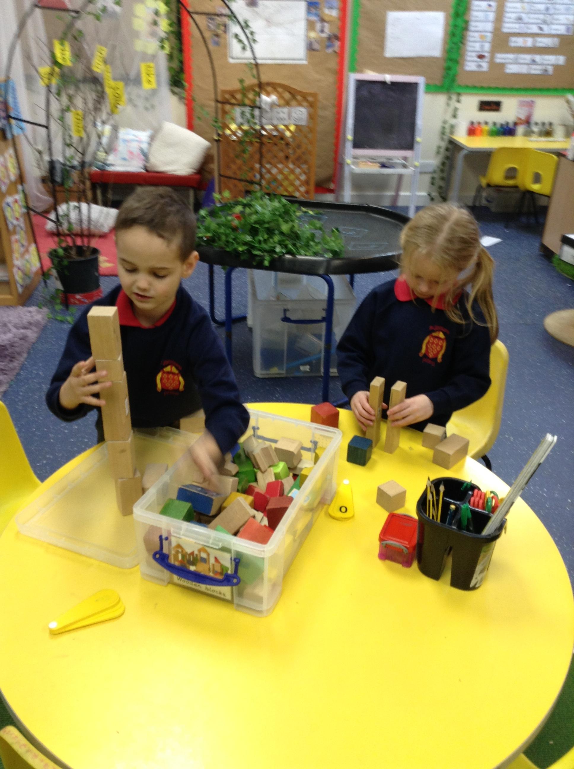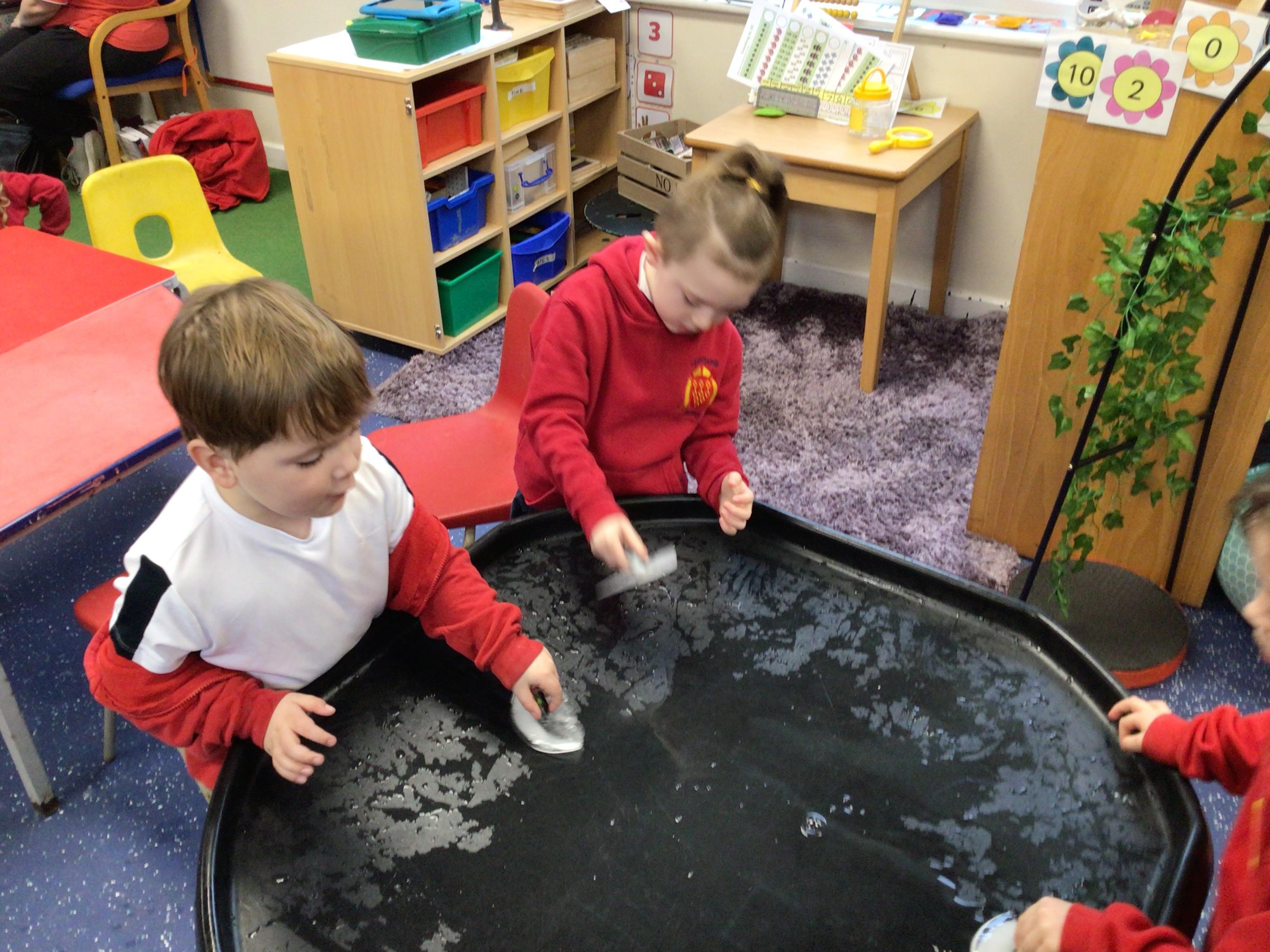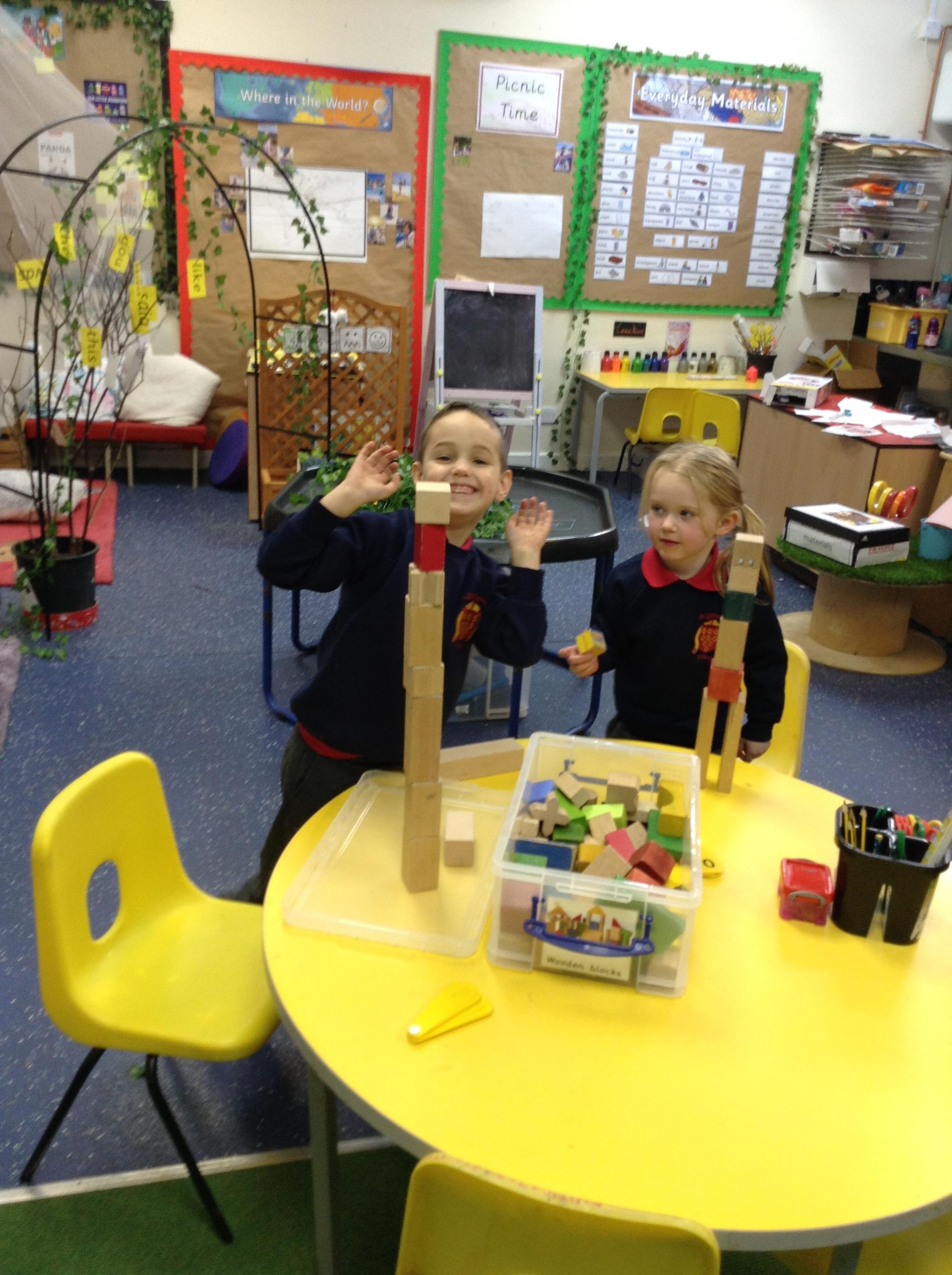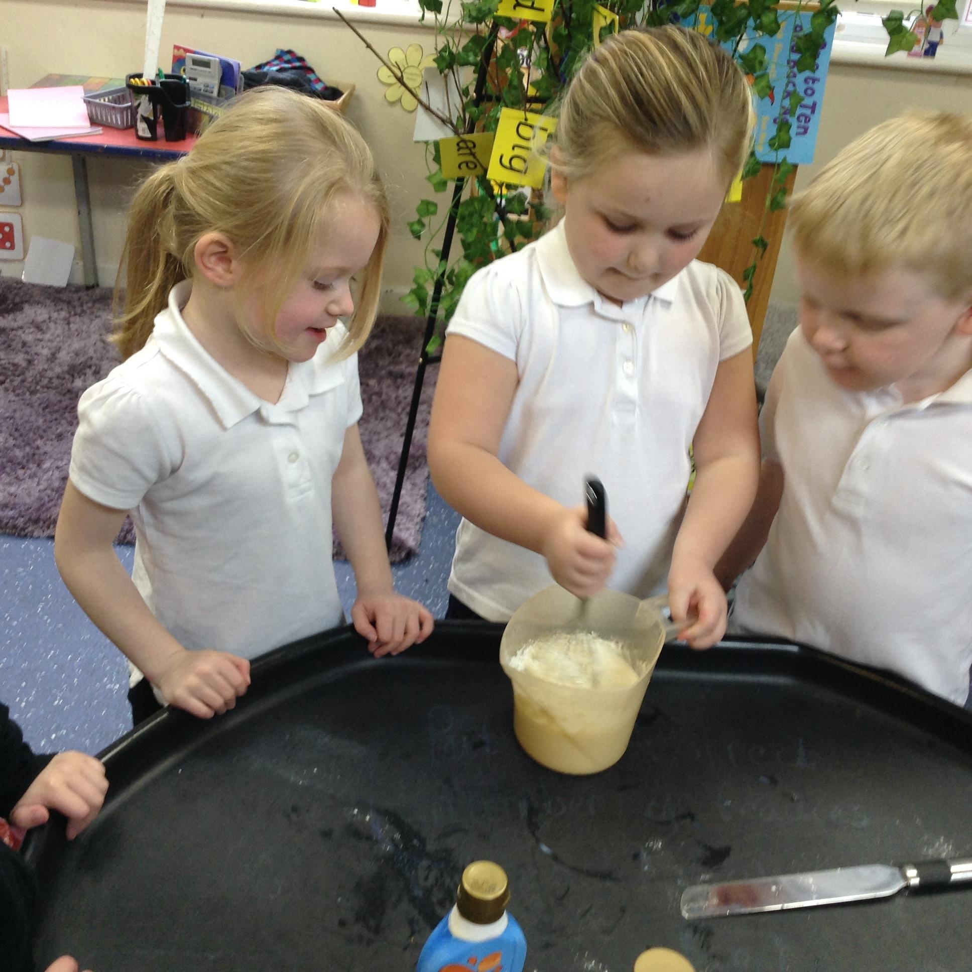 In maths, the children were great at using the Numicon to make teen numbers. The children also enjoyed exploring the maths glitter tray together and spending time in the continuous provision.