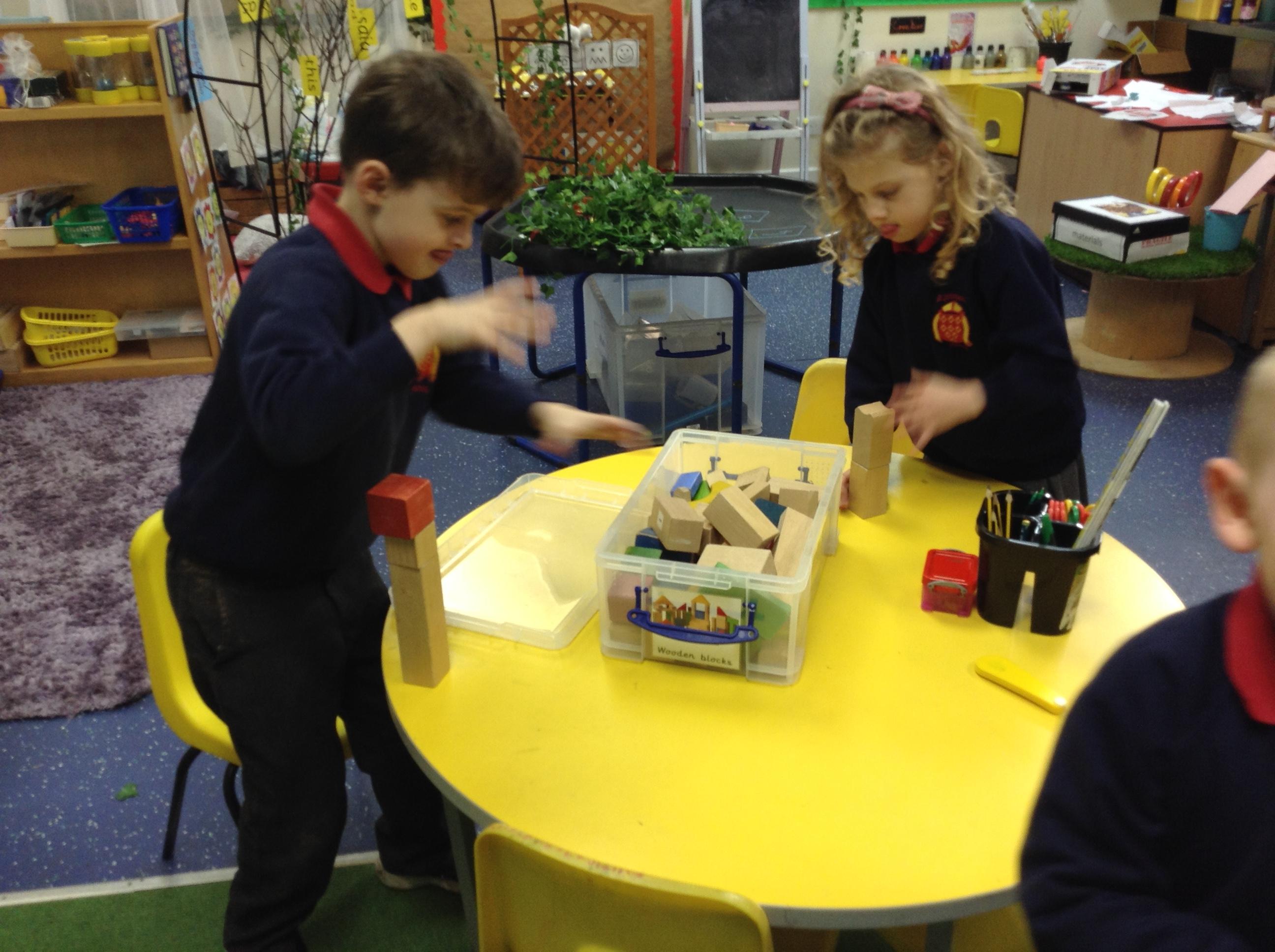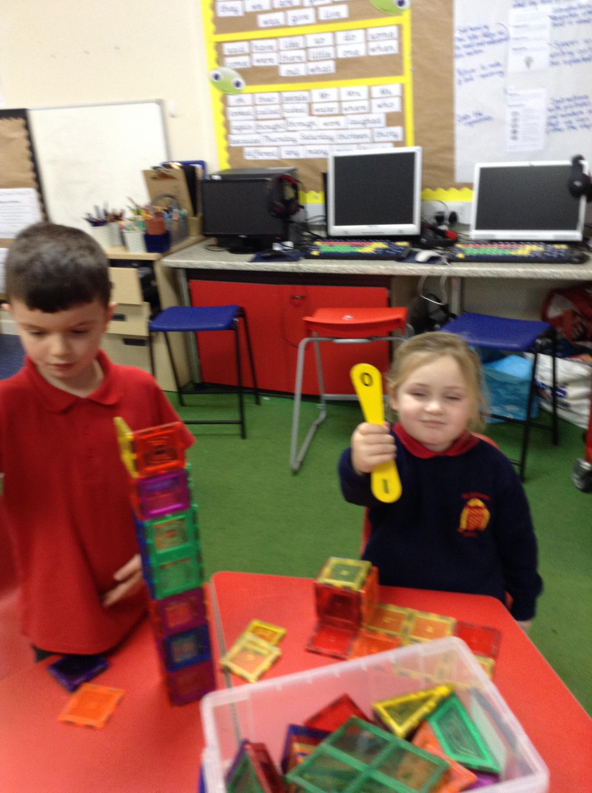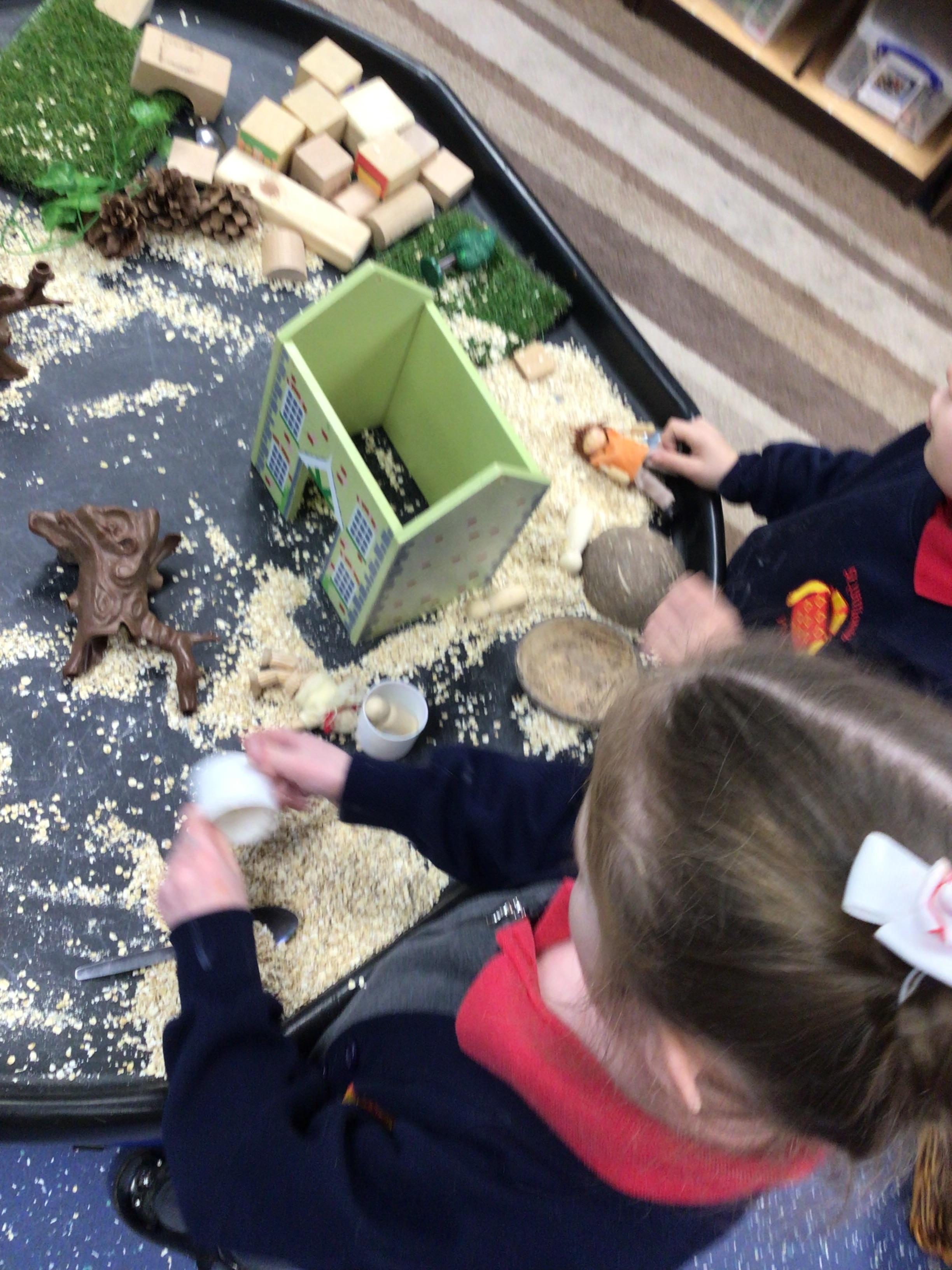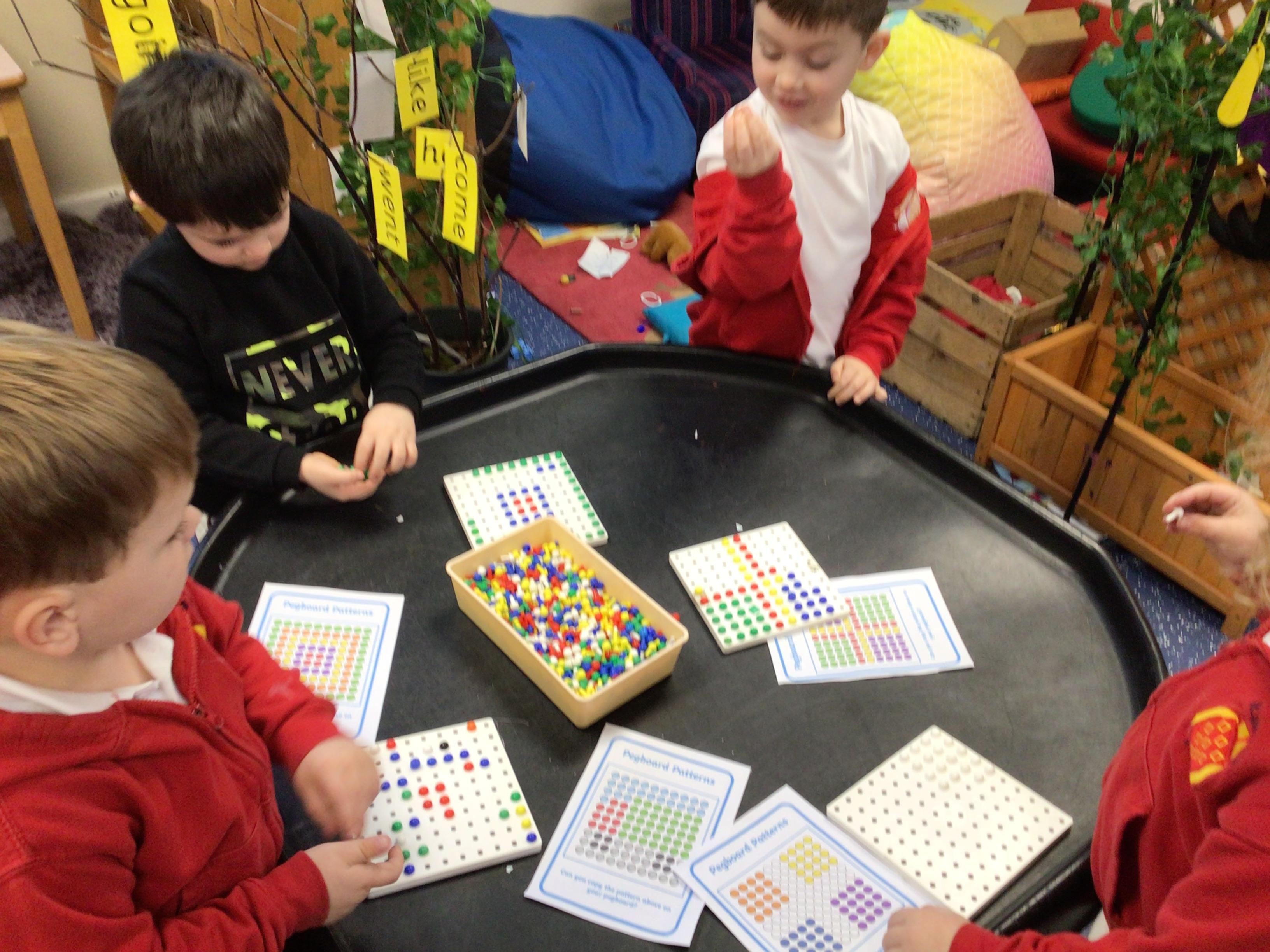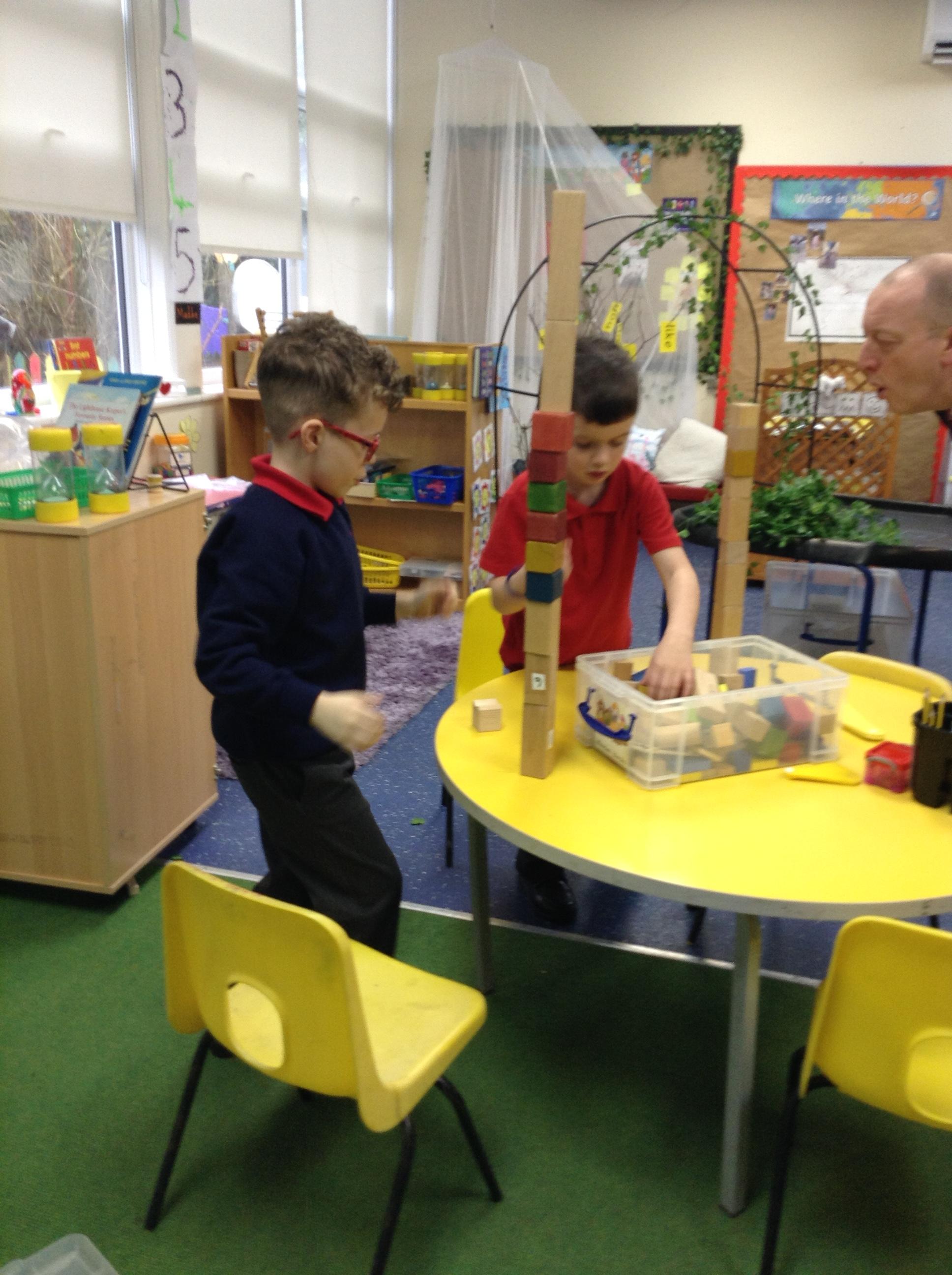In maths, the children were great at using the Numicon to make teen numbers. The children also enjoyed exploring the maths glitter tray together and spending time in the continuous provision.