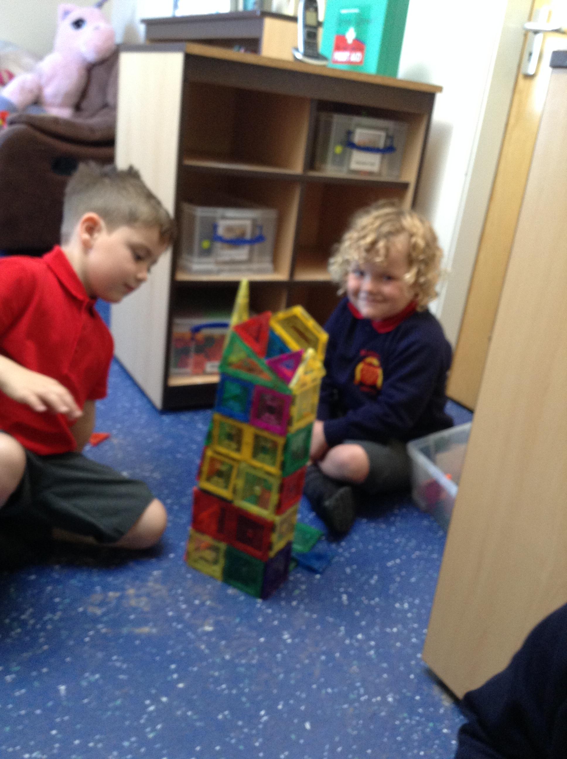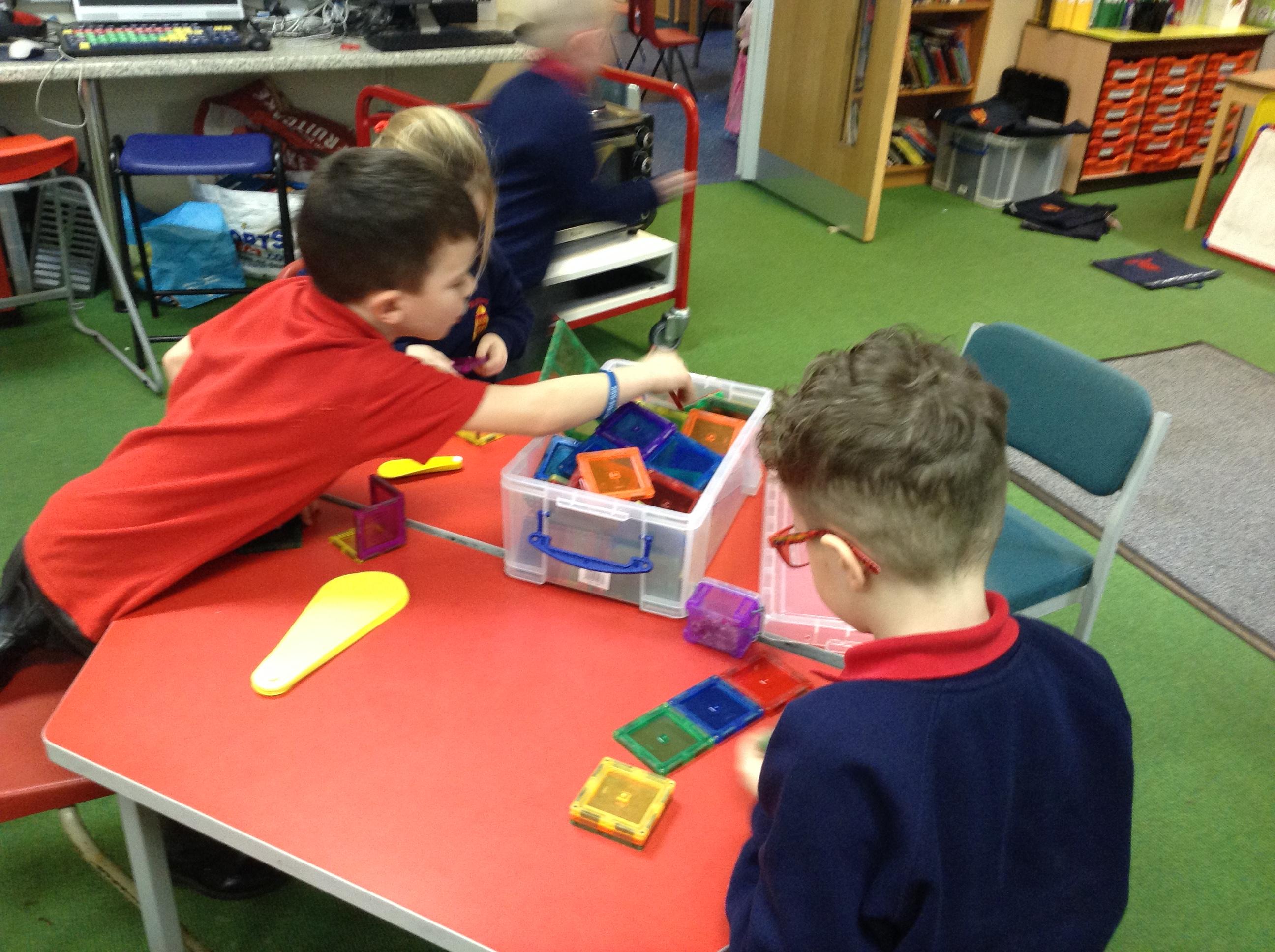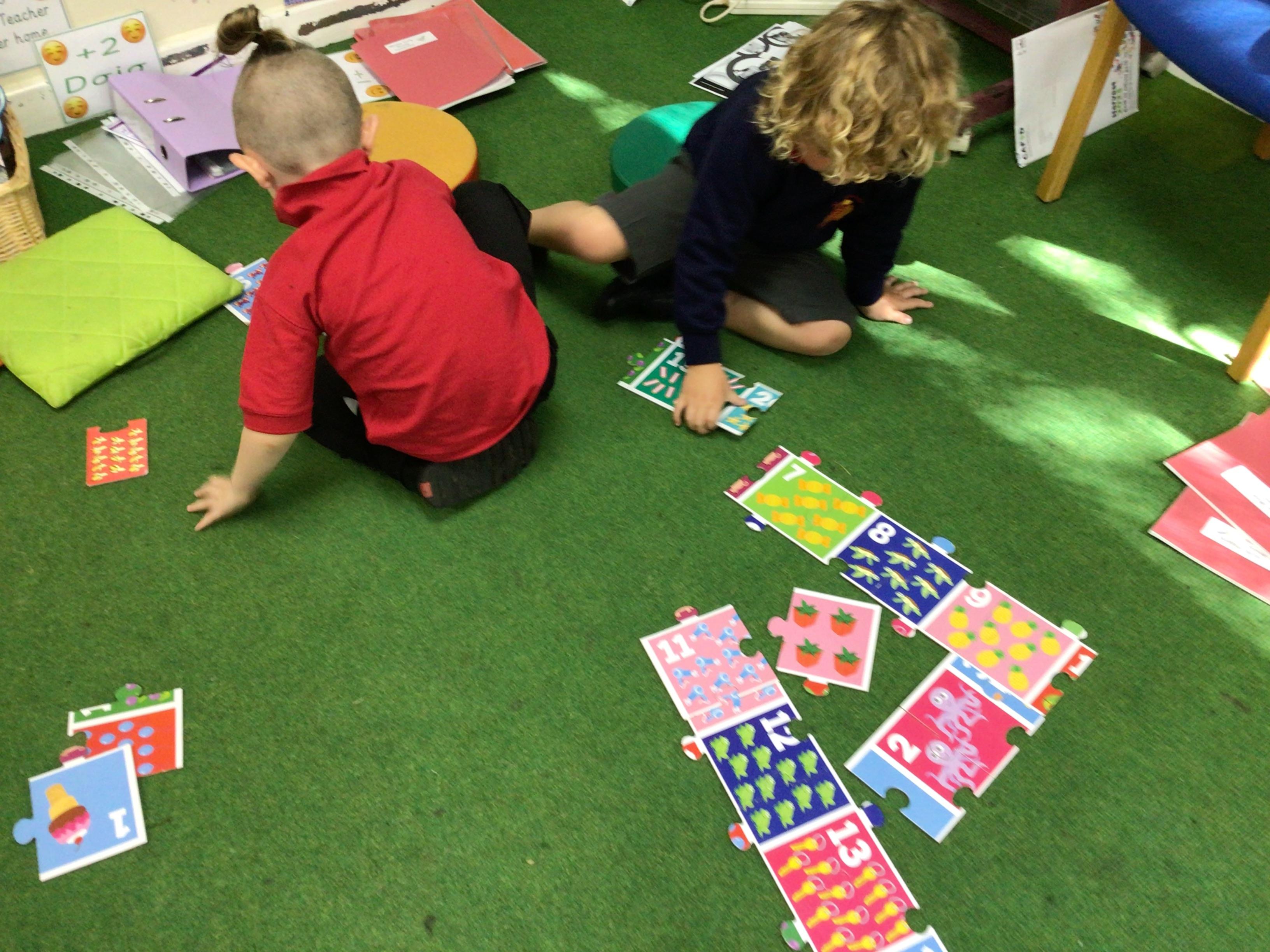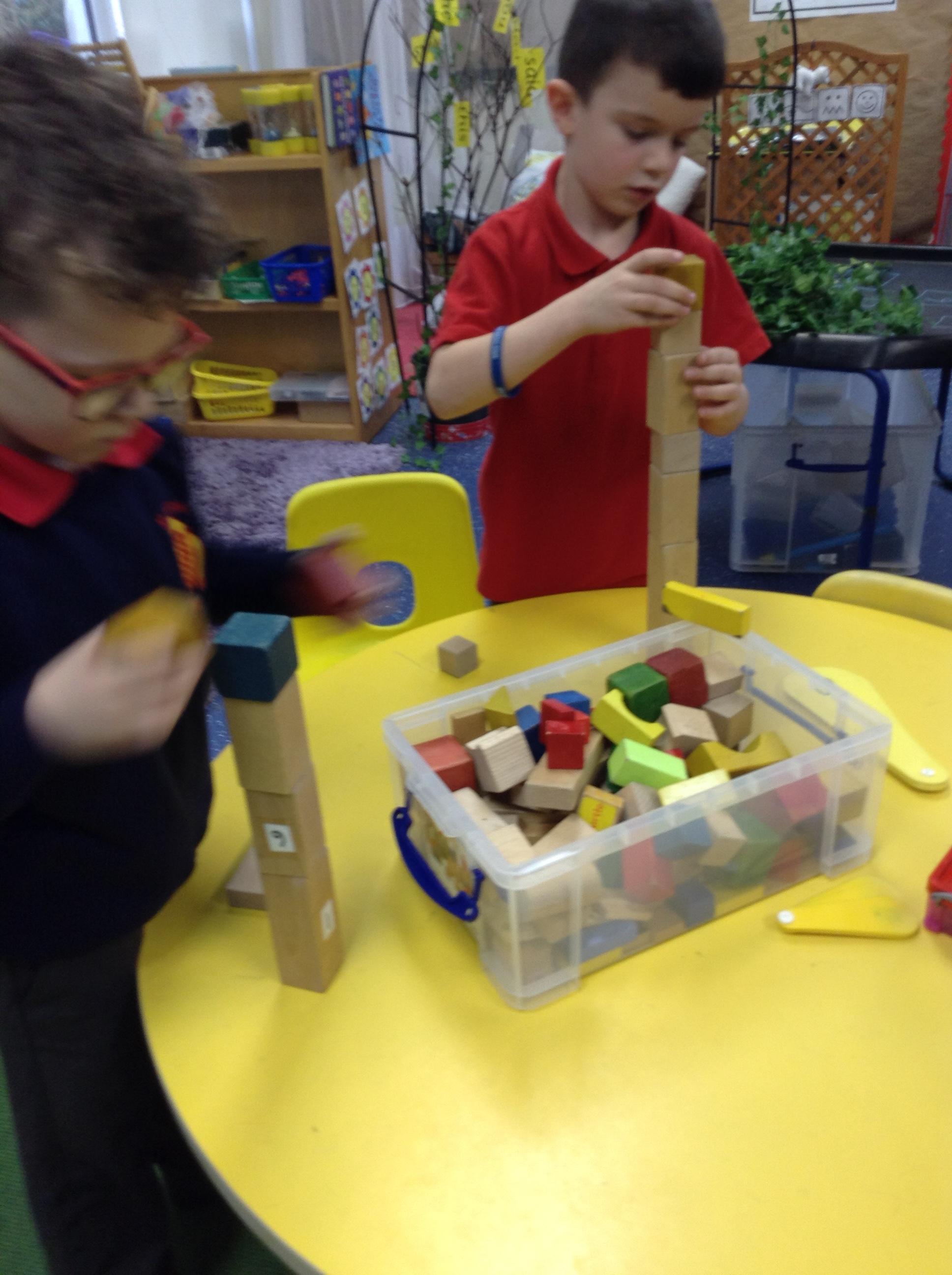 In maths, the children were great at using the Numicon to make teen numbers. The children also enjoyed exploring the maths glitter tray together and spending time in the continuous provision.