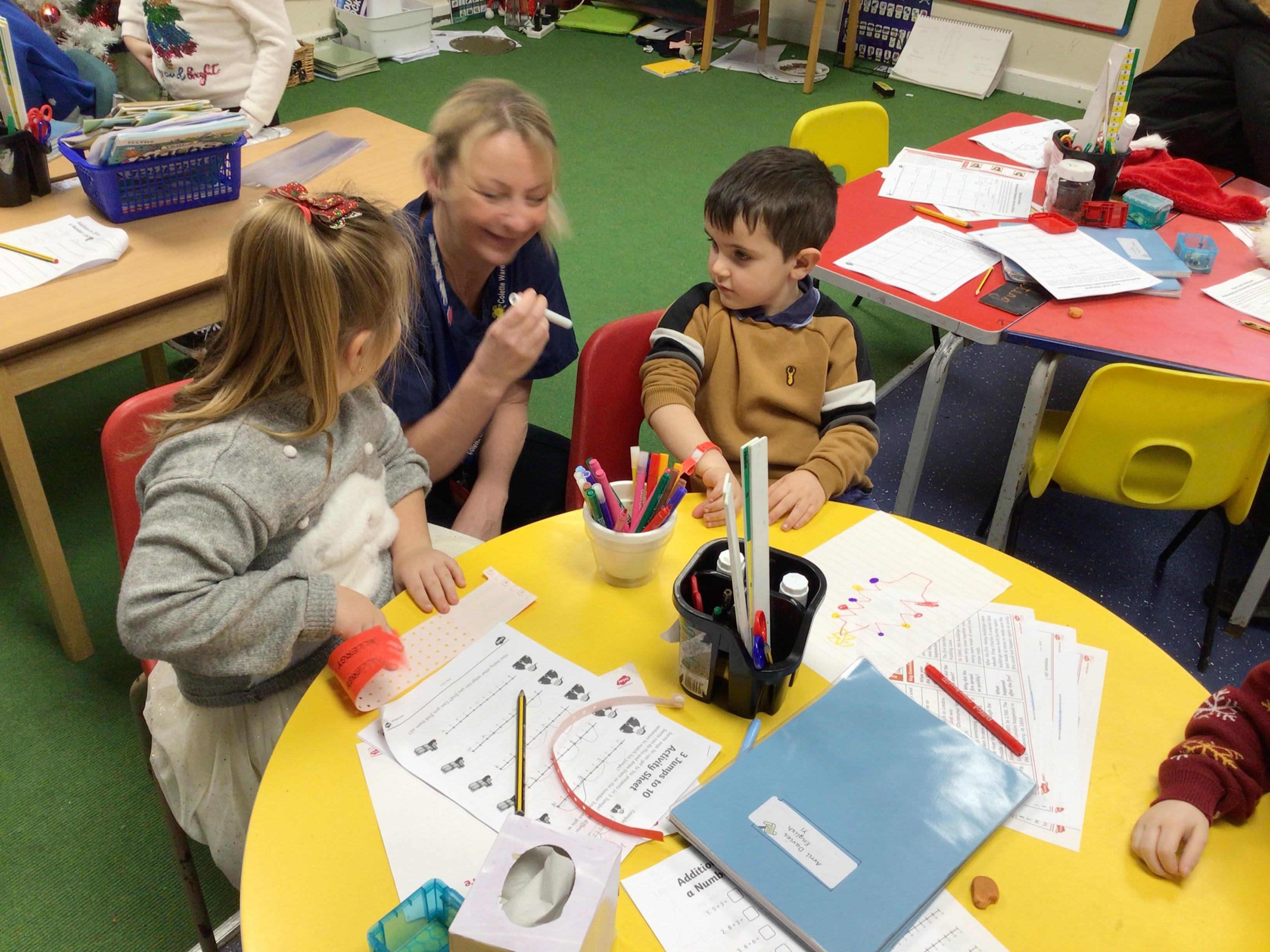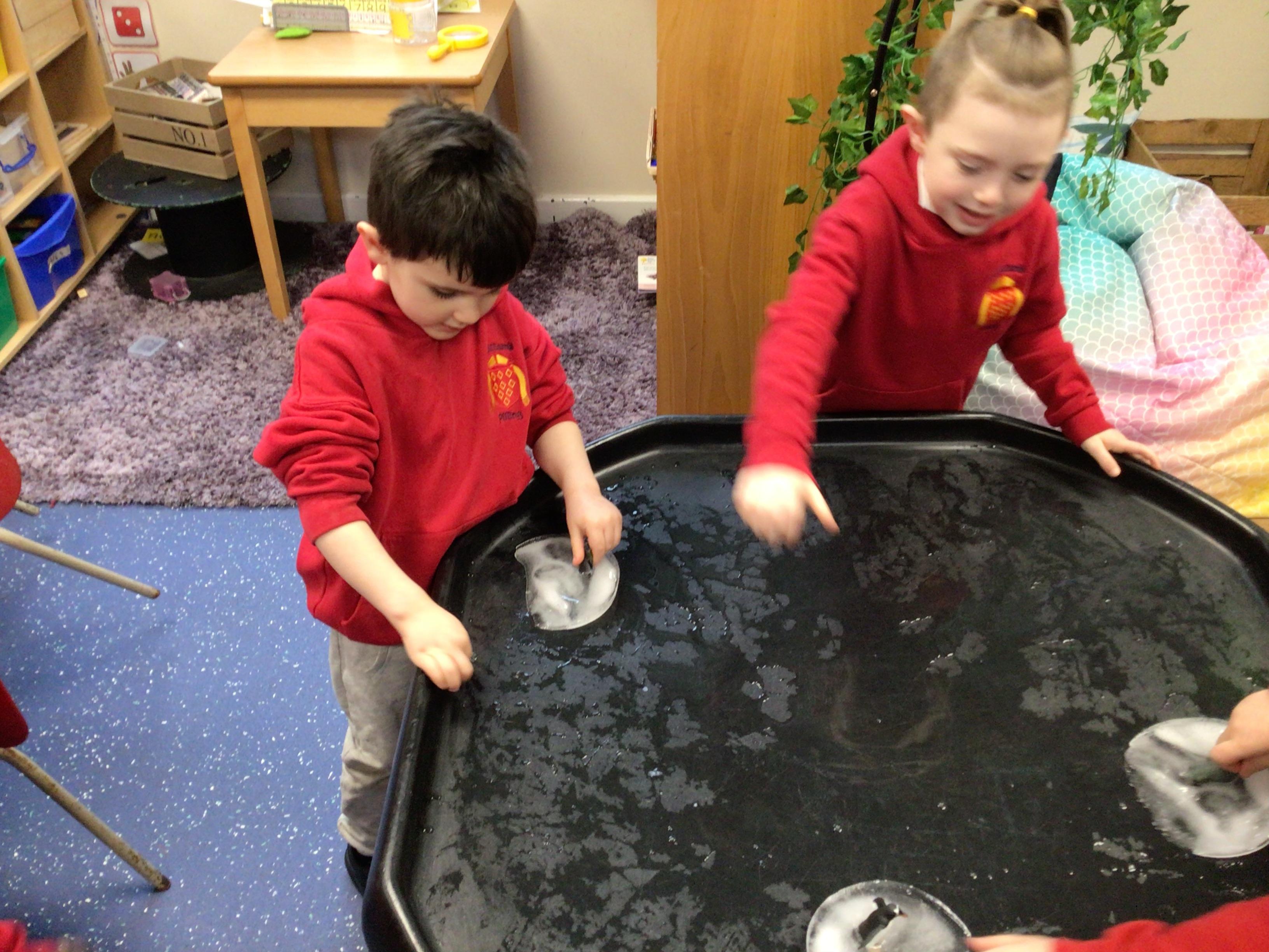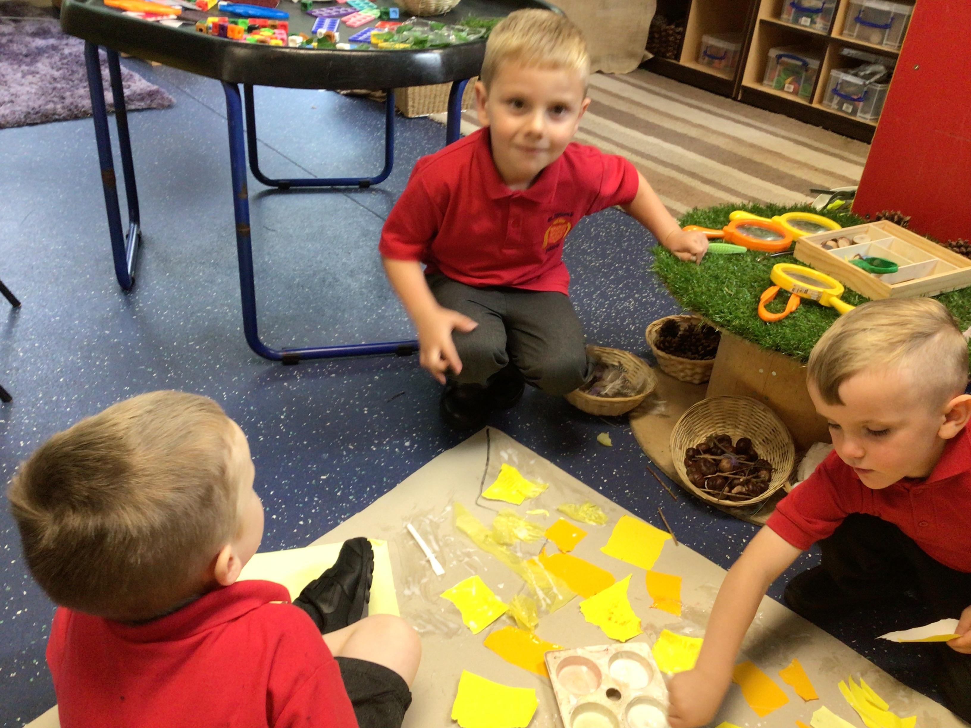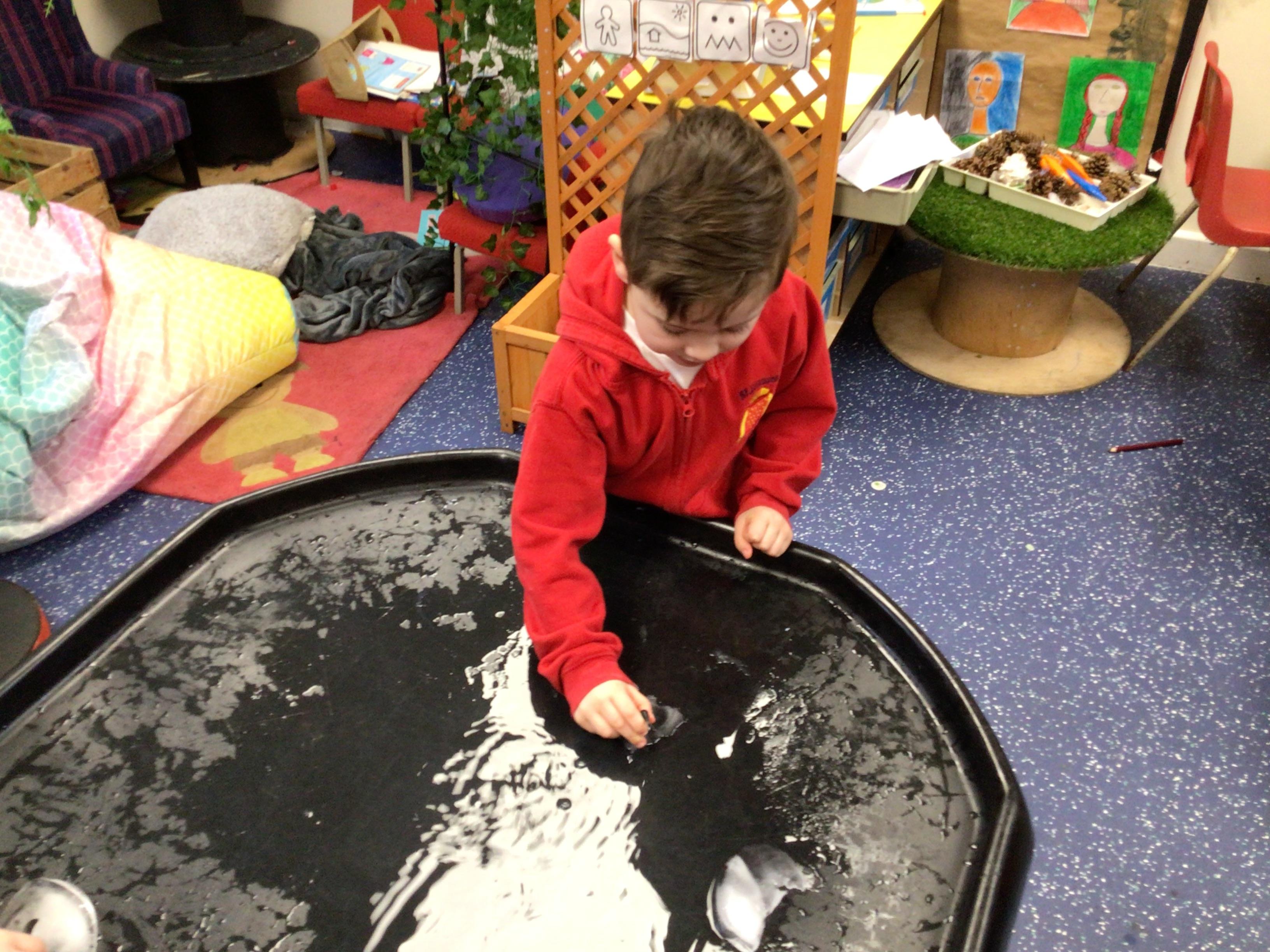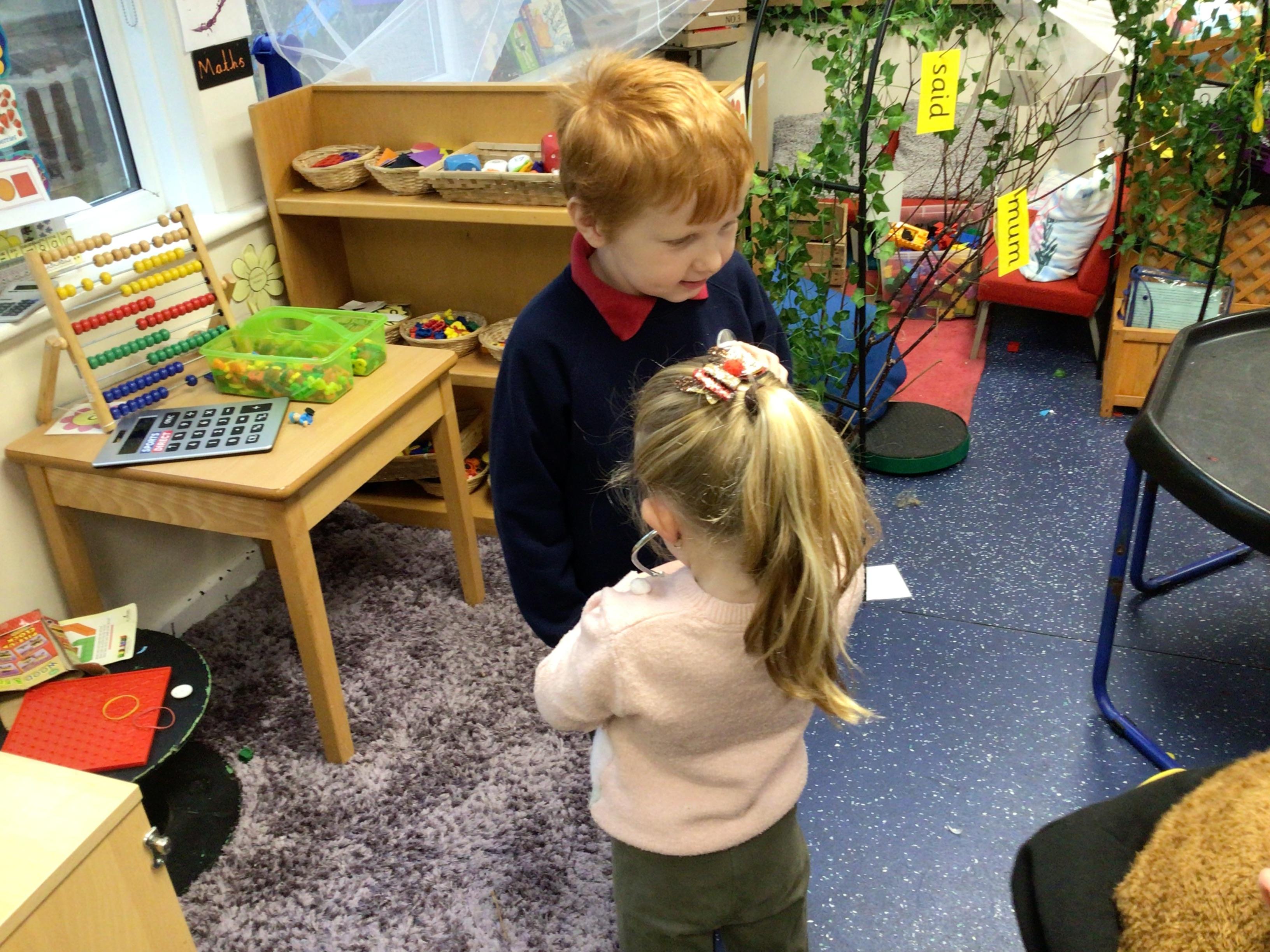 In maths, the children were great at using the Numicon to make teen numbers. The children also enjoyed exploring the maths glitter tray together and spending time in the continuous provision.