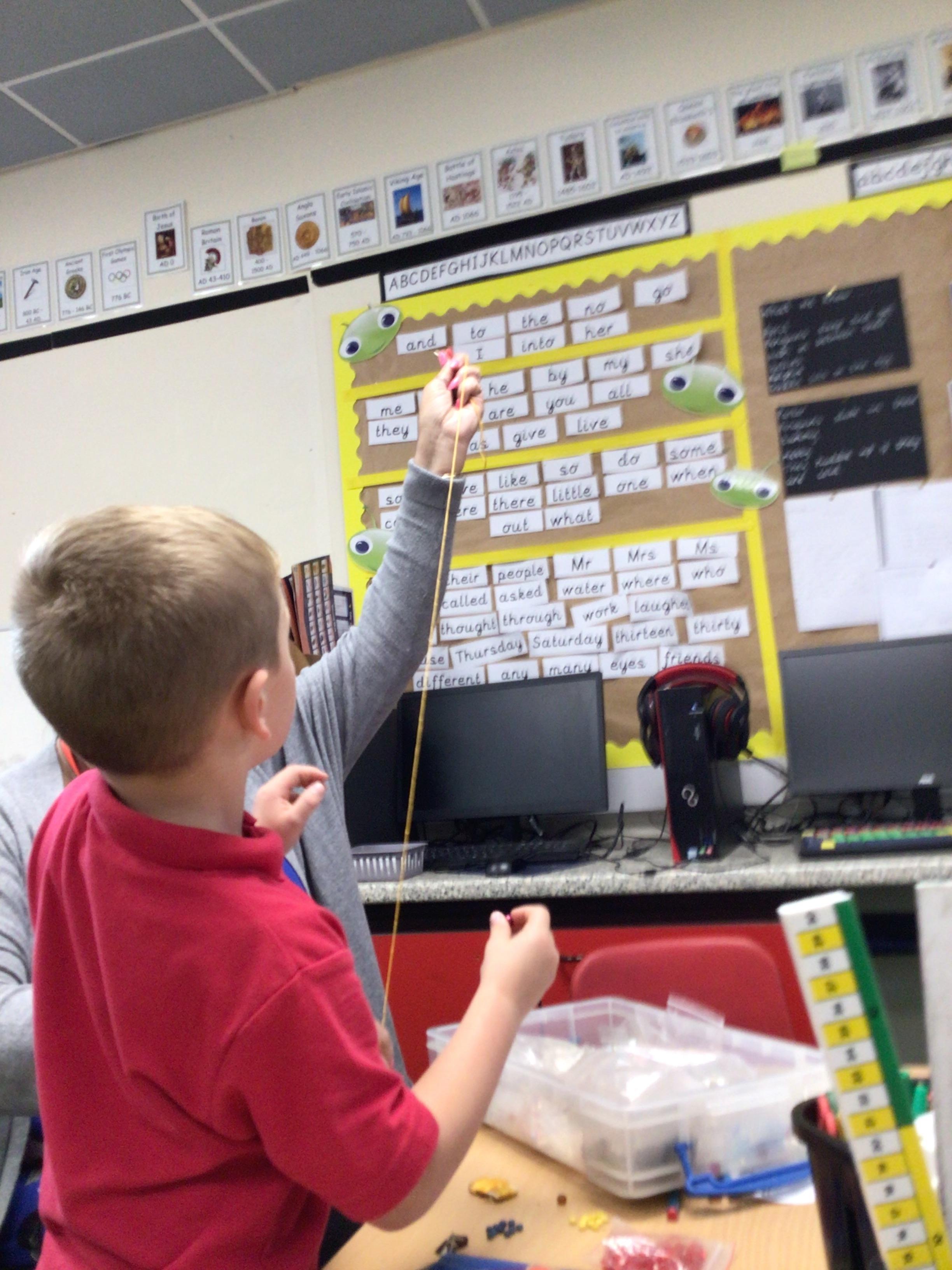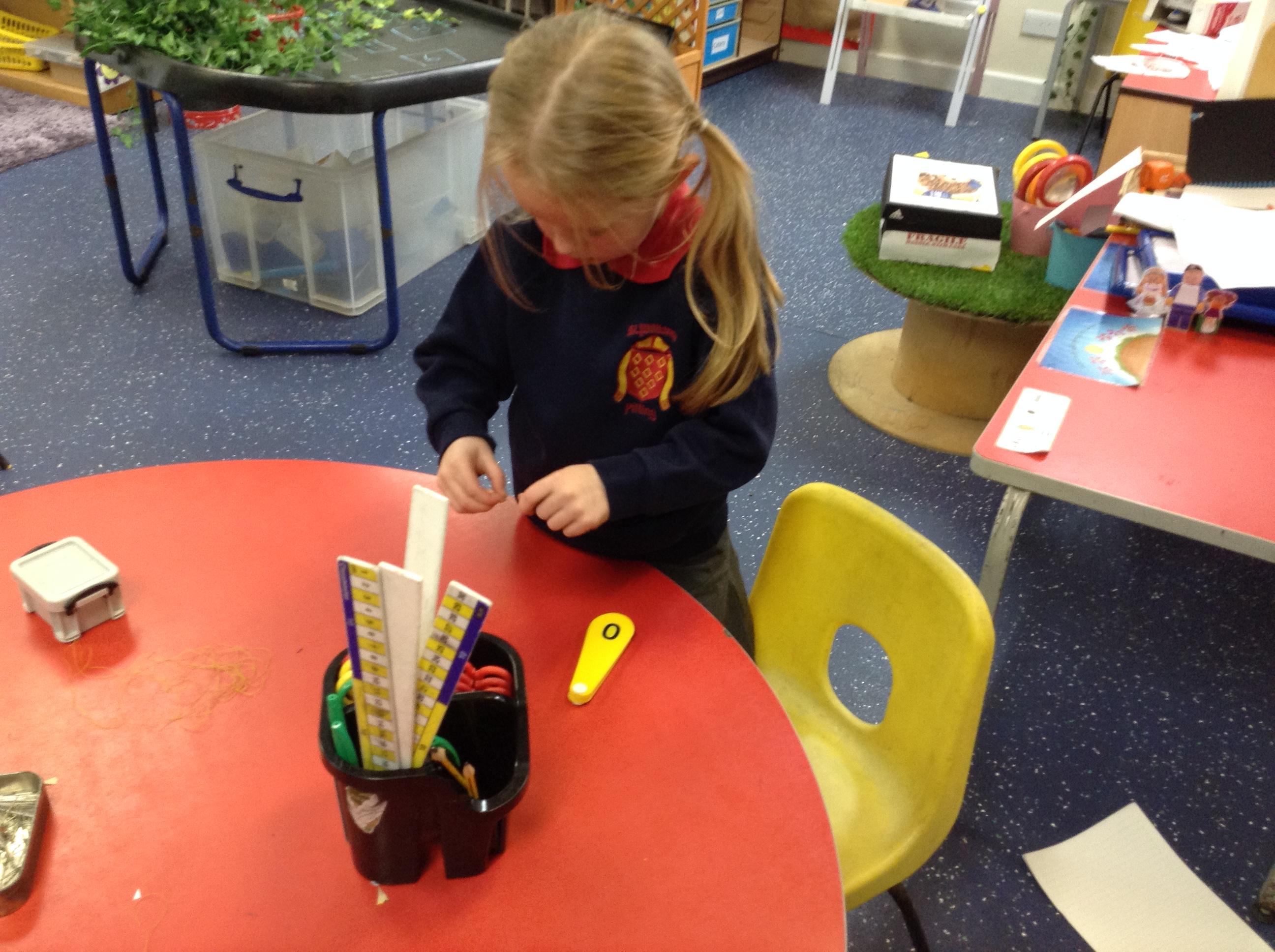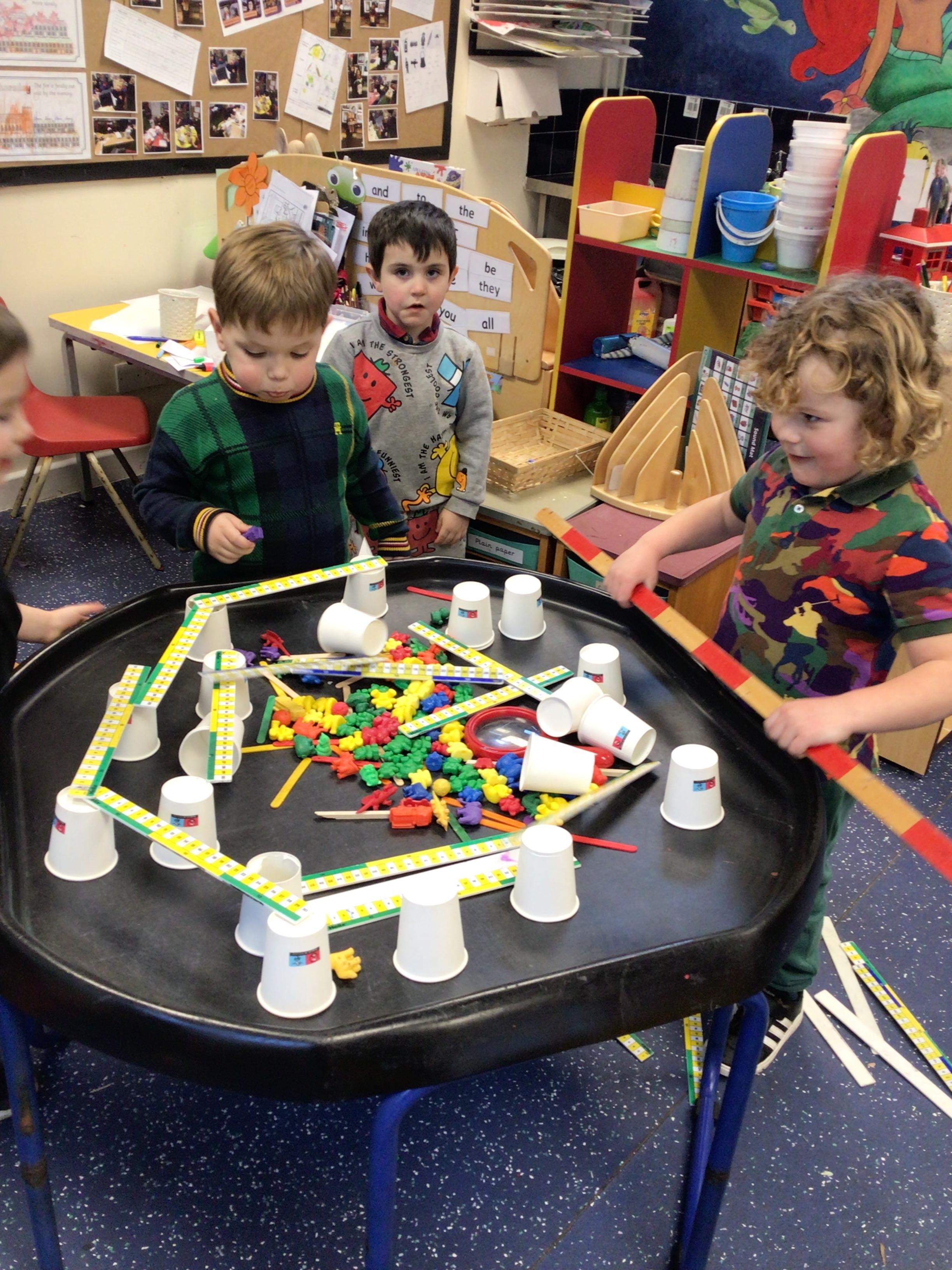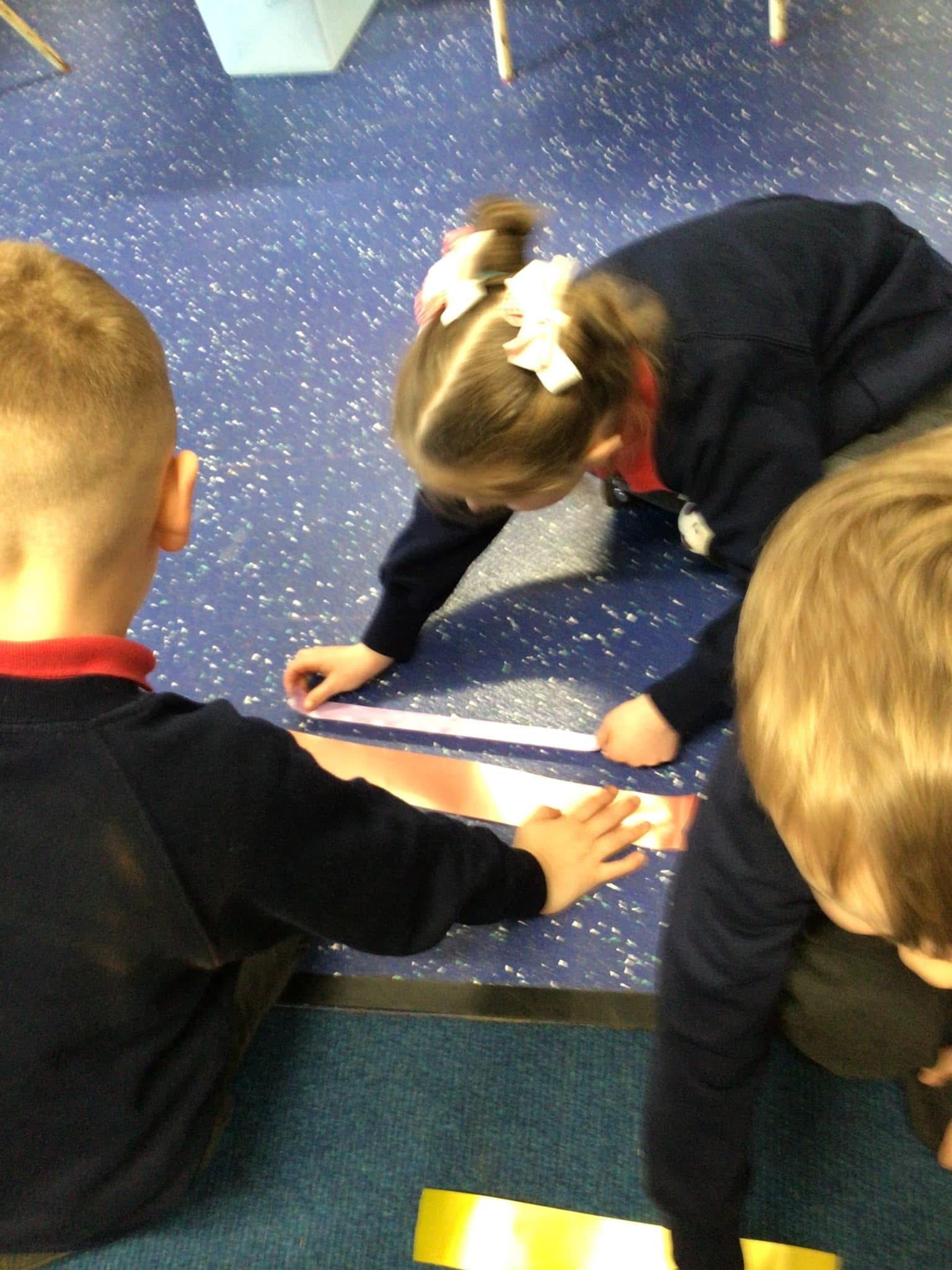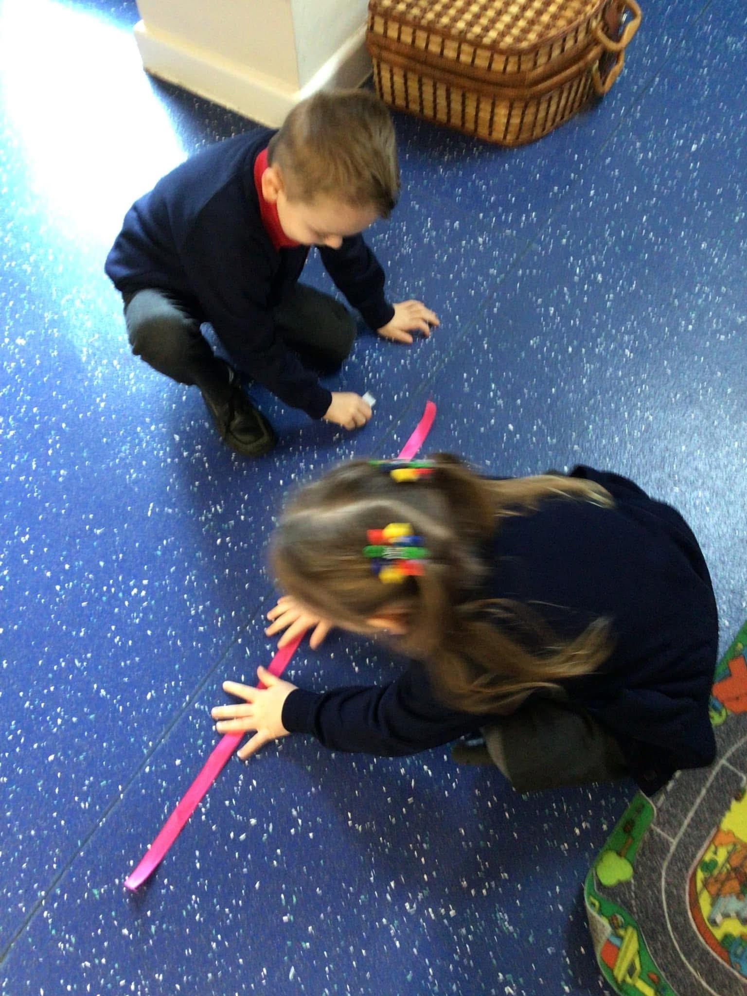 In maths we had fun throwing bean bags outside, seeing who could throw the furthest. The children also enjoyed comparing length using ribbon.