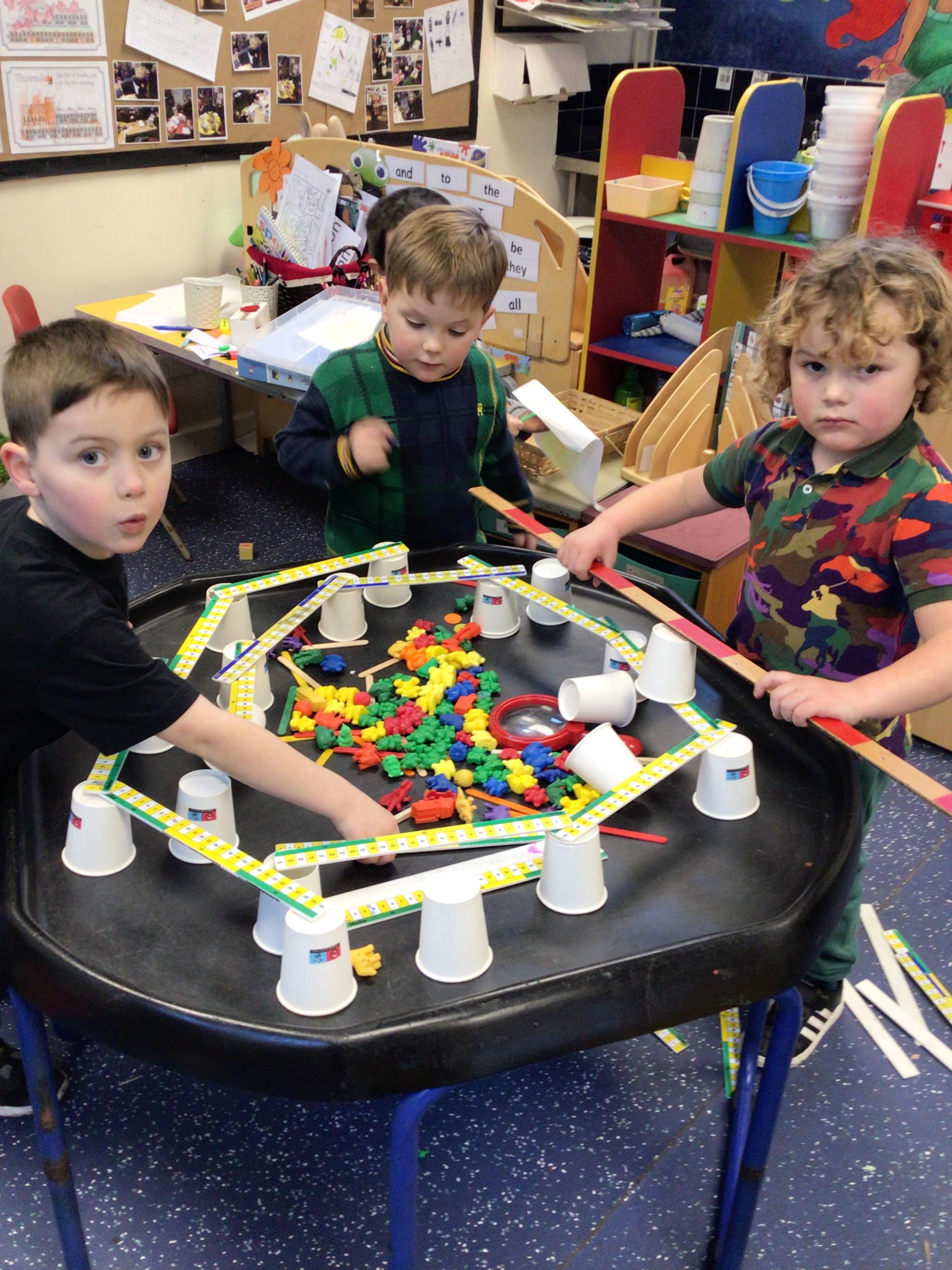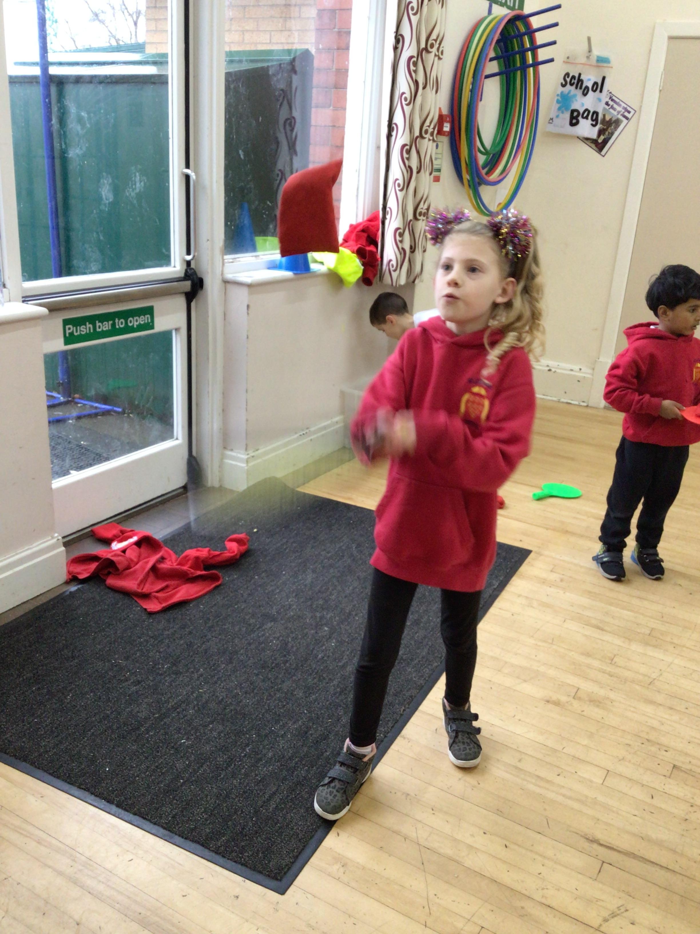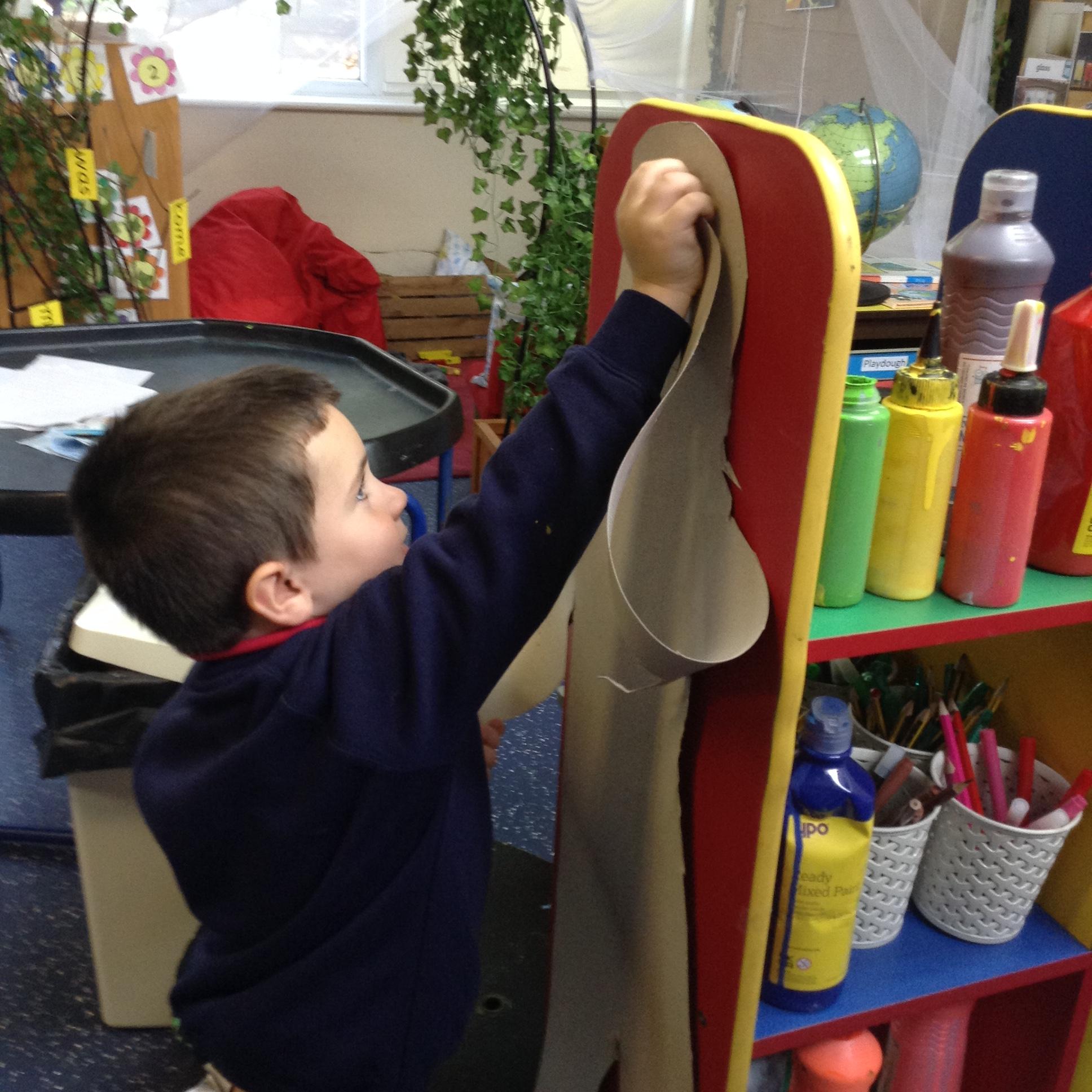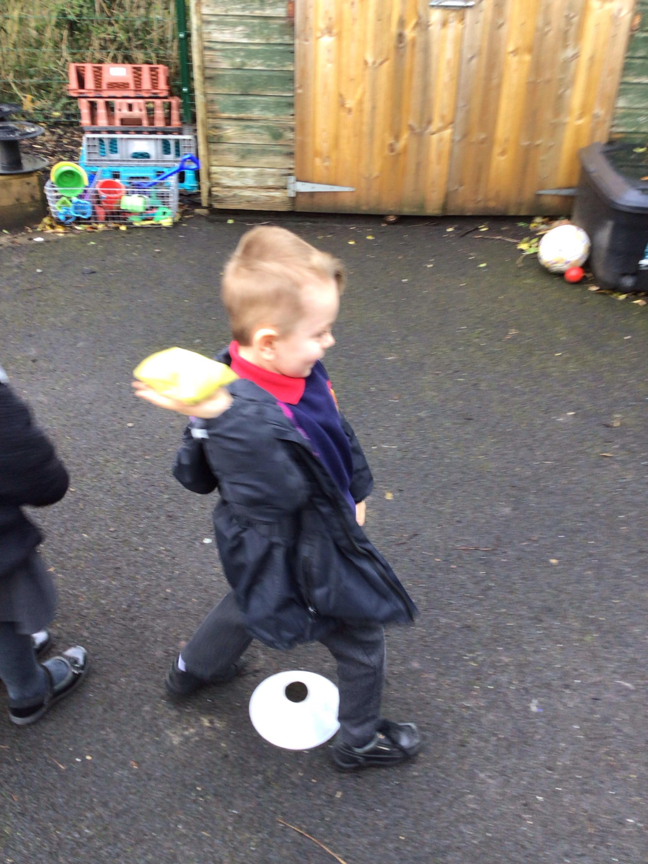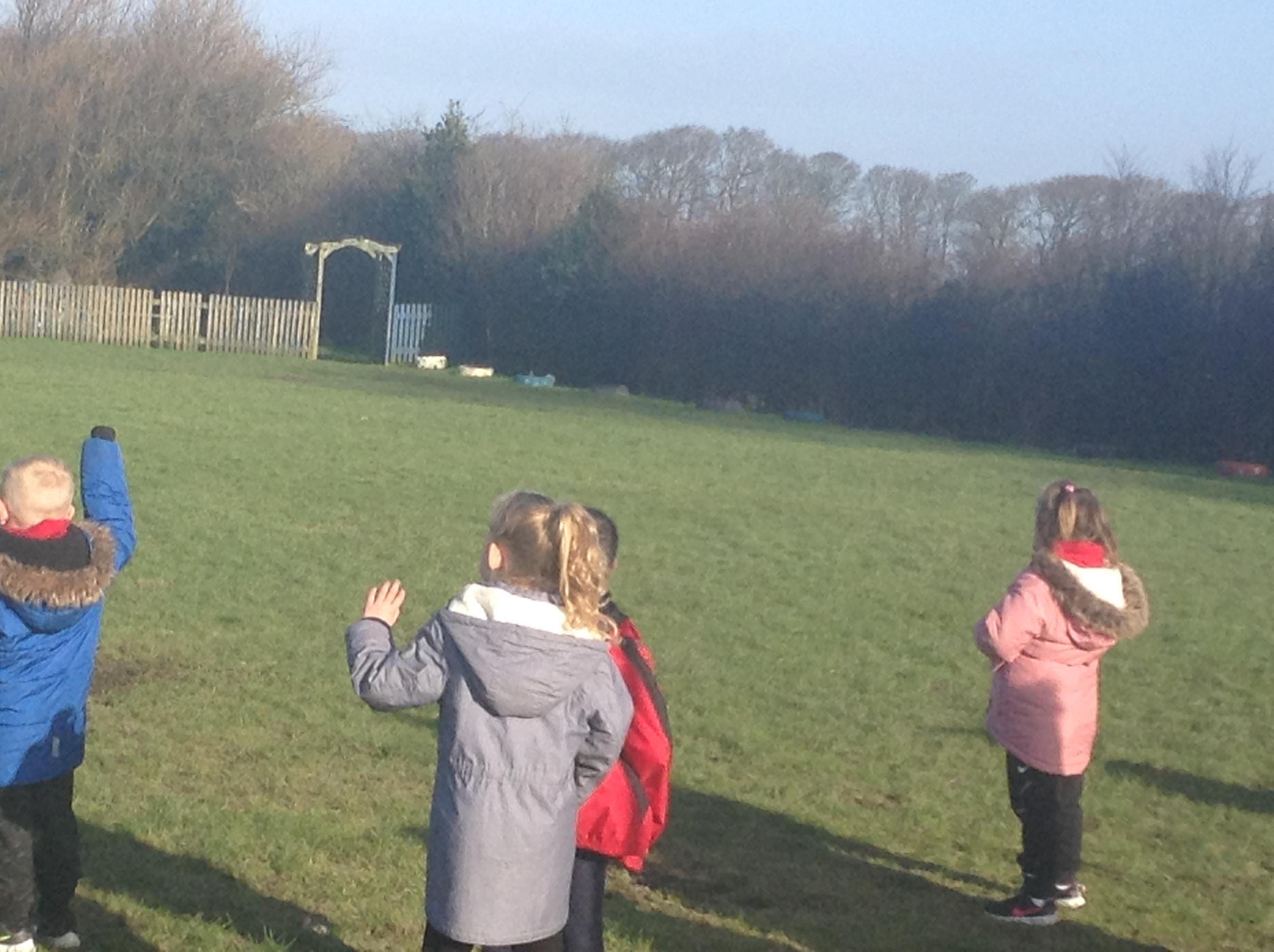 In maths we had fun throwing bean bags outside, seeing who could throw the furthest. The children also enjoyed comparing length using ribbon.