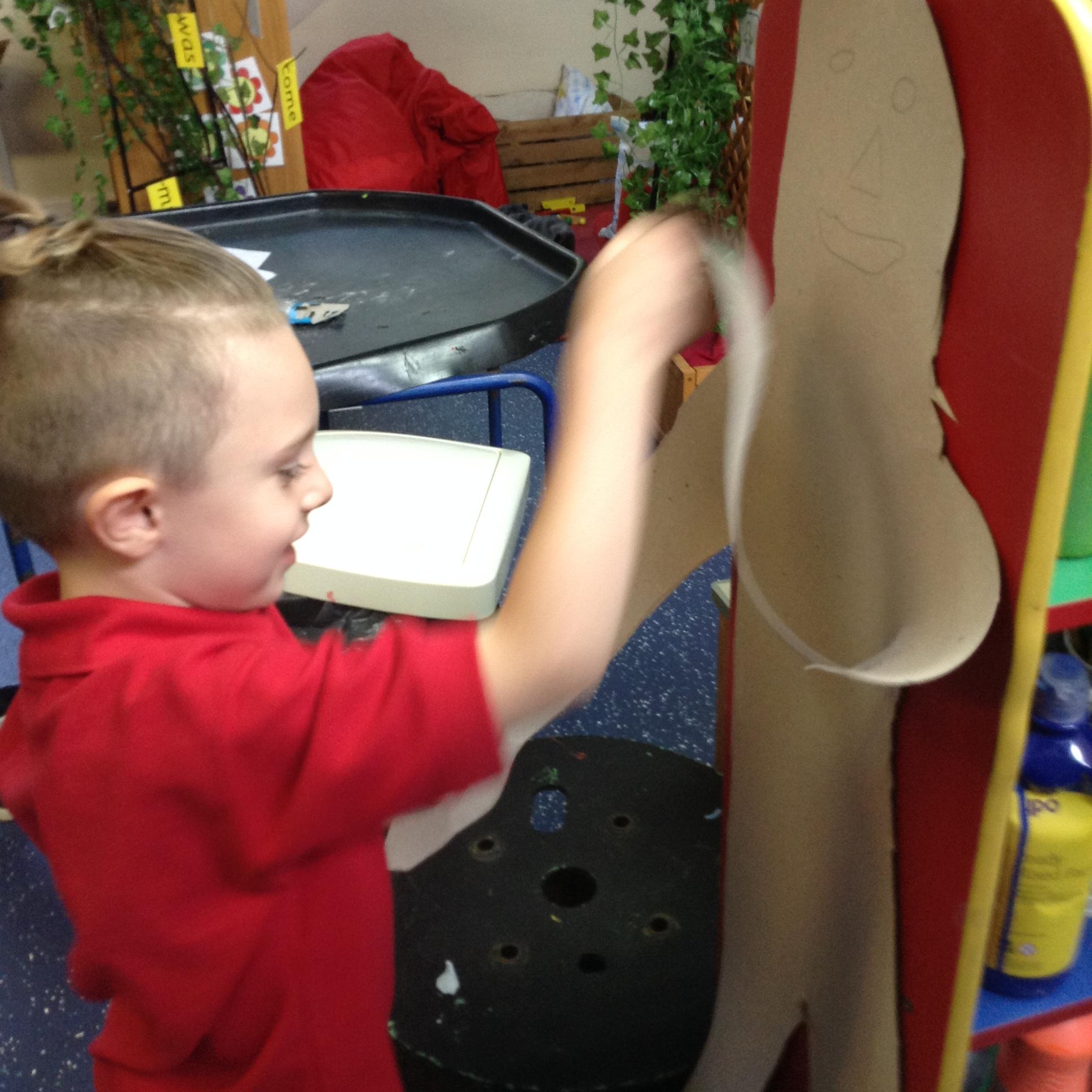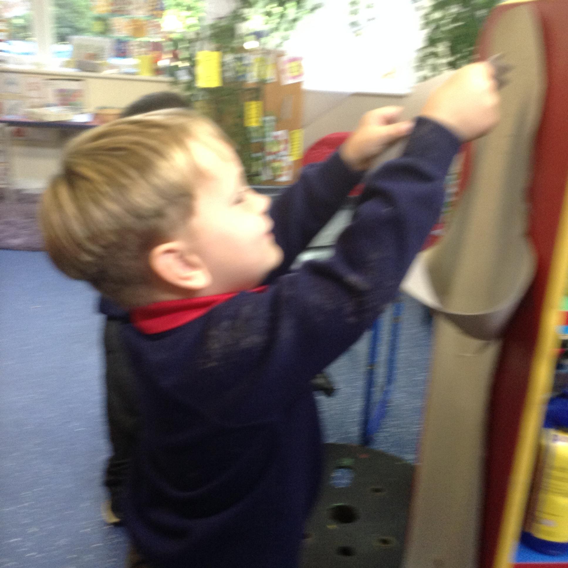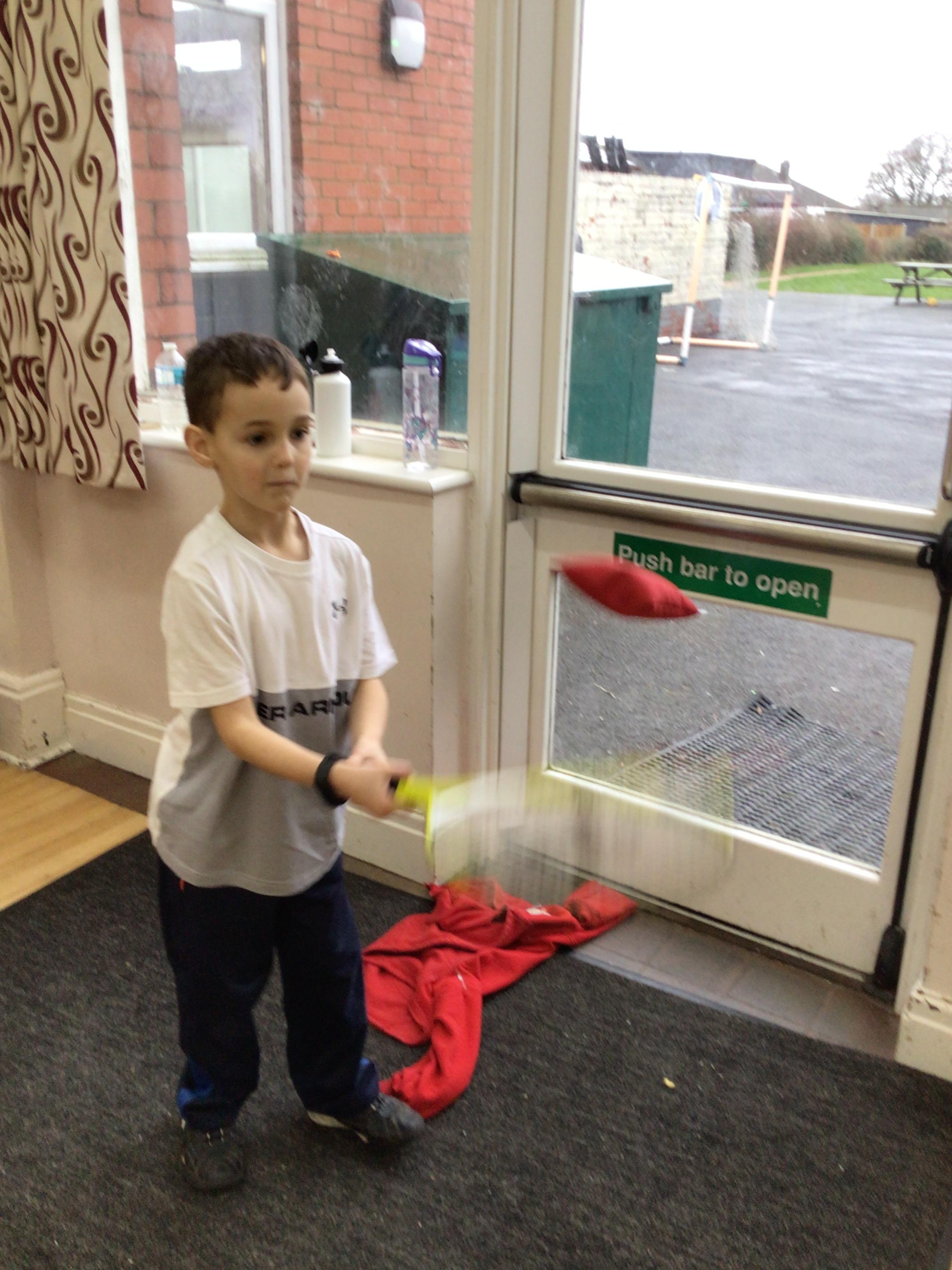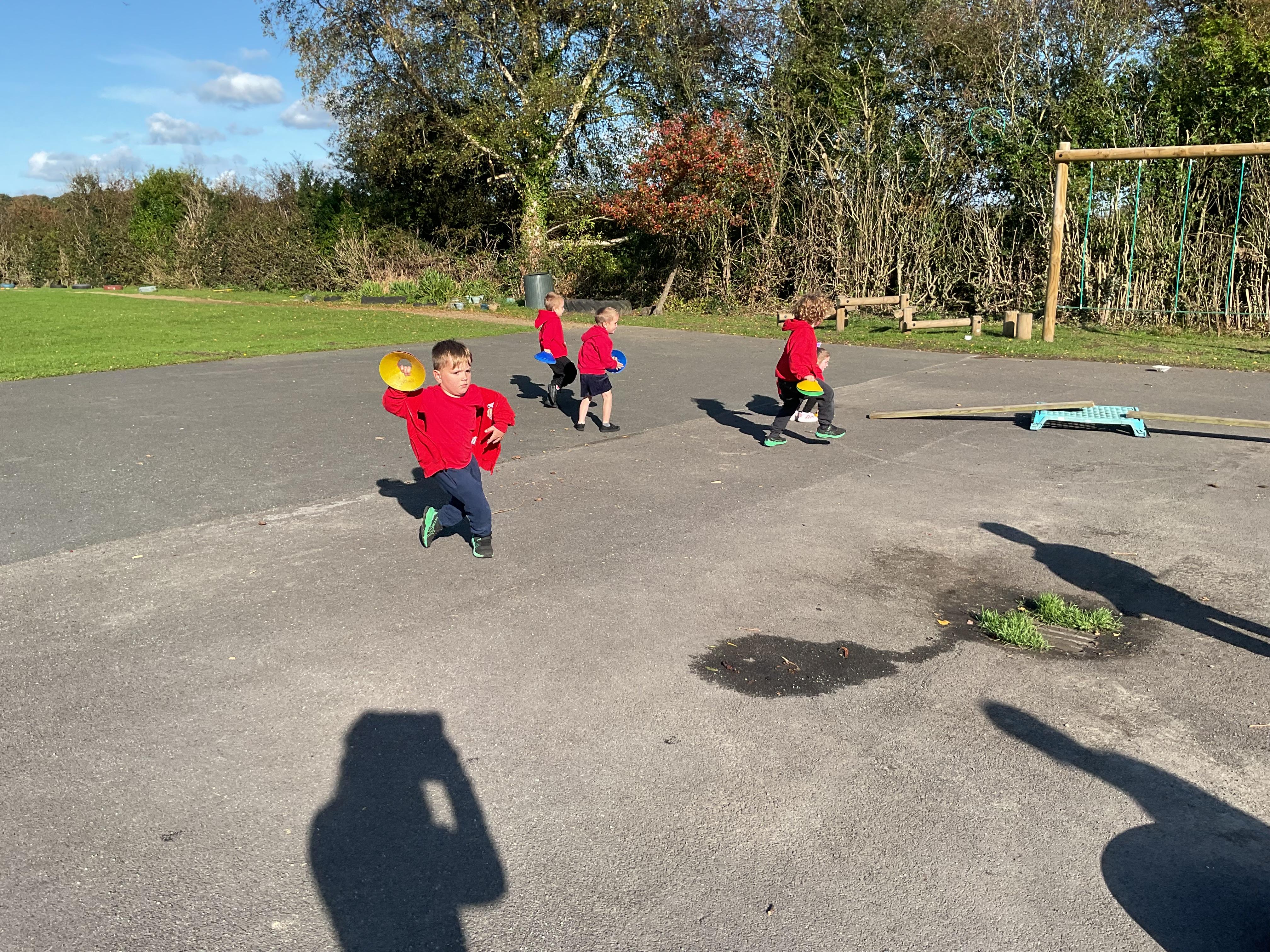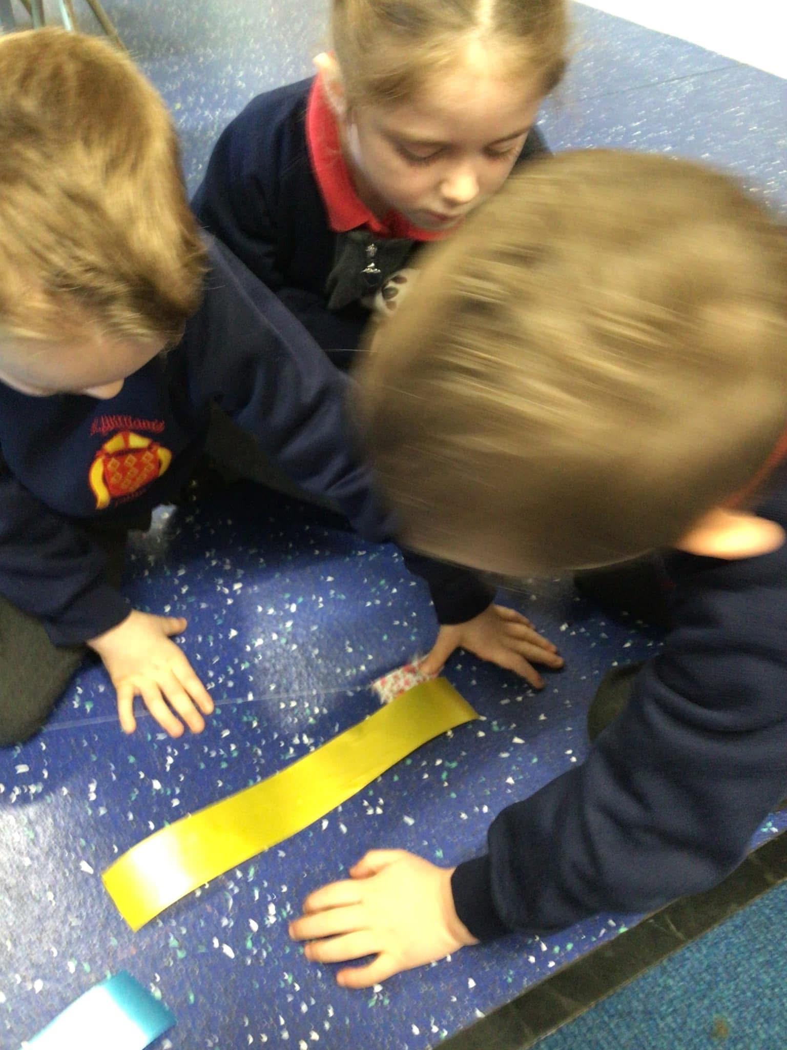 In maths we had fun throwing bean bags outside, seeing who could throw the furthest. The children also enjoyed comparing length using ribbon.