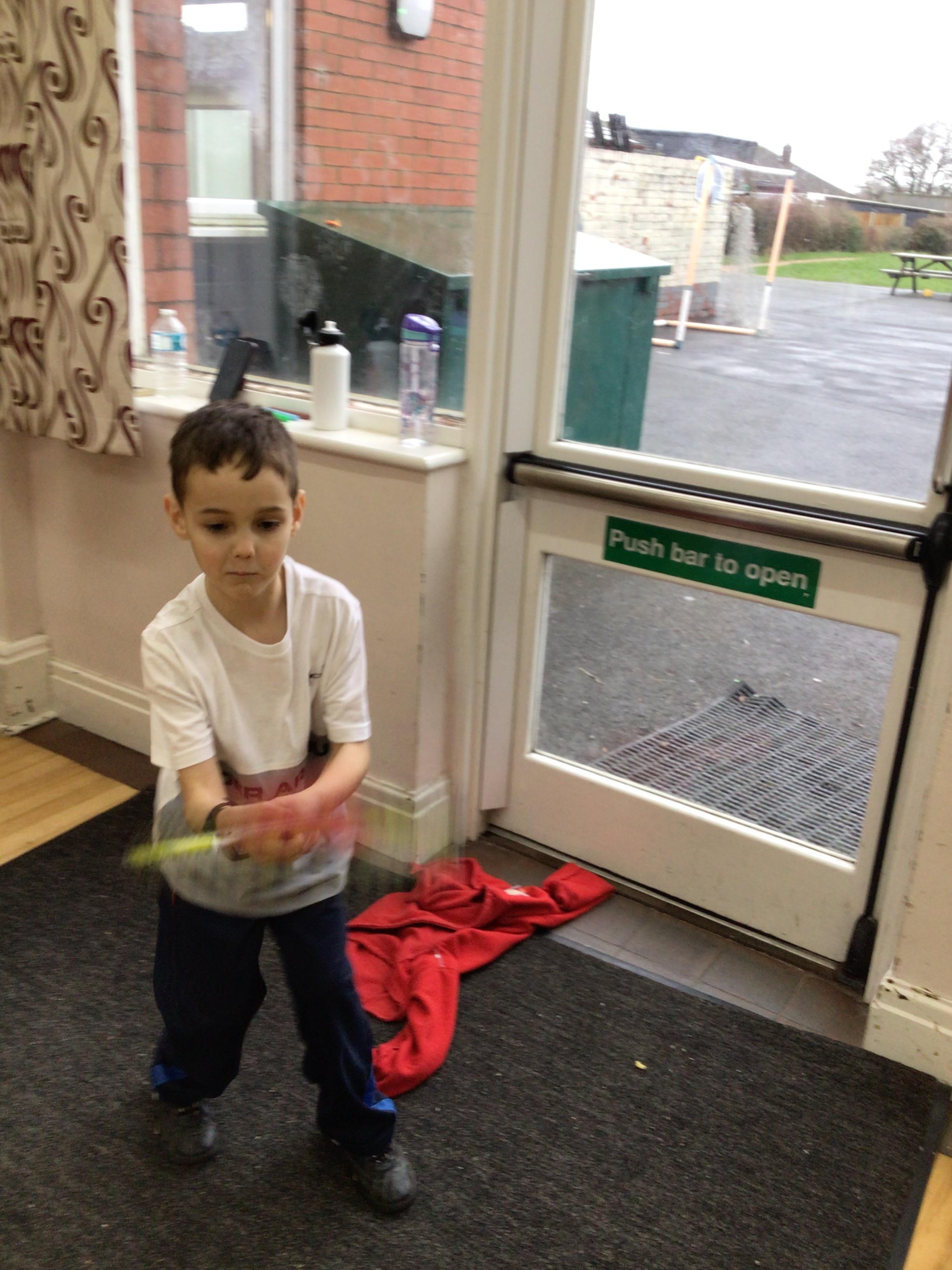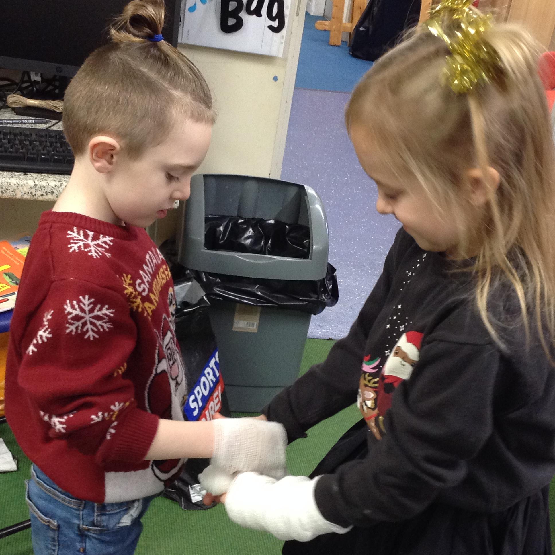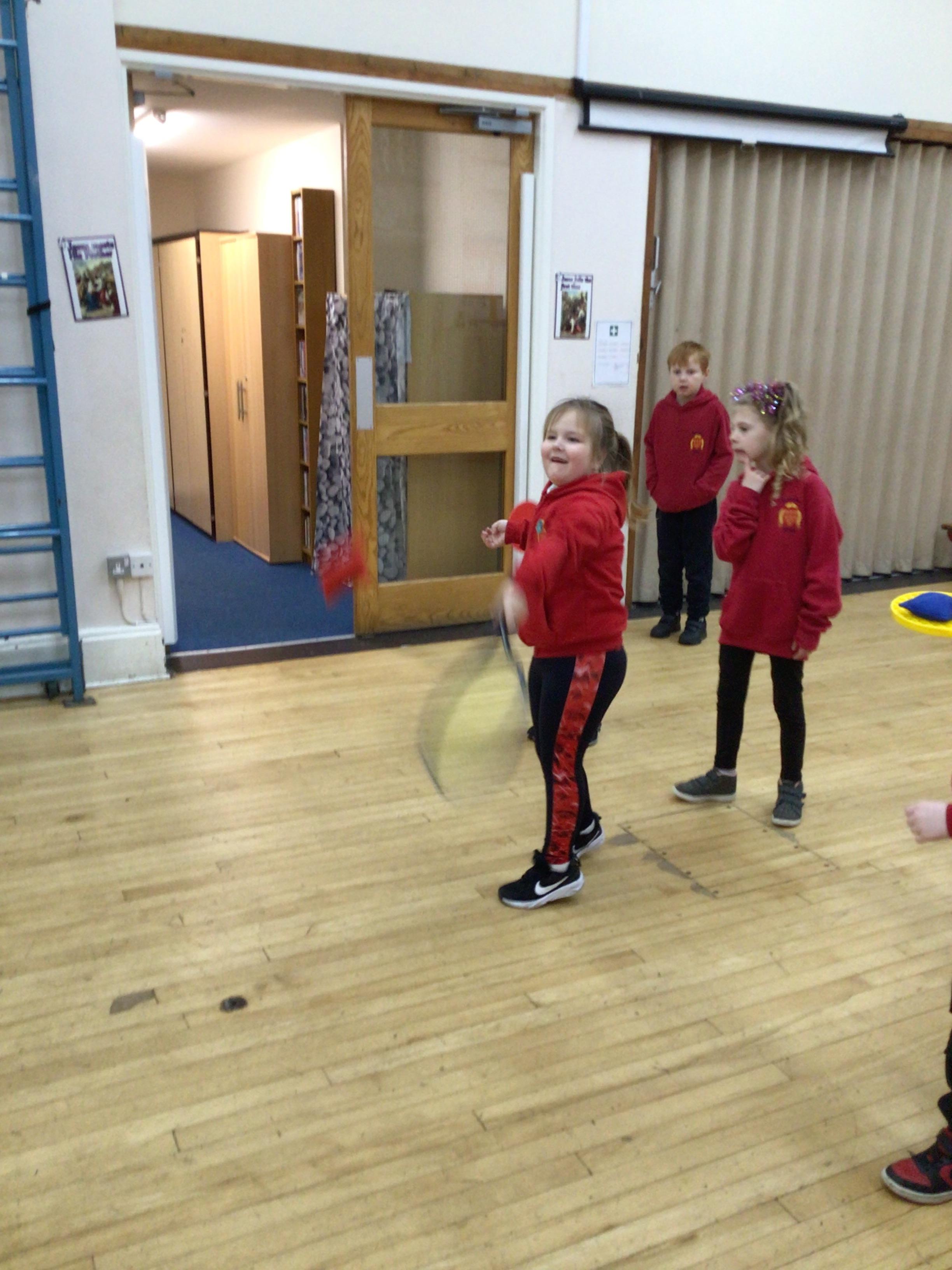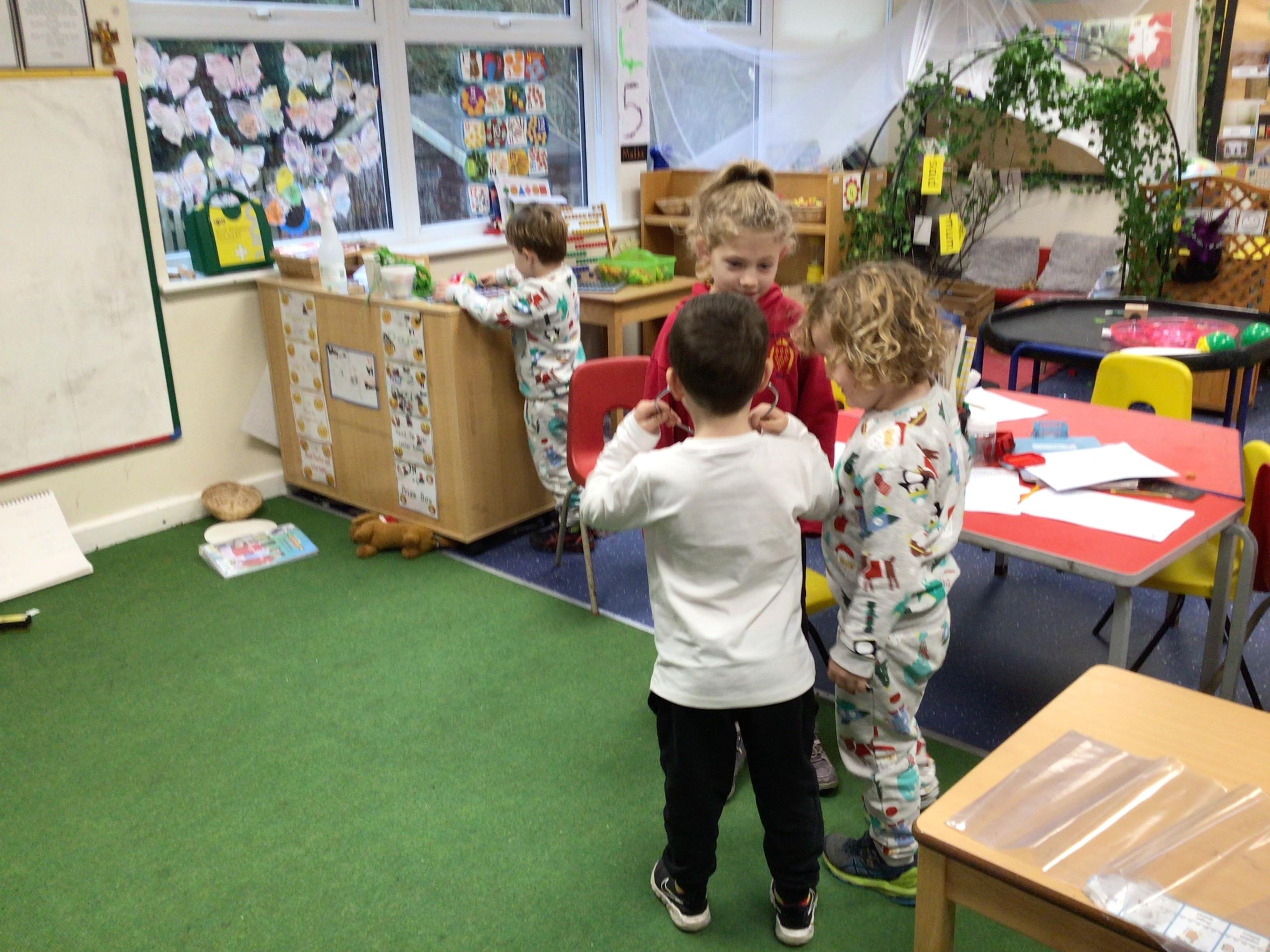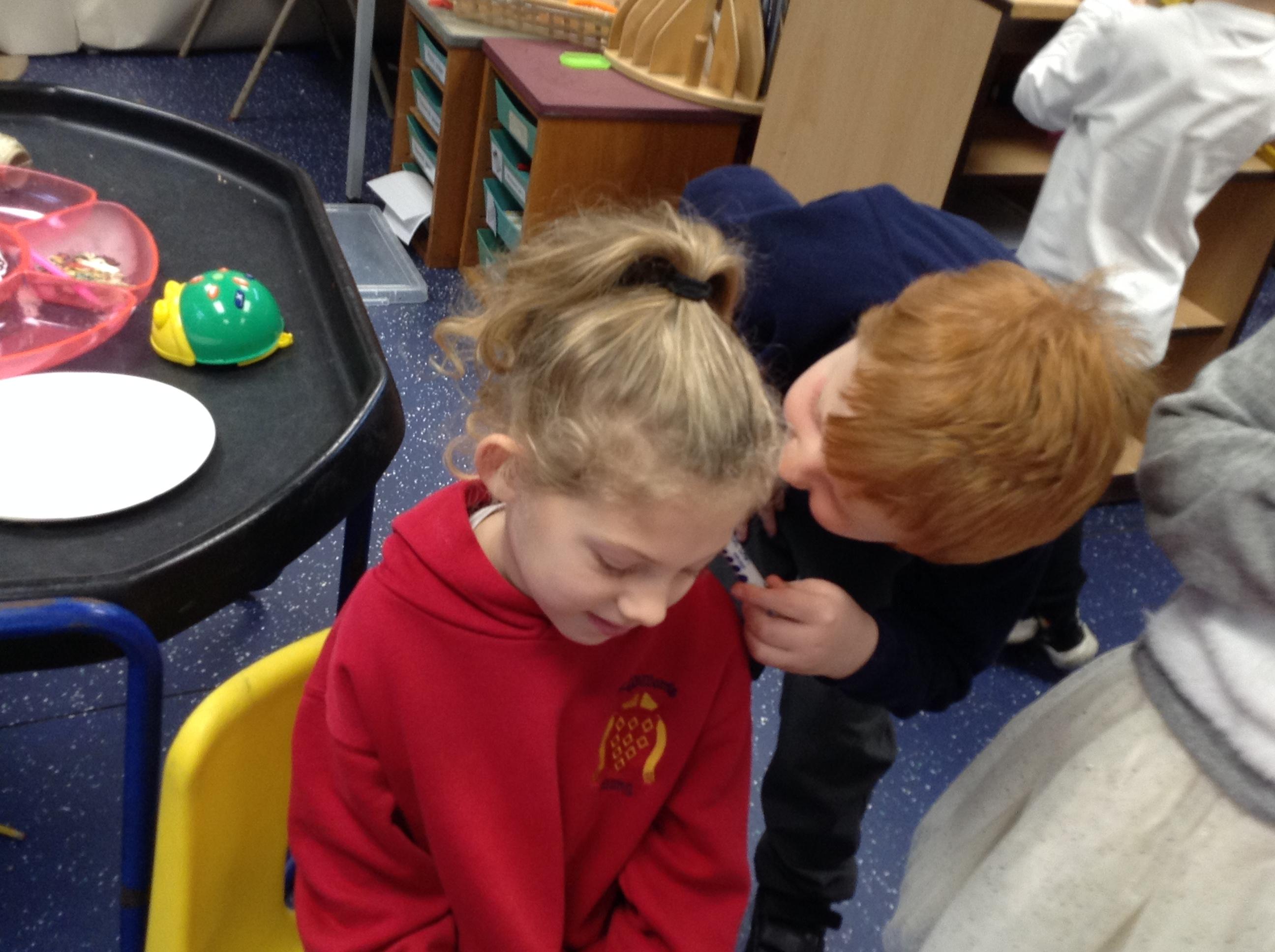 In maths we had fun throwing bean bags outside, seeing who could throw the furthest. The children also enjoyed comparing length using ribbon.