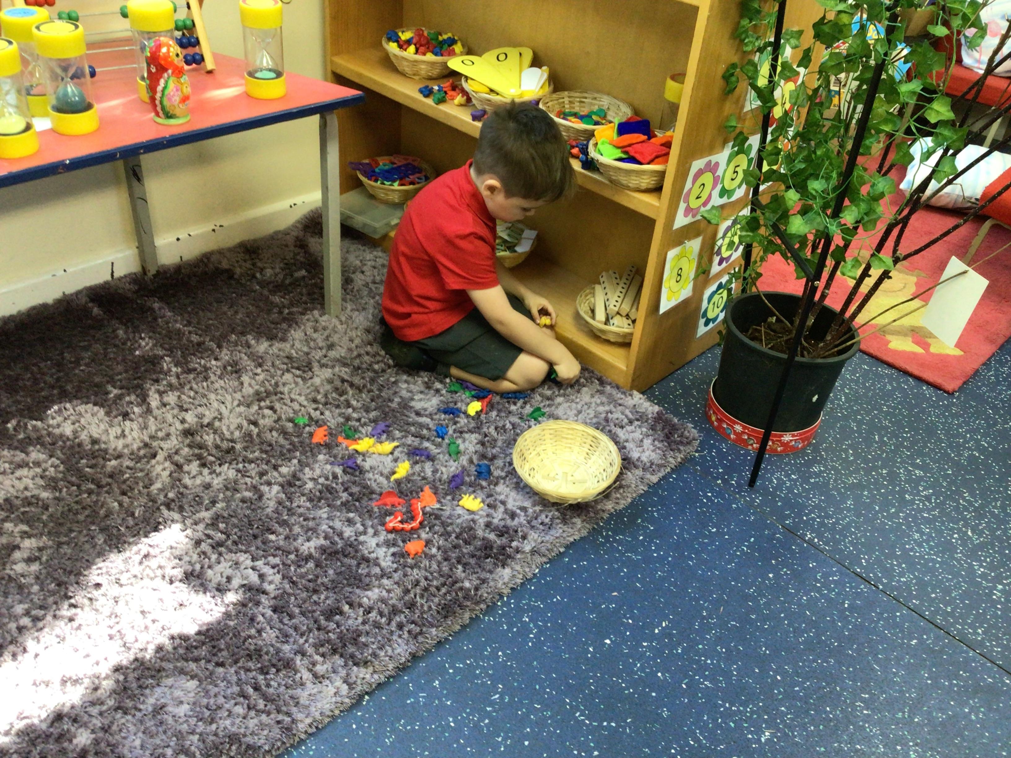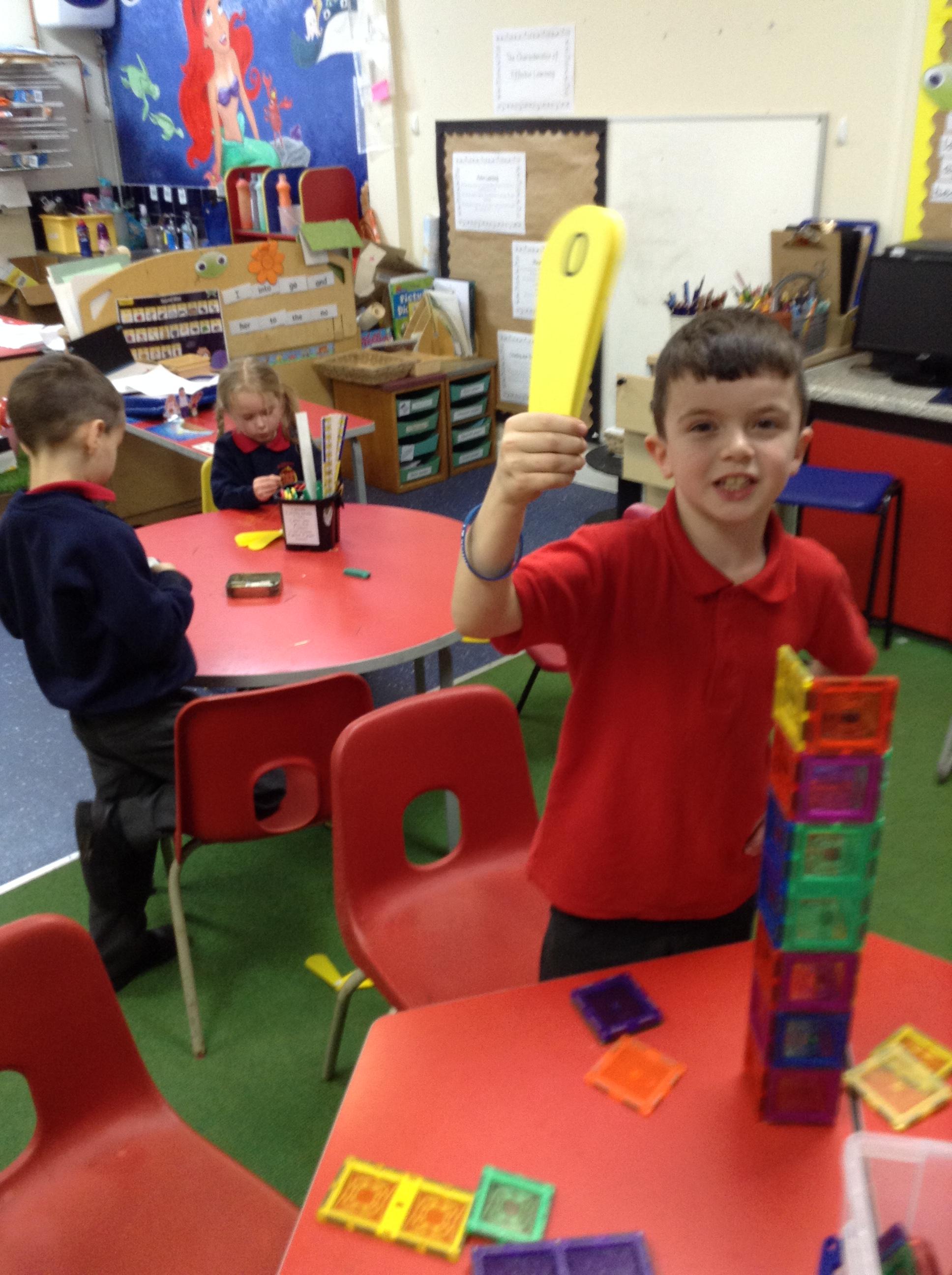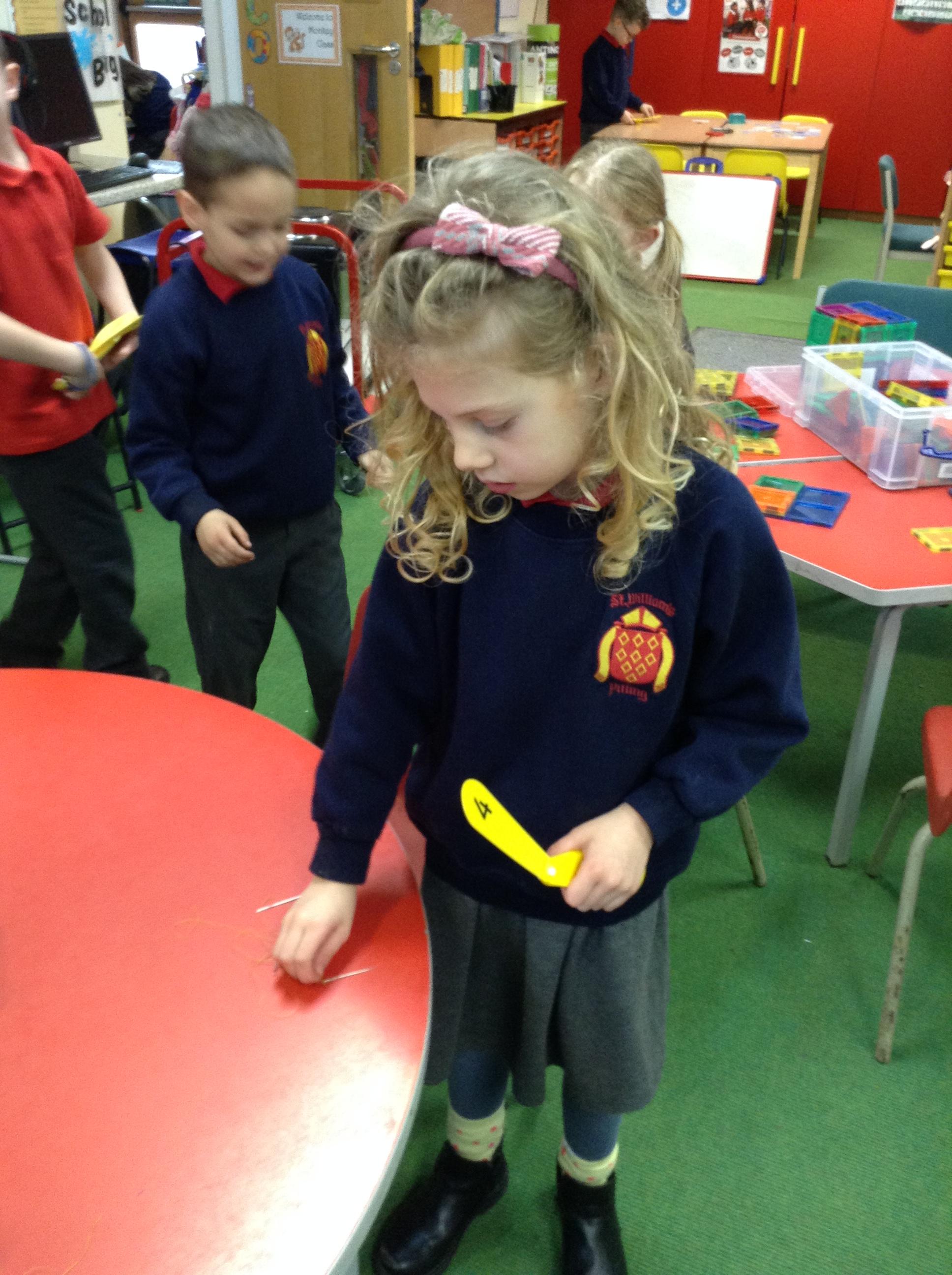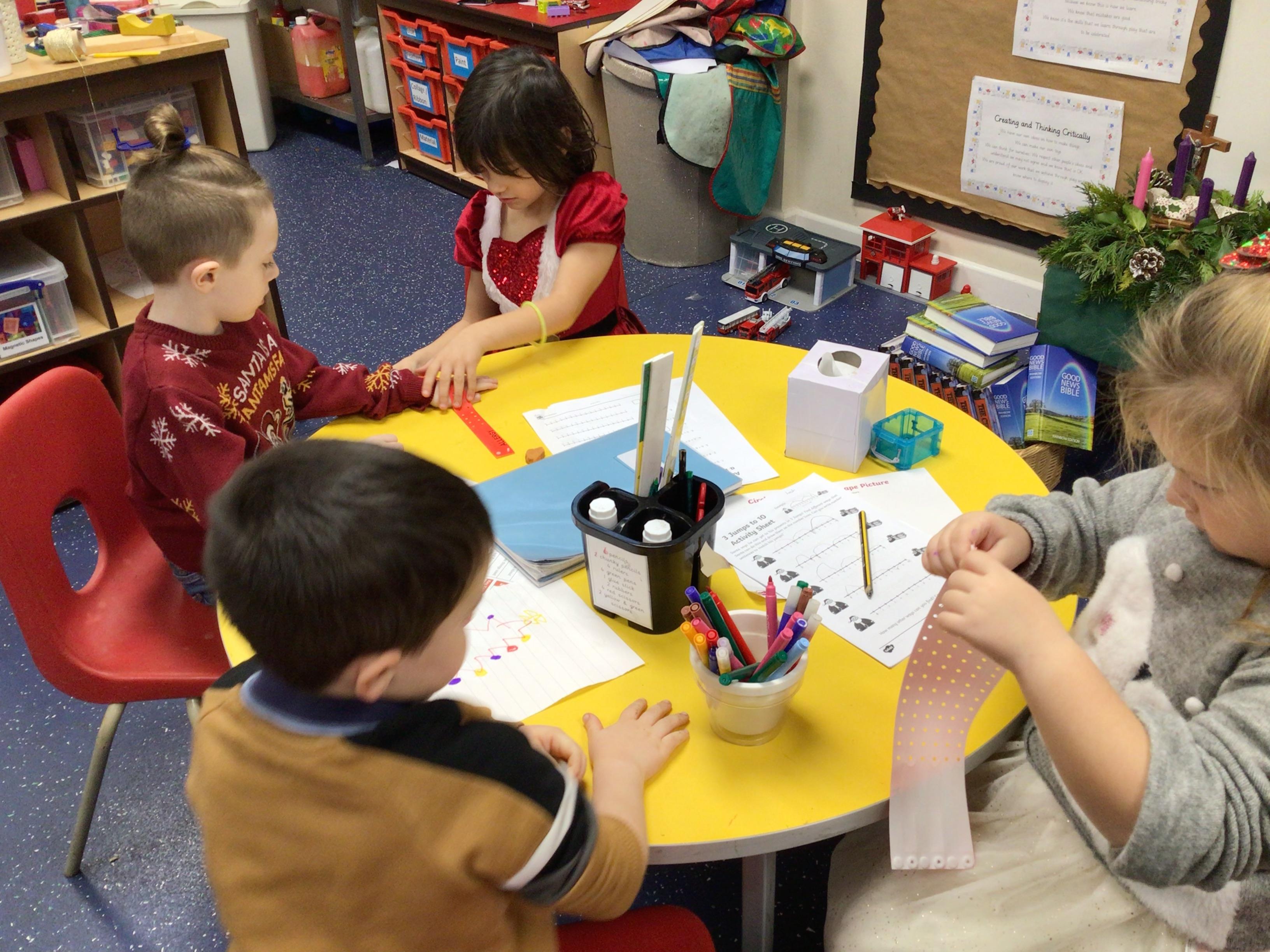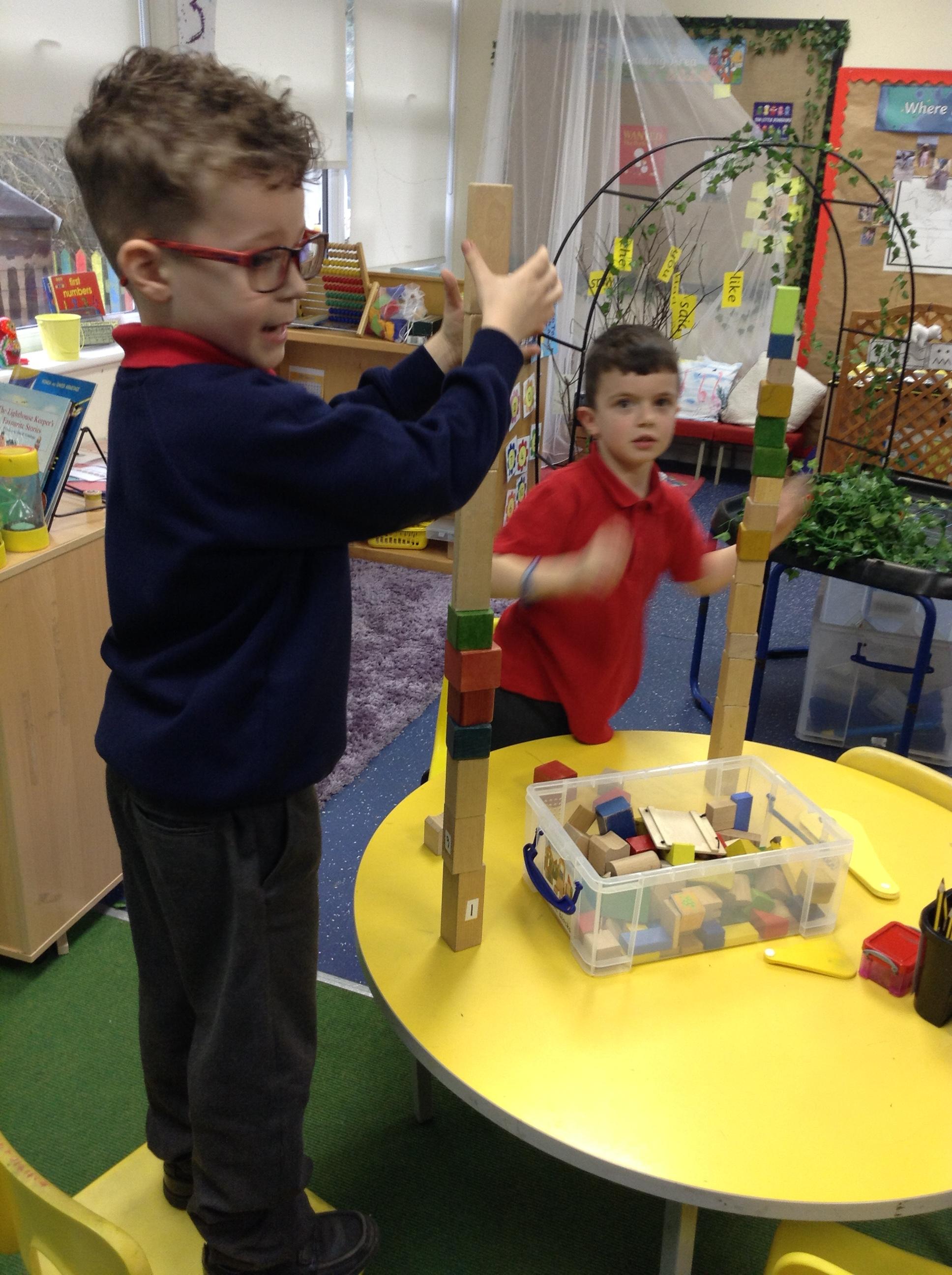 In maths we had fun throwing bean bags outside, seeing who could throw the furthest. The children also enjoyed comparing length using ribbon.