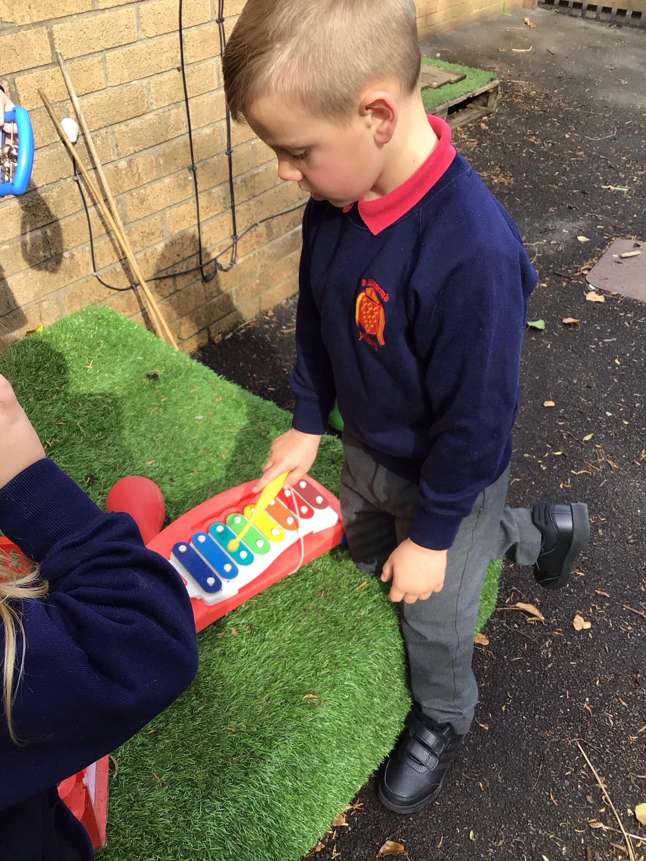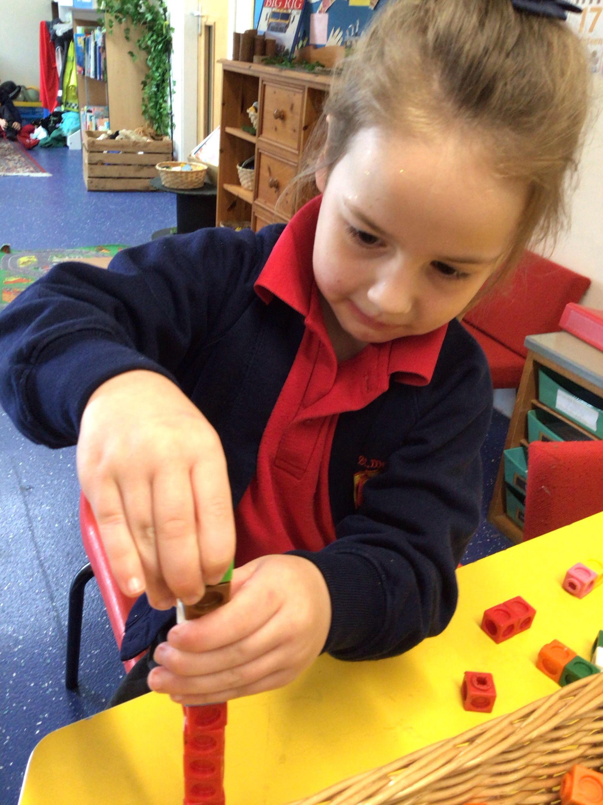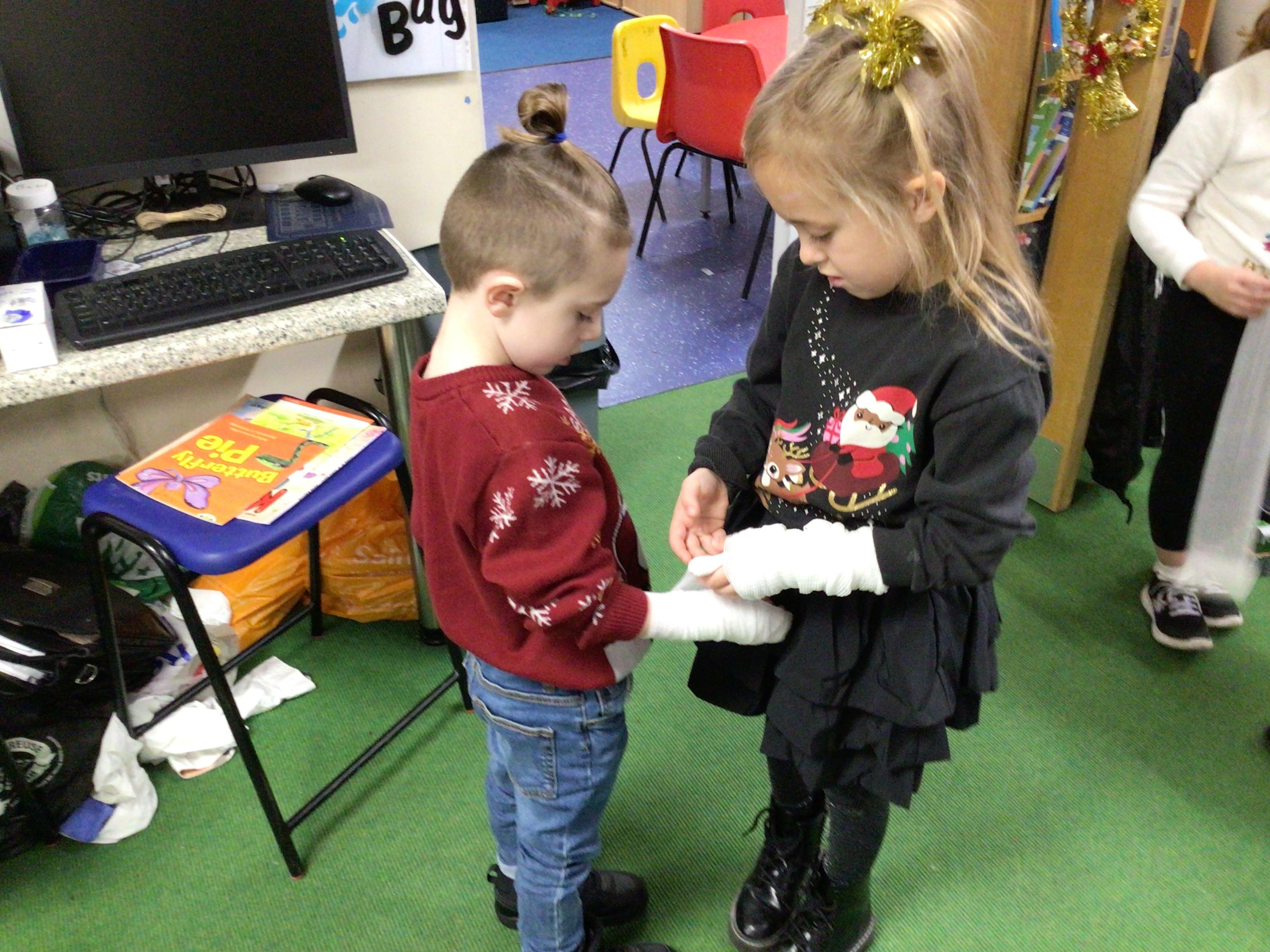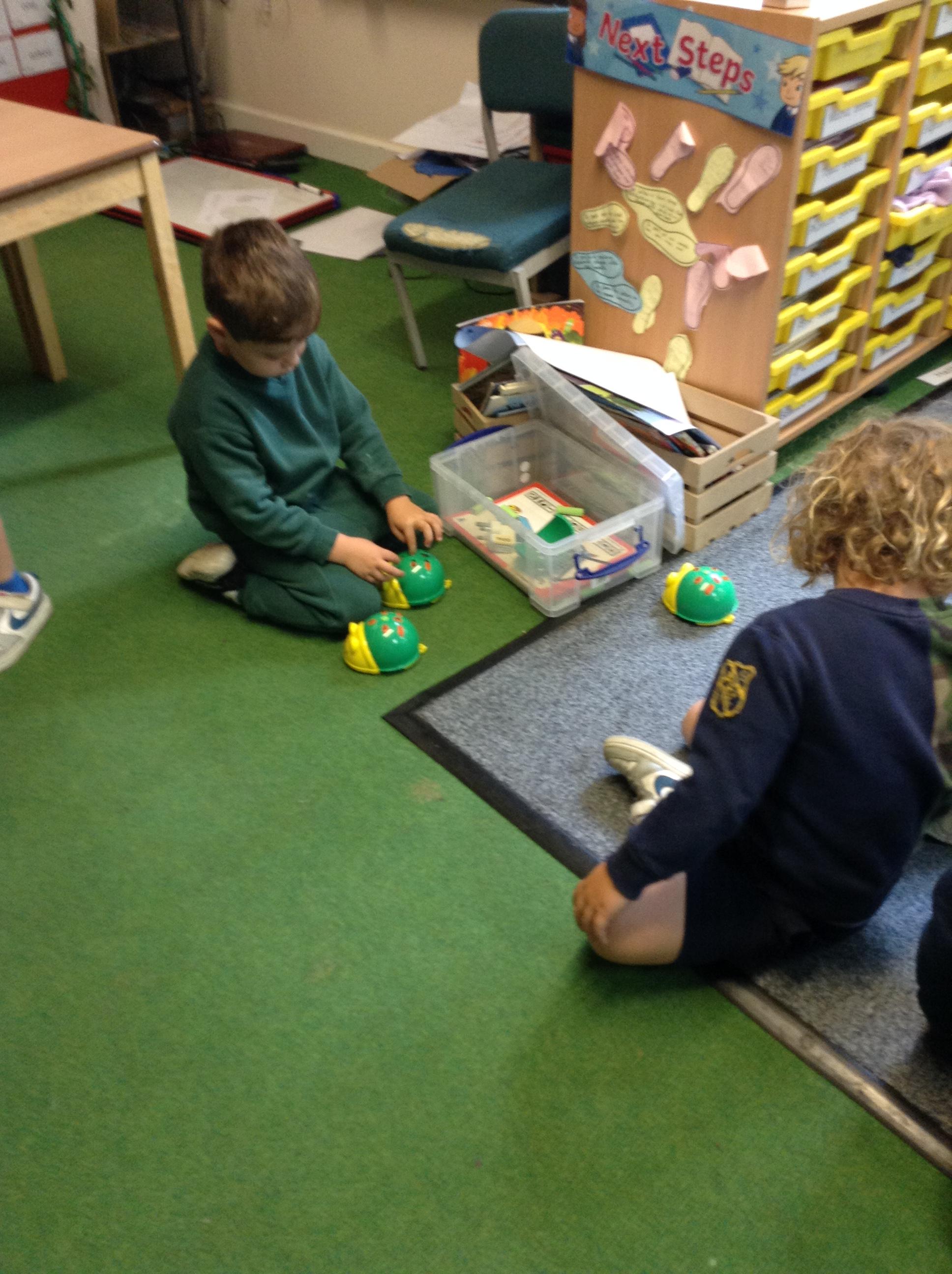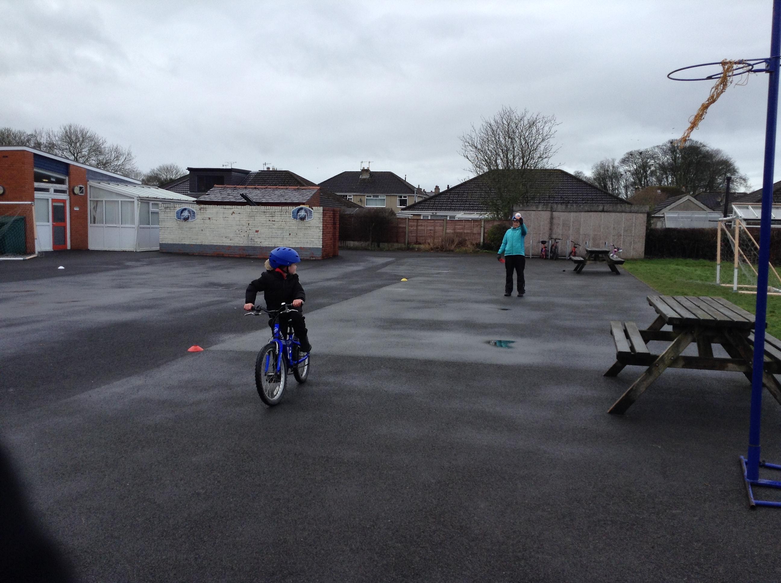 In maths we had fun throwing bean bags outside, seeing who could throw the furthest. The children also enjoyed comparing length using ribbon.
