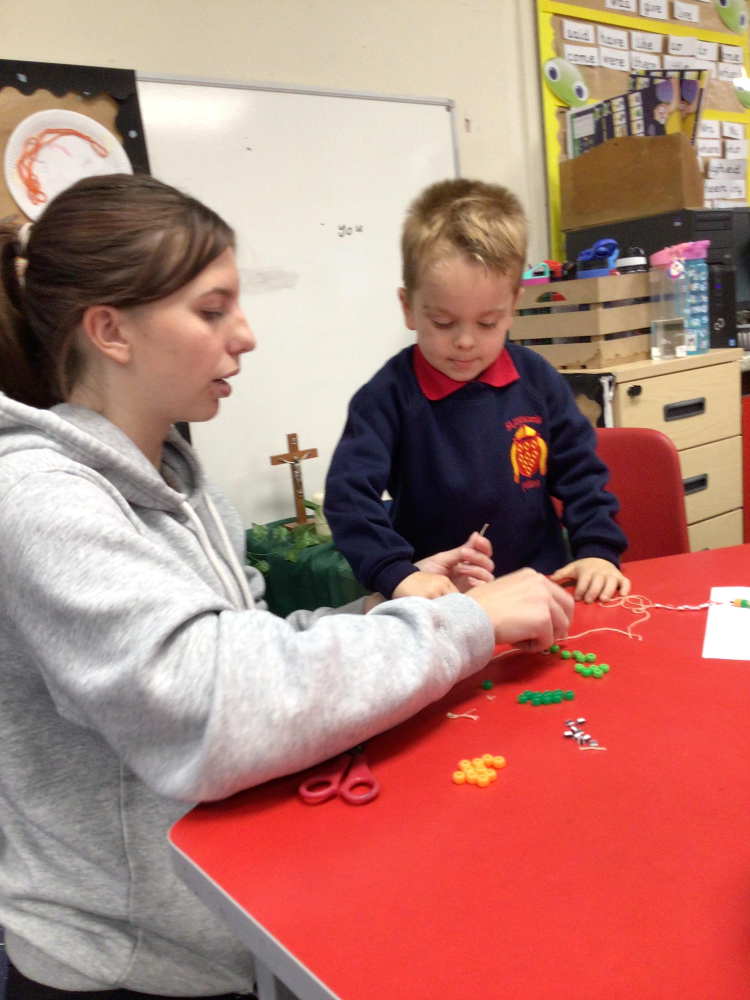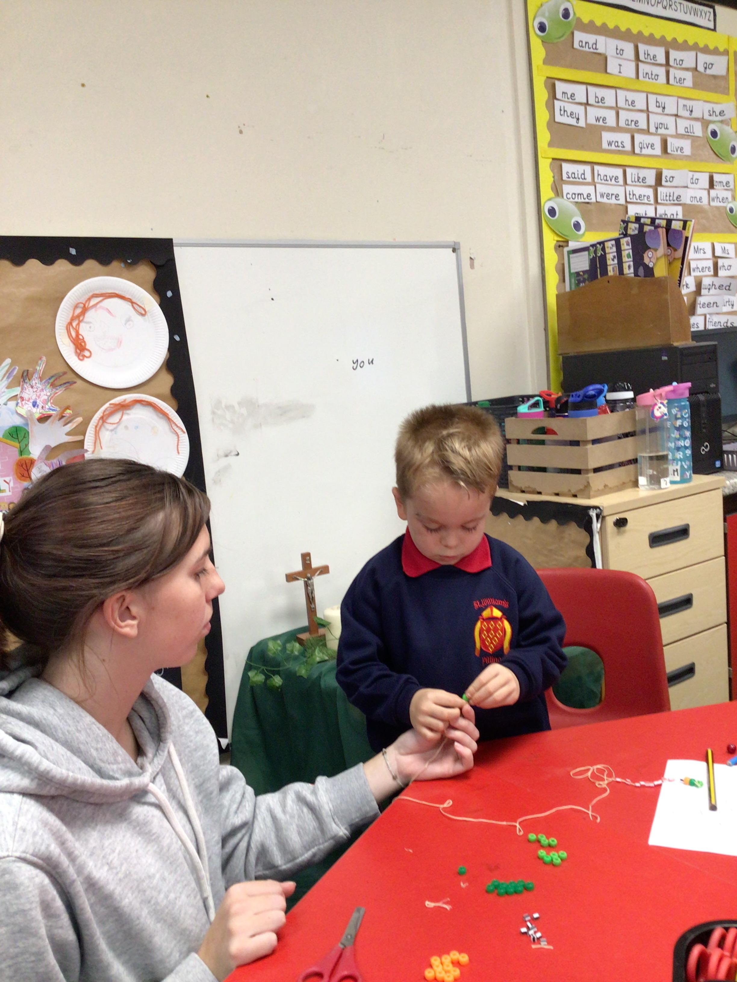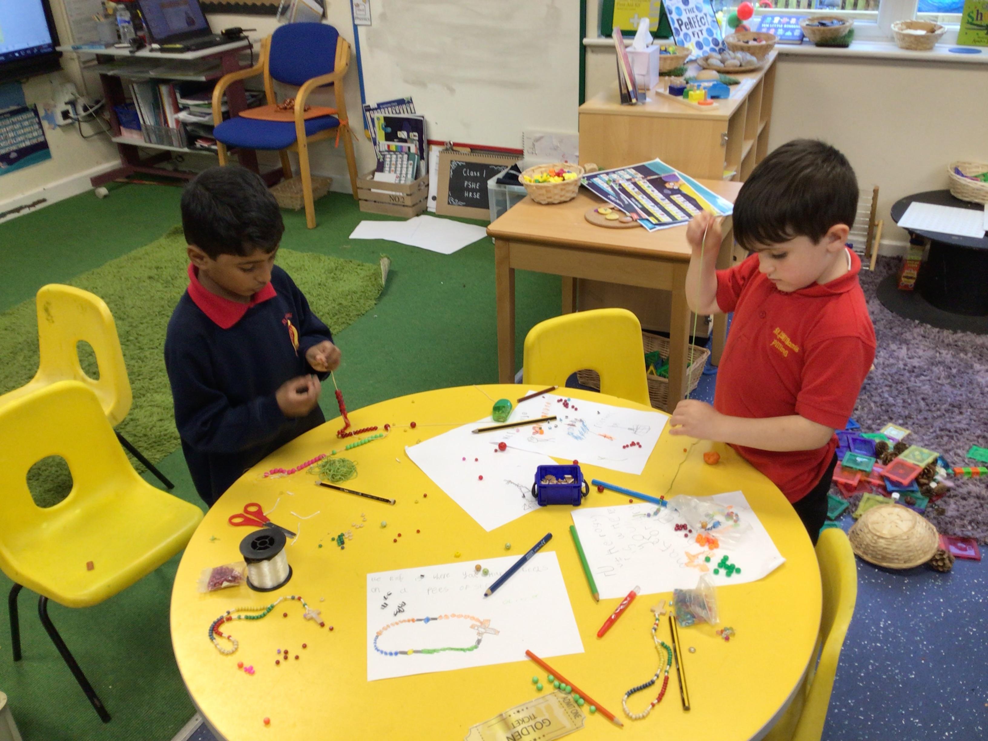 Fine motor skills- making rosary beads