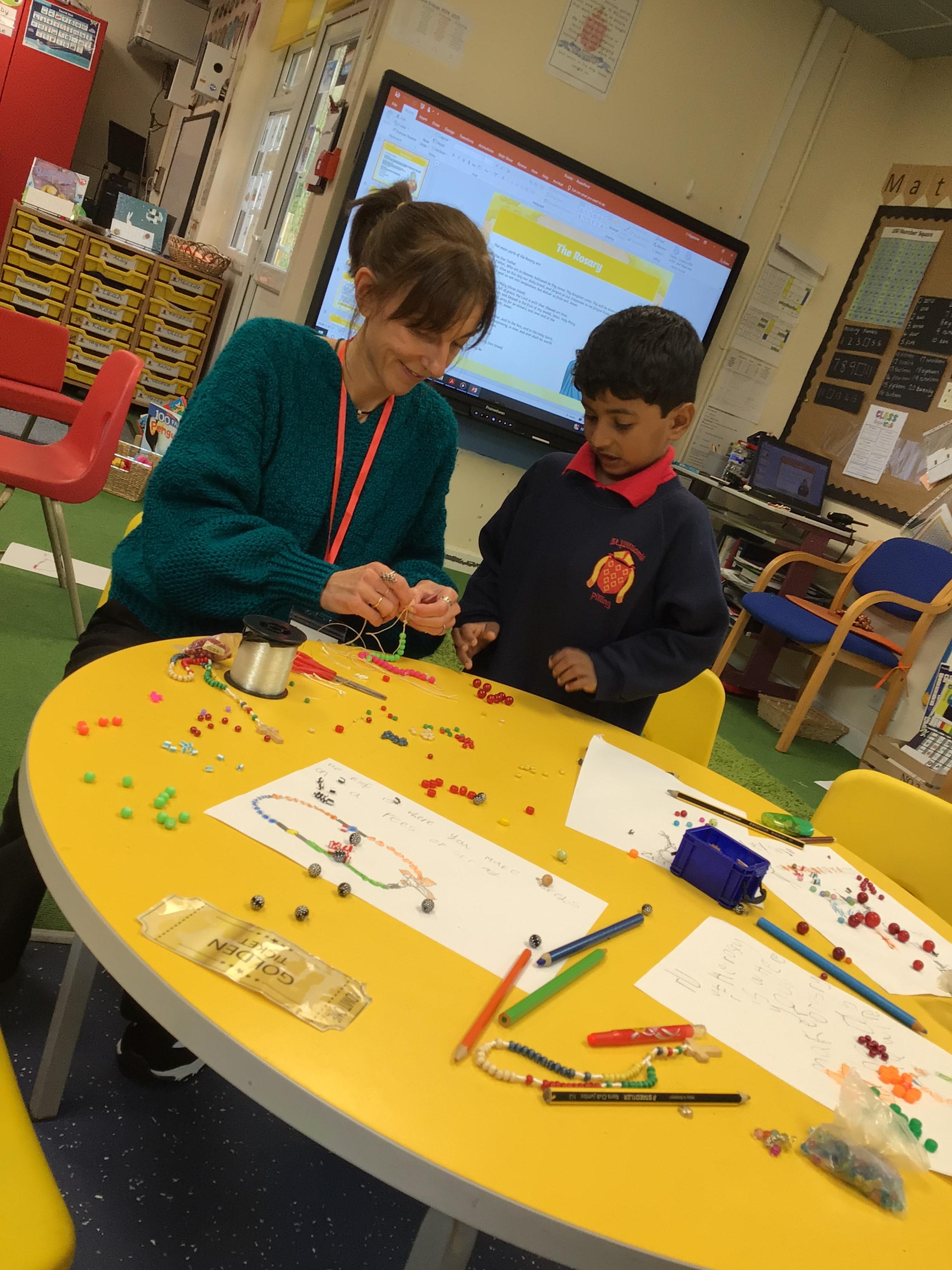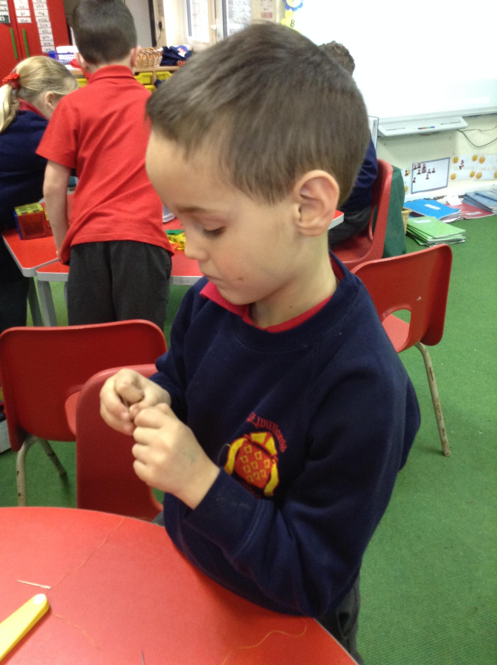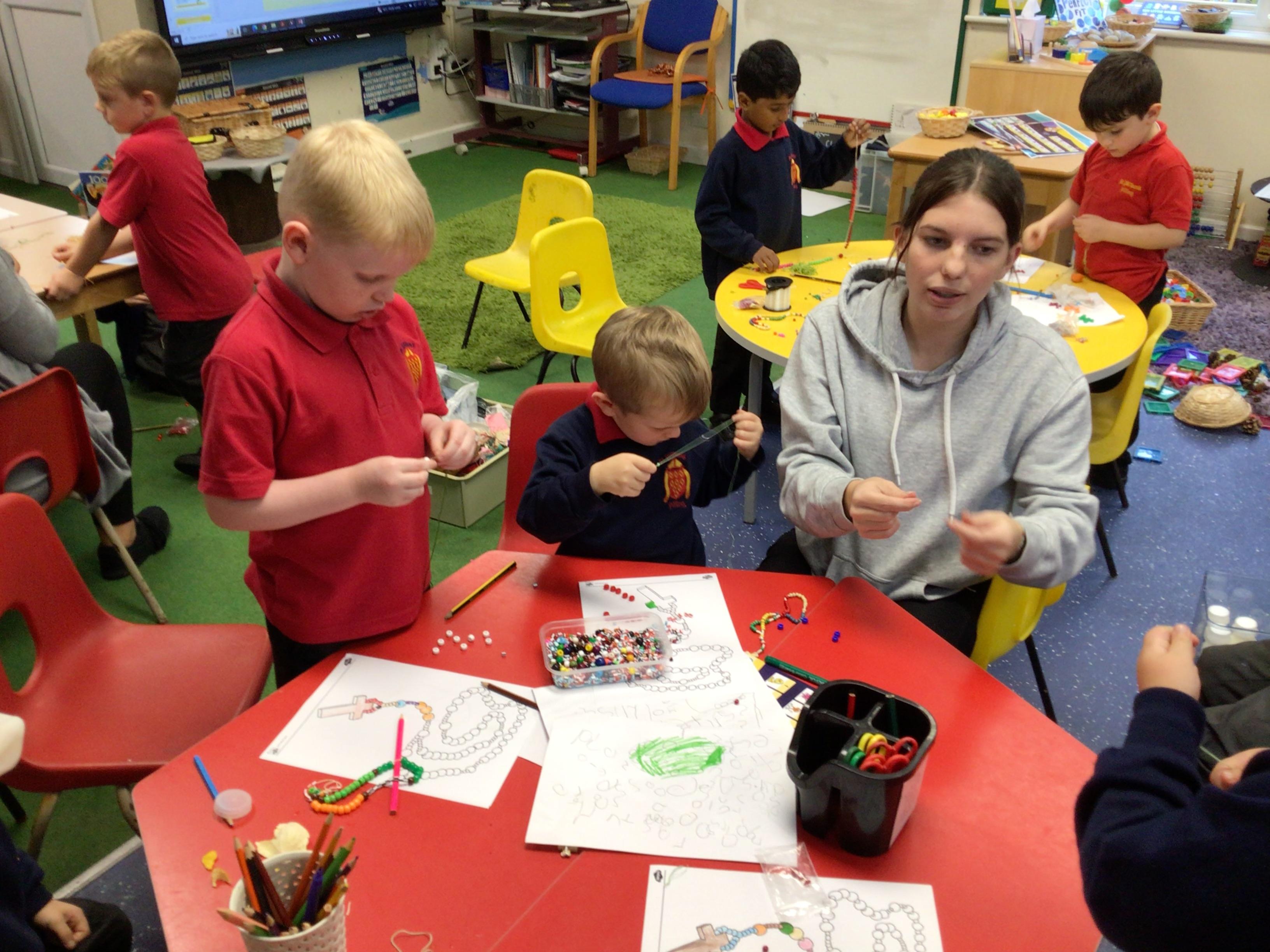 Fine motor skills- making rosary beads