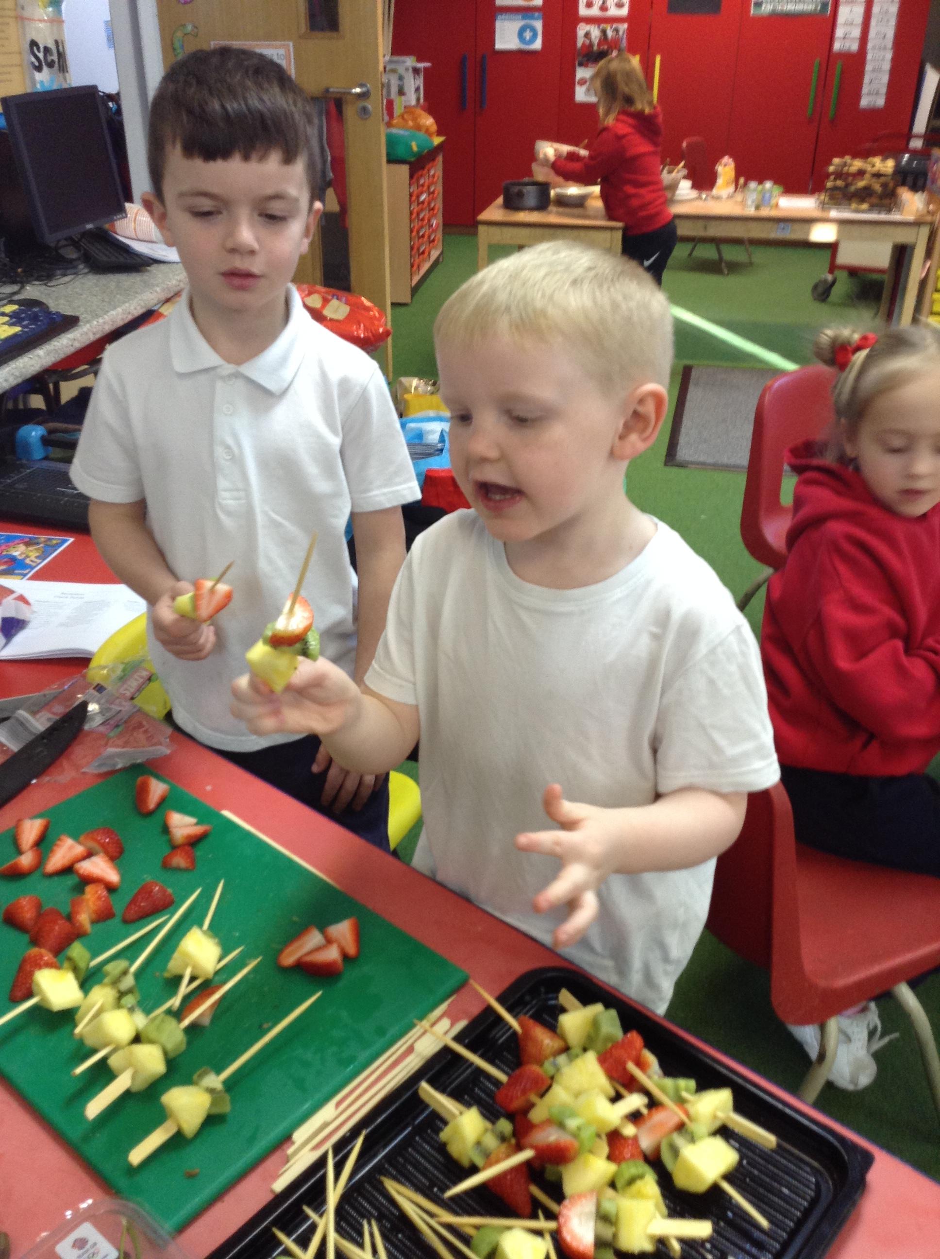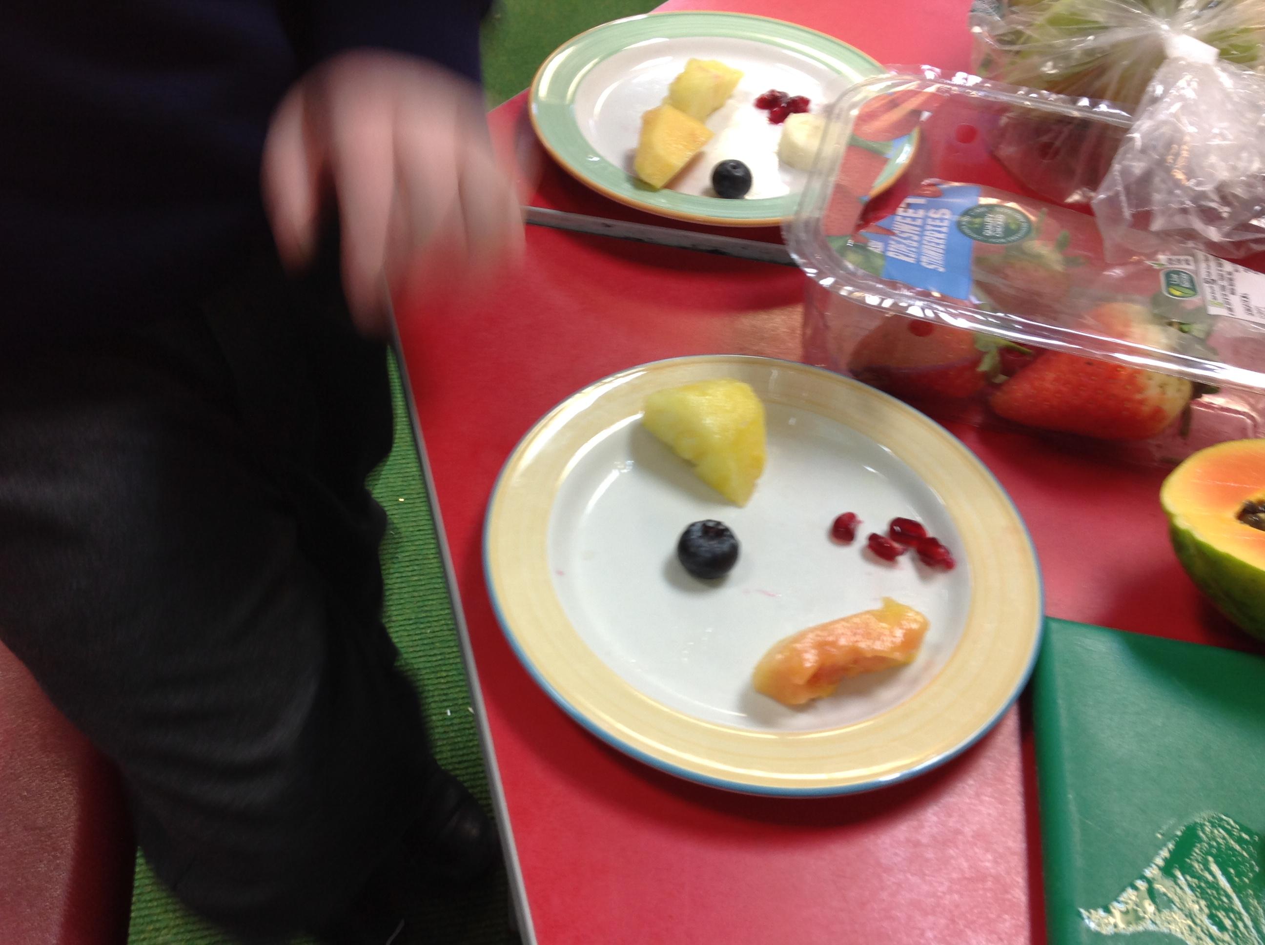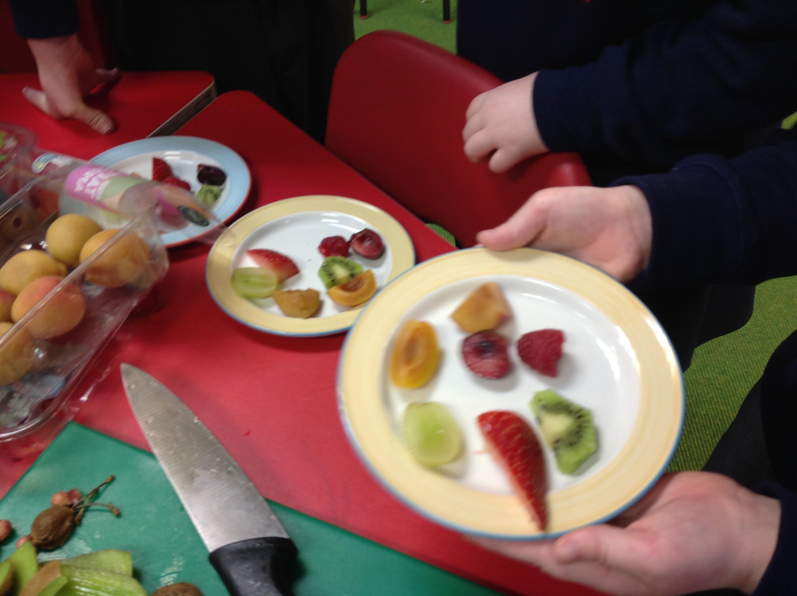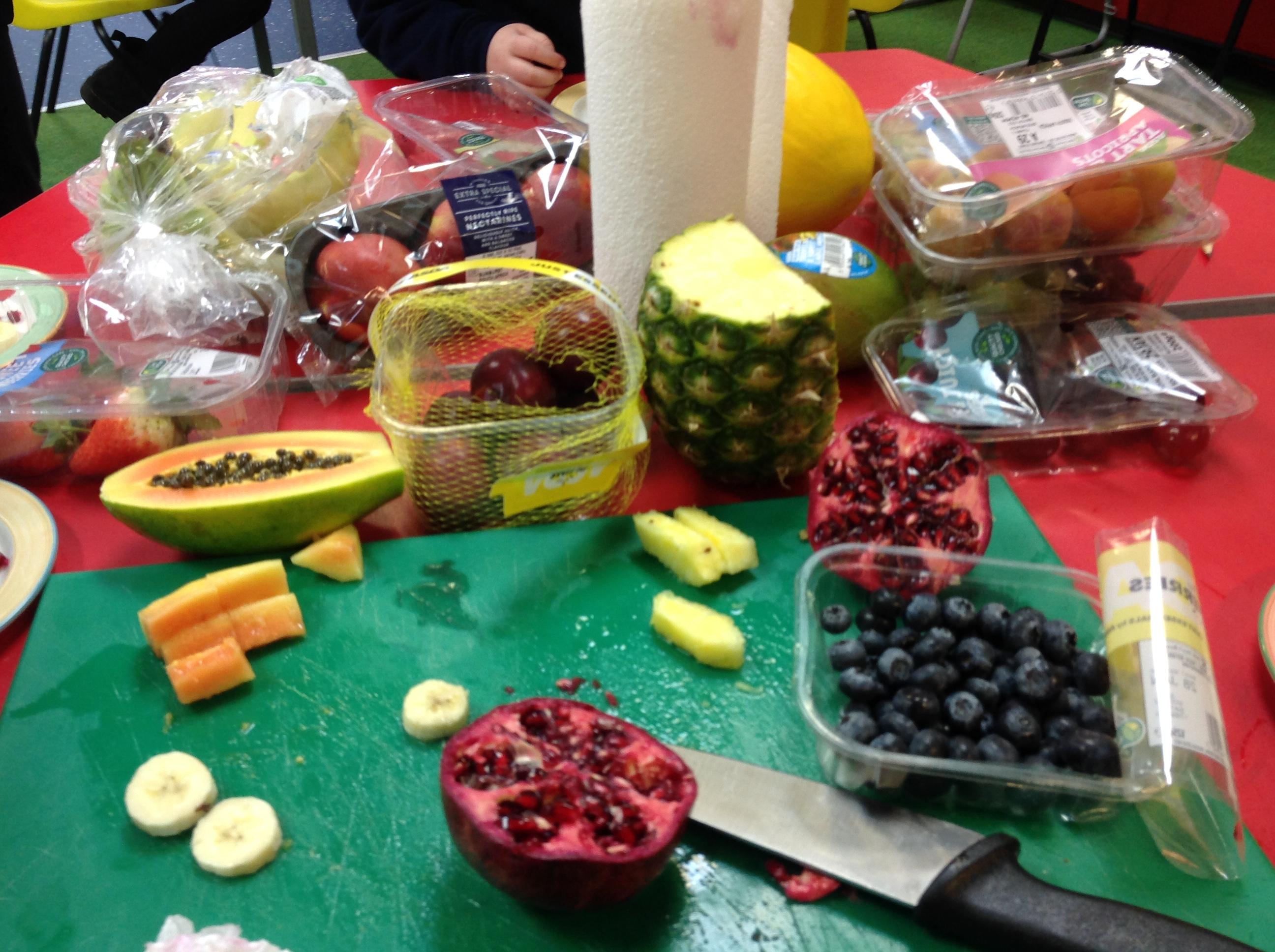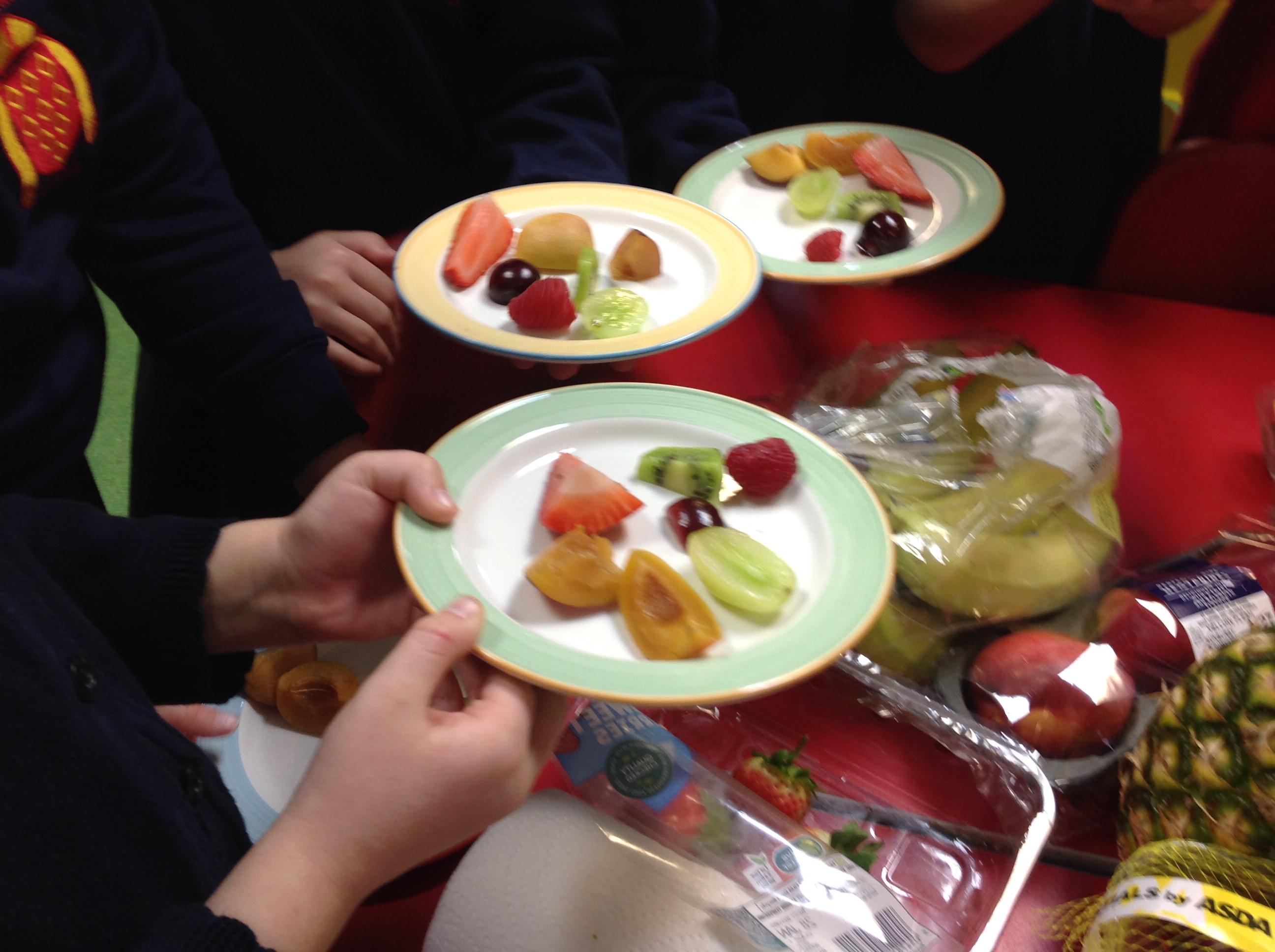 The children tried 15 different fruits in their design and technology lesson today. They had to decide on which ones they would like to use on a fruit kebab for an ideal picnic. Results were varied.
