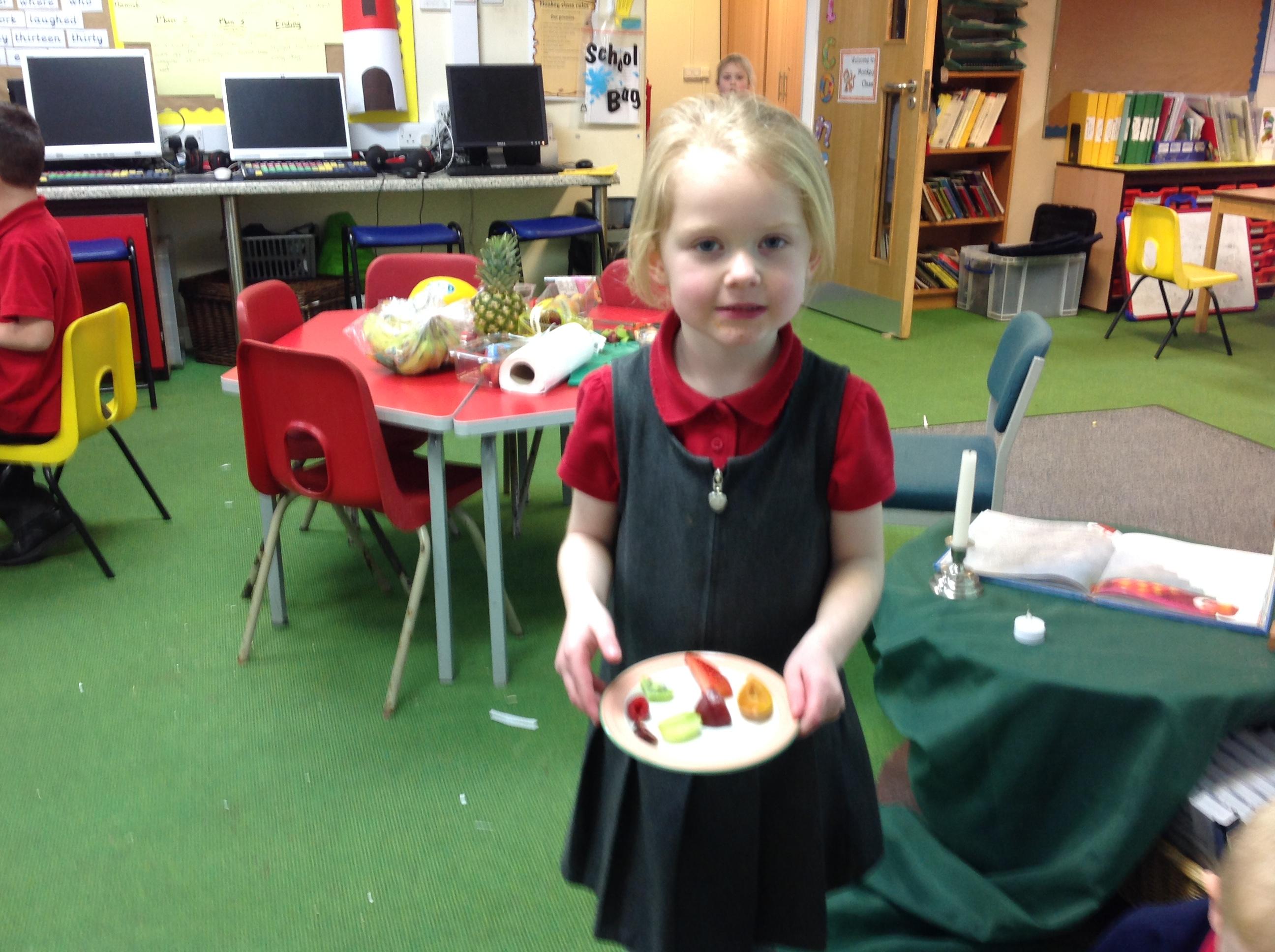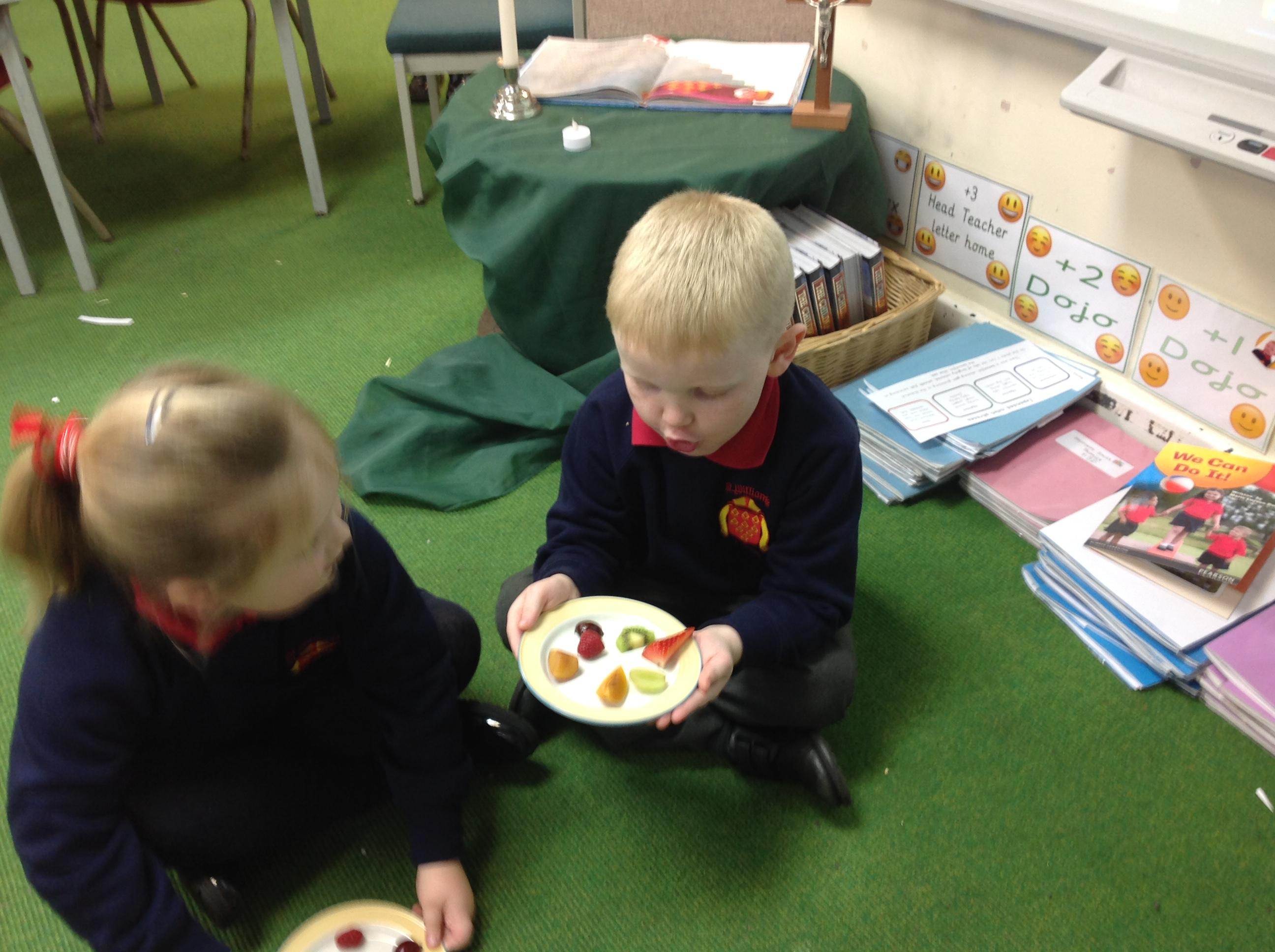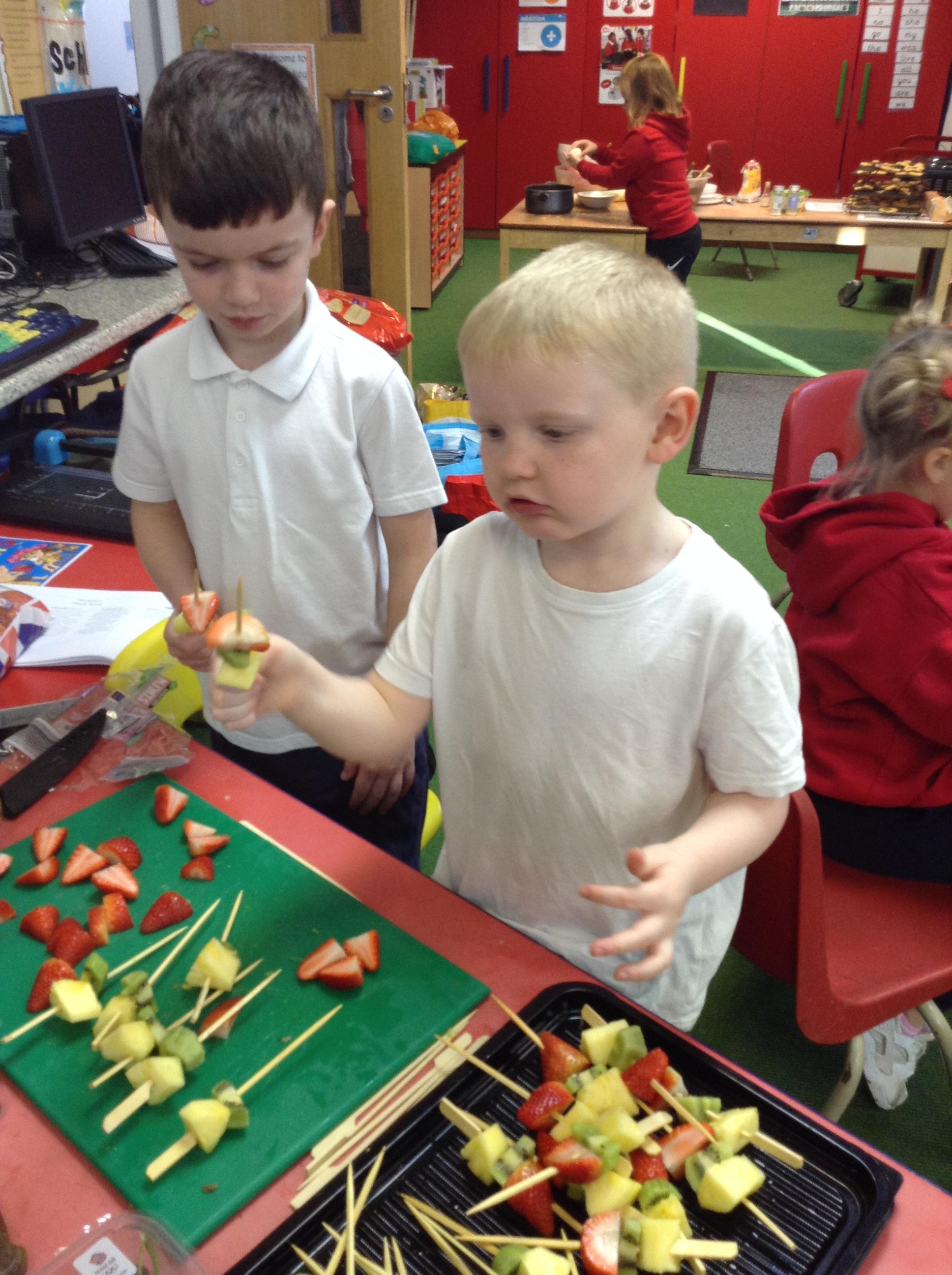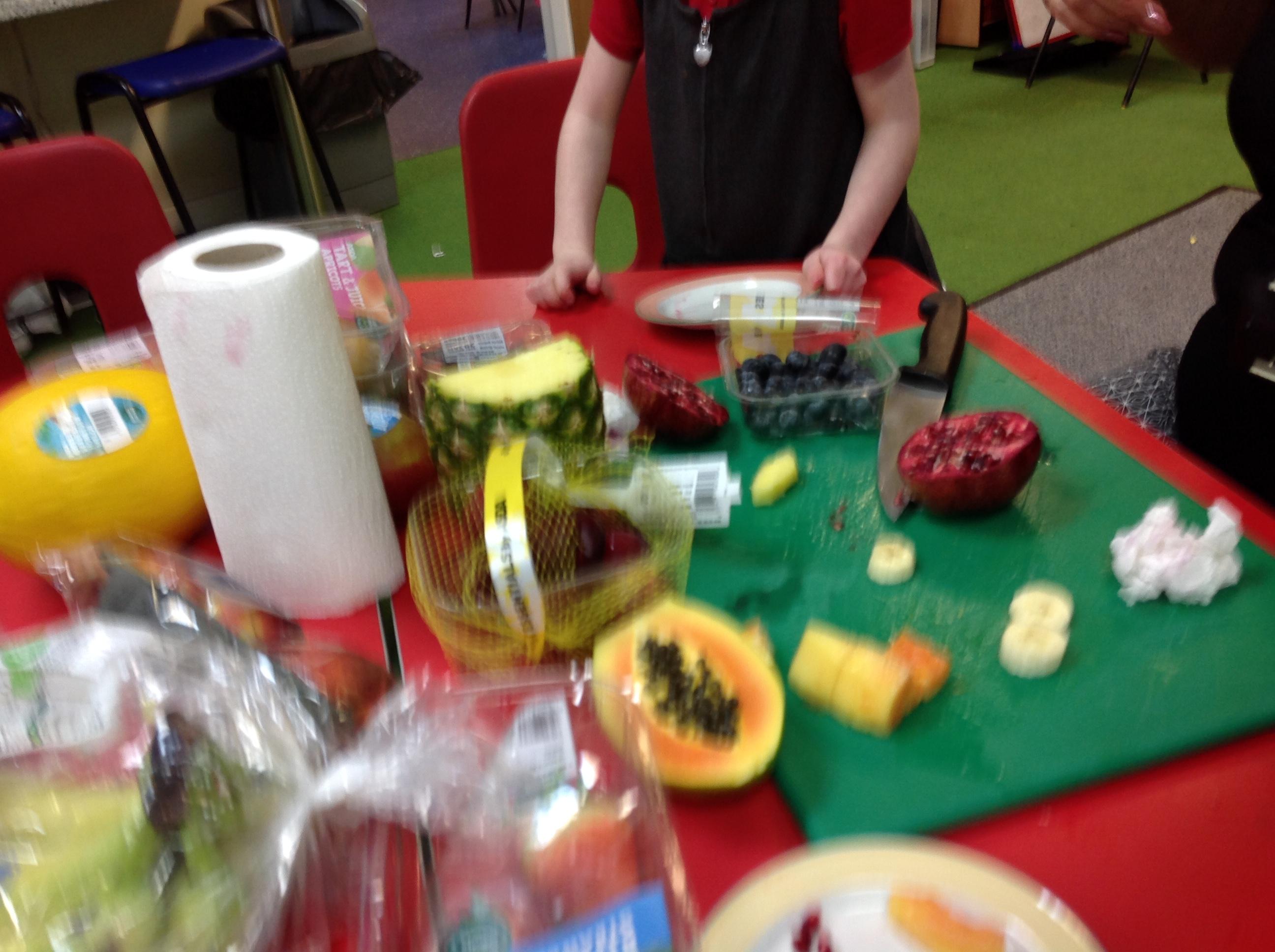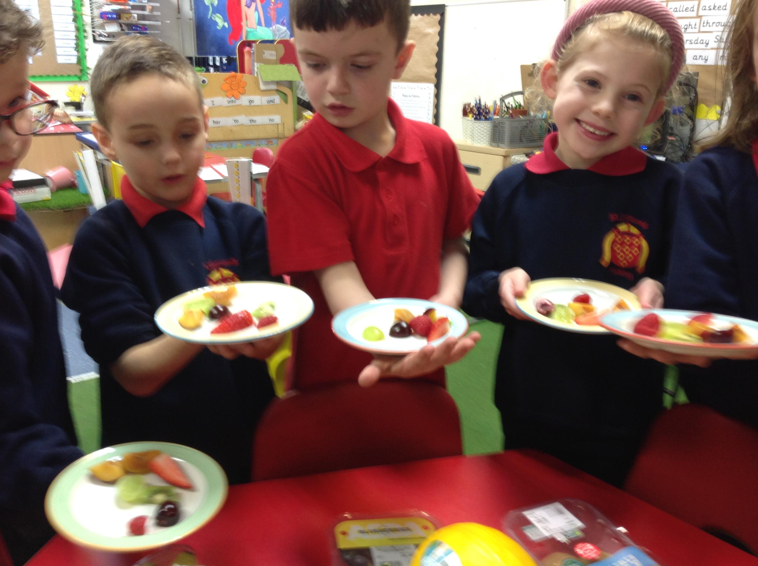 The children tried 15 different fruits in their design and technology lesson today. They had to decide on which ones they would like to use on a fruit kebab for an ideal picnic. Results were varied.