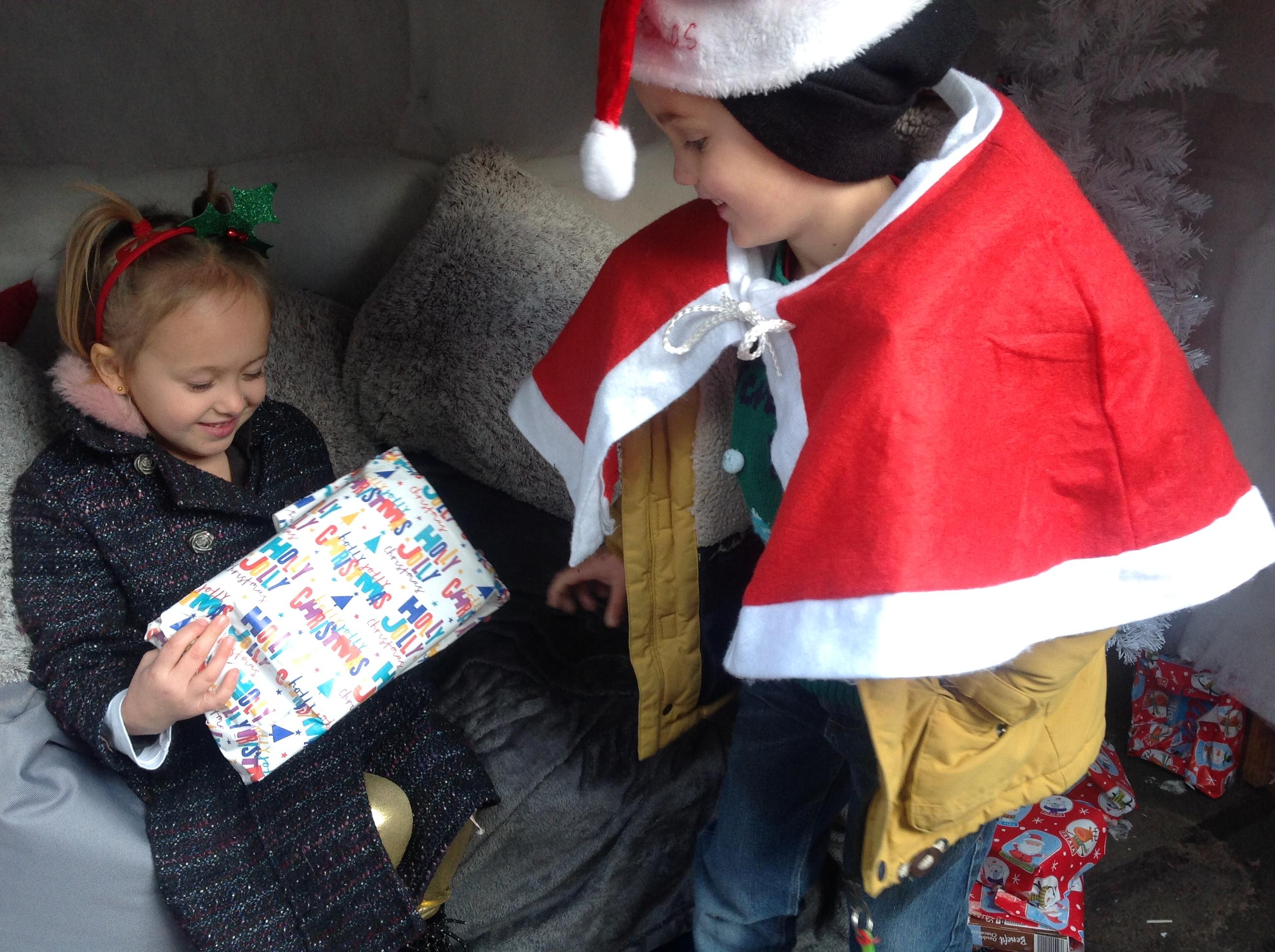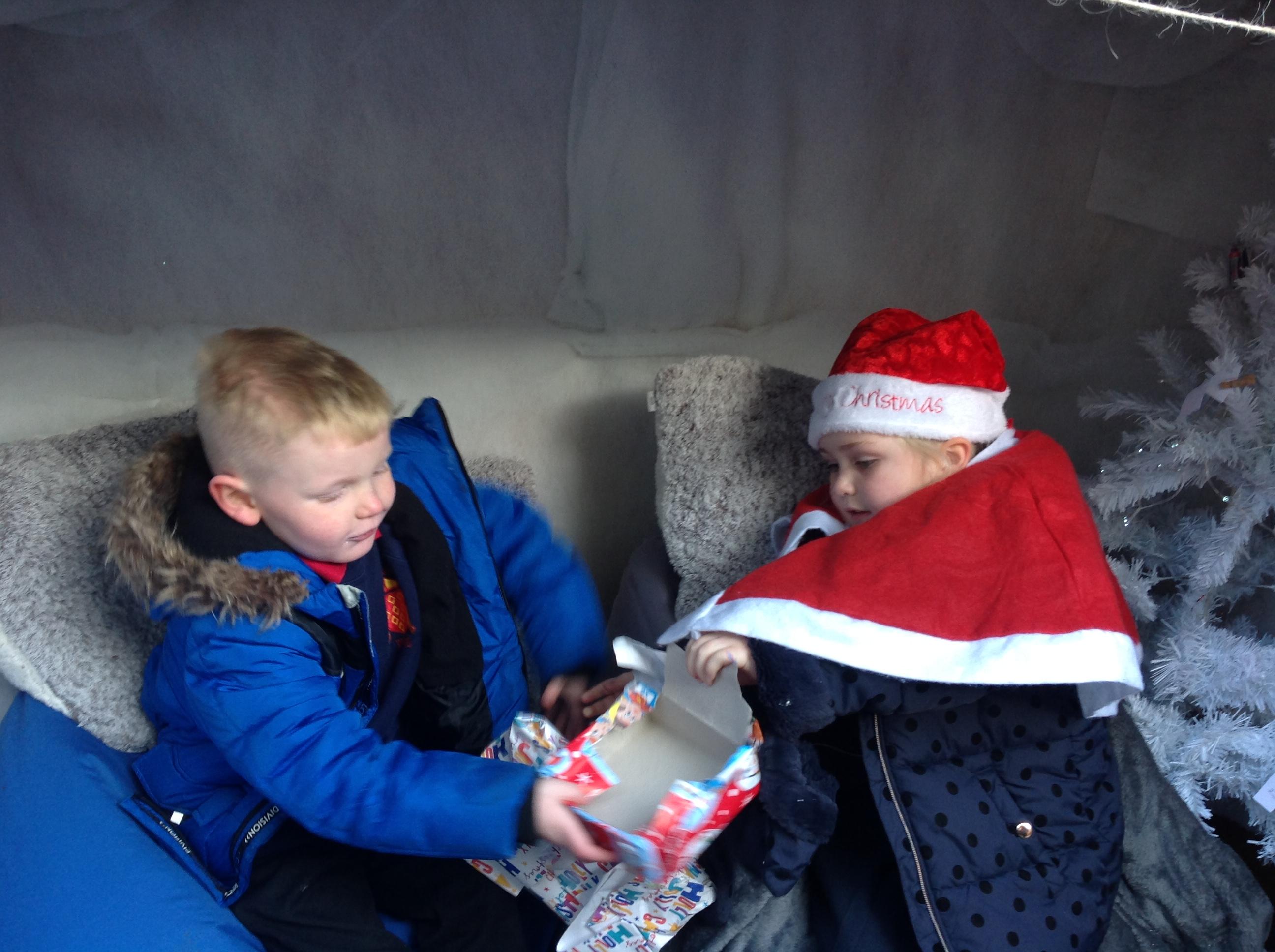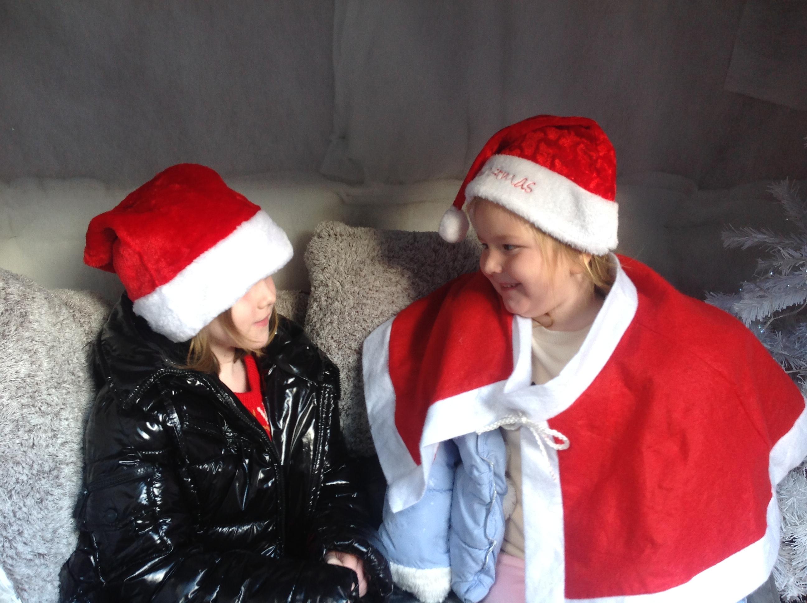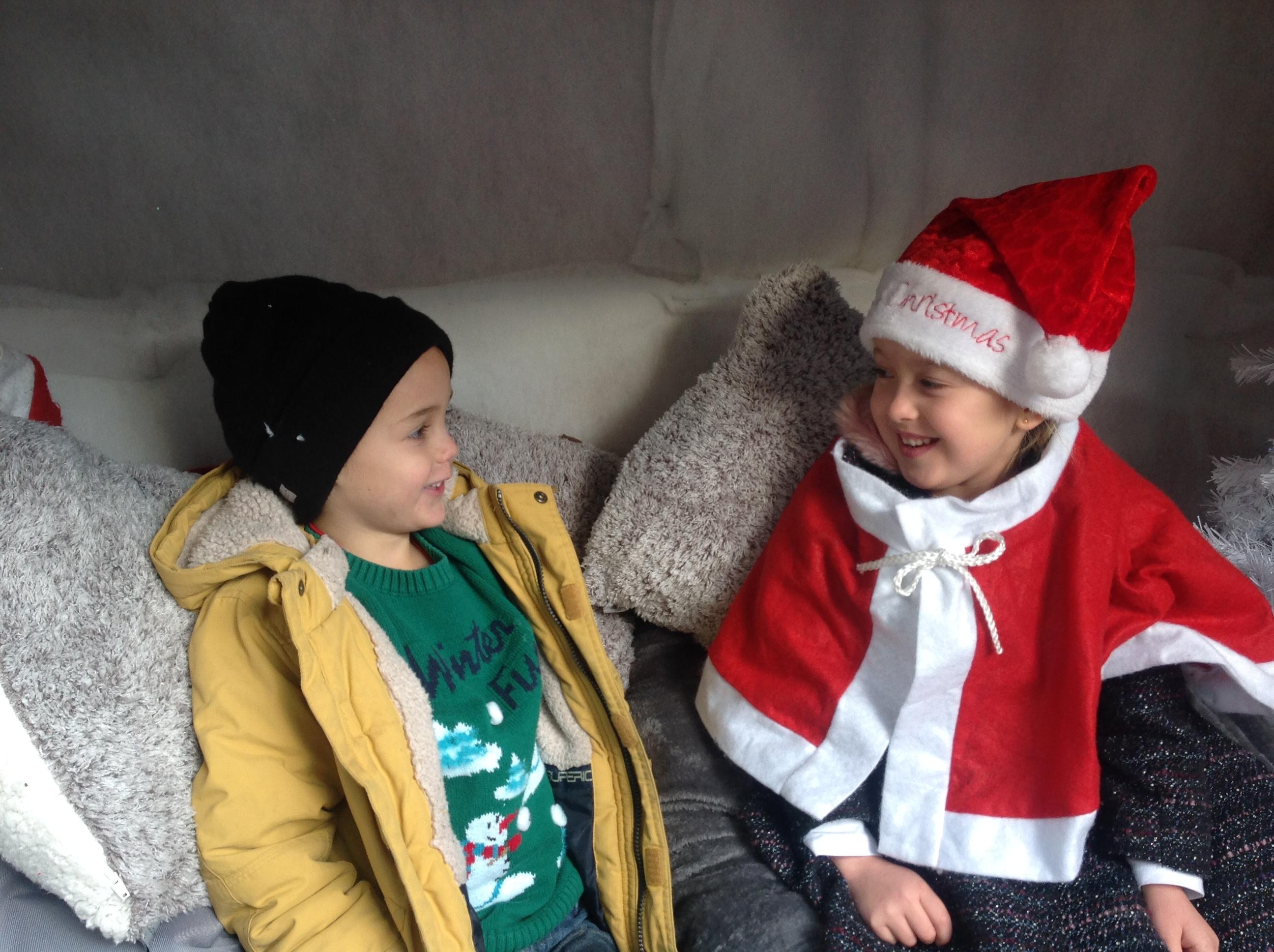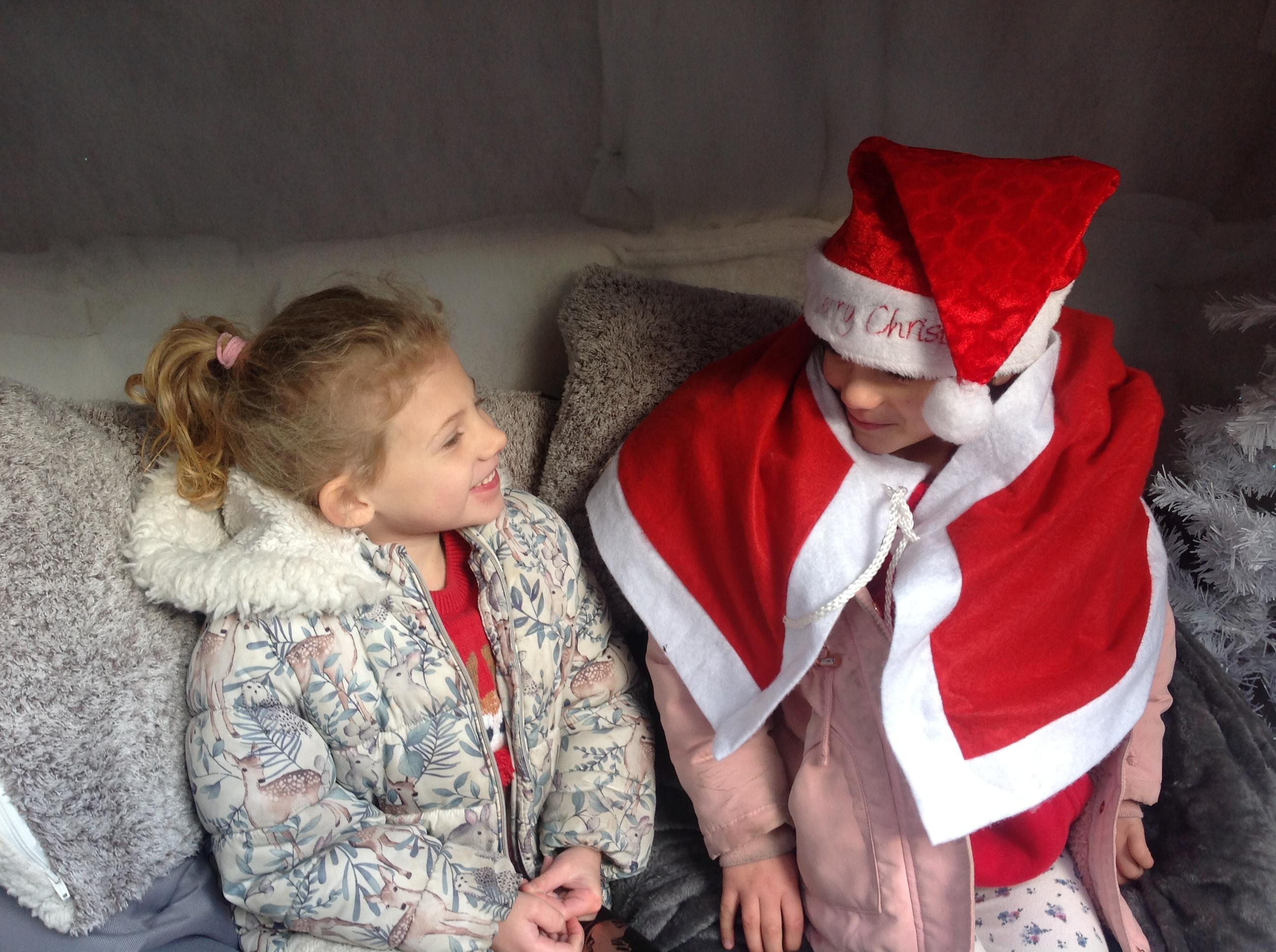 A Christmas Grotto has been set up in the outdoor provision. The children have all had chance to go in and pretend to be Father Christmas, leaving their own specific instructions about what they would like the children to do on Christmas Eve.