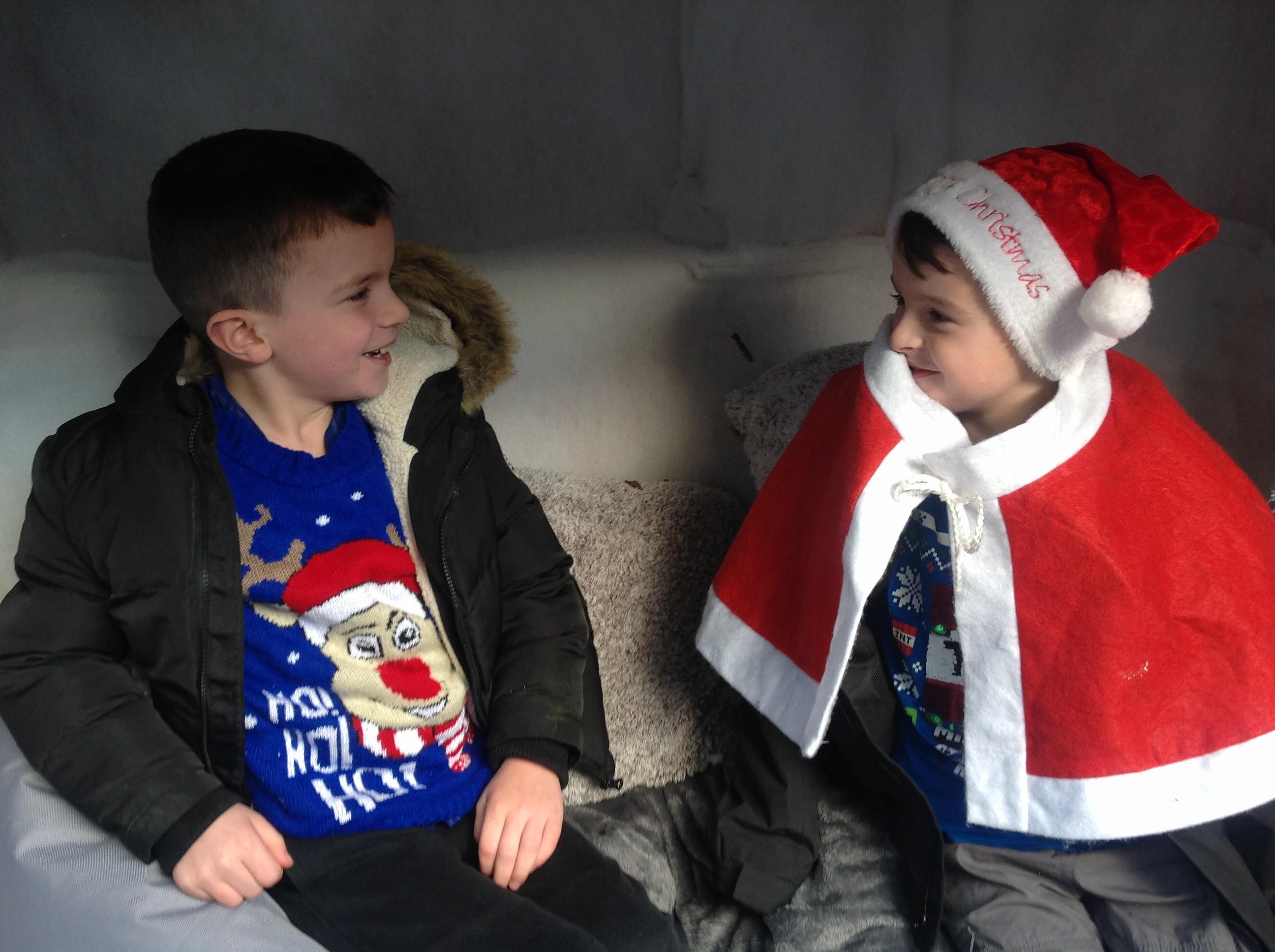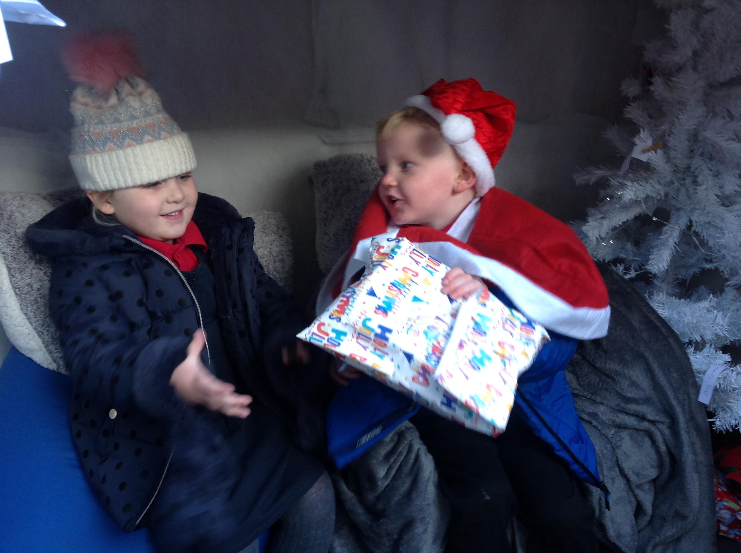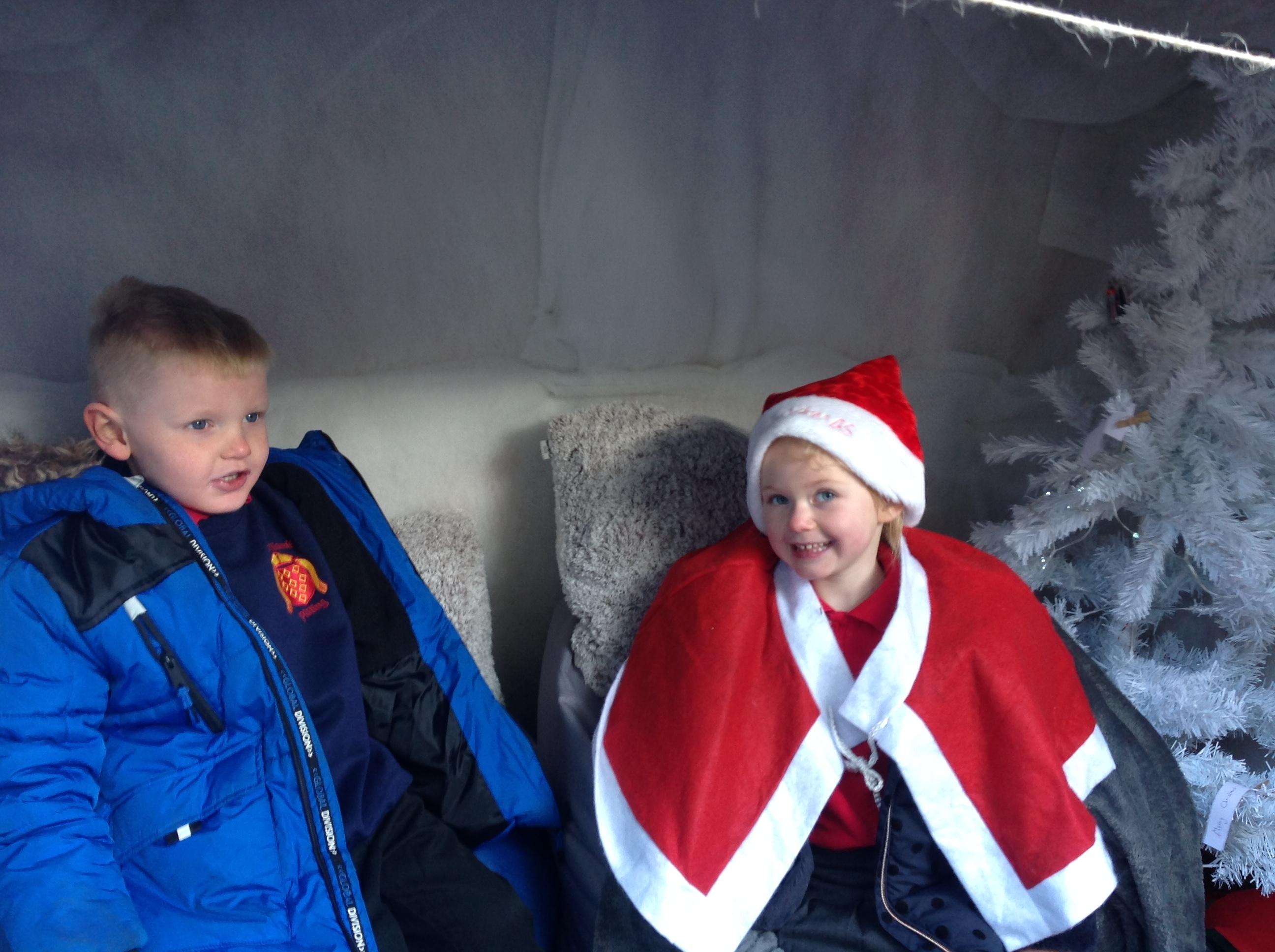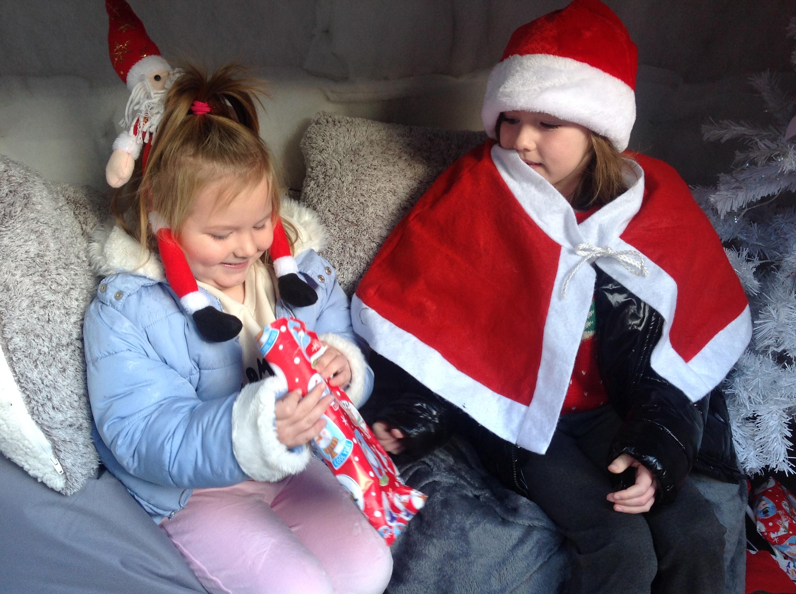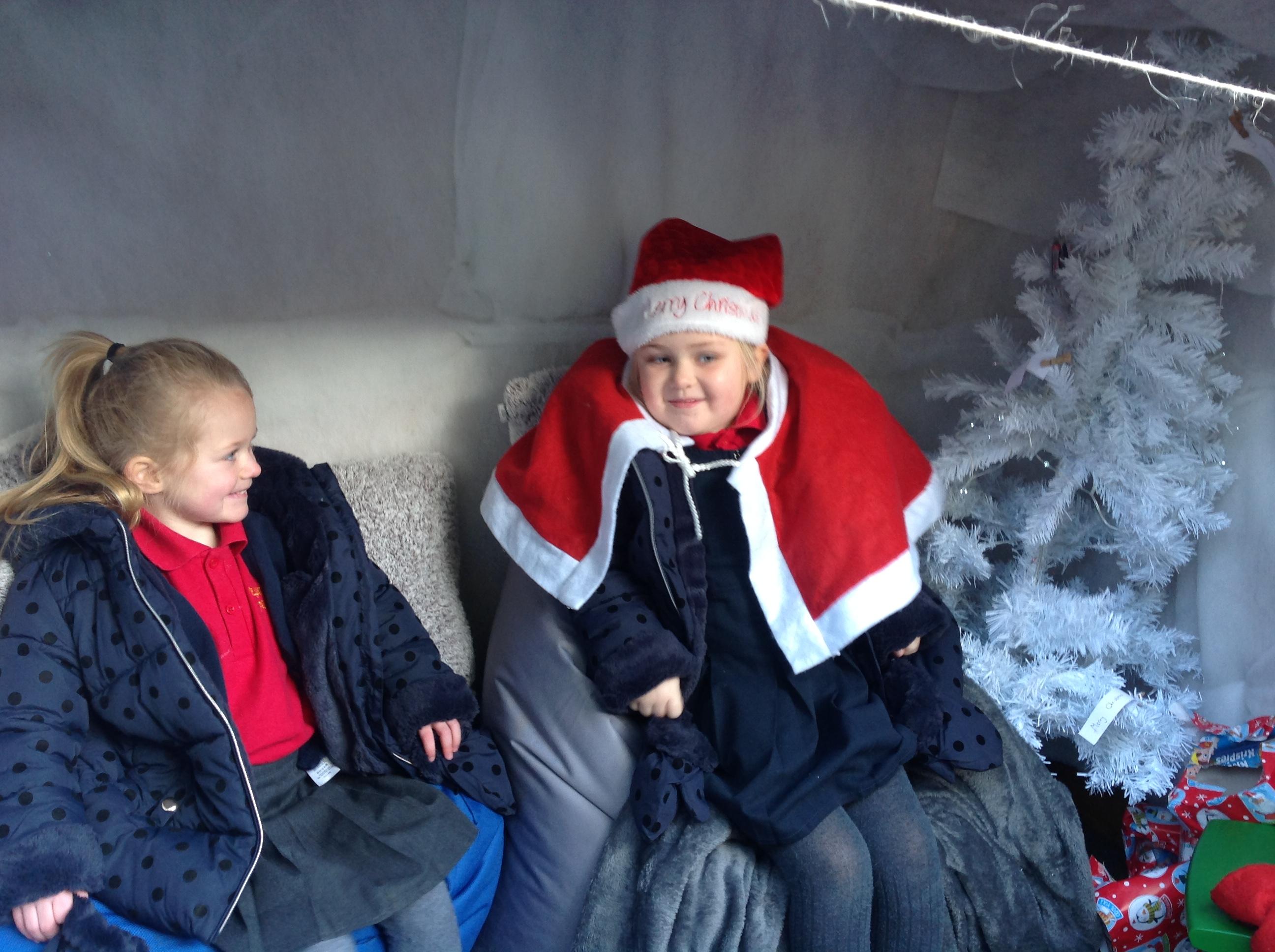 A Christmas Grotto has been set up in the outdoor provision. The children have all had chance to go in and pretend to be Father Christmas, leaving their own specific instructions about what they would like the children to do on Christmas Eve.