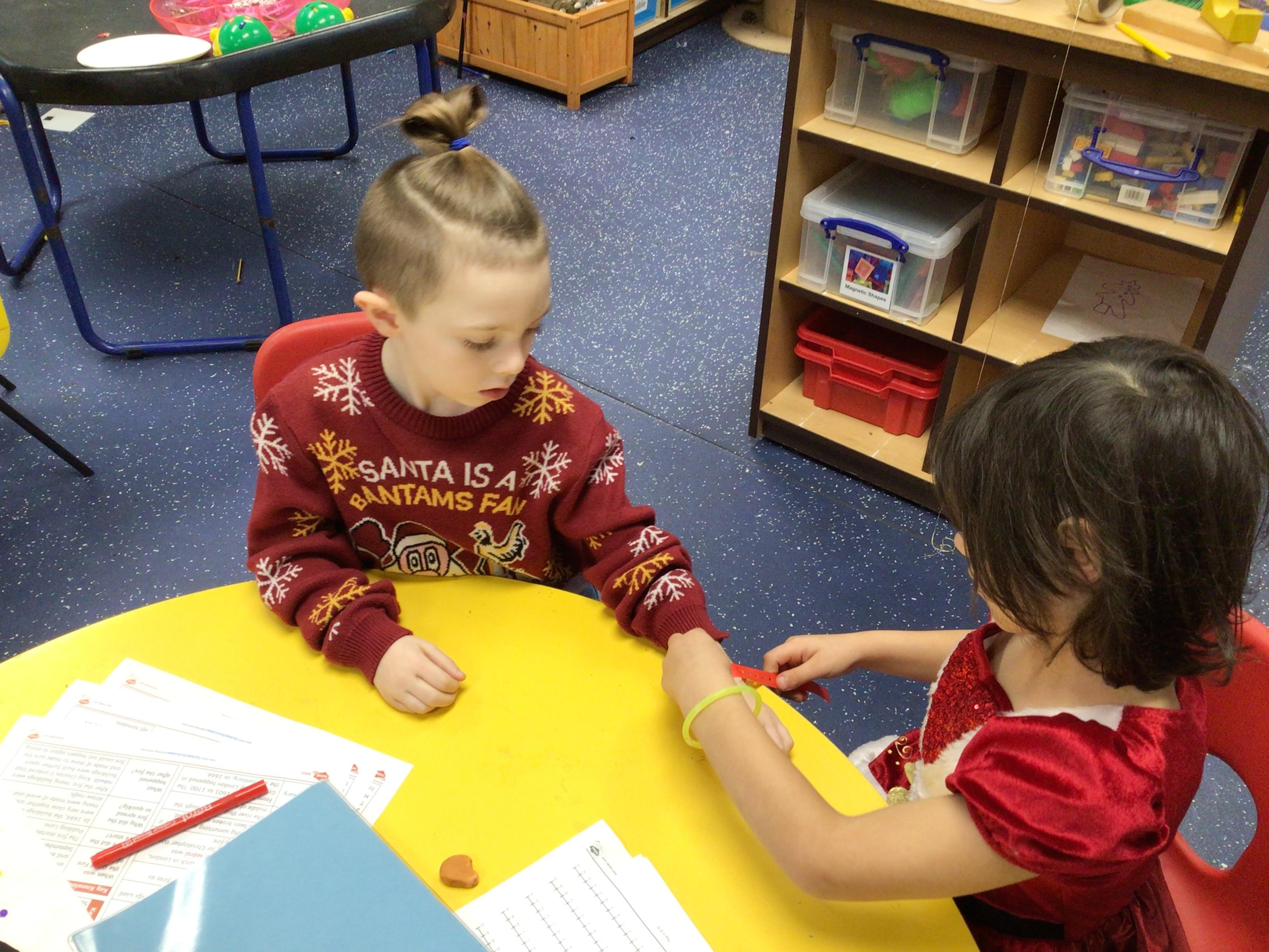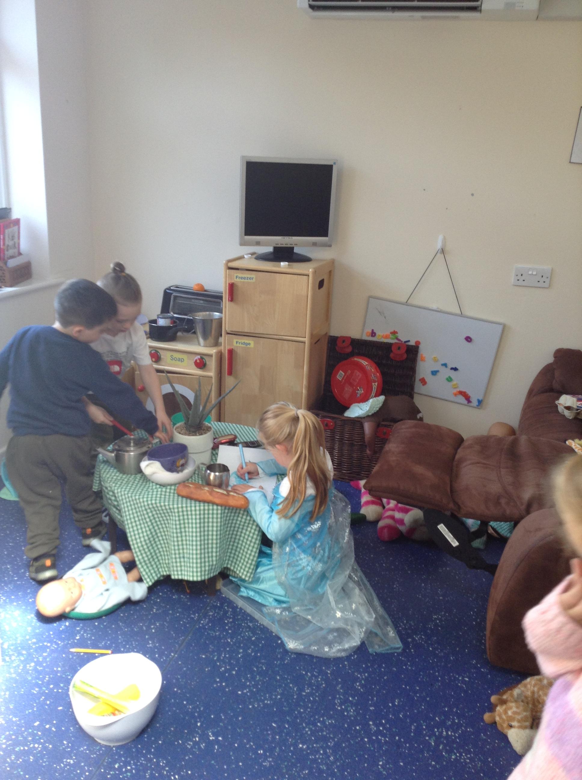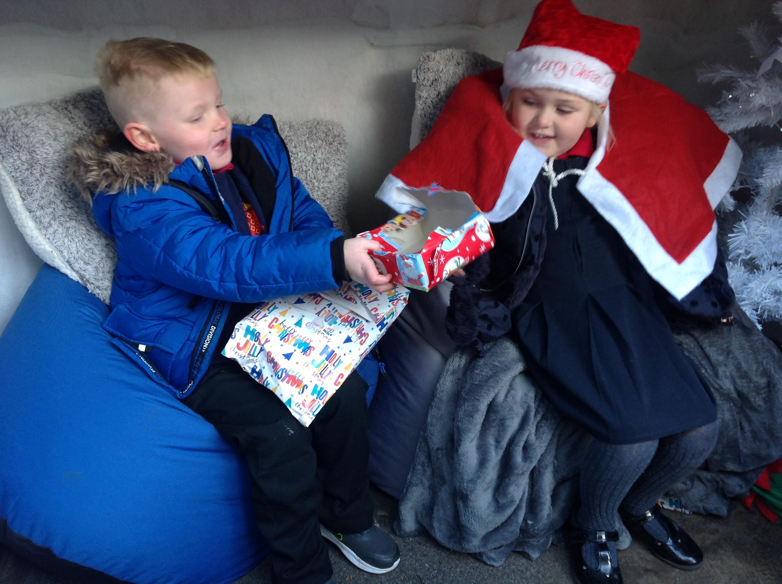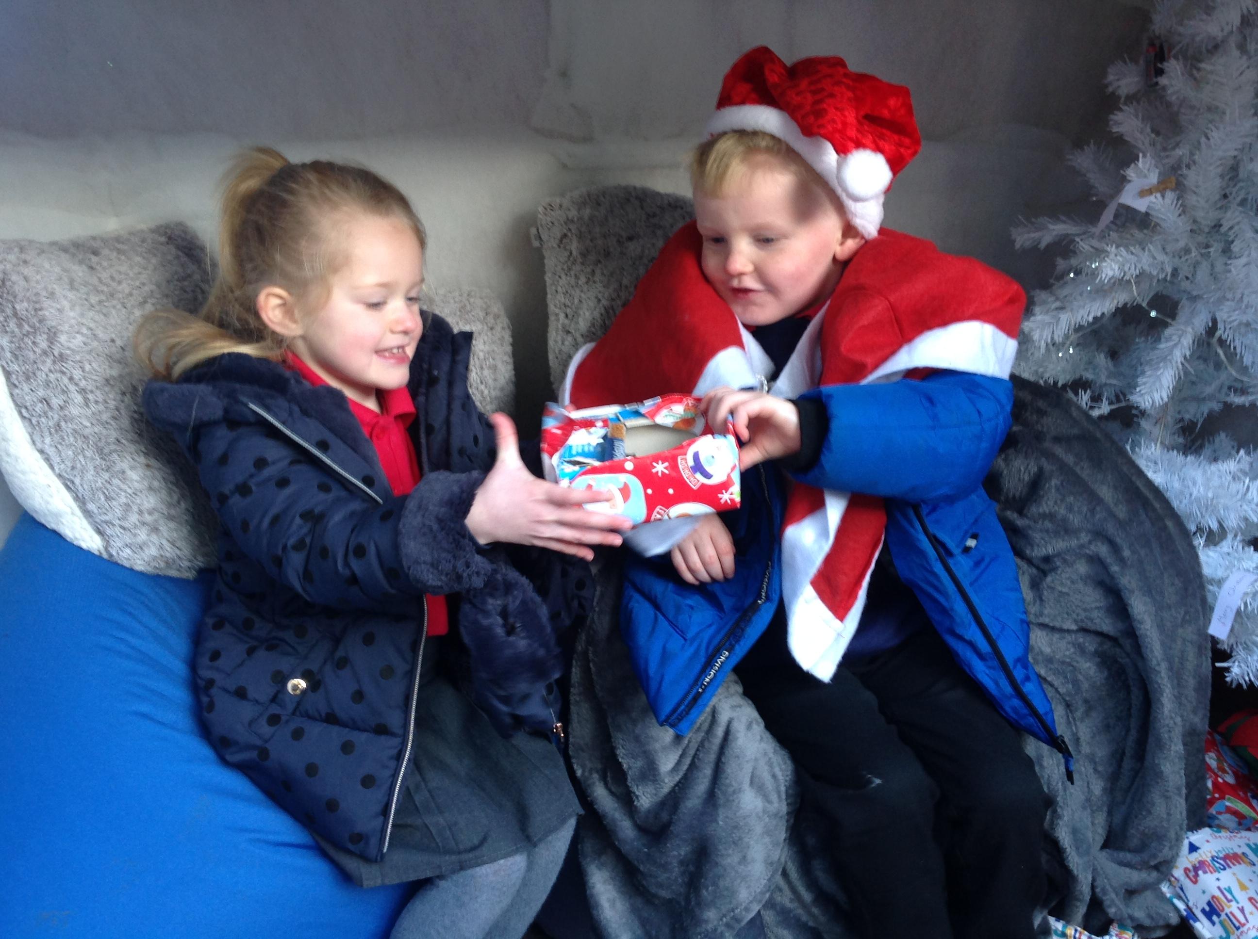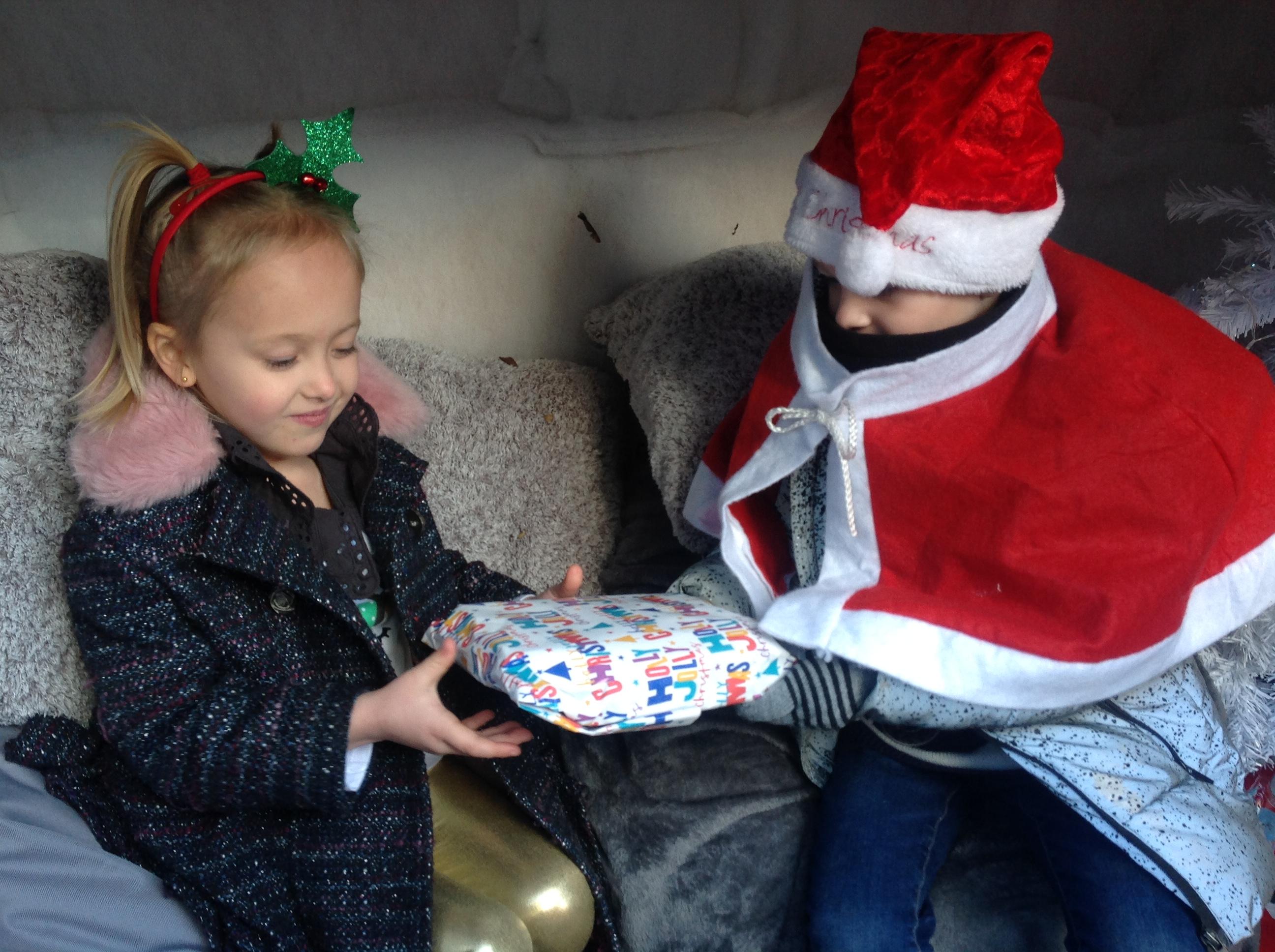A Christmas Grotto has been set up in the outdoor provision. The children have all had chance to go in and pretend to be Father Christmas, leaving their own specific instructions about what they would like the children to do on Christmas Eve.