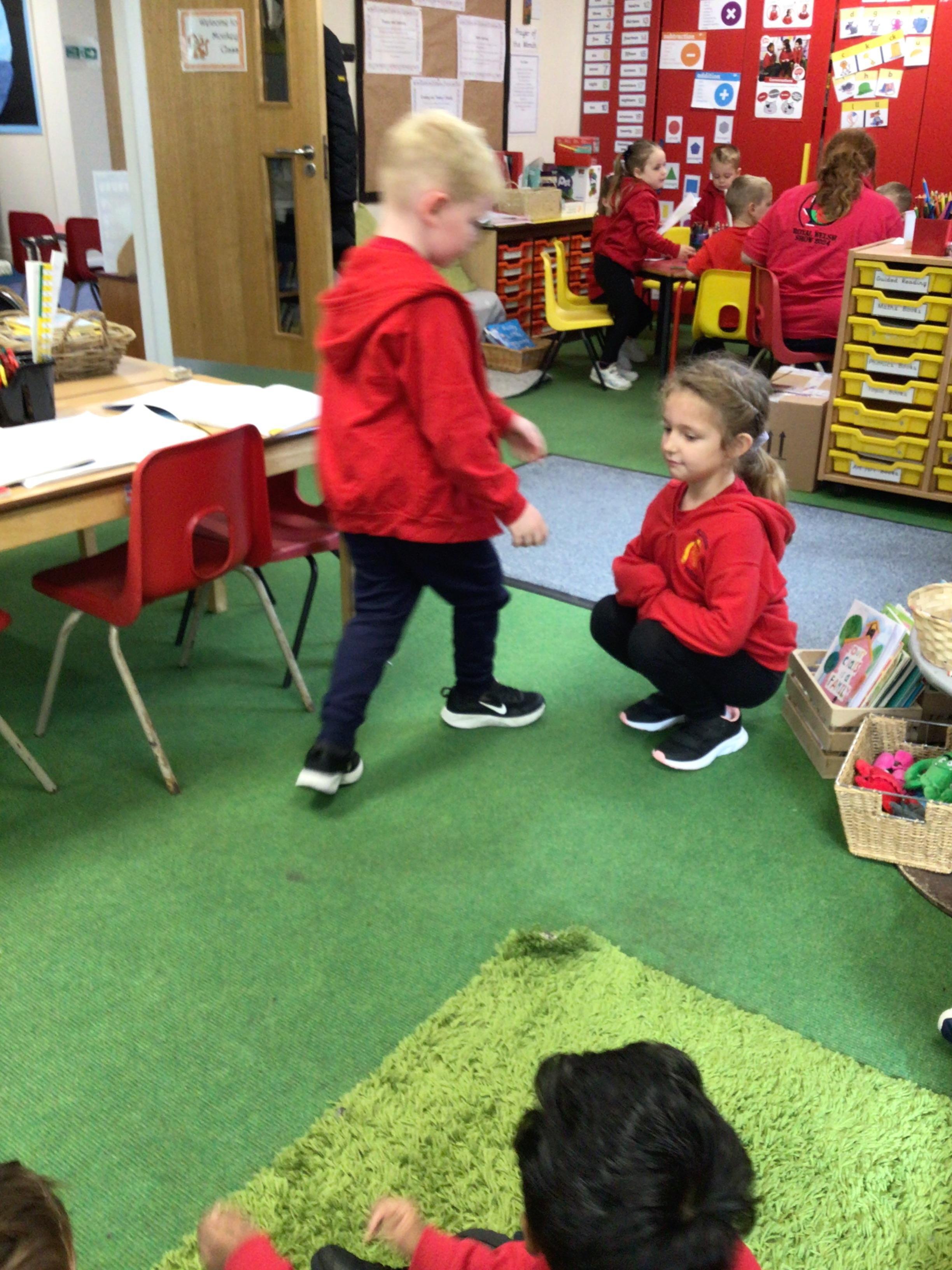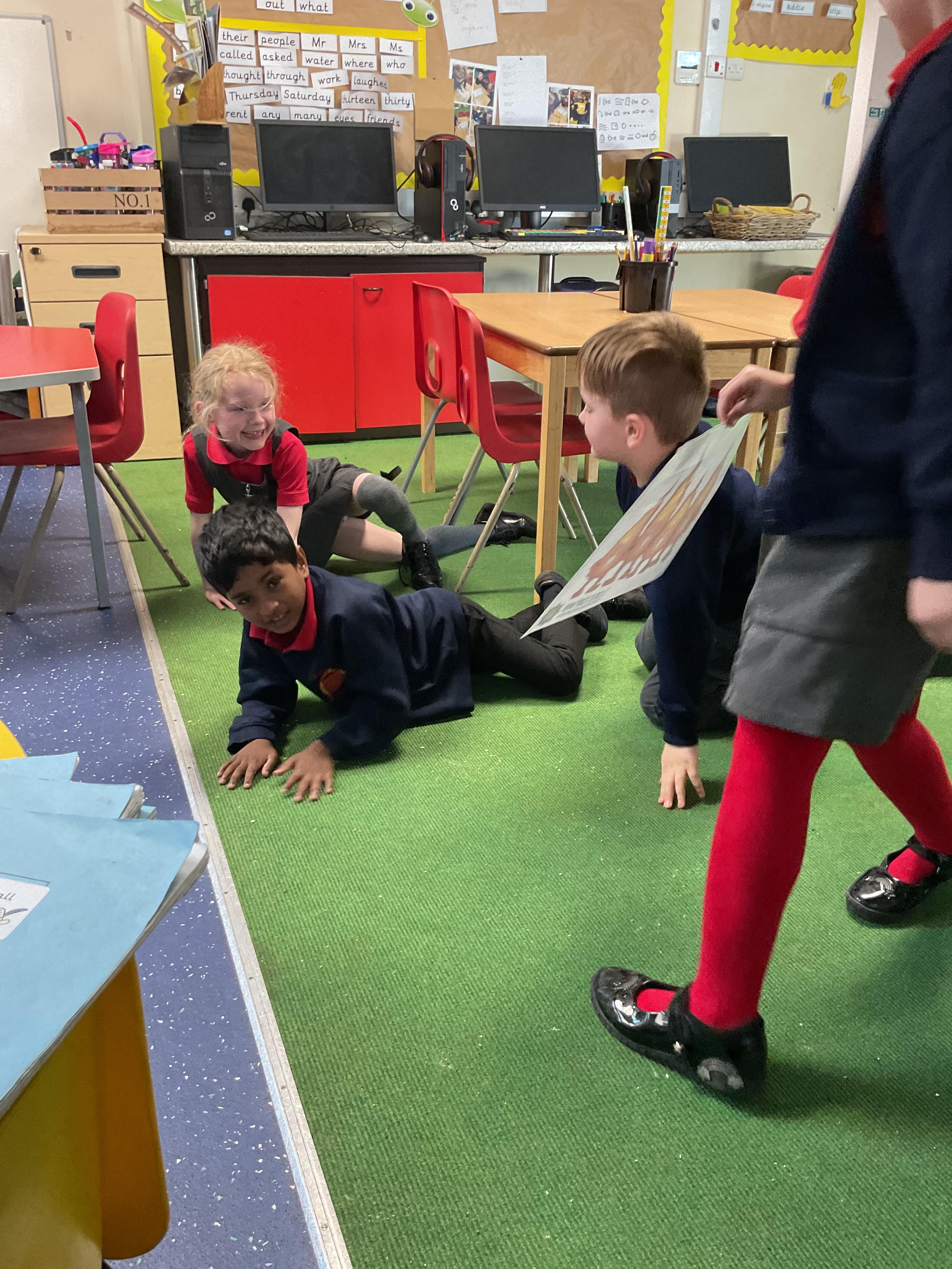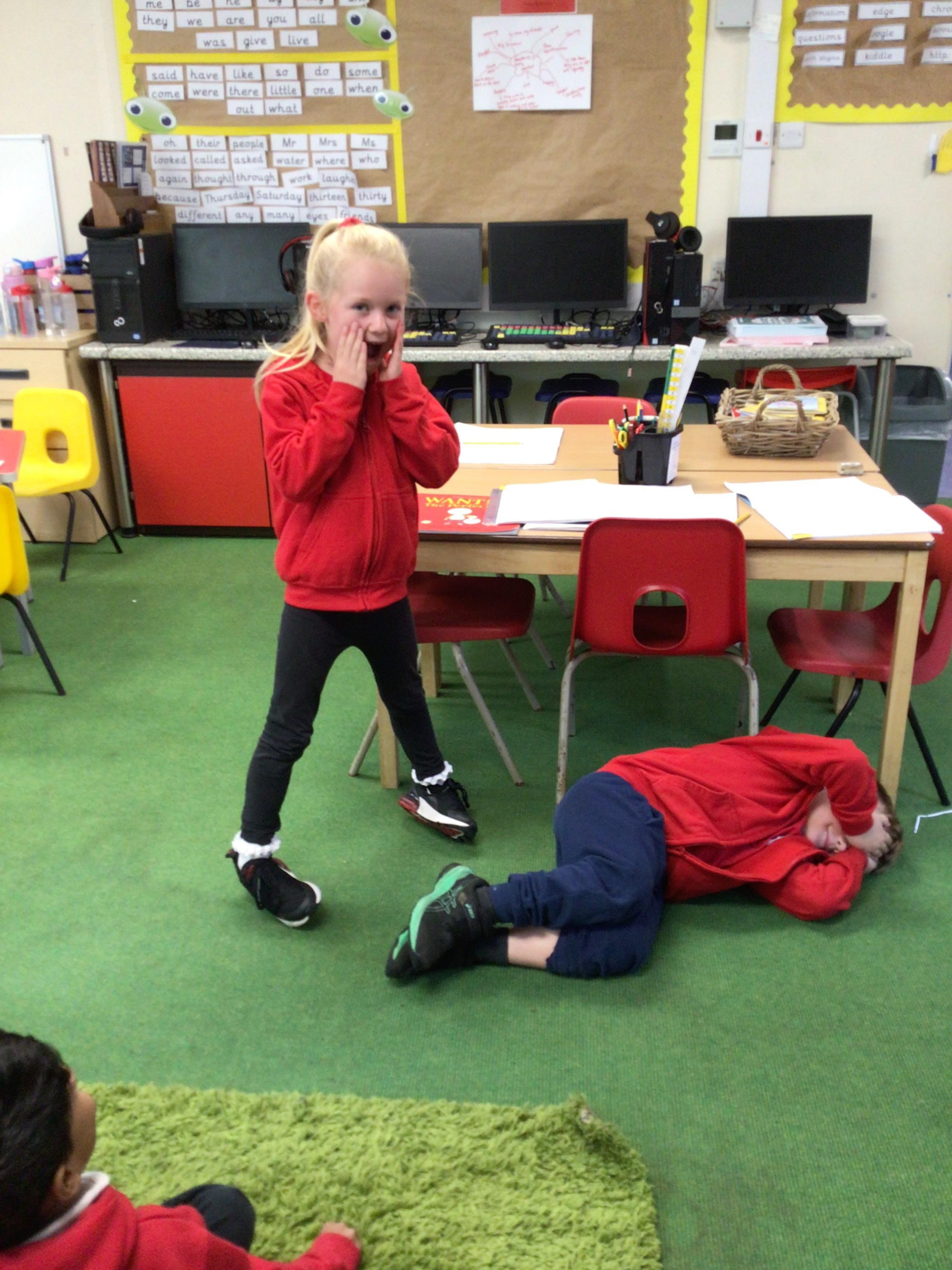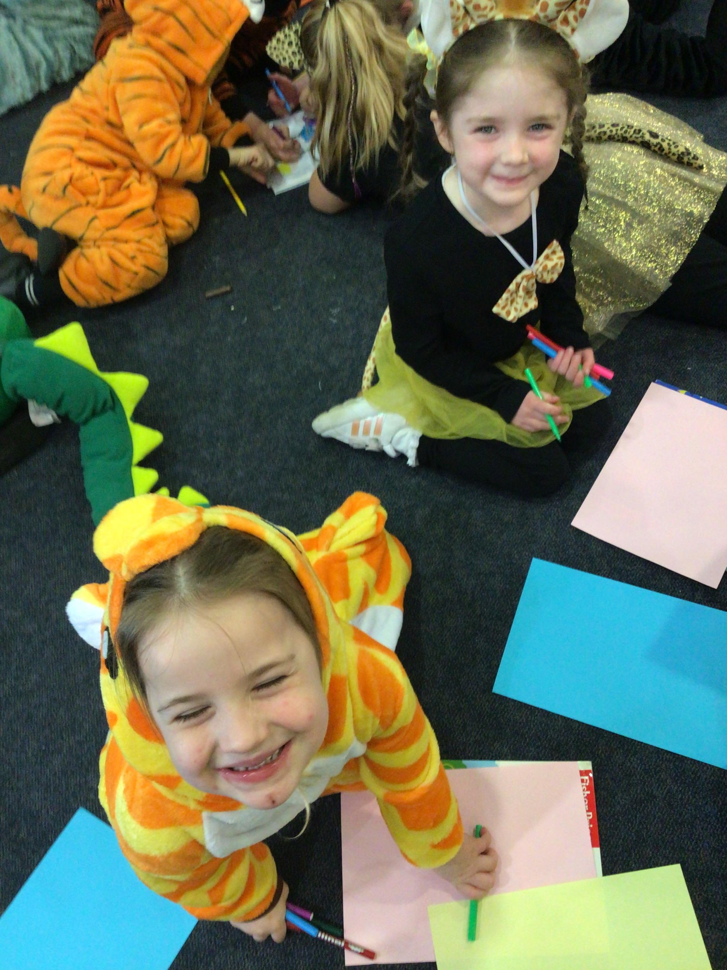 In English, we’re reading ‘The Perfect Pet’ by Fiona Roberton. This morning we acted out part of the story in pairs. The audience had to guess the characters from the story.