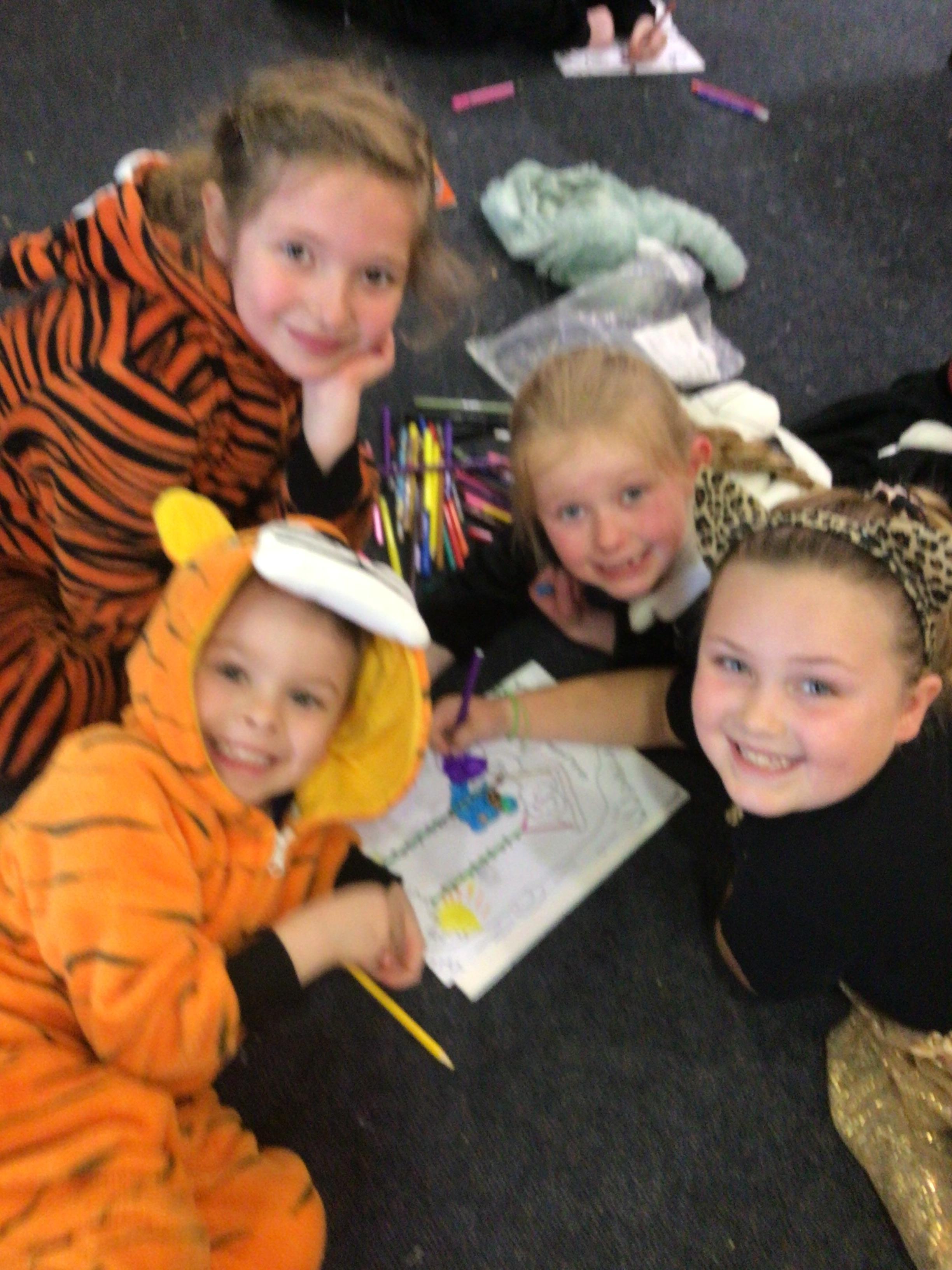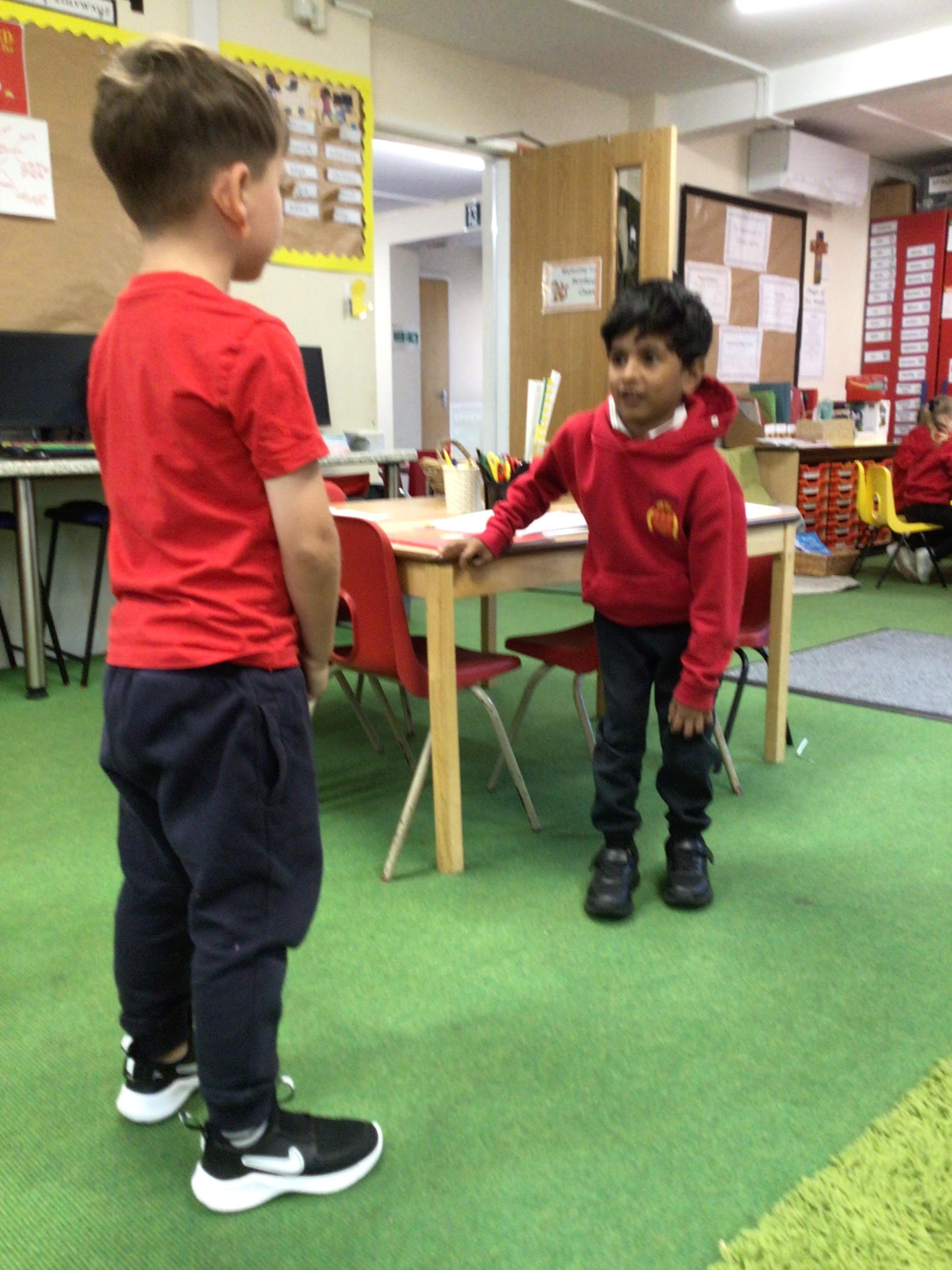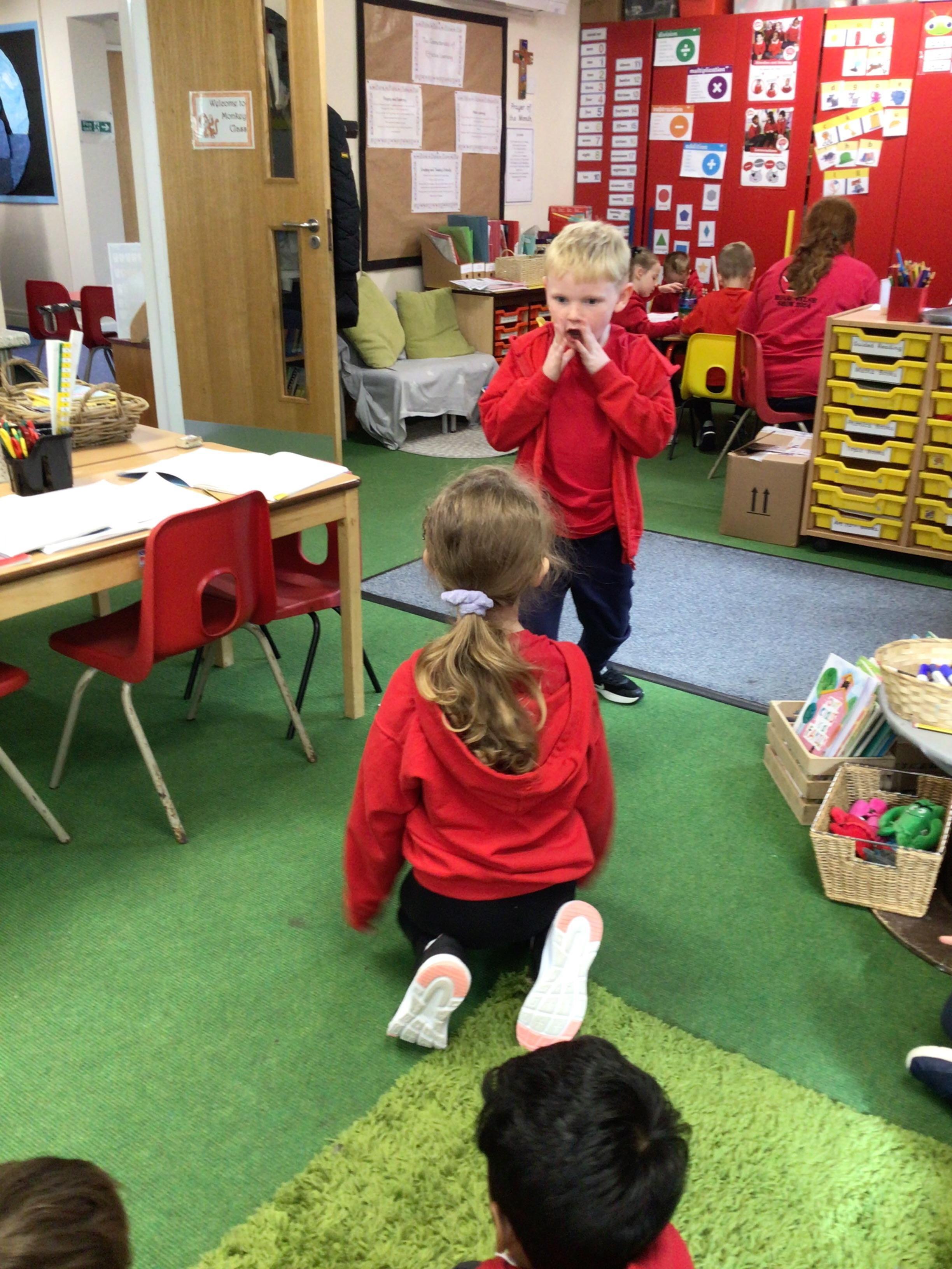 In English, we’re reading ‘The Perfect Pet’ by Fiona Roberton. This morning we acted out part of the story in pairs. The audience had to guess the characters from the story.