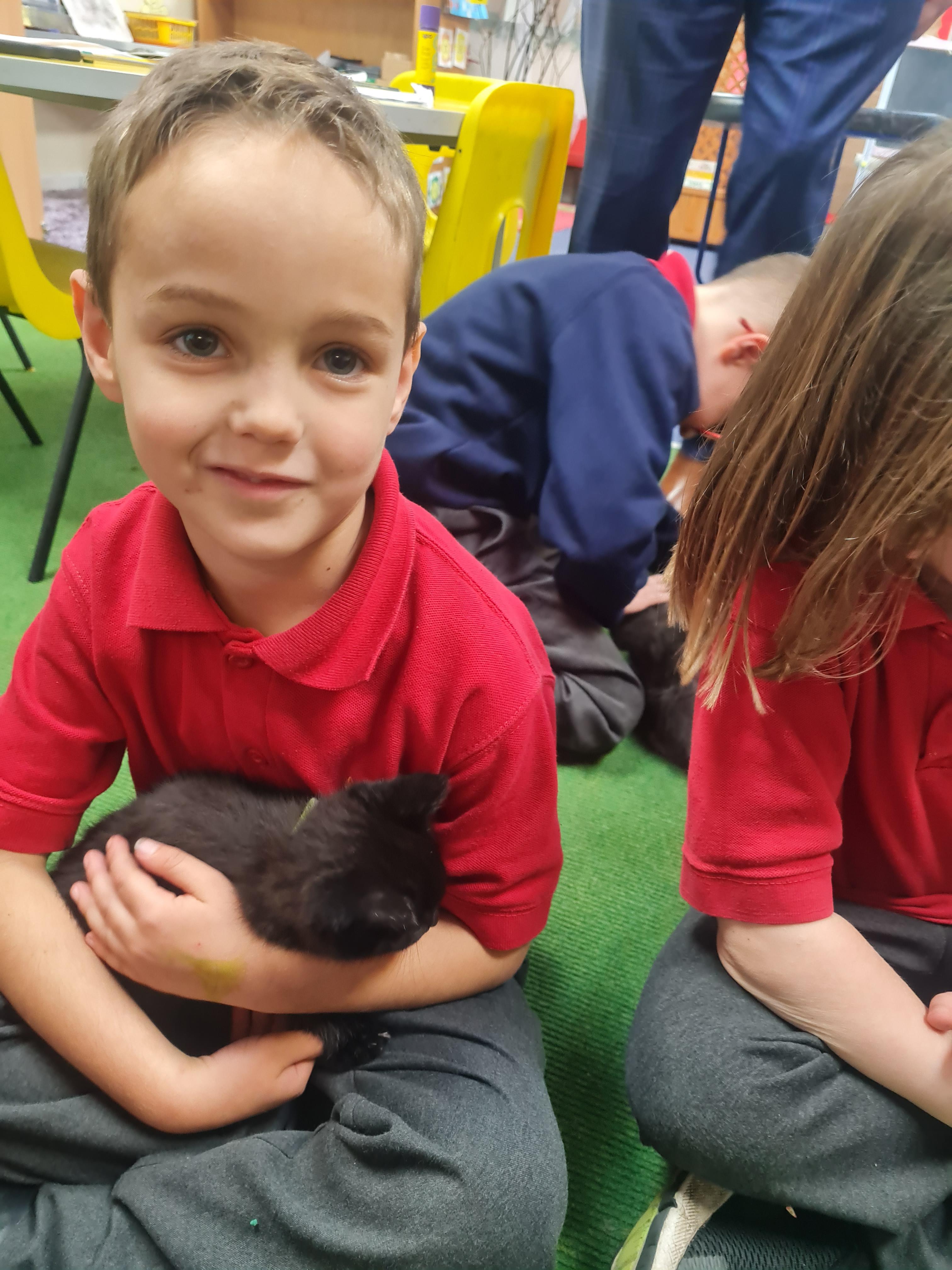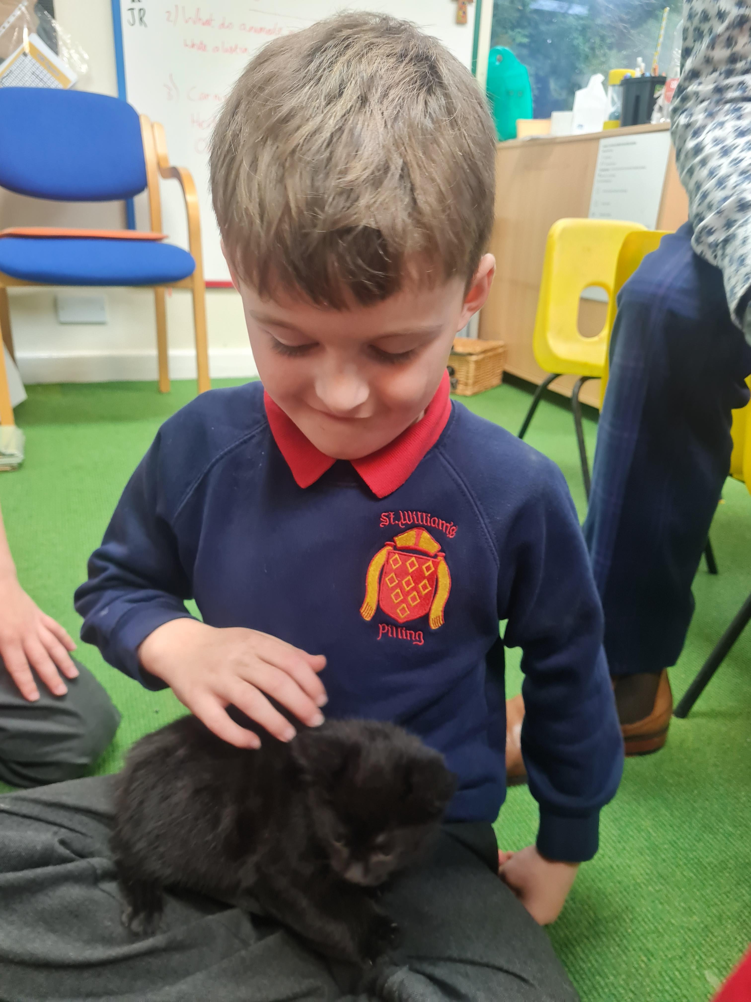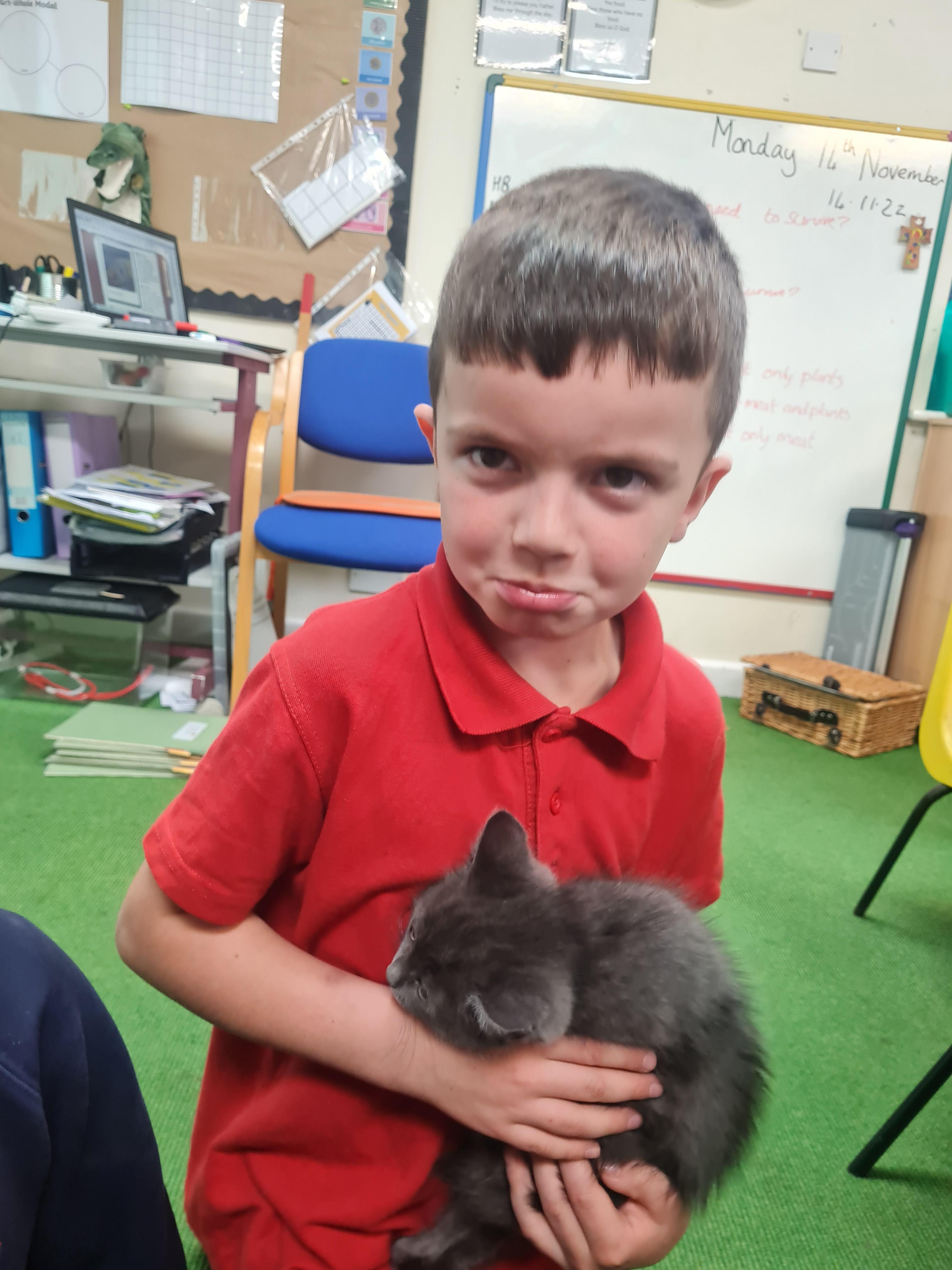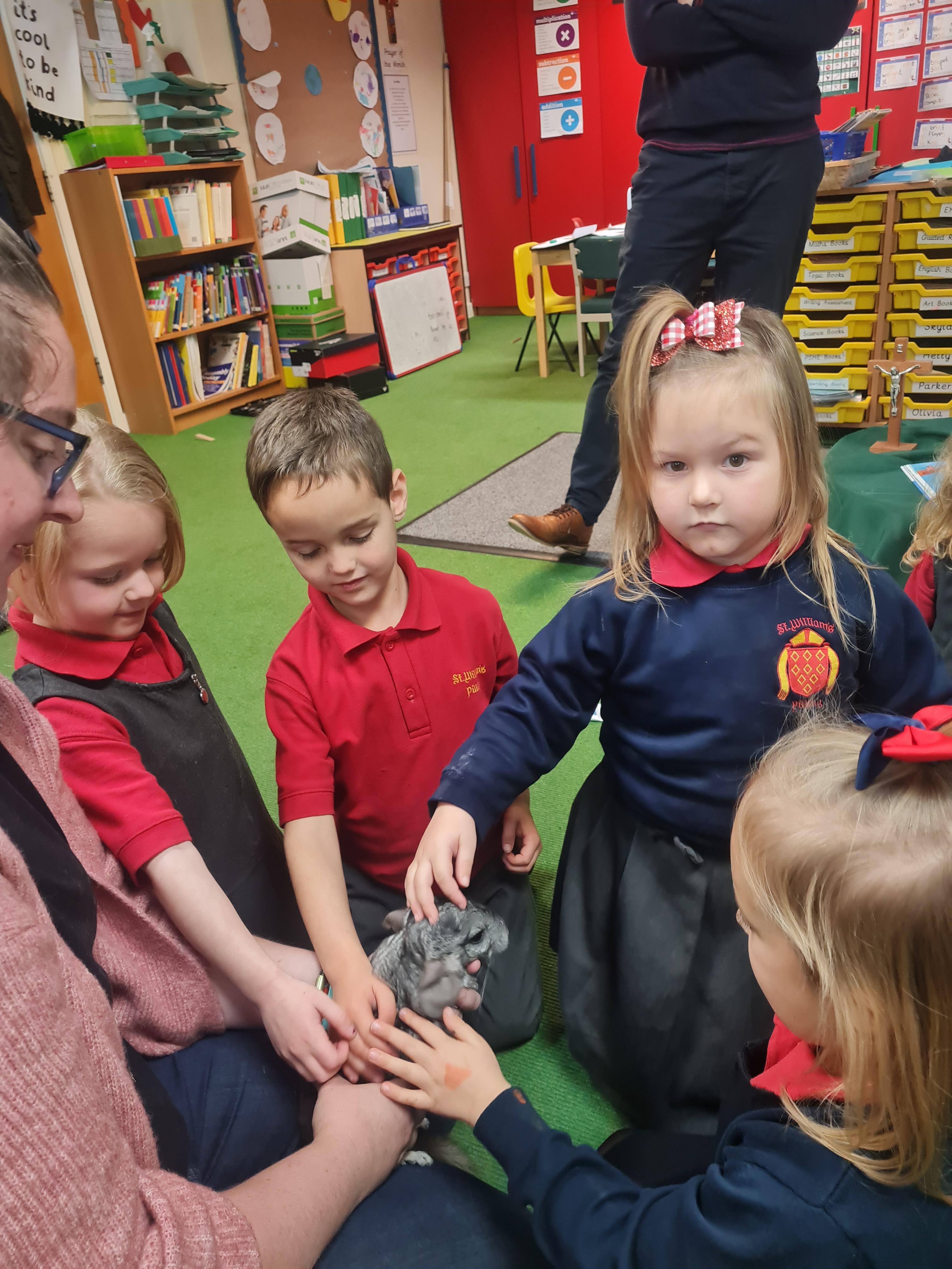 Class 1 were fortunate to have a visitor in school; she brought kittens of different ages and also chinchillas. The children discussed how the young were like their mothers and compared this to other animals that we have studied. We discussed the basic survival needs of the different animals and how humans have the same survival needs.