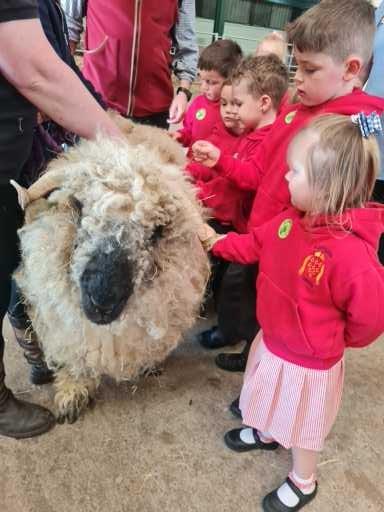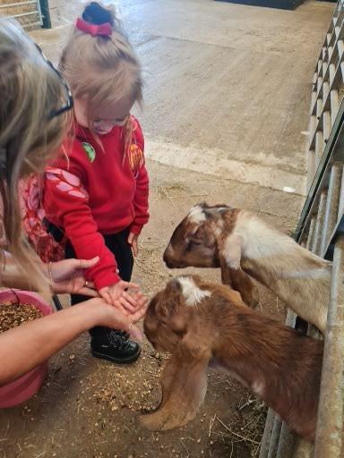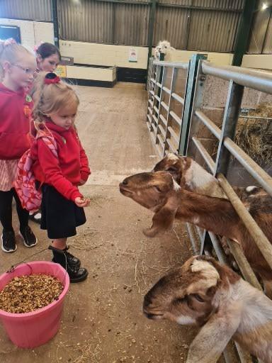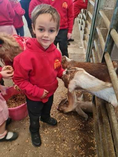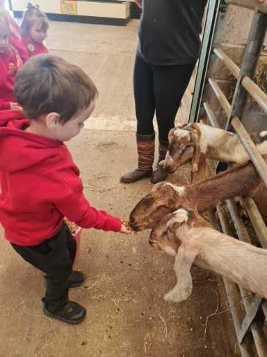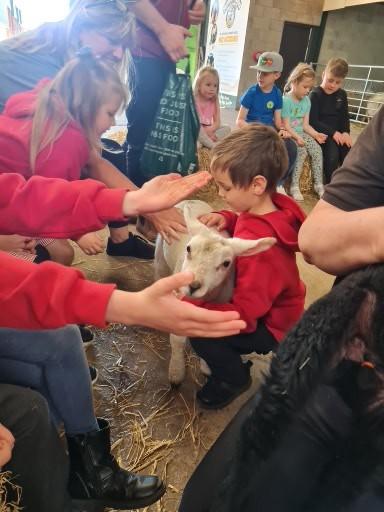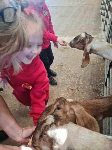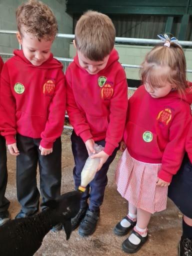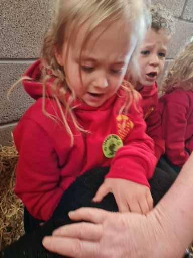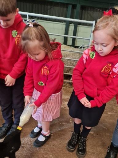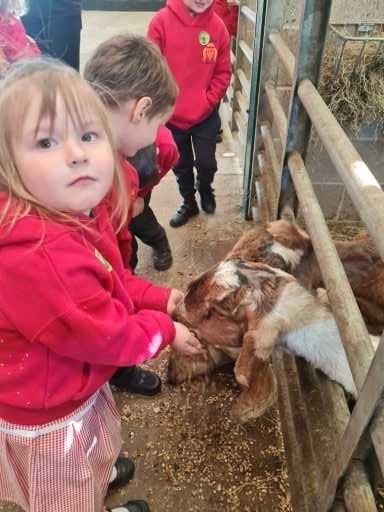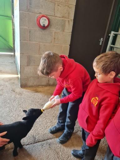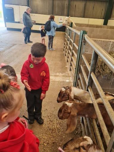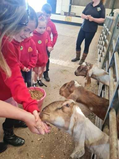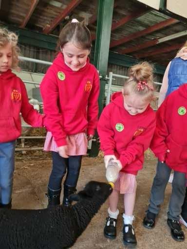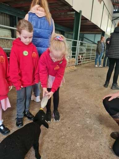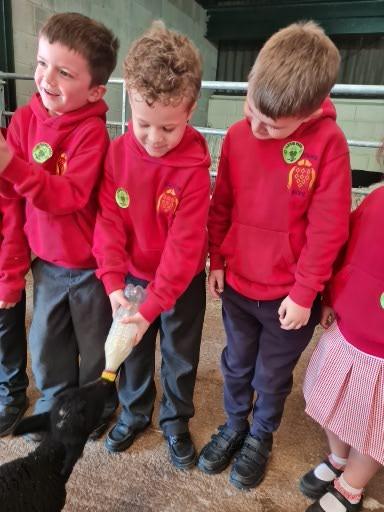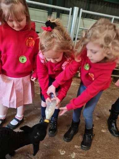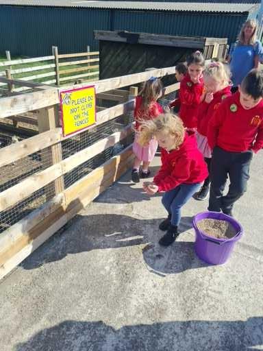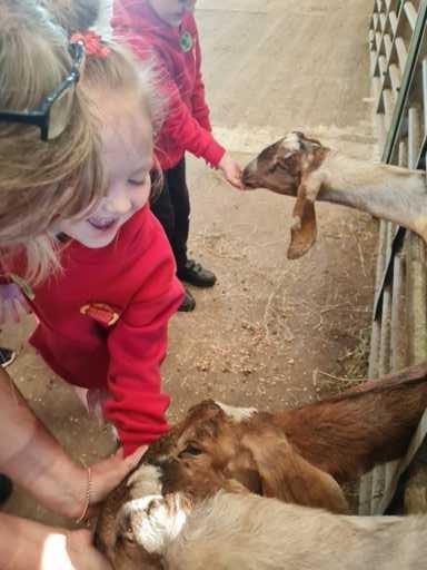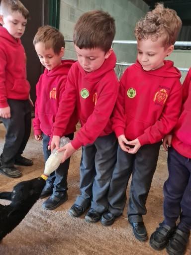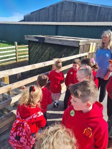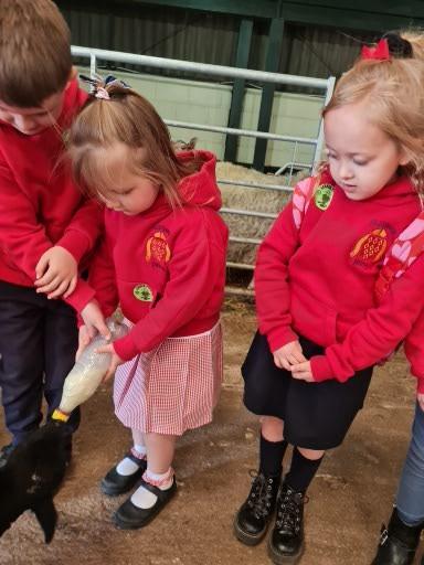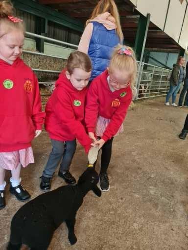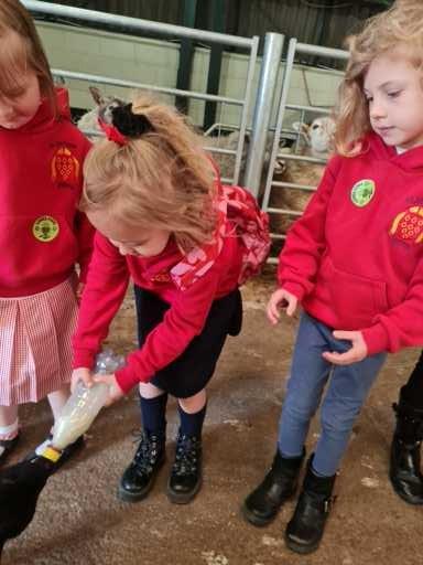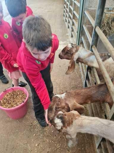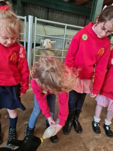 The children in Class 1 enjoyed a fantastic trip to Farmer Parrs. We were led by Farmer Trina, who taught us all about the different animals on the farm. We had a very hands on experience, having the opportunity to feed different animals, hold a chick, stroke pigs, goats and llamas, bottle feed a lamb and stroke an owl.