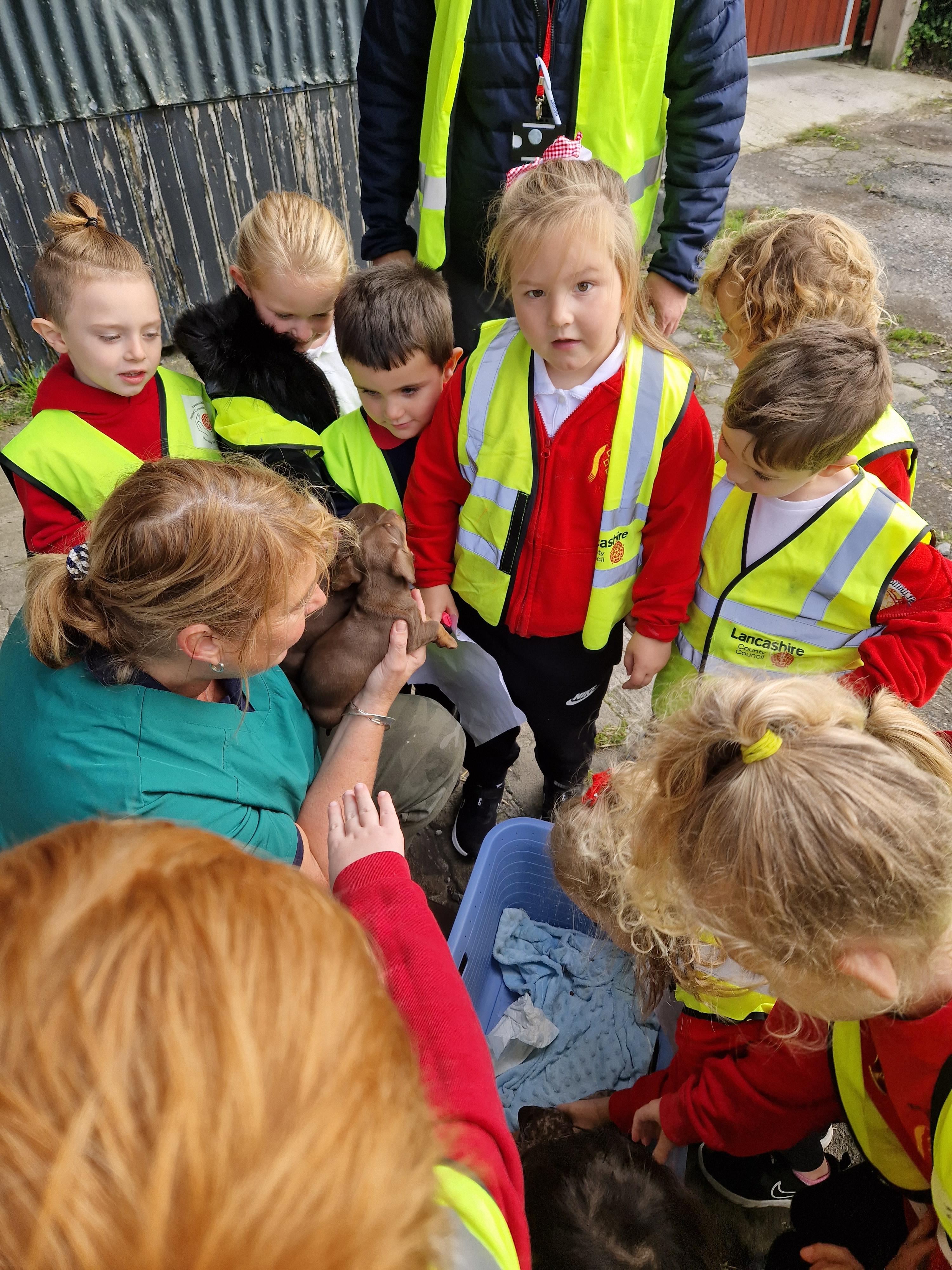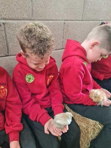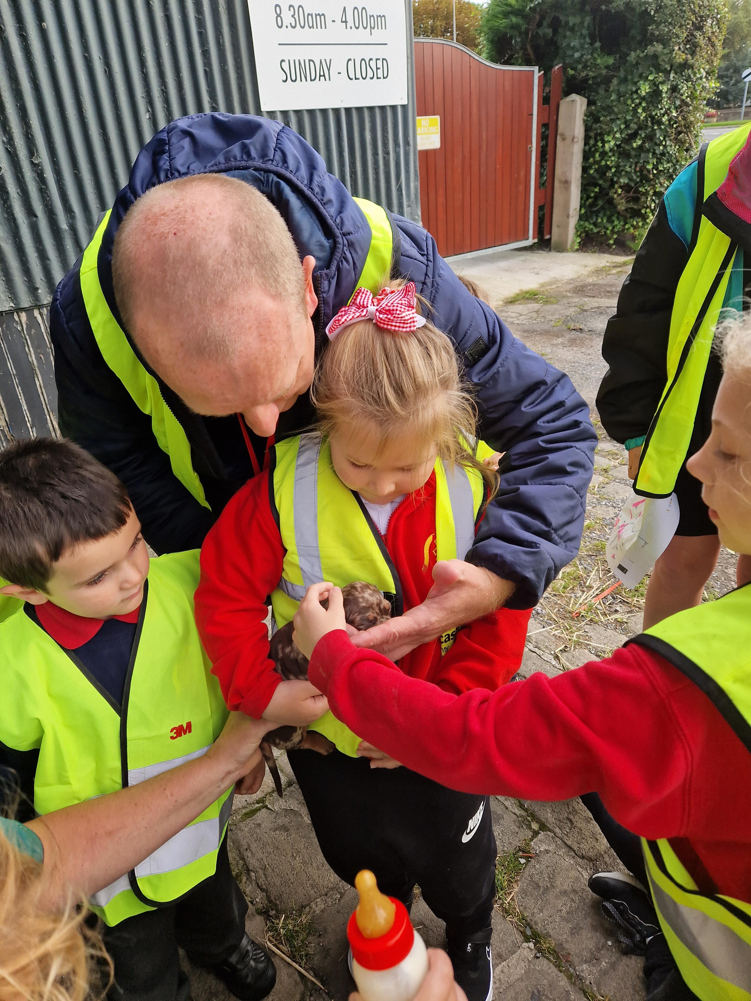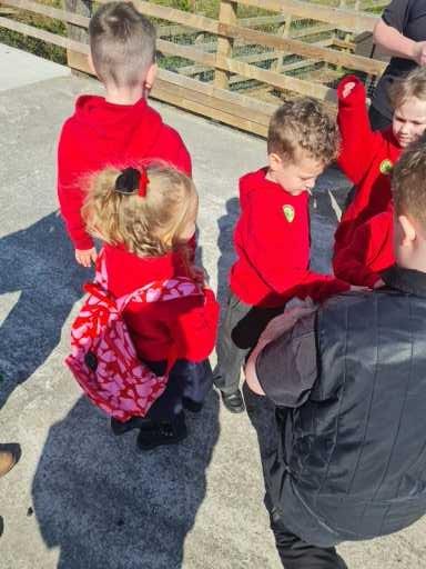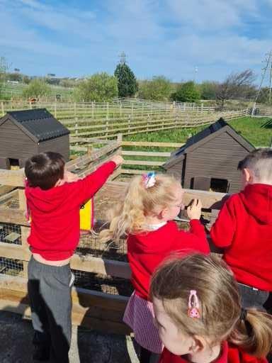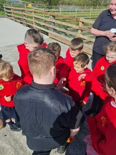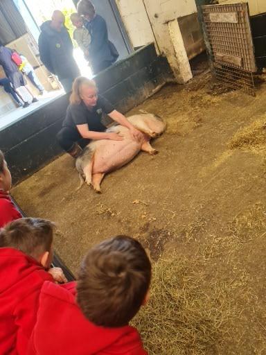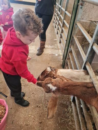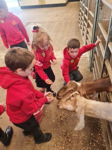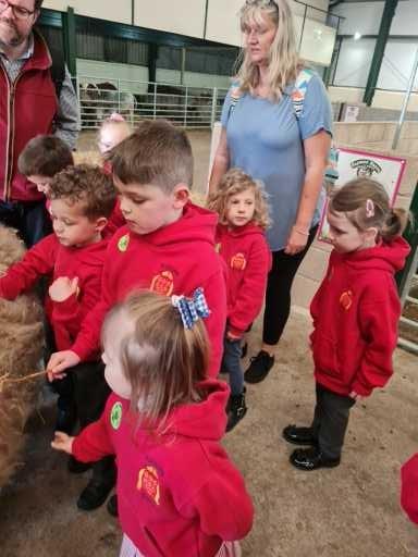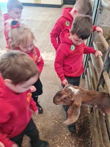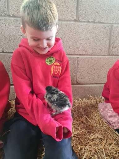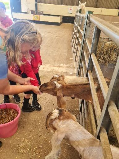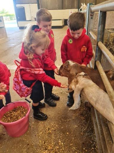 The children in Class 1 enjoyed a fantastic trip to Farmer Parrs. We were led by Farmer Trina, who taught us all about the different animals on the farm. We had a very hands on experience, having the opportunity to feed different animals, hold a chick, stroke pigs, goats and llamas, bottle feed a lamb and stroke an owl.