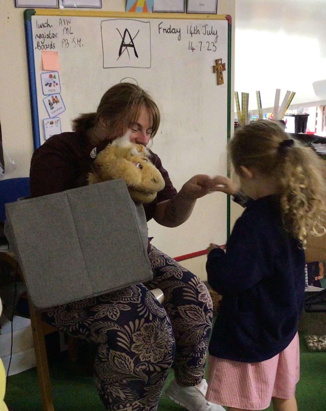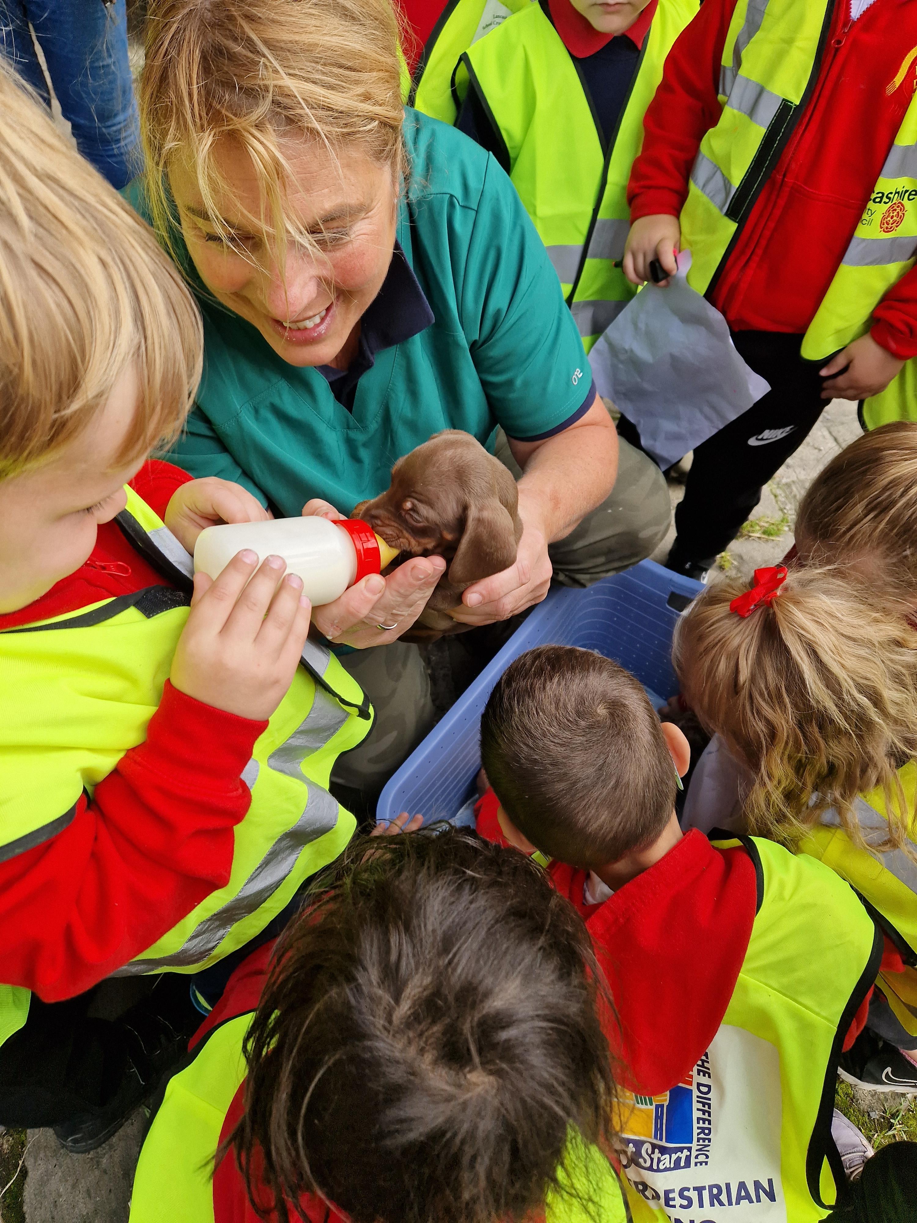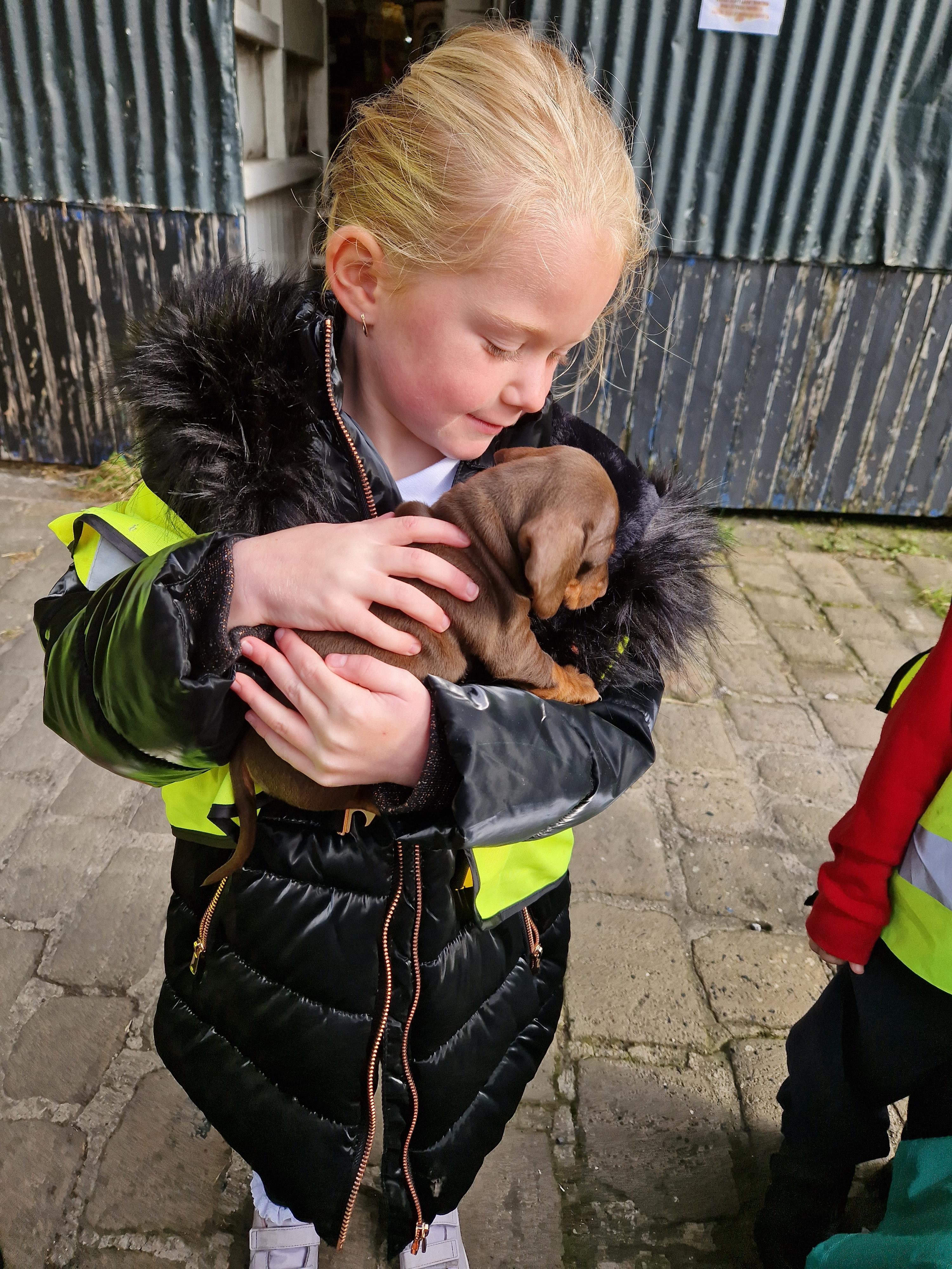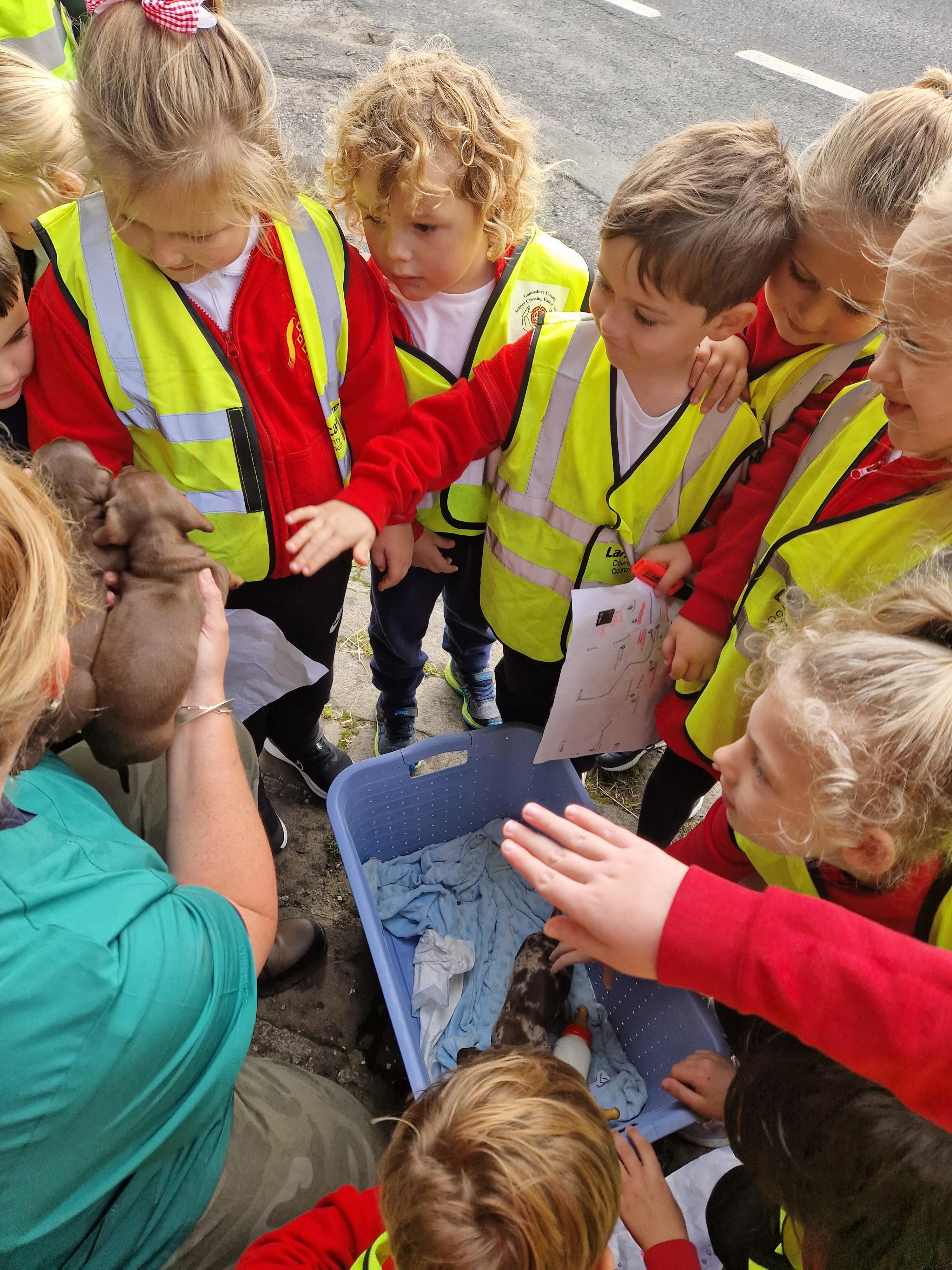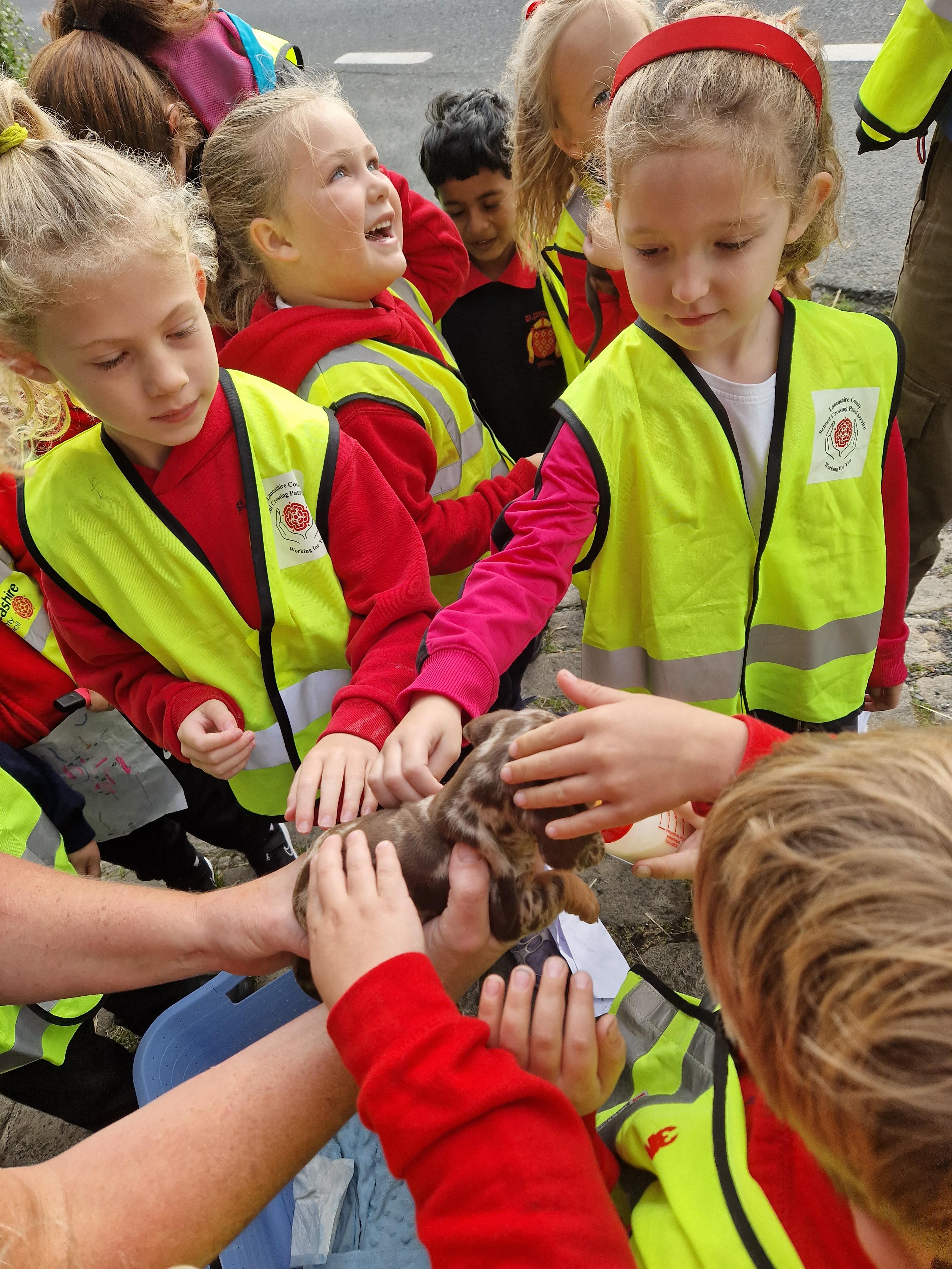 The children in Class 1 enjoyed a fantastic trip to Farmer Parrs. We were led by Farmer Trina, who taught us all about the different animals on the farm. We had a very hands on experience, having the opportunity to feed different animals, hold a chick, stroke pigs, goats and llamas, bottle feed a lamb and stroke an owl.