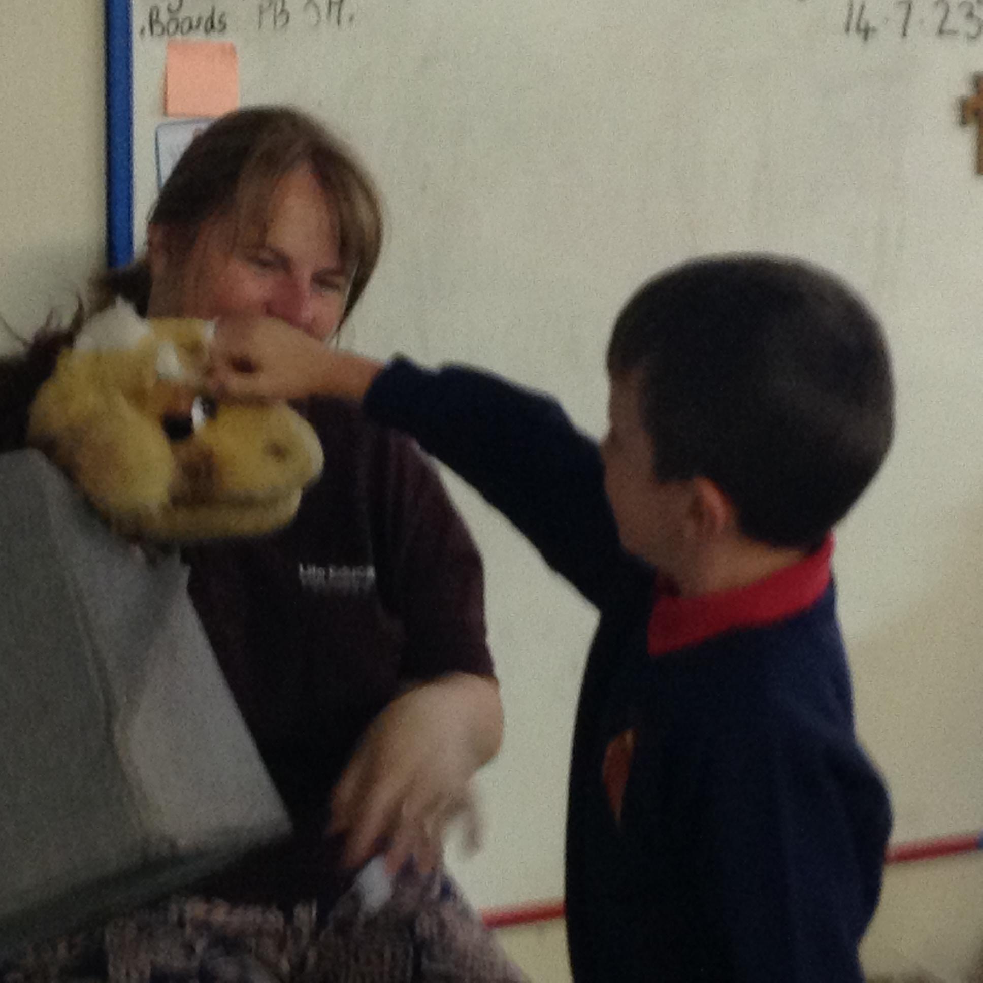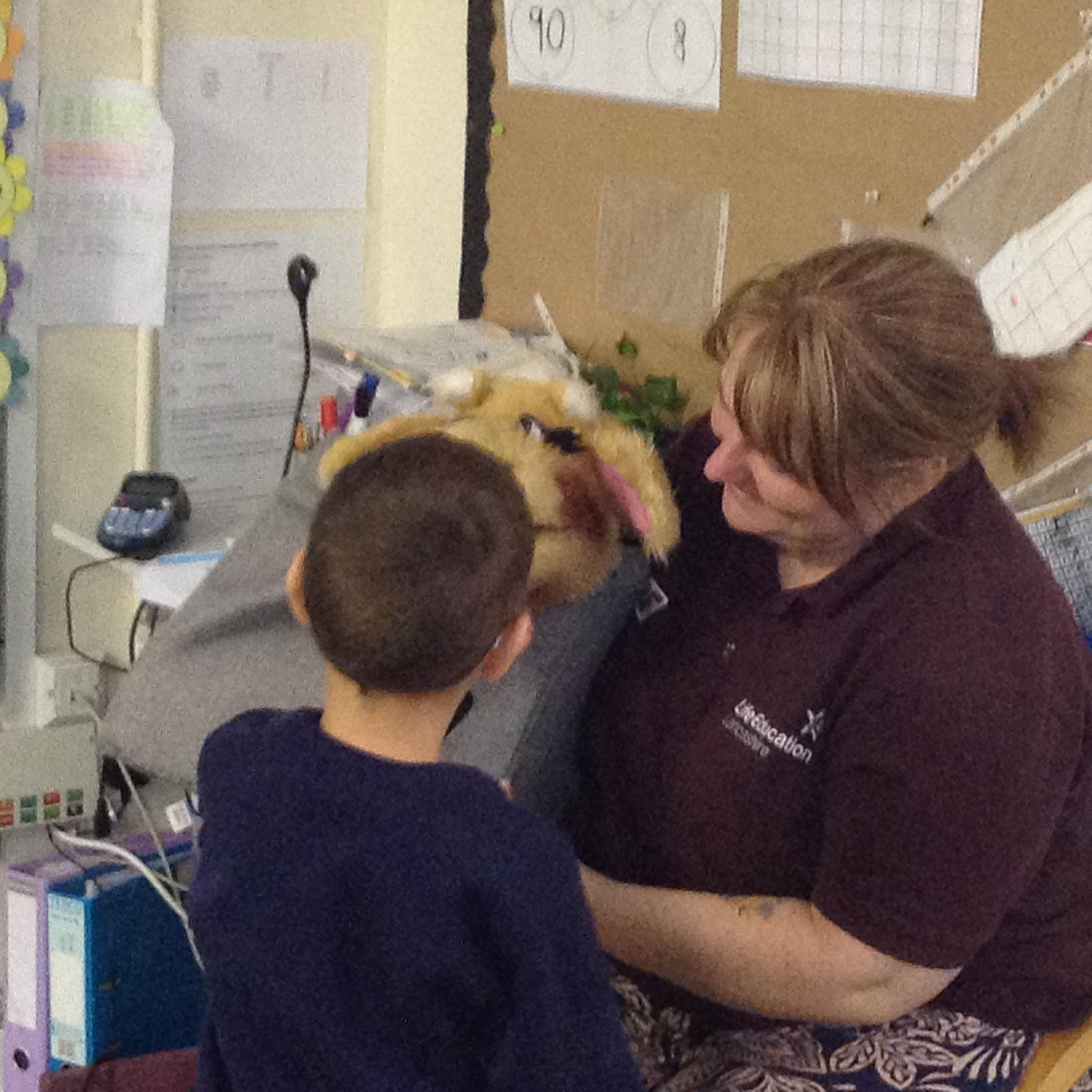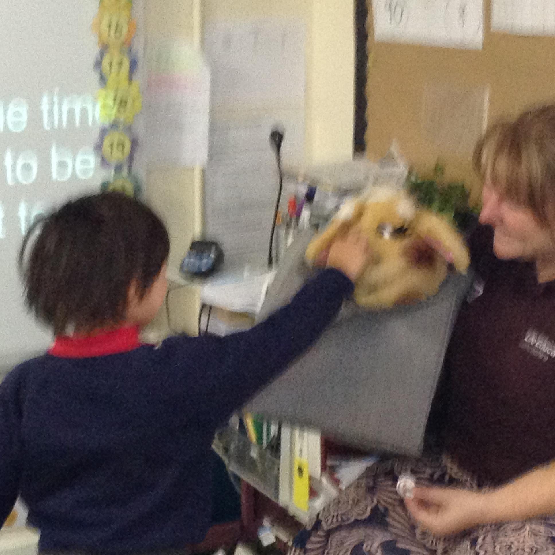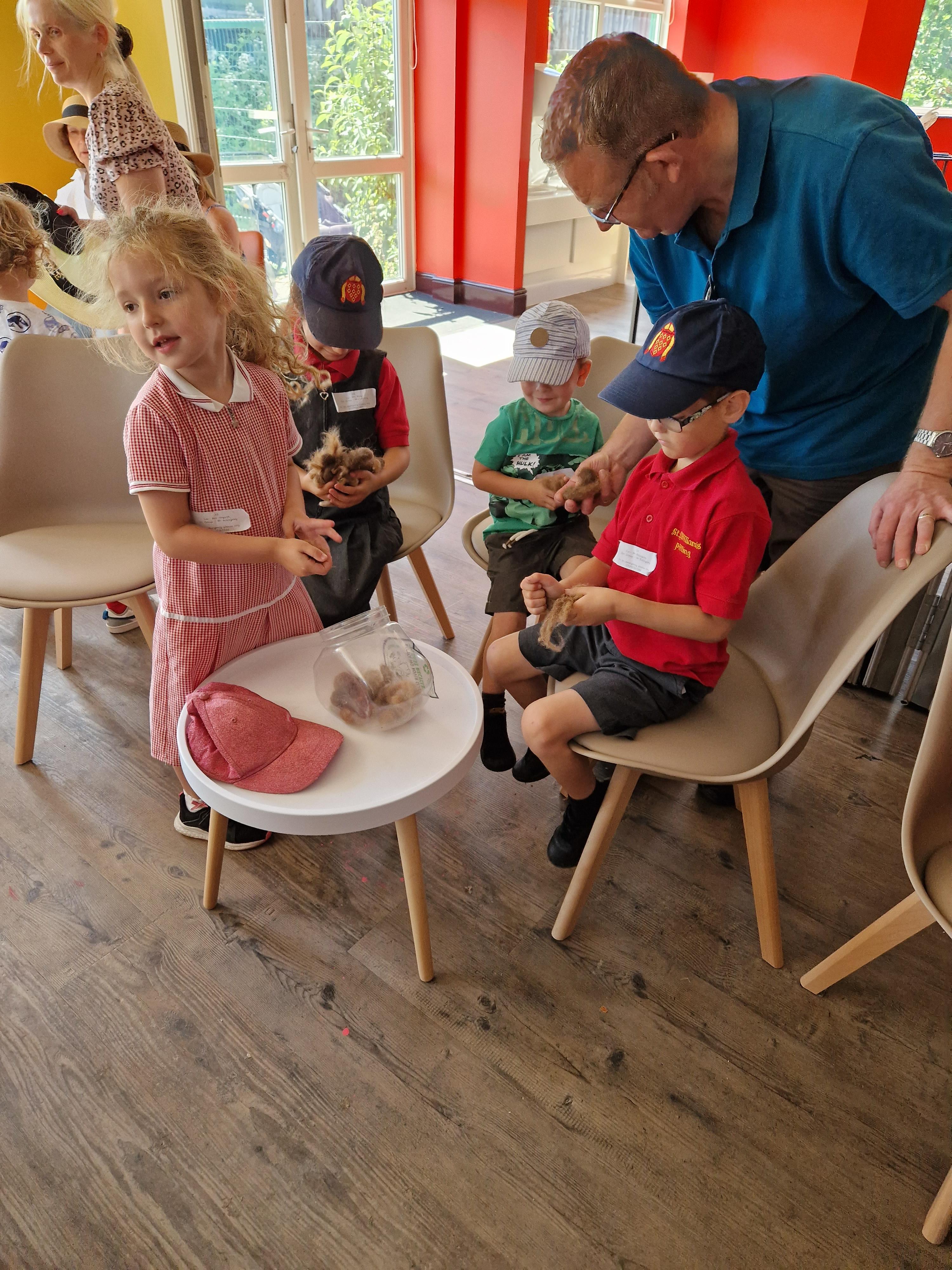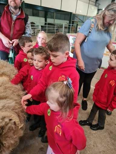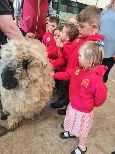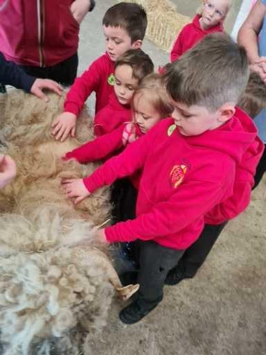 We used our sense of touch to describe how the animal felt. The children were amazed at how warm the sheep wool was. The children were very good at thinking about how the wool would be used when it had been sheared off the sheep.