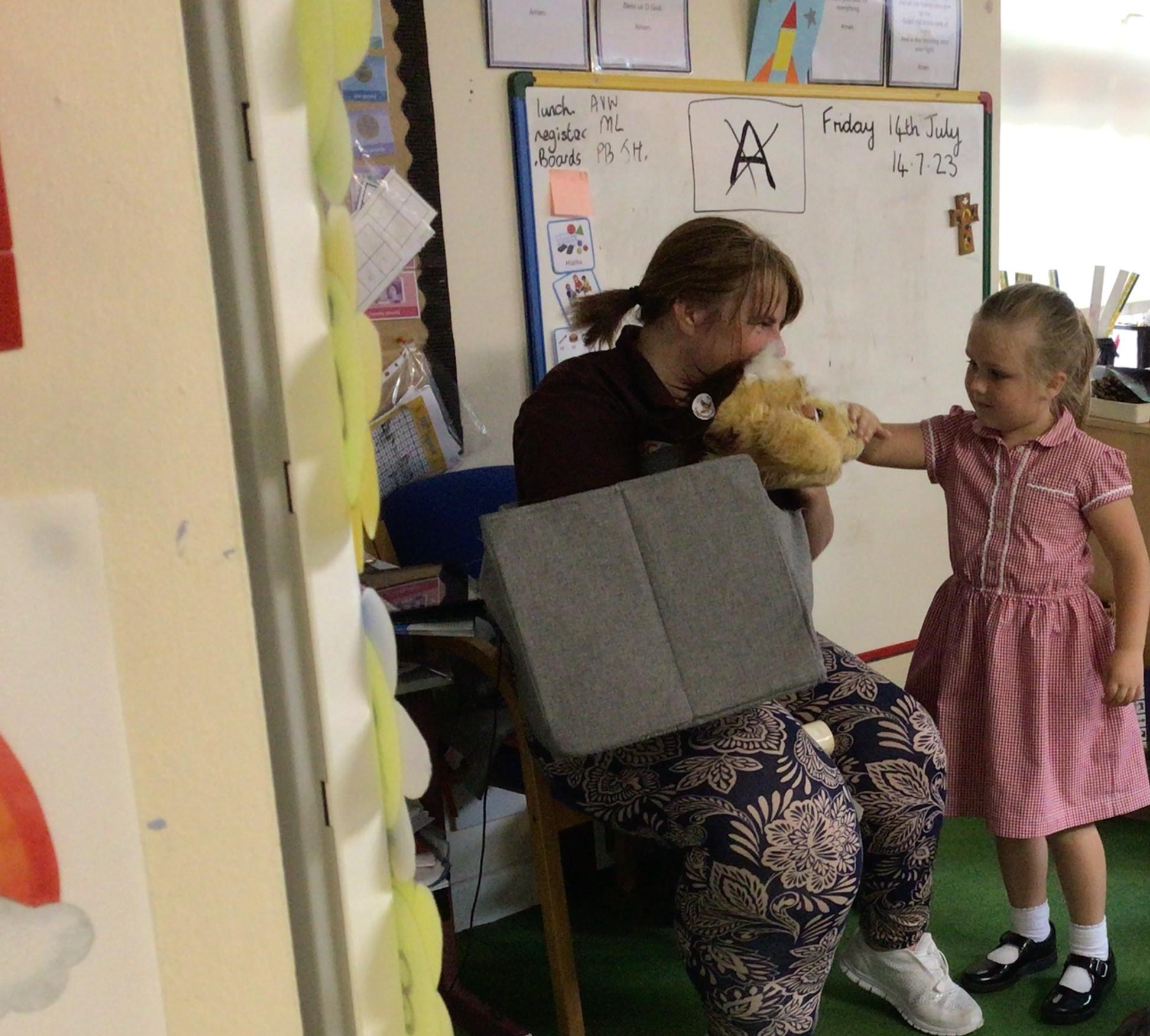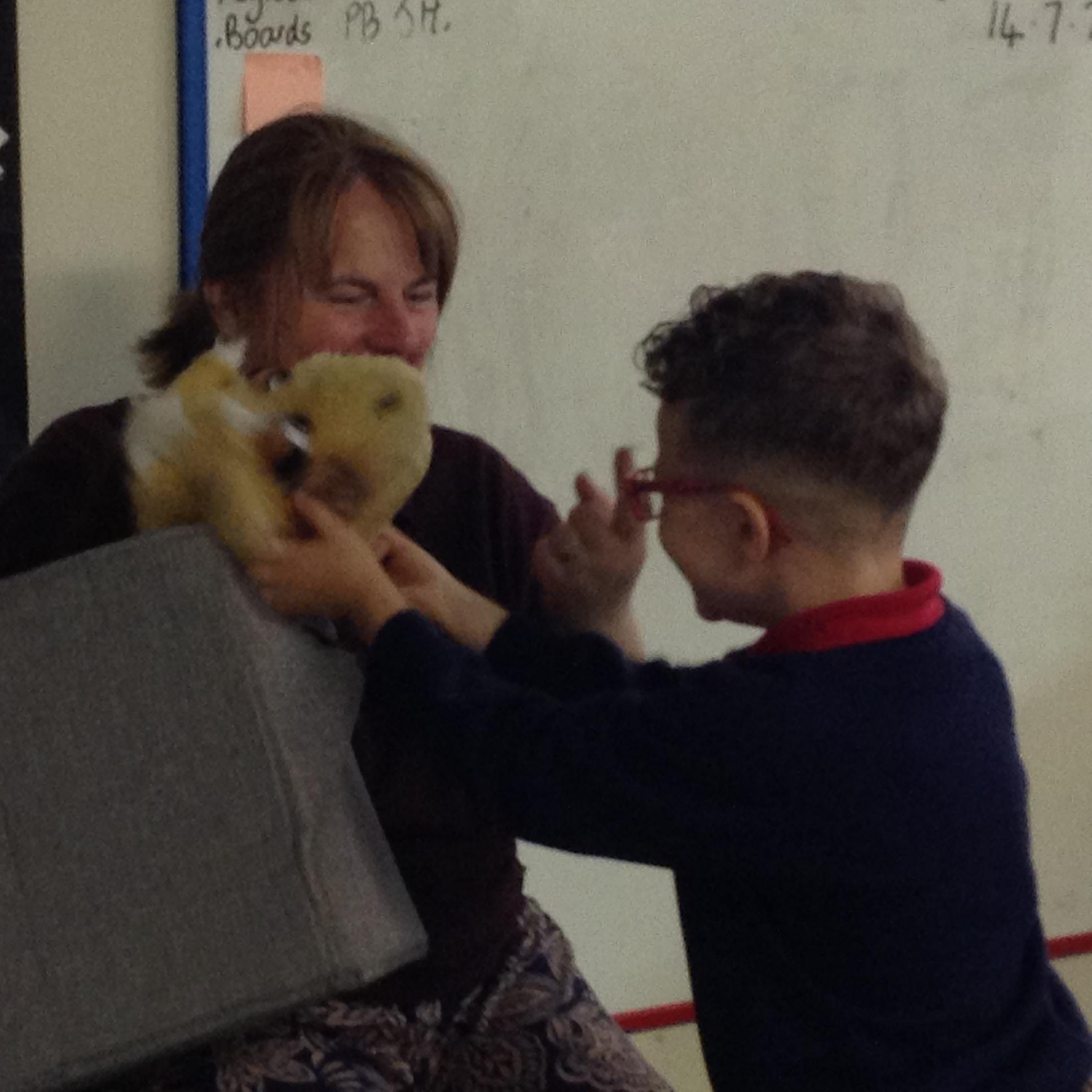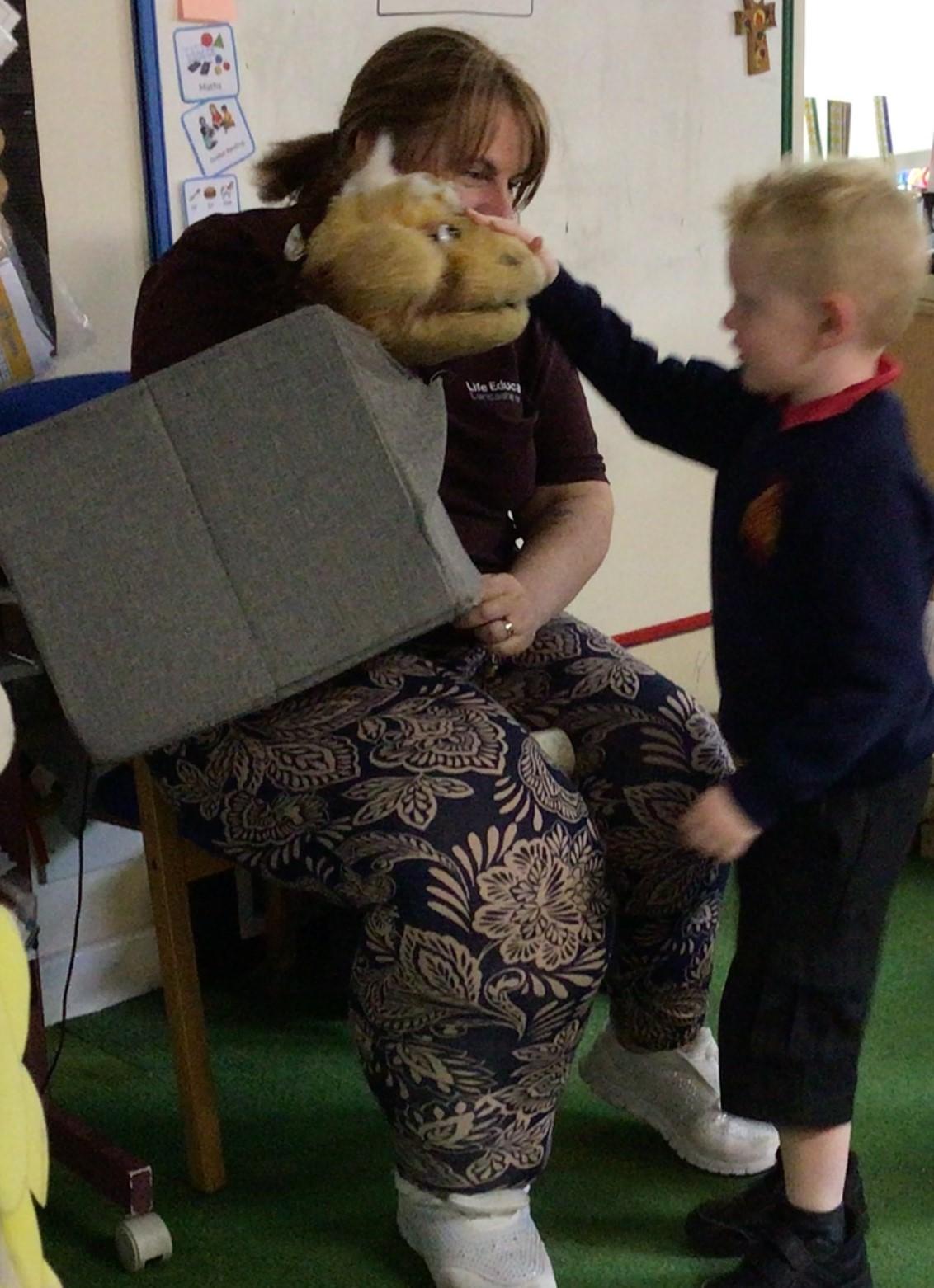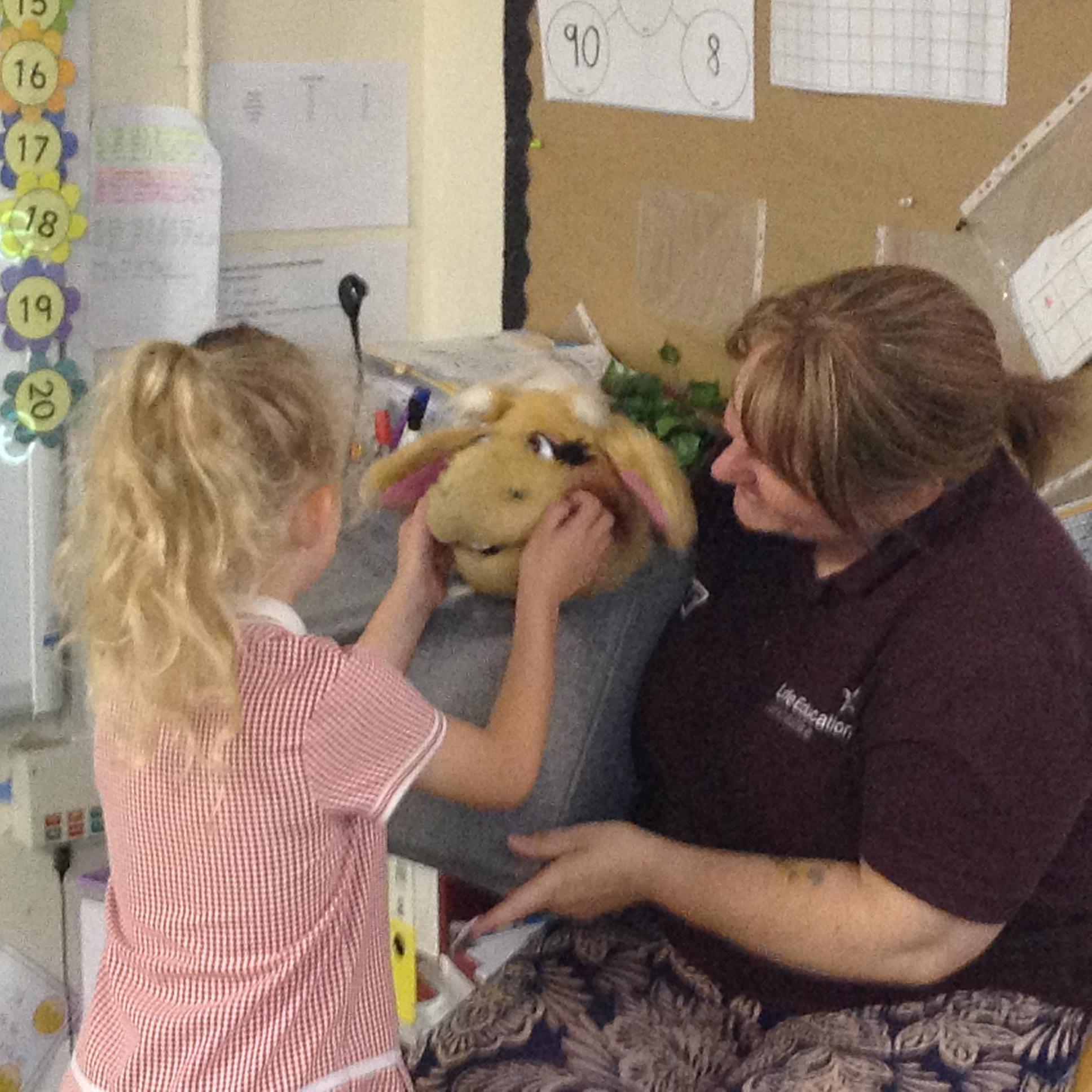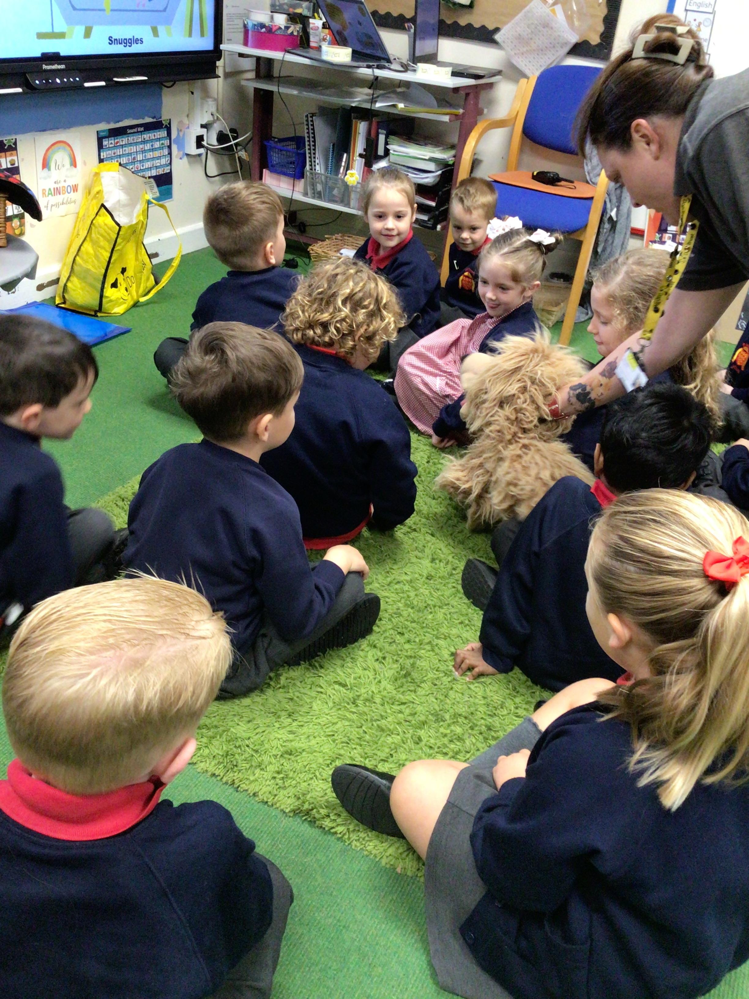 We used our sense of touch to describe how the animal felt. The children were amazed at how warm the sheep wool was. The children were very good at thinking about how the wool would be used when it had been sheared off the sheep.