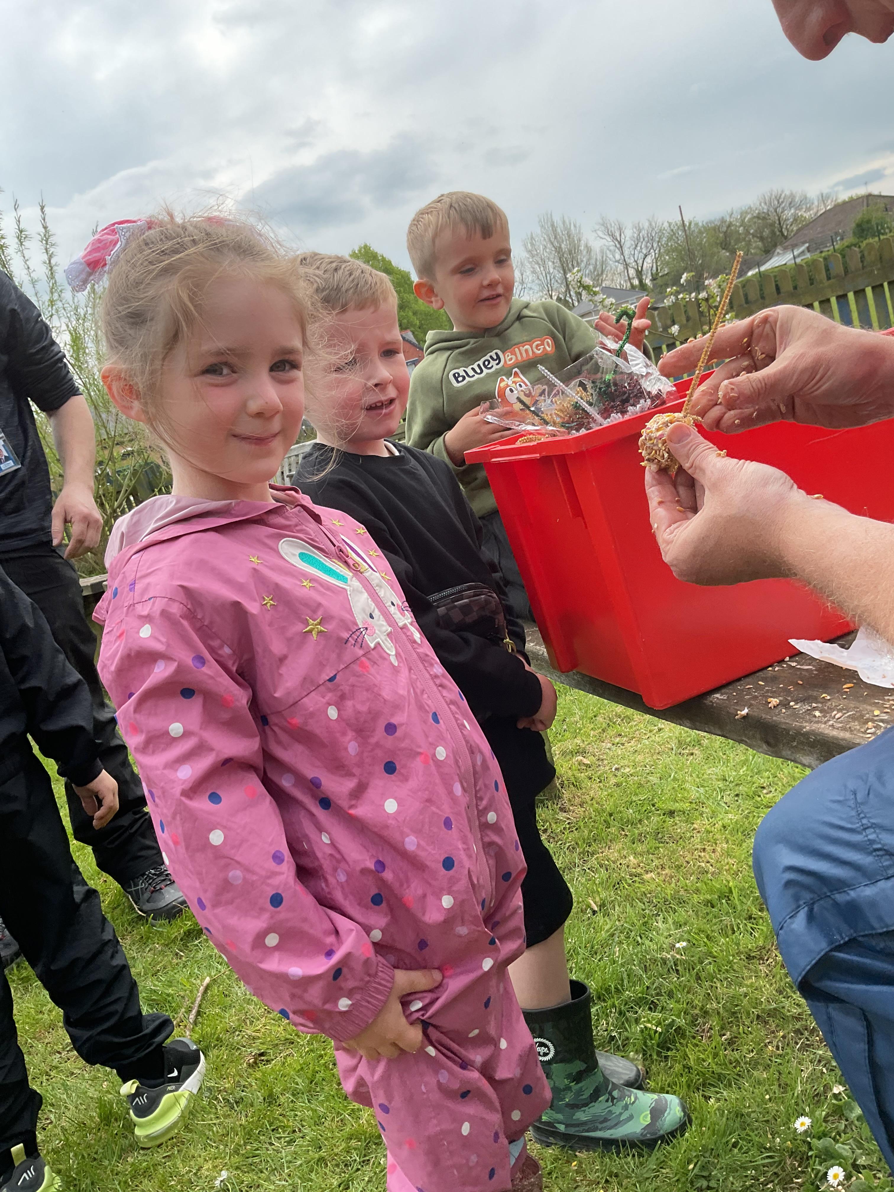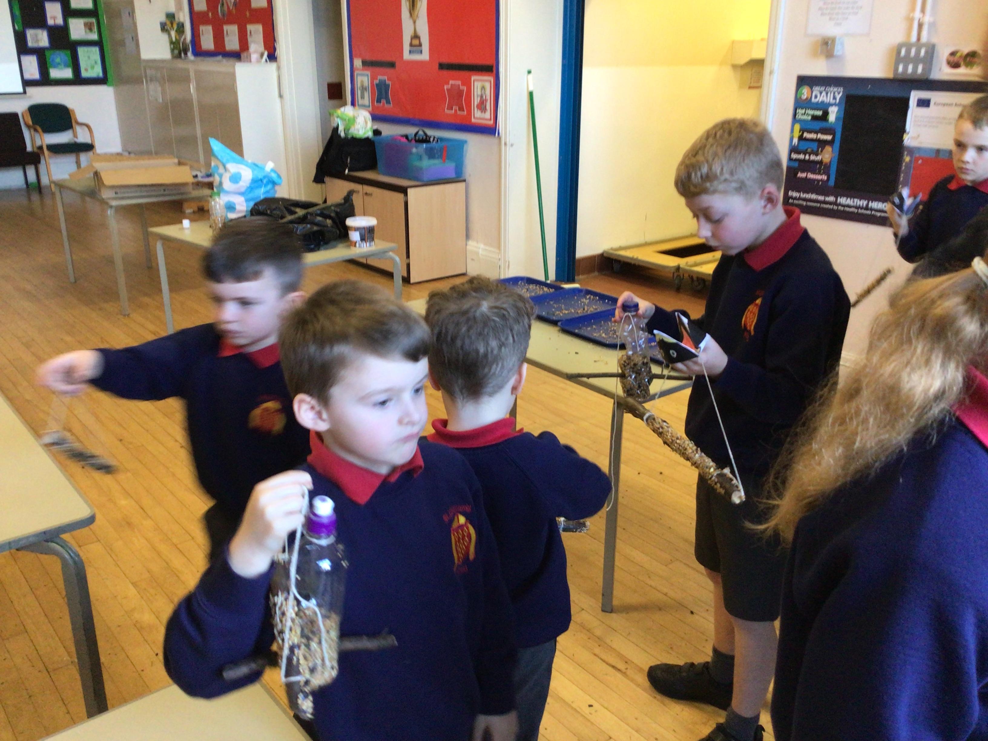 Mr Harding from Cardinal Allen High School led a workshop creating bird feeders. The children had to follow instructions carefully. They used recycled bottles which initiated a conversation about how we can reuse lots of different waste items. After completing the bird feeders, the children then took them to our outdoor space to enhance the nature areas.