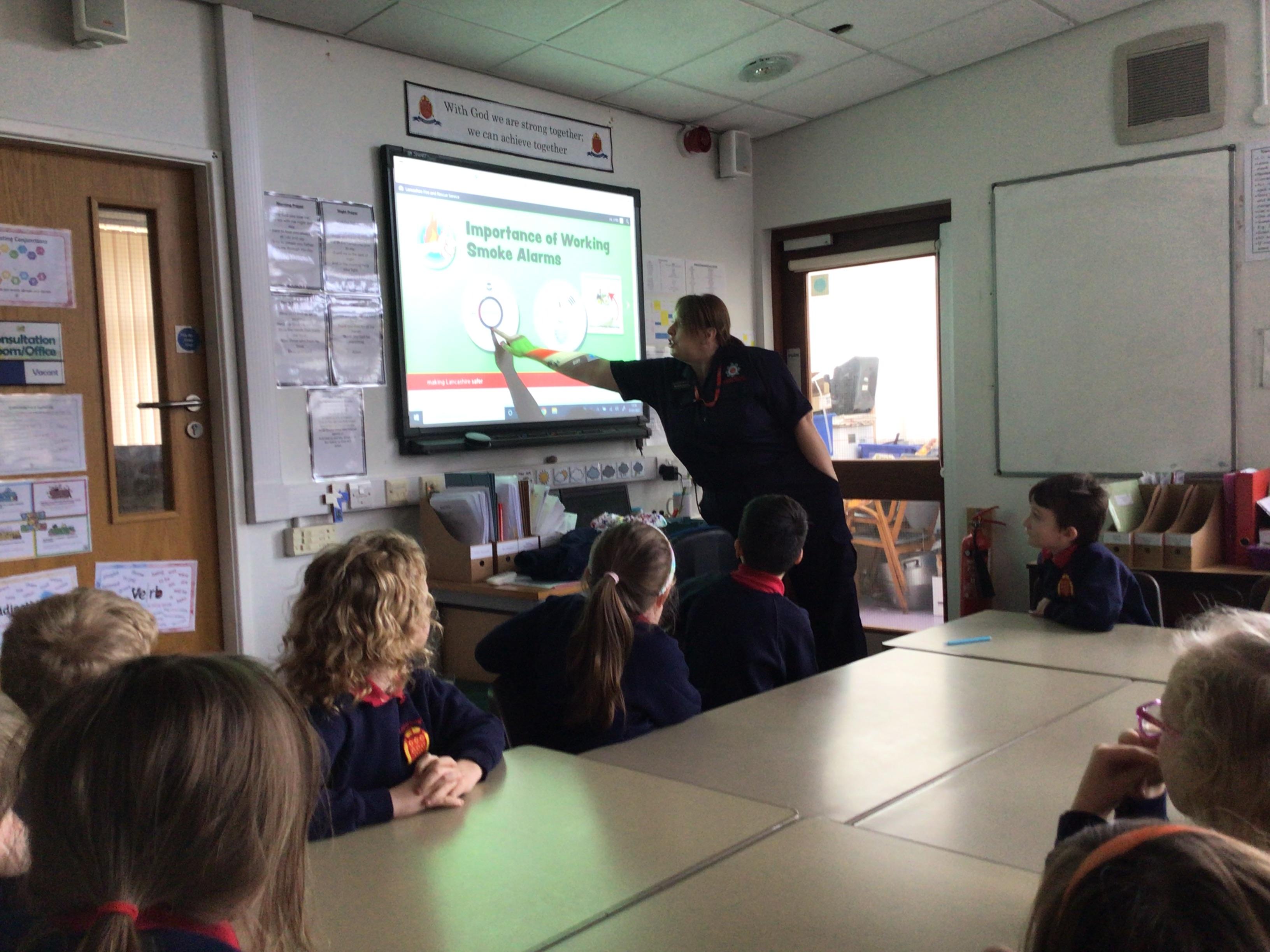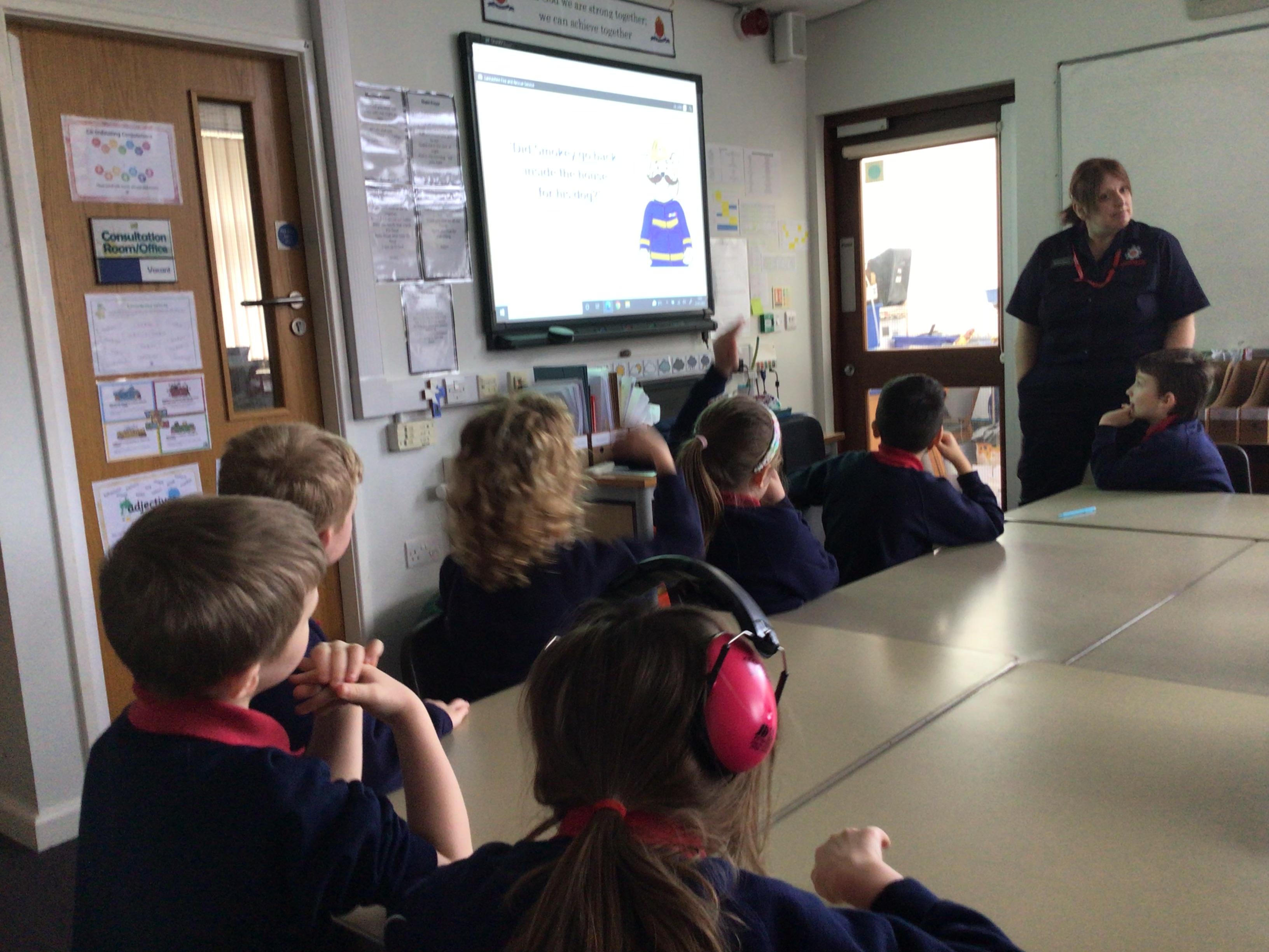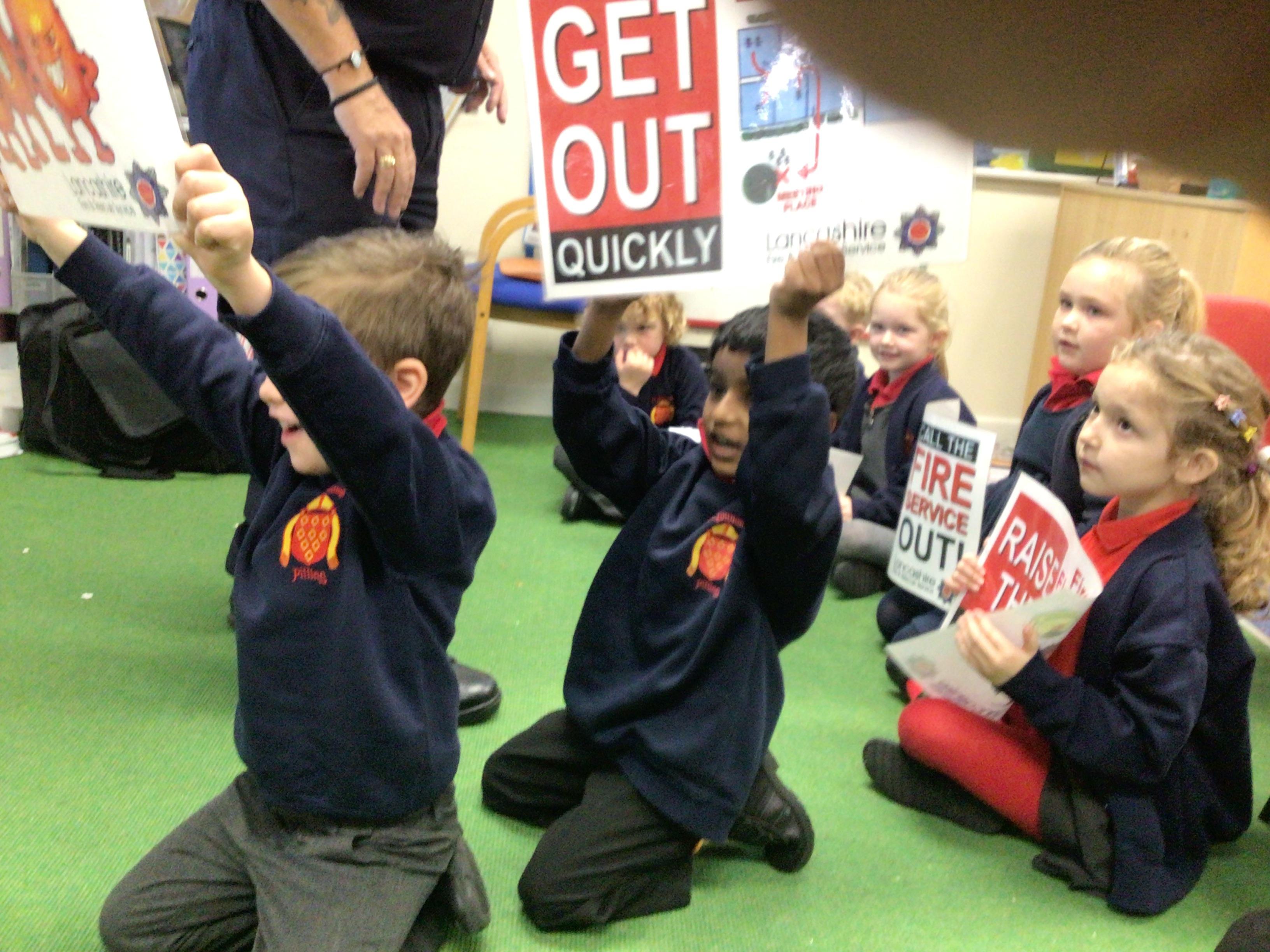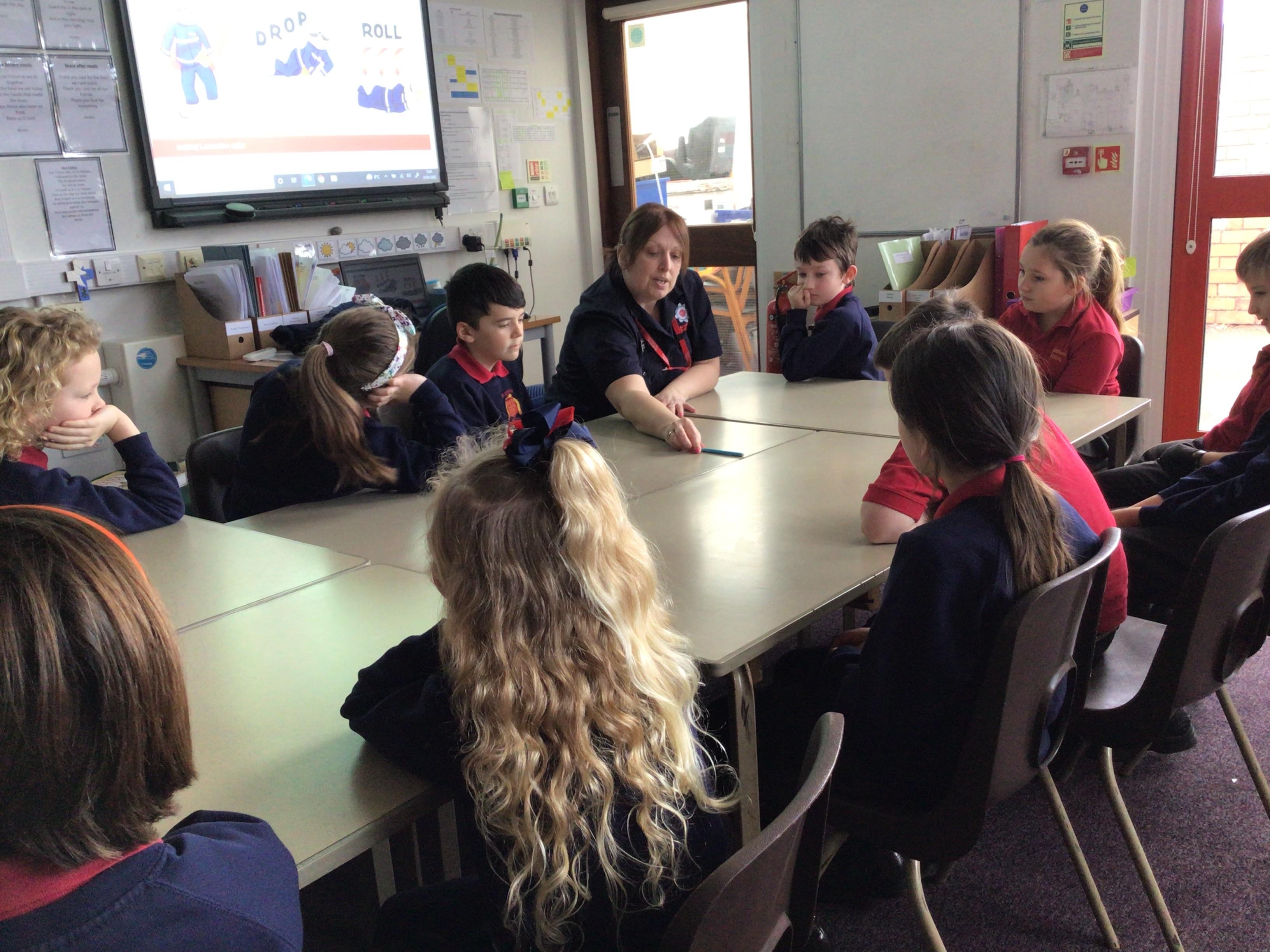 A representative from Lancashire Fire and Rescue service came to work with all children from Year 2 to Year 6. She discussed what to do in the event of a fire and how to exit the house safely. The children soon learn that they needed to use the back of the hand to check for heat as they approached a closed door. They were all able to demonstrate the "Stop, Drop and Roll" technique.