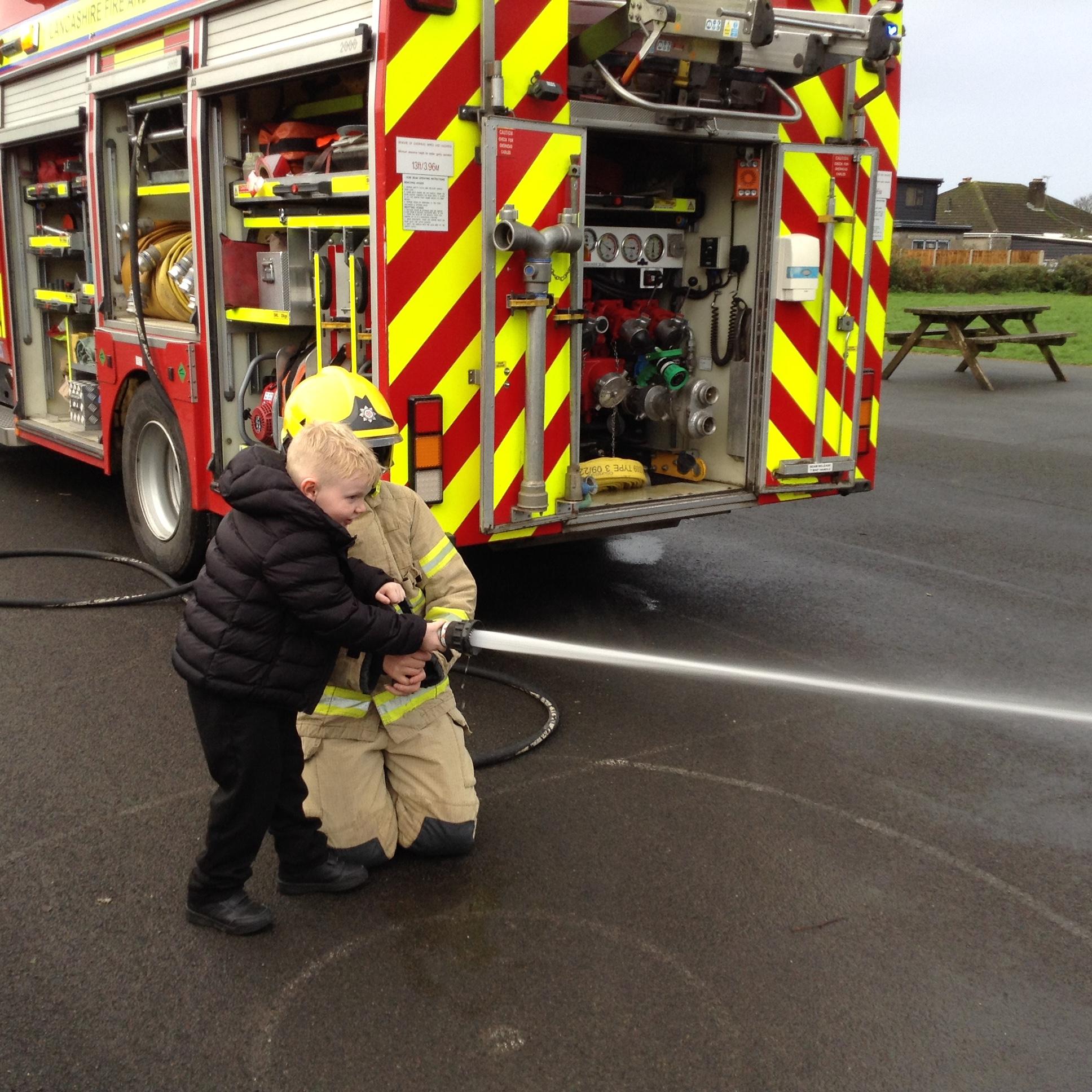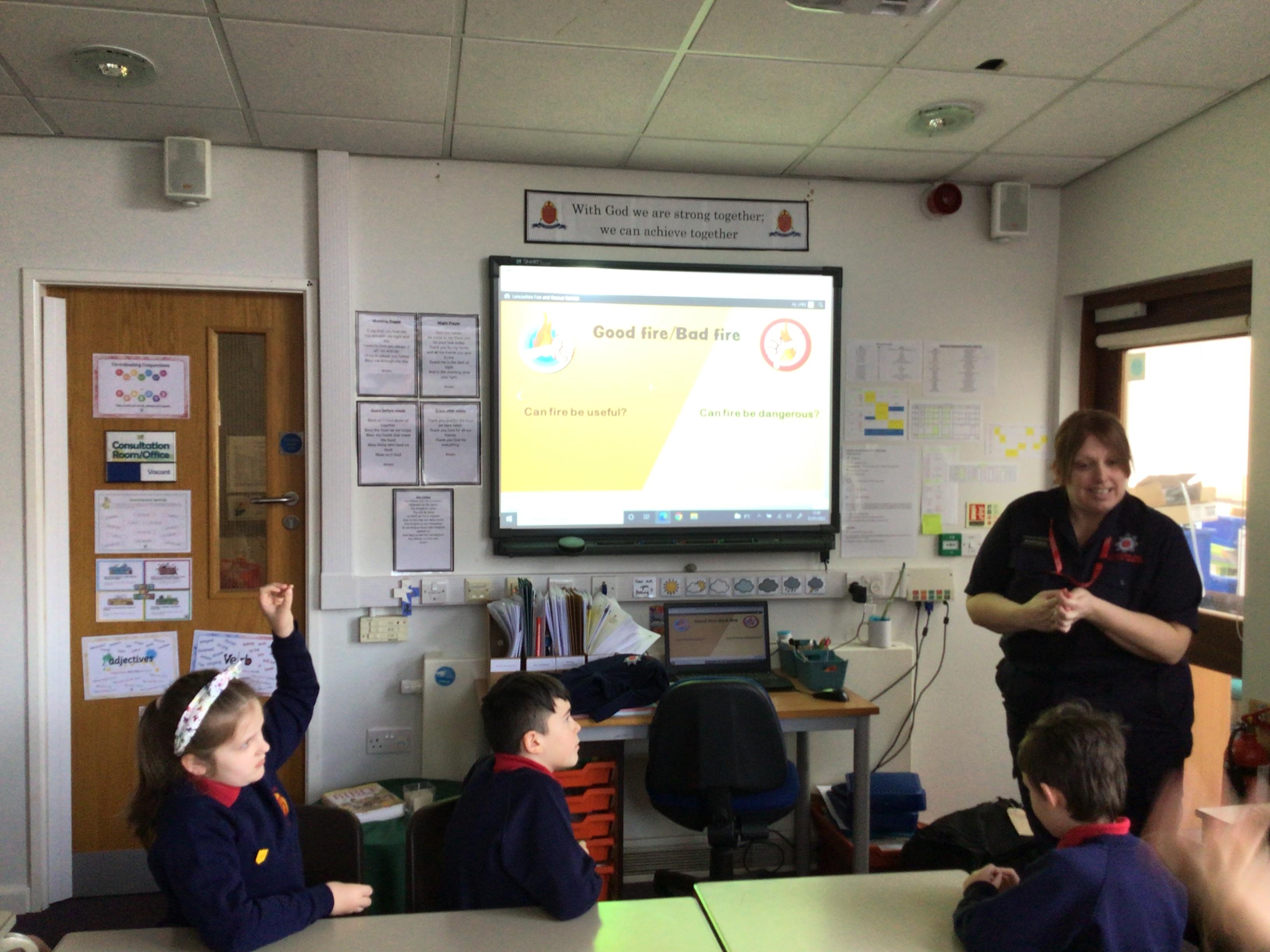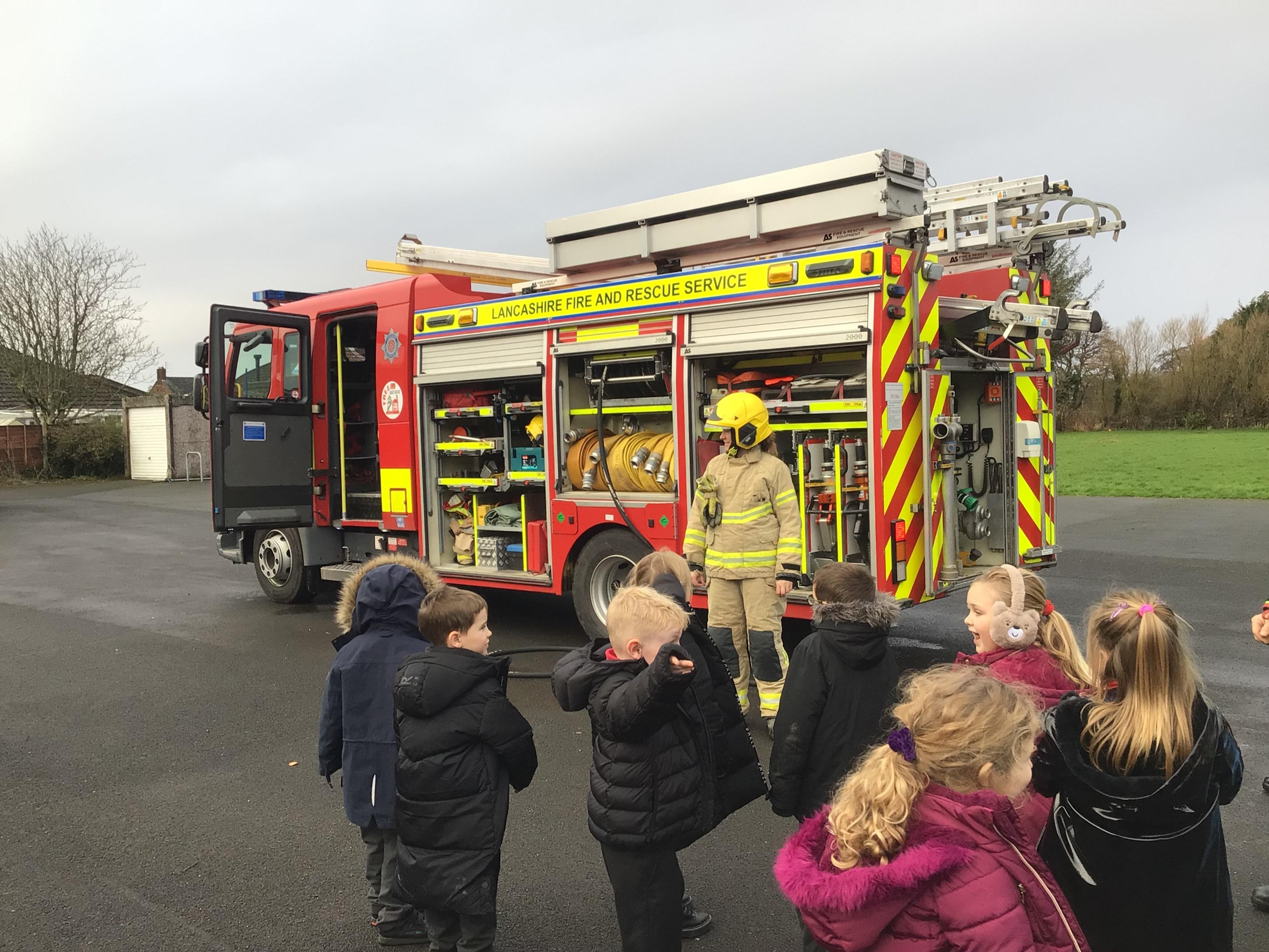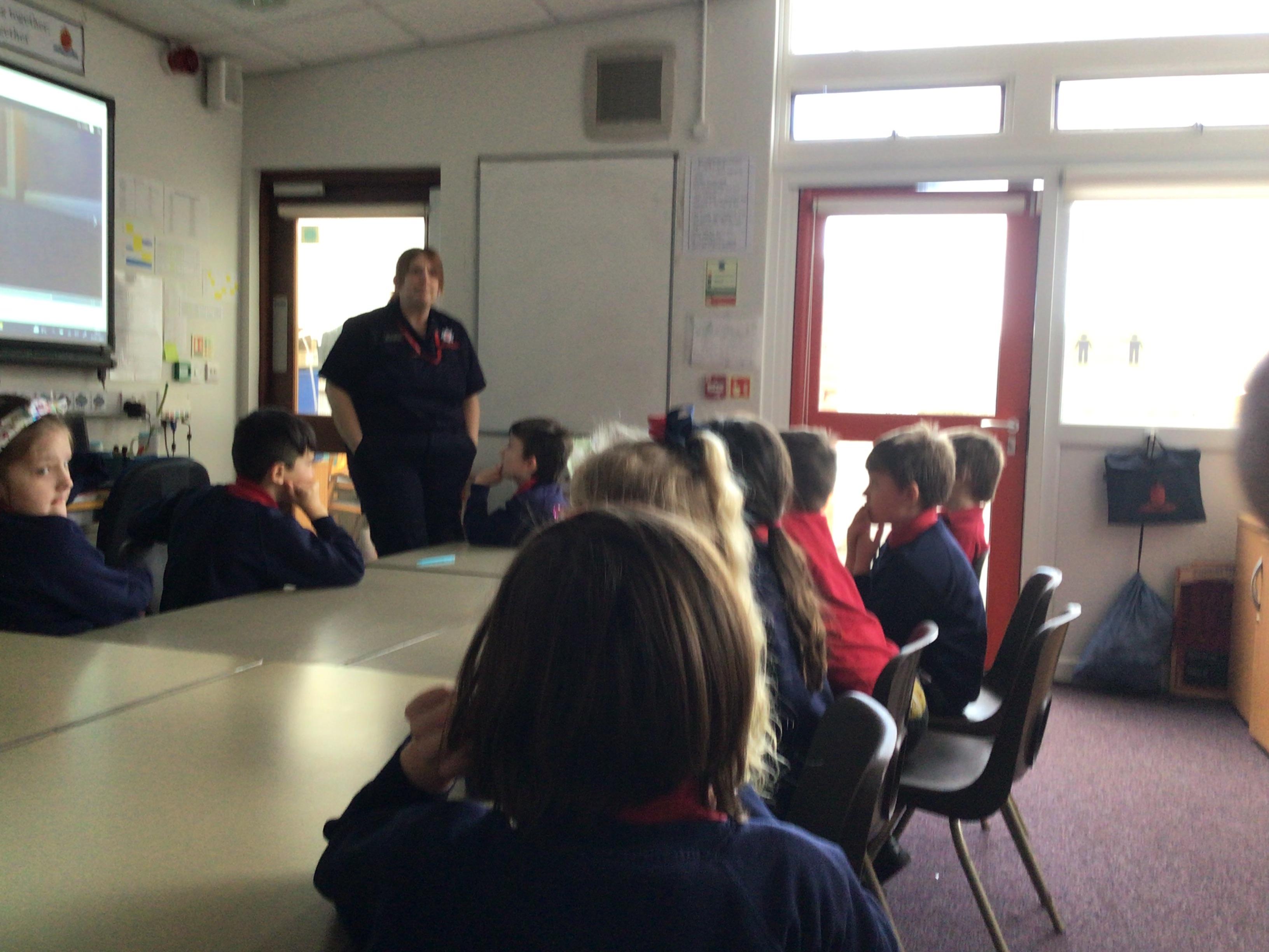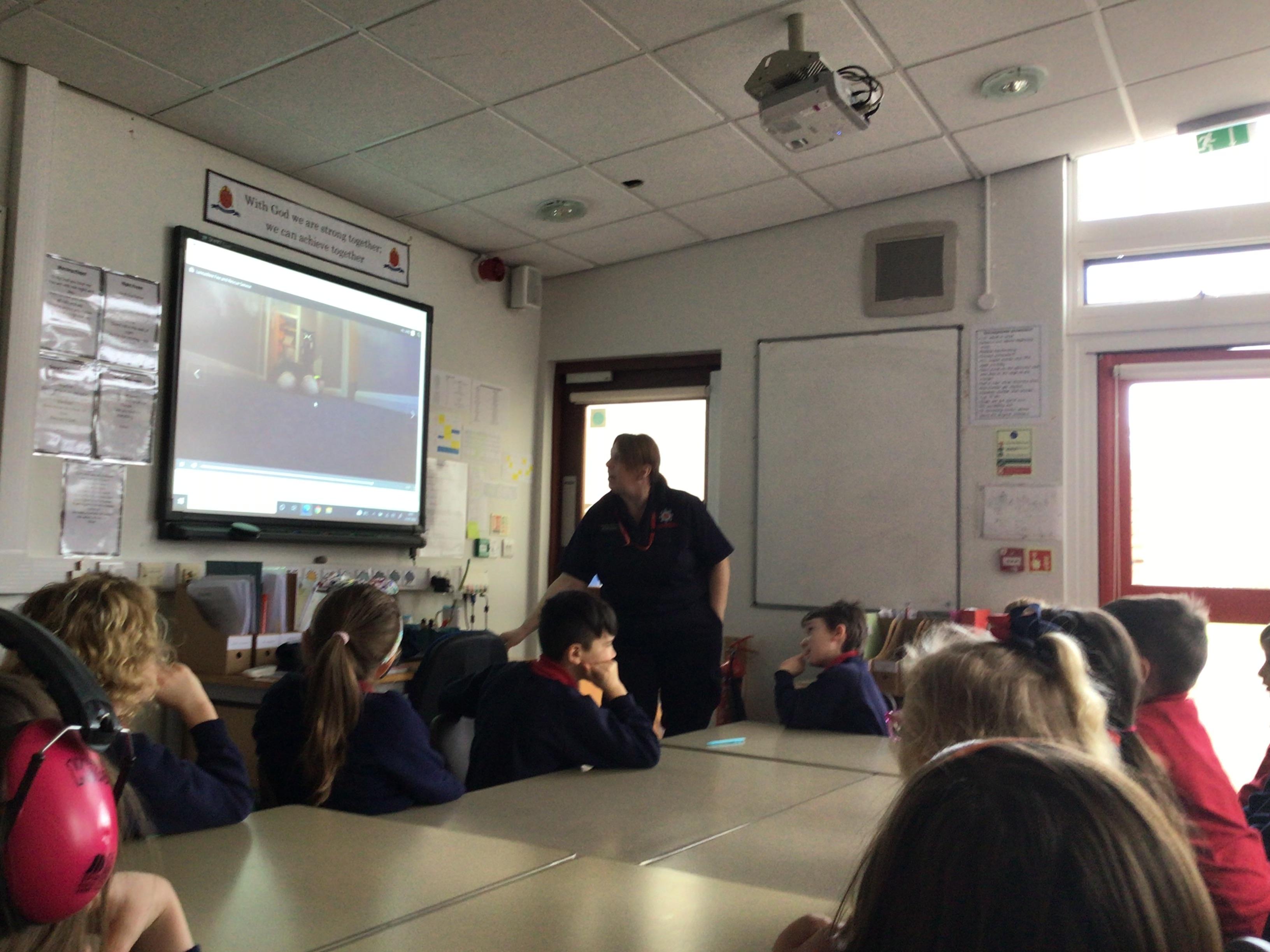 A representative from Lancashire Fire and Rescue service came to work with all children from Year 2 to Year 6. She discussed what to do in the event of a fire and how to exit the house safely. The children soon learn that they needed to use the back of the hand to check for heat as they approached a closed door. They were all able to demonstrate the "Stop, Drop and Roll" technique.