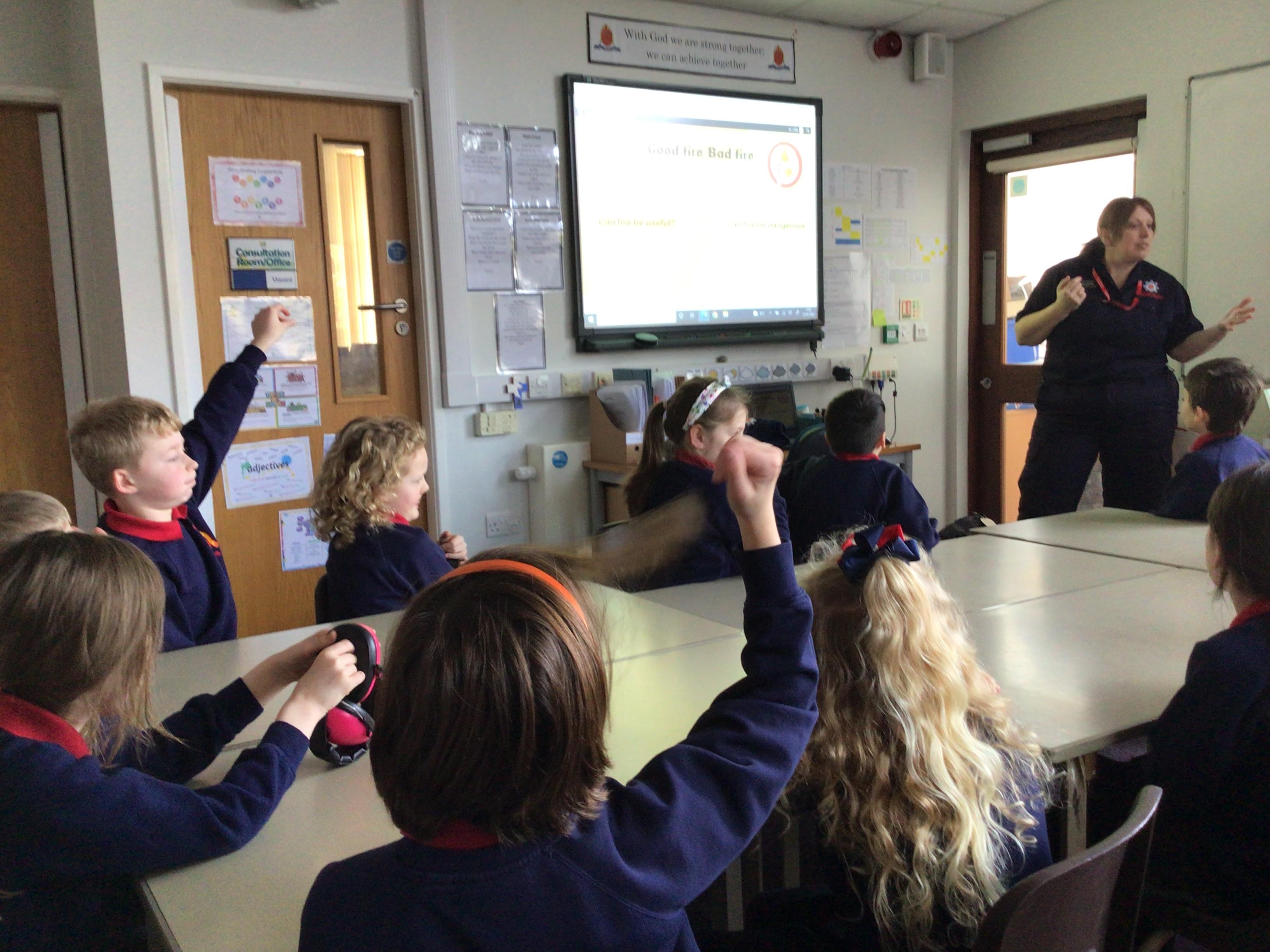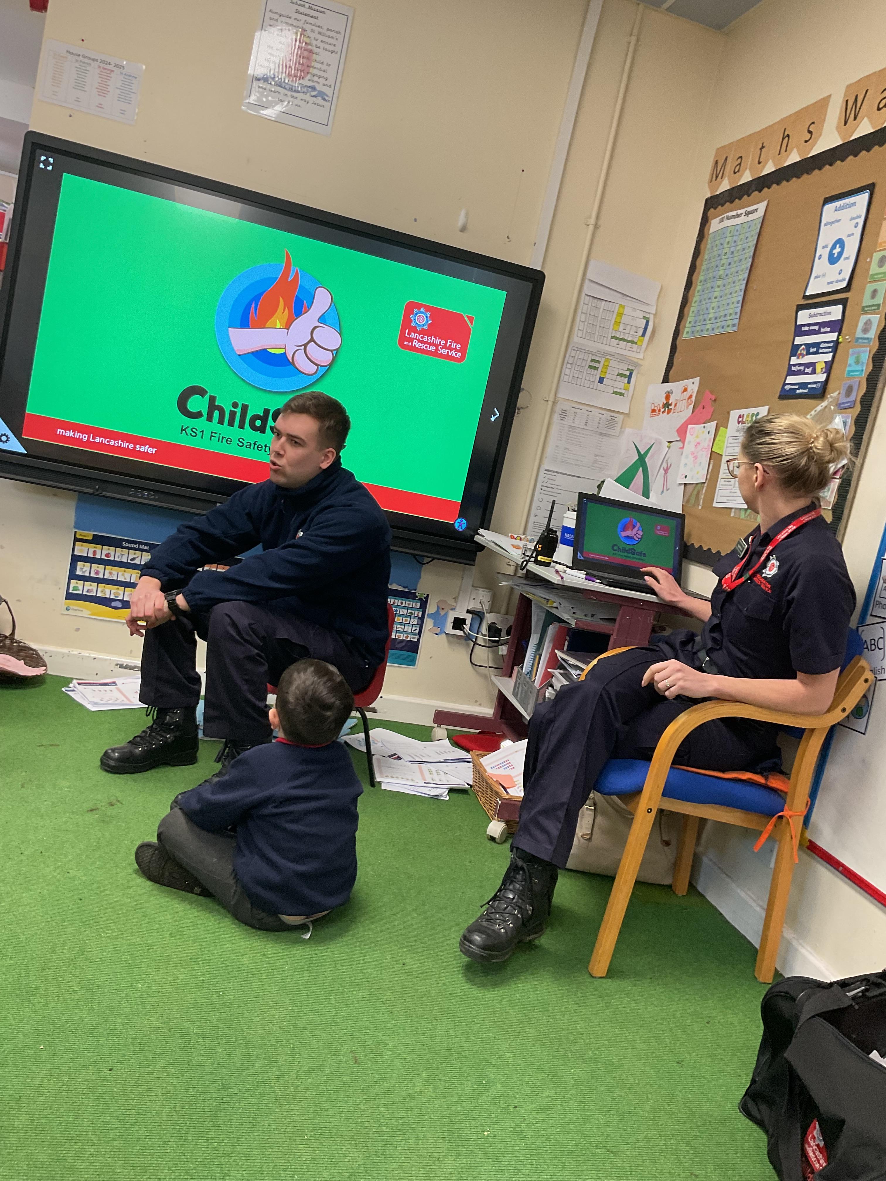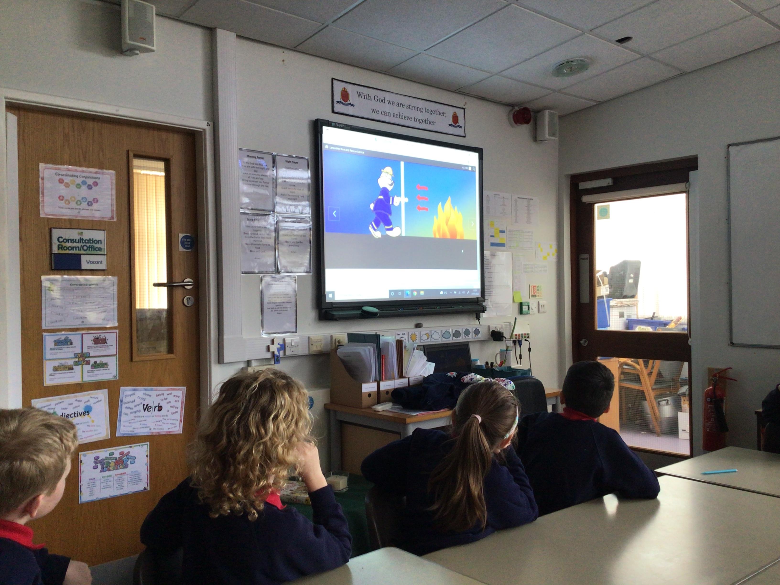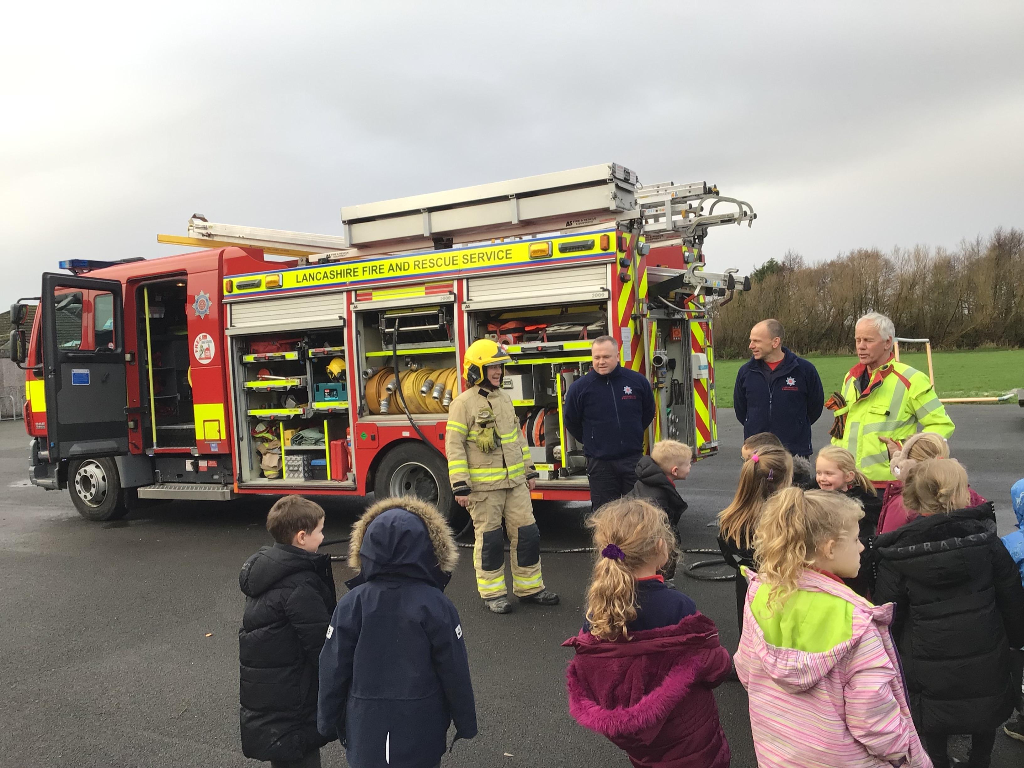 A representative from Lancashire Fire and Rescue service came to work with all children from Year 2 to Year 6. She discussed what to do in the event of a fire and how to exit the house safely. The children soon learn that they needed to use the back of the hand to check for heat as they approached a closed door. They were all able to demonstrate the "Stop, Drop and Roll" technique.