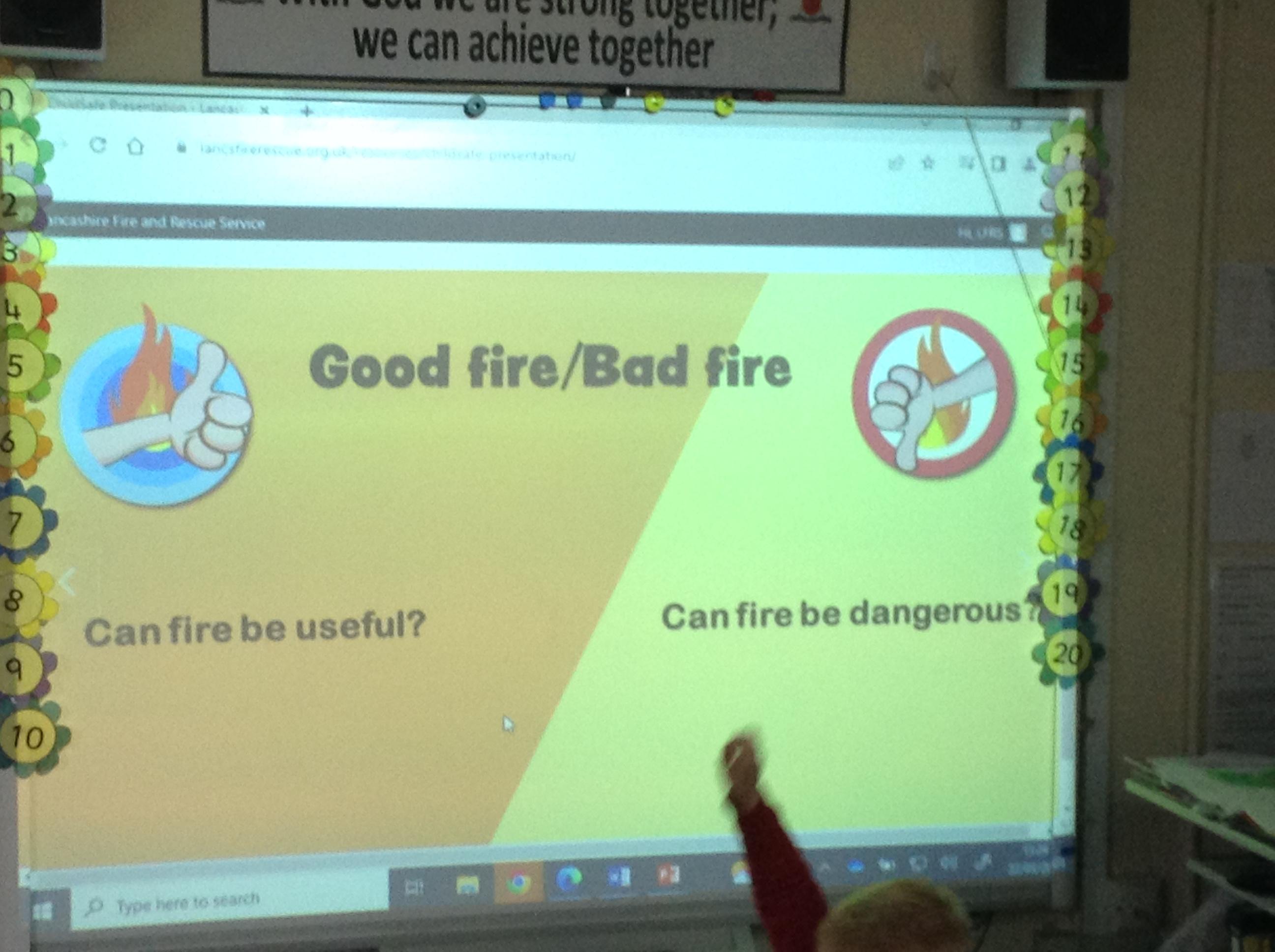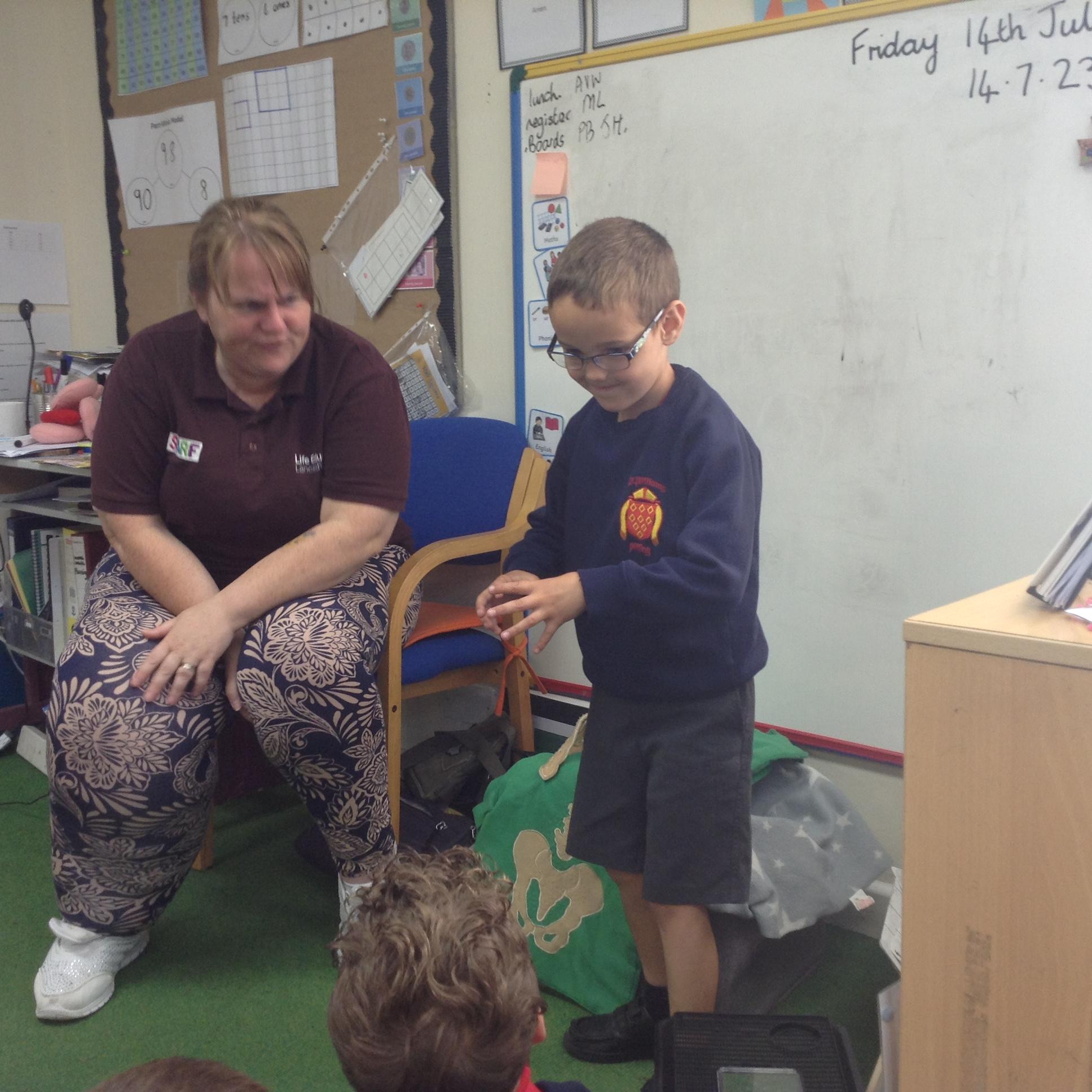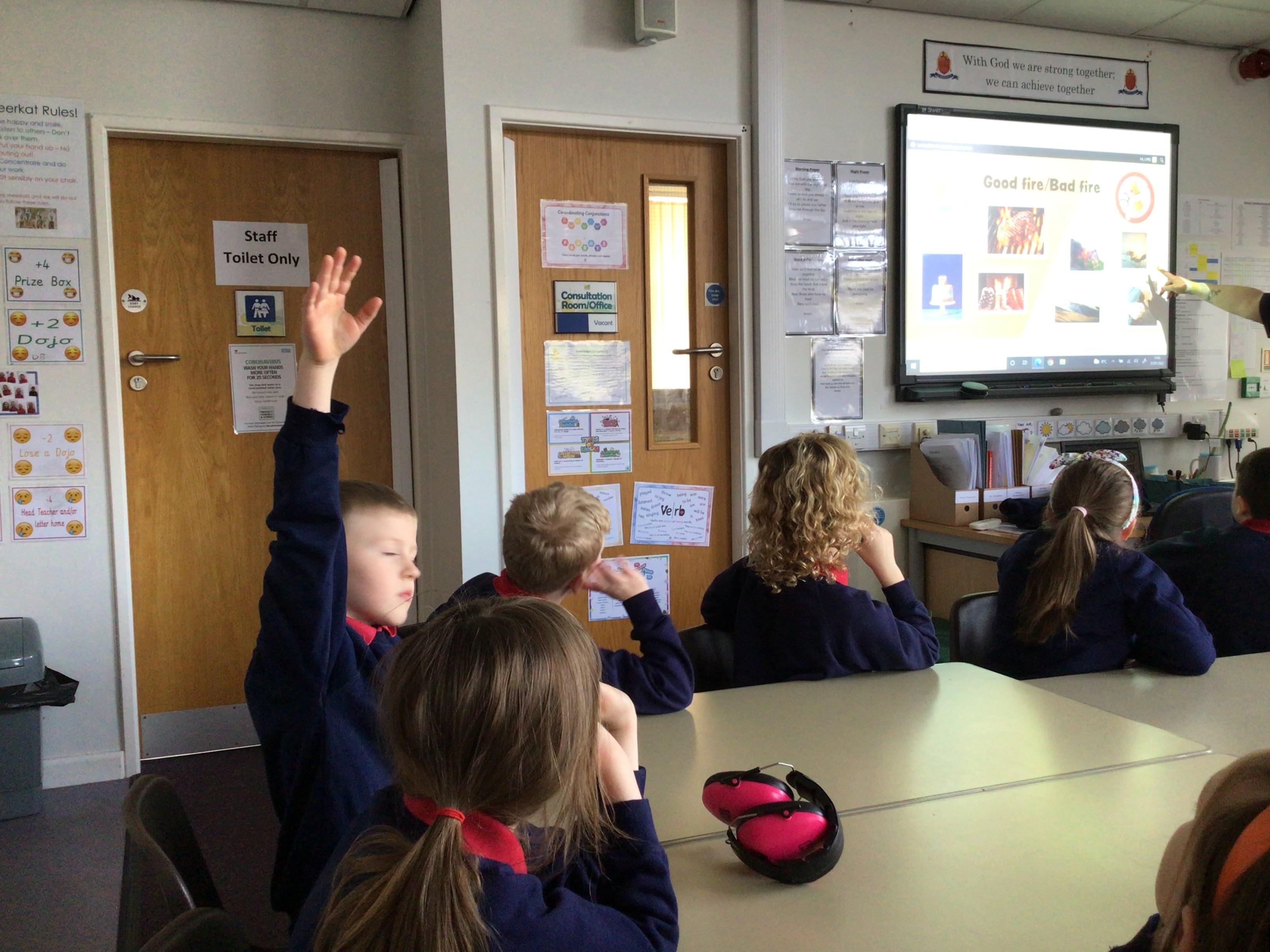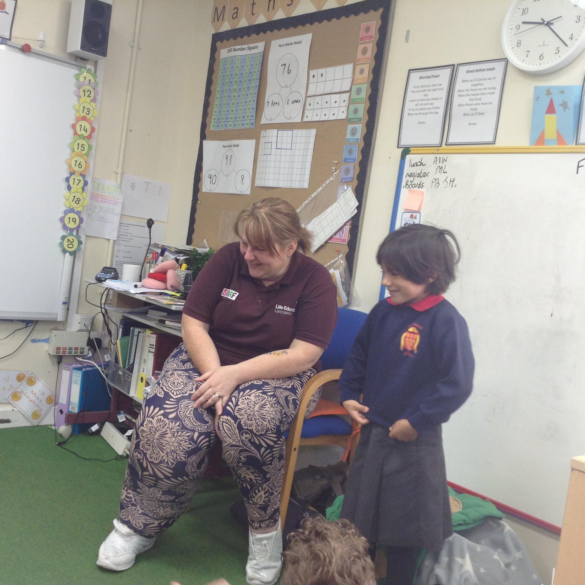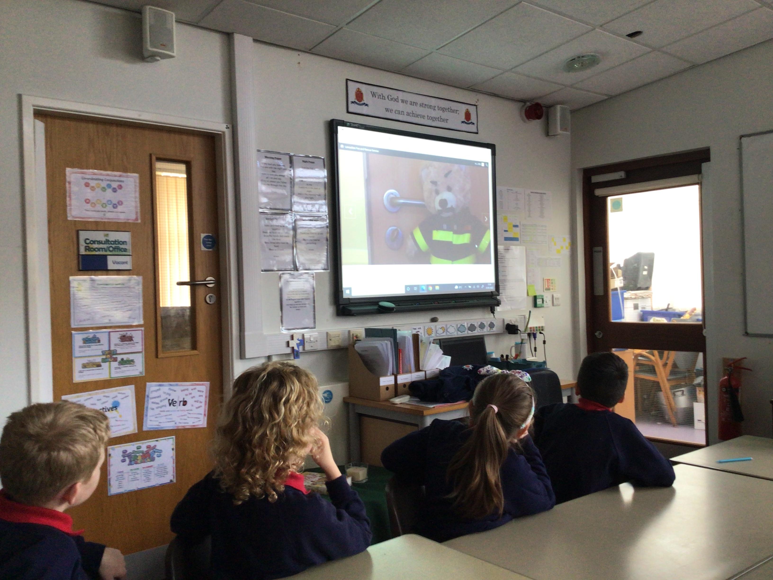 A representative from Lancashire Fire and Rescue service came to work with all children from Year 2 to Year 6. She discussed what to do in the event of a fire and how to exit the house safely. The children soon learn that they needed to use the back of the hand to check for heat as they approached a closed door. They were all able to demonstrate the "Stop, Drop and Roll" technique.