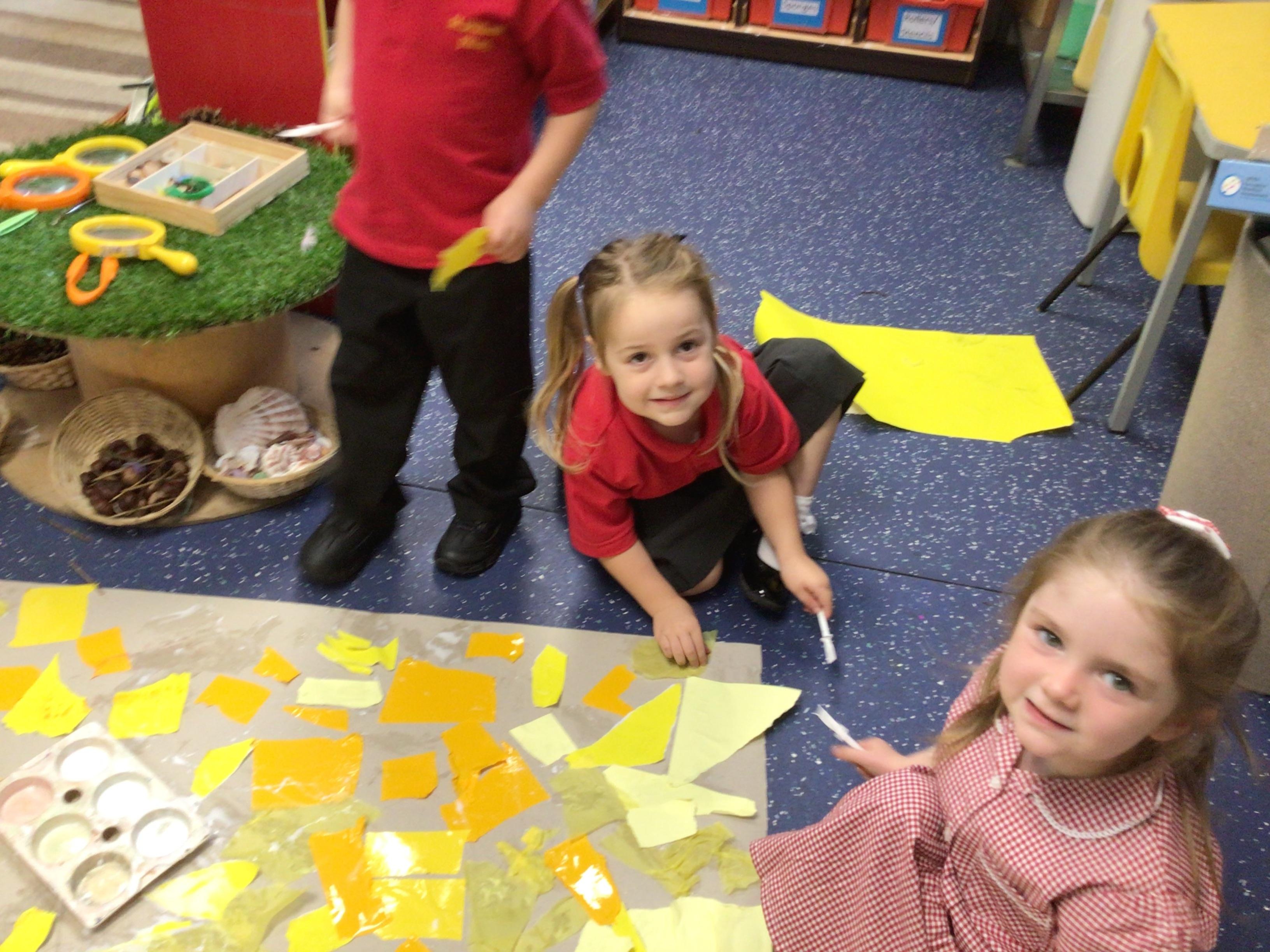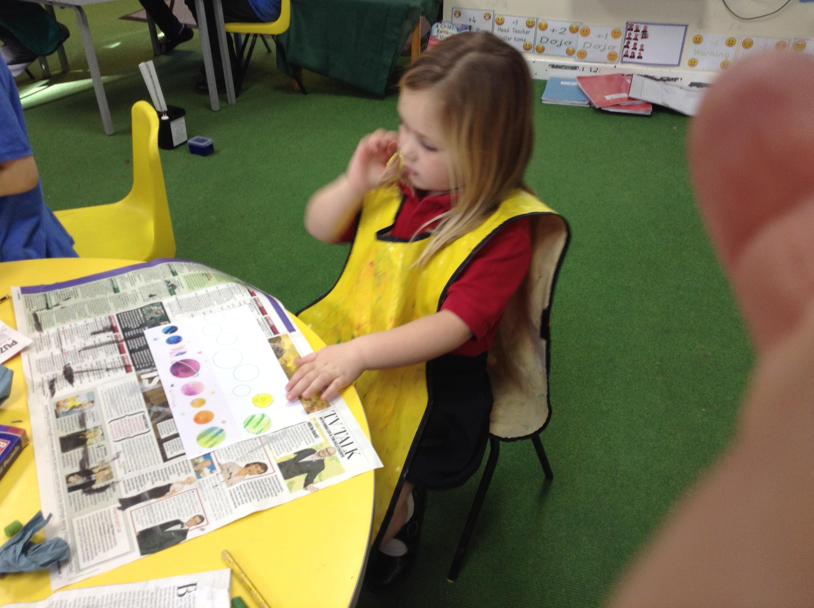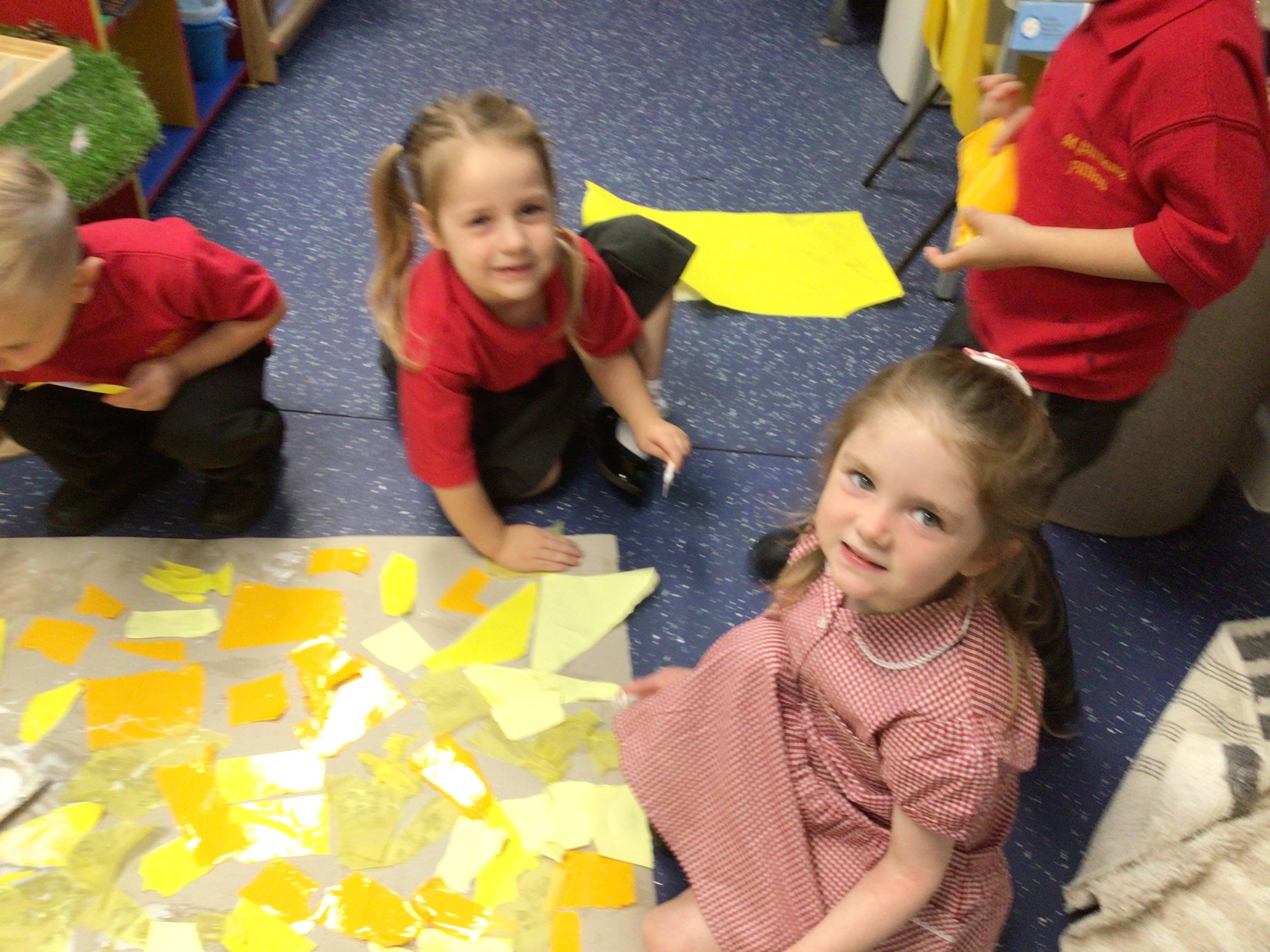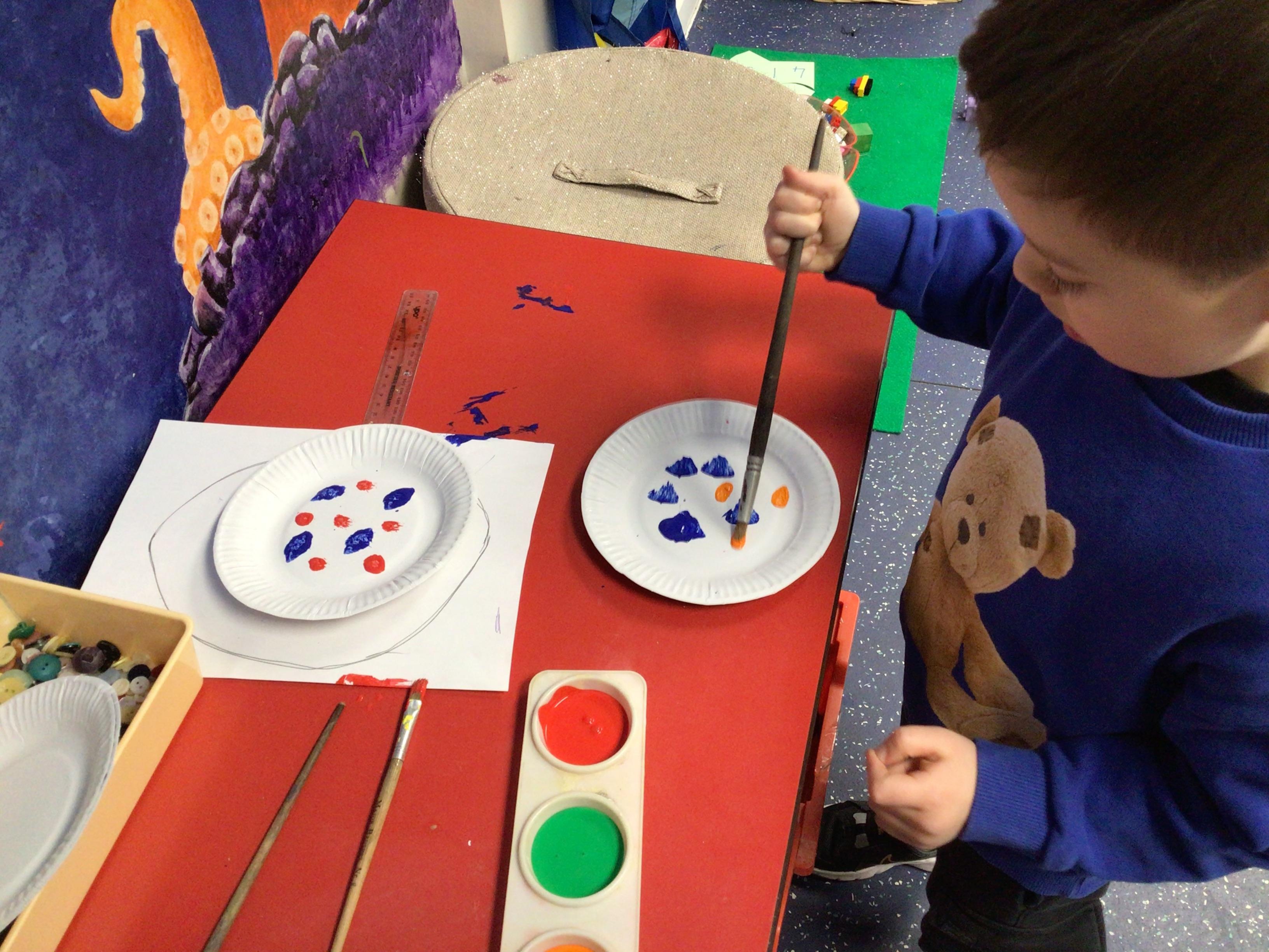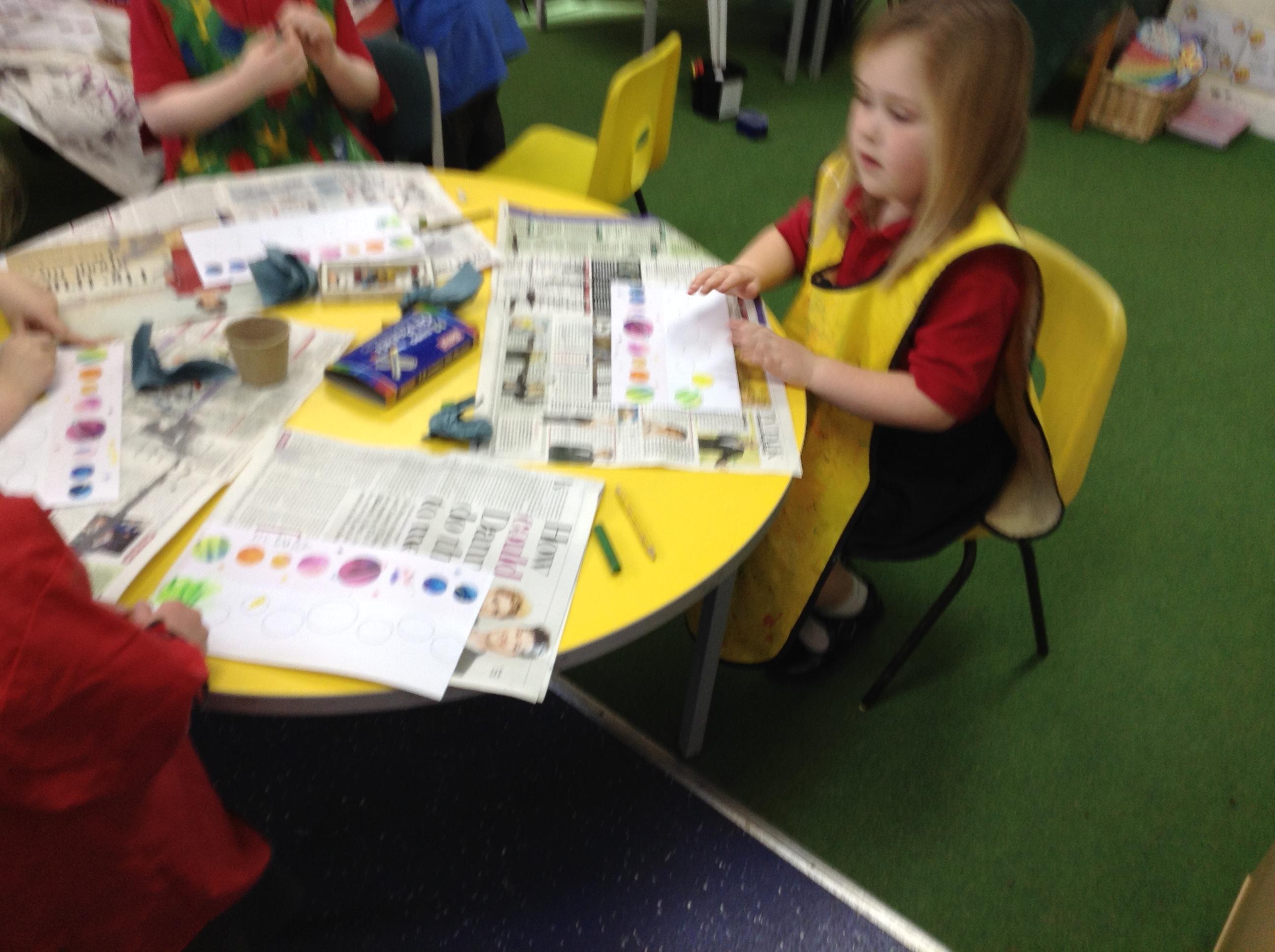 The children in Class 1 created wall displays ready for the corridor wall displays. Reception showed the difference between dark and light, Year 1 looked at sea and sky and finally Year 2 looked at land and sea.