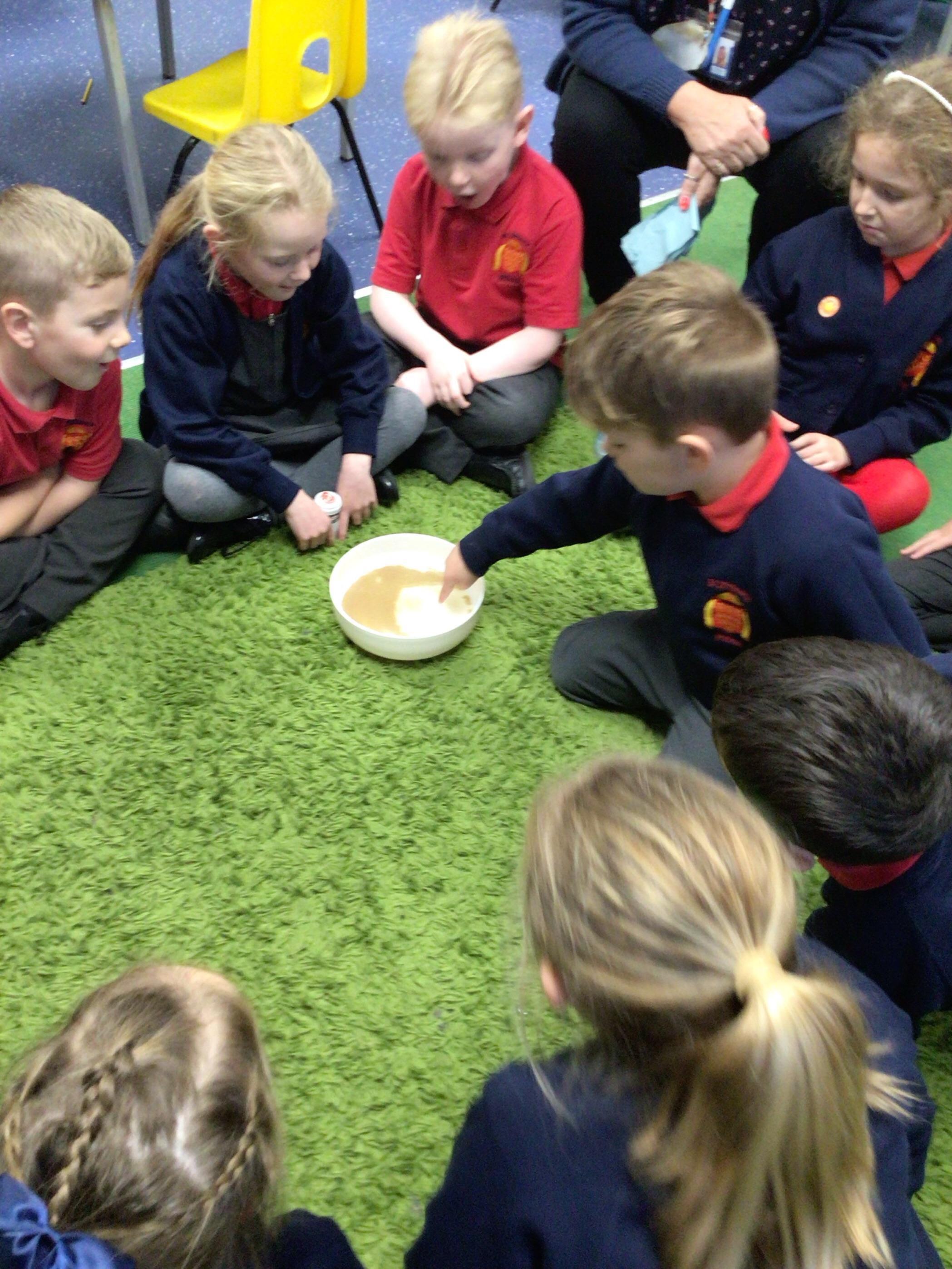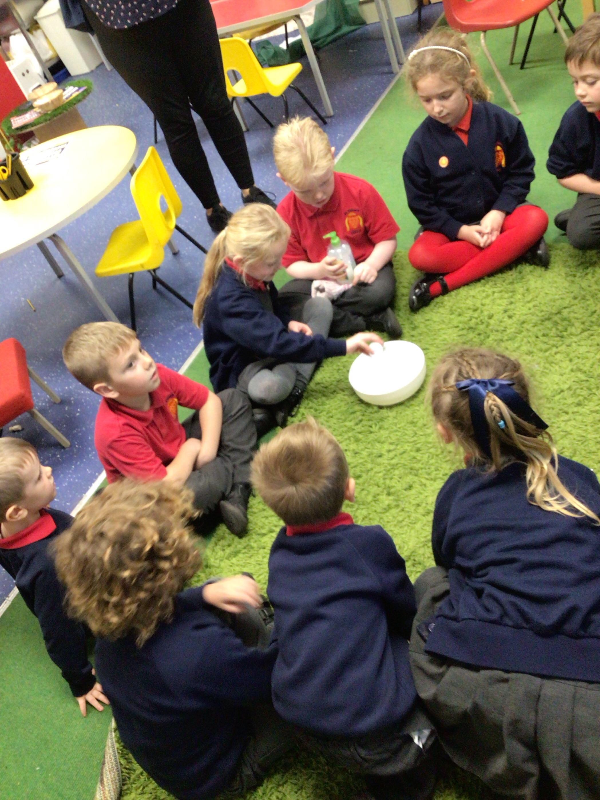 Yesterday, we did a little experiment at the end of our science lesson. We were finding out why soap works and why it is better than using just water to wash your hands. The pepper represented dirt and germs, and when we dipped a soapy finger in- it quickly spread out. It was lots of fun!