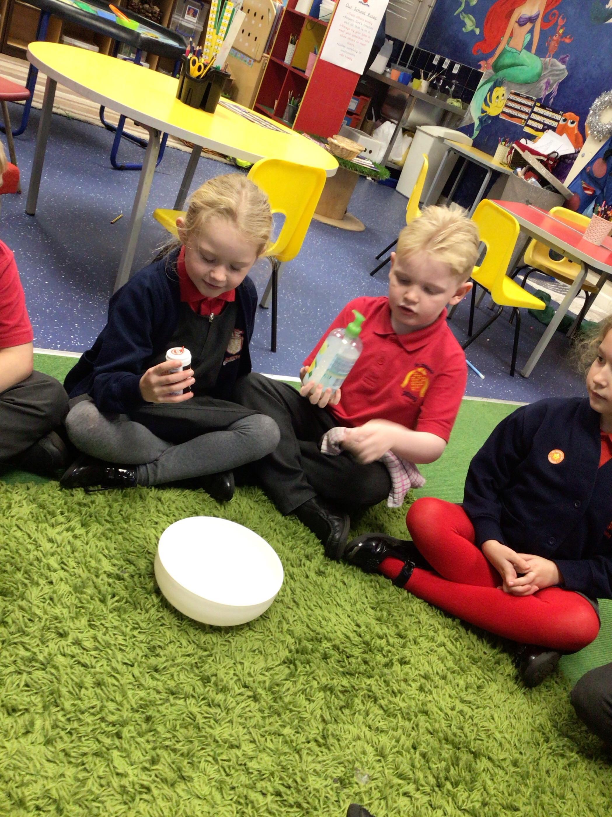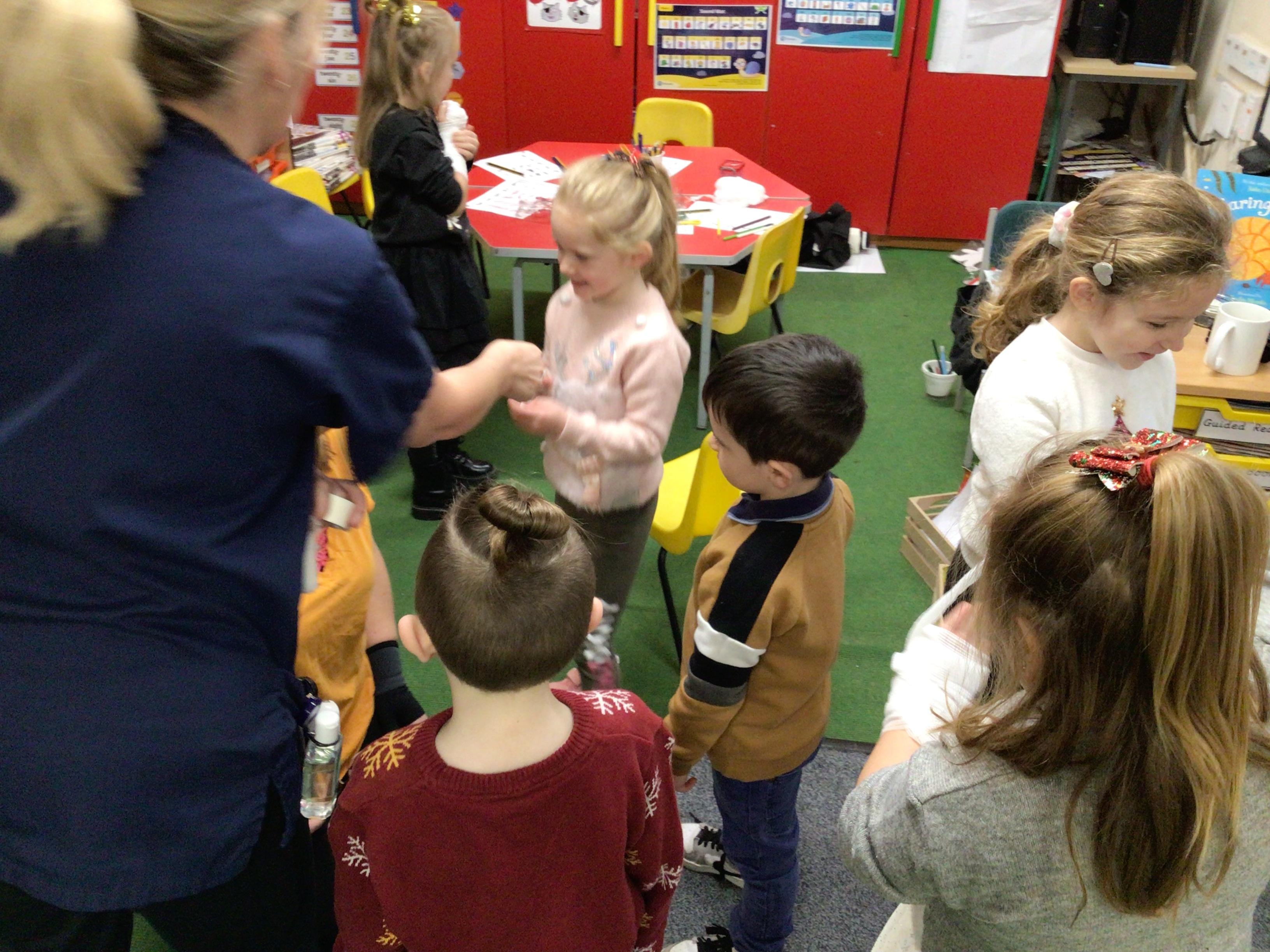 Today, the children learnt about the importance of a good handwashing technique. They used glitter to represent 'bugs' and then attempted to clean it off quickly- they soon realise that 5 seconds under a tap didn't work!