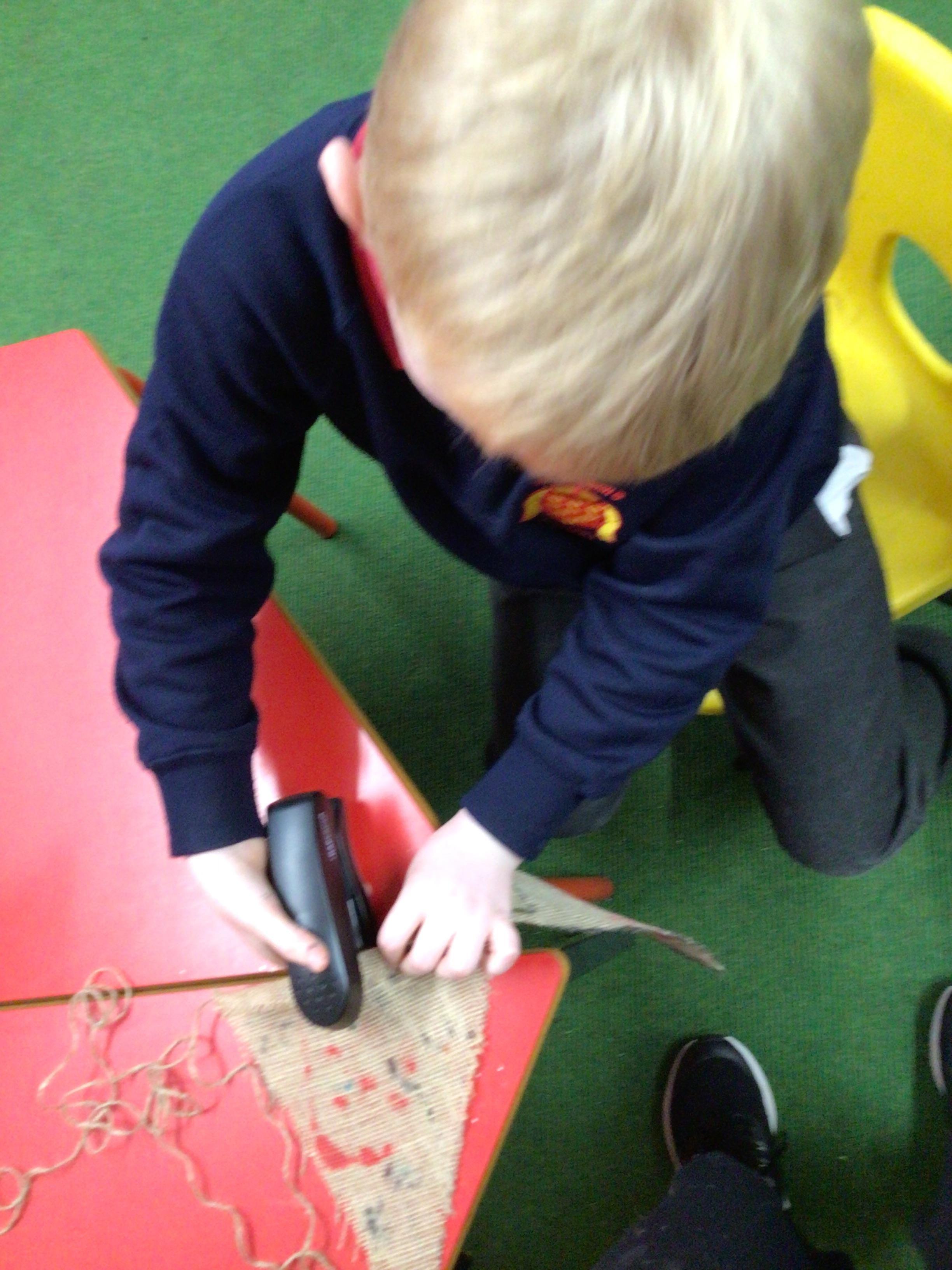 In D&T the children have been making bunting to display in class. The children did a great job at creating their piece and helped at every stage- joining it to the string so it can be put up in class.