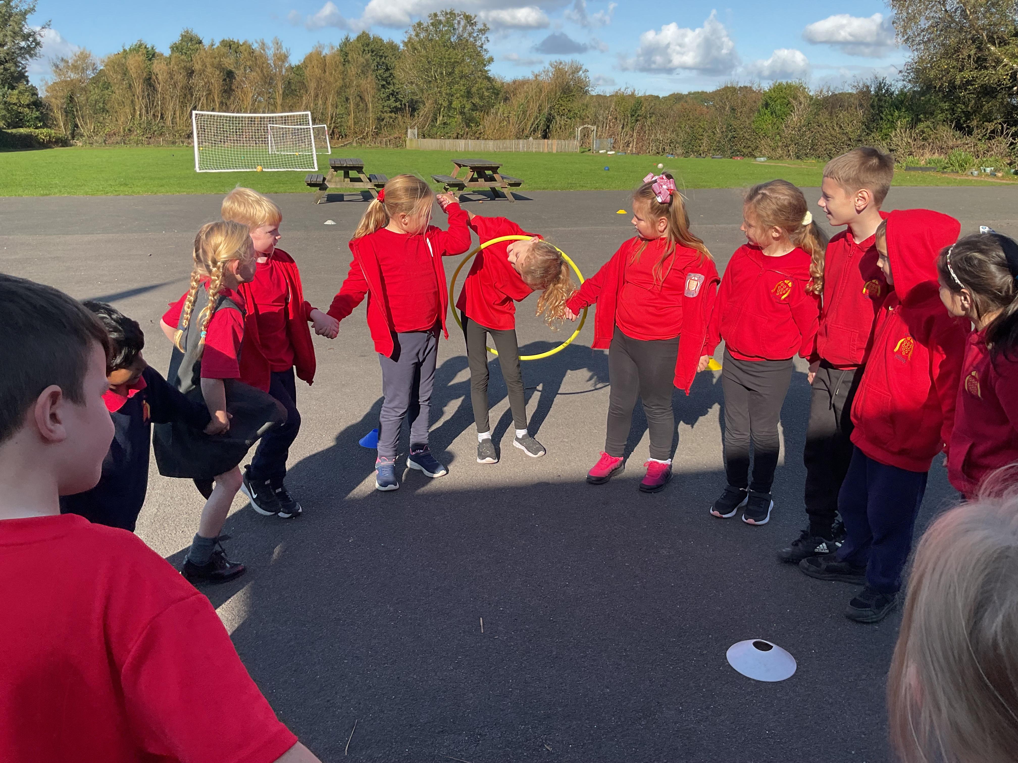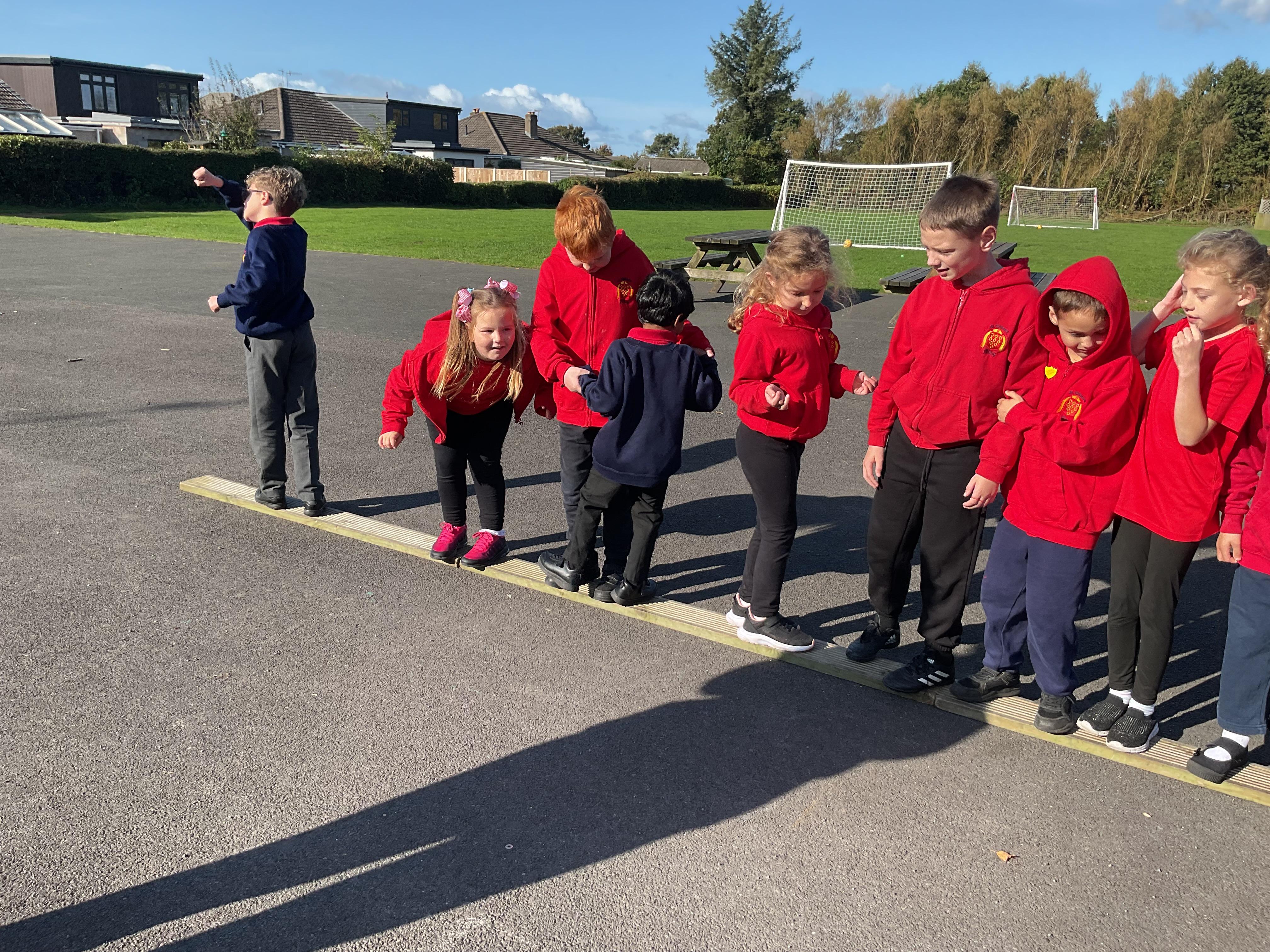 Resilience skills where the children had to work as a group to complete different activities.