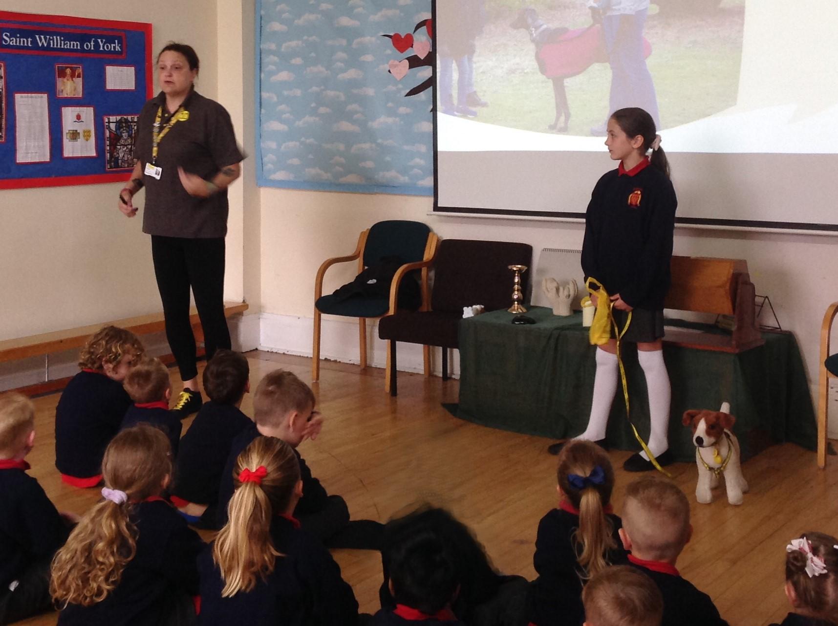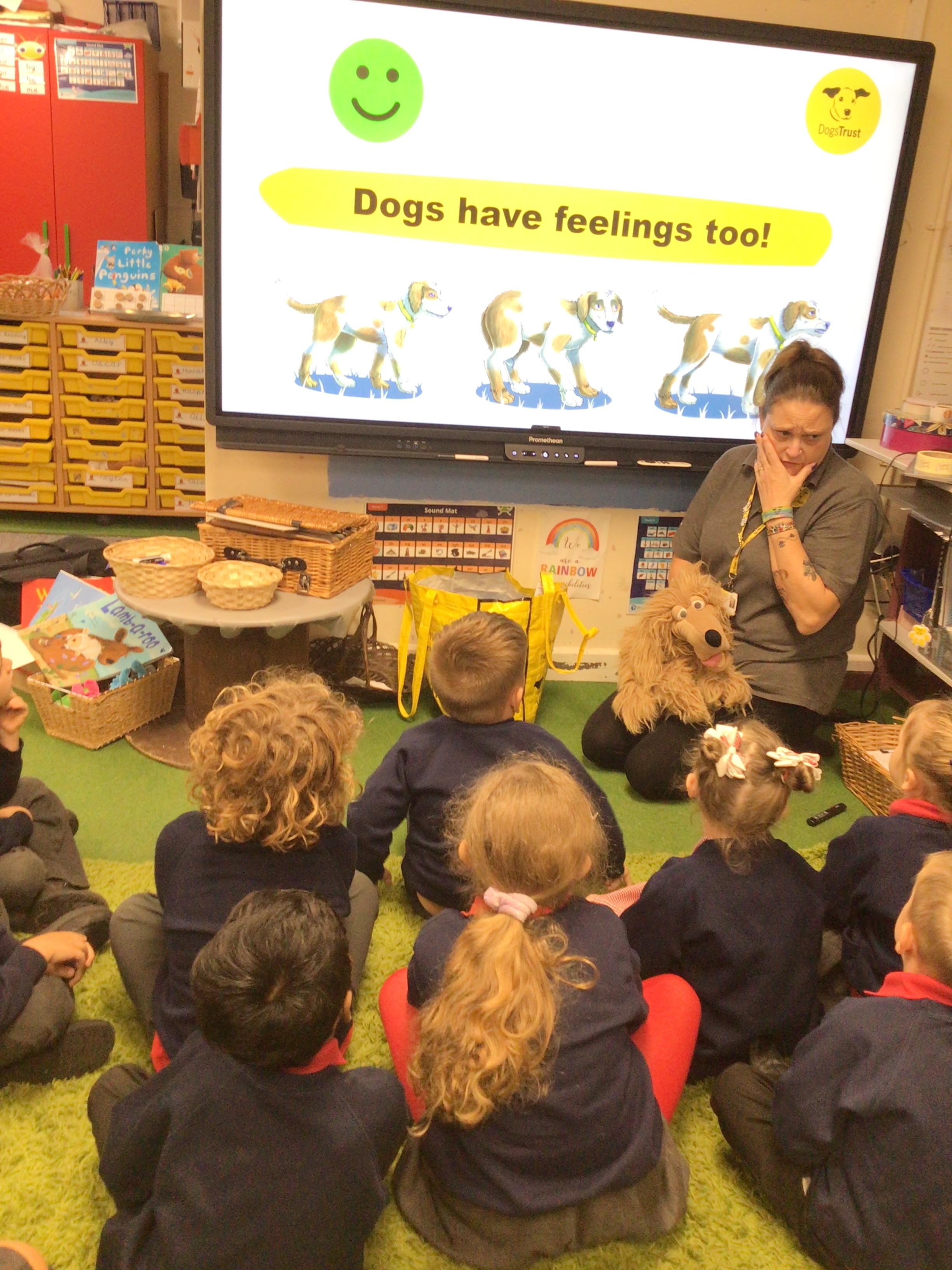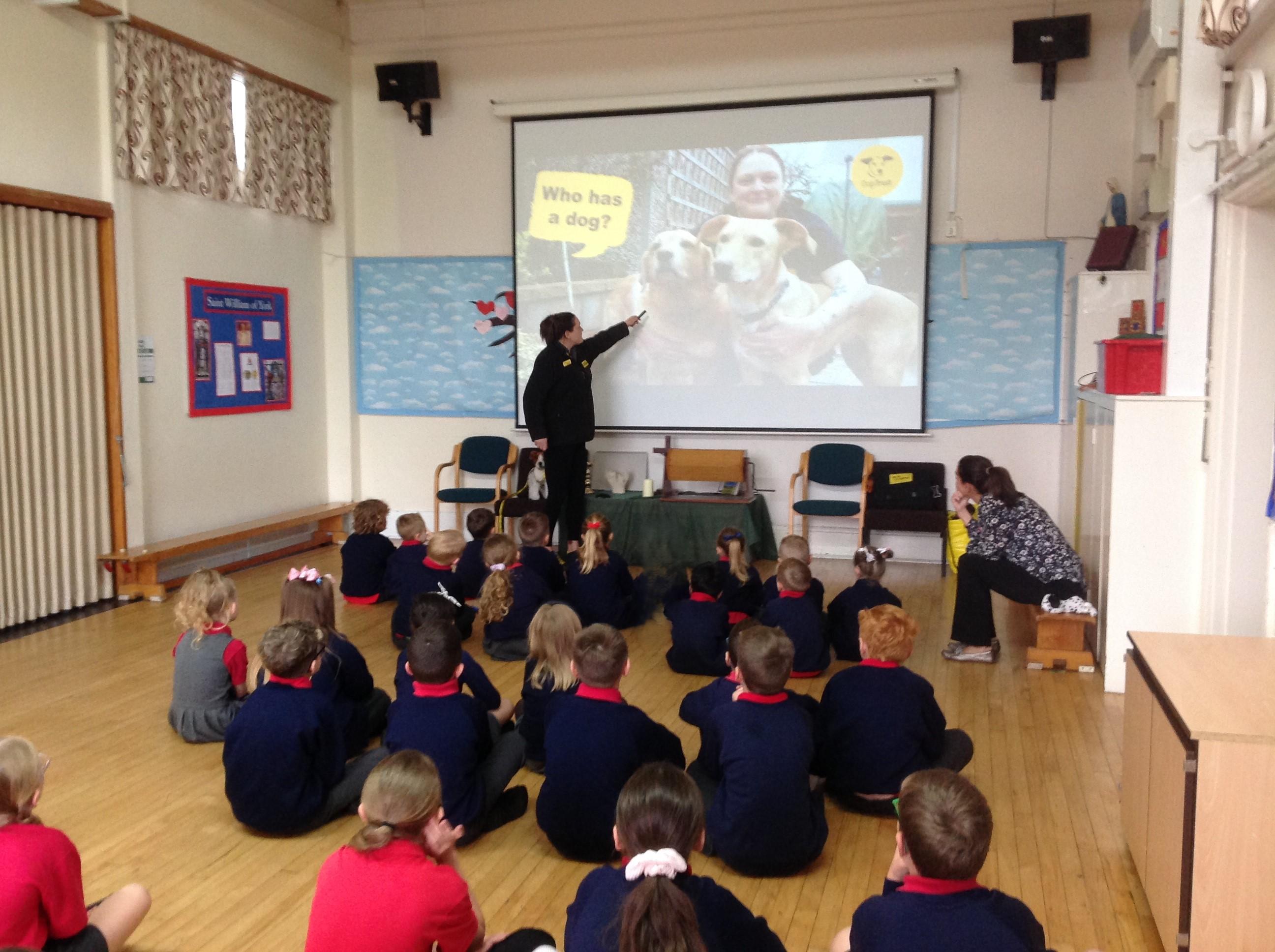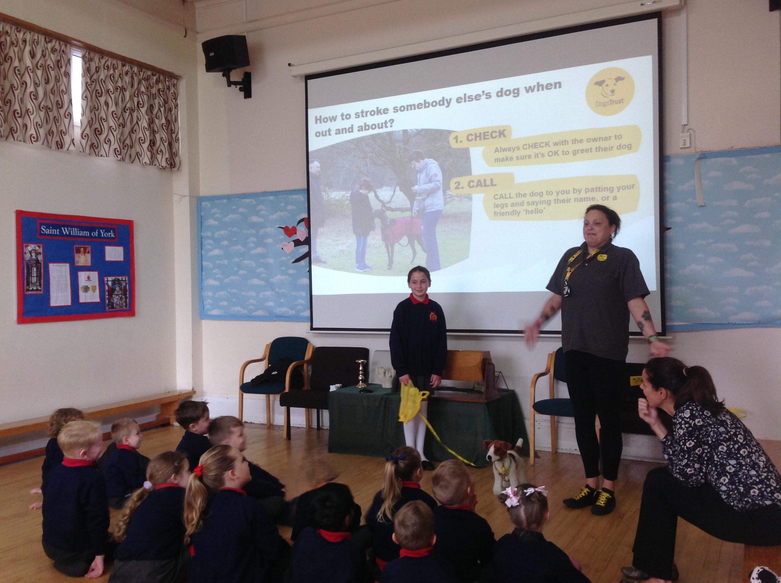 The children spent the morning learning about the ABCs of dog care (Affection, Busy, Choice) and to recognise how dogs use signals to communicate. The children started with an assembly in the hall before heading to their classrooms for workshops with their classmates.