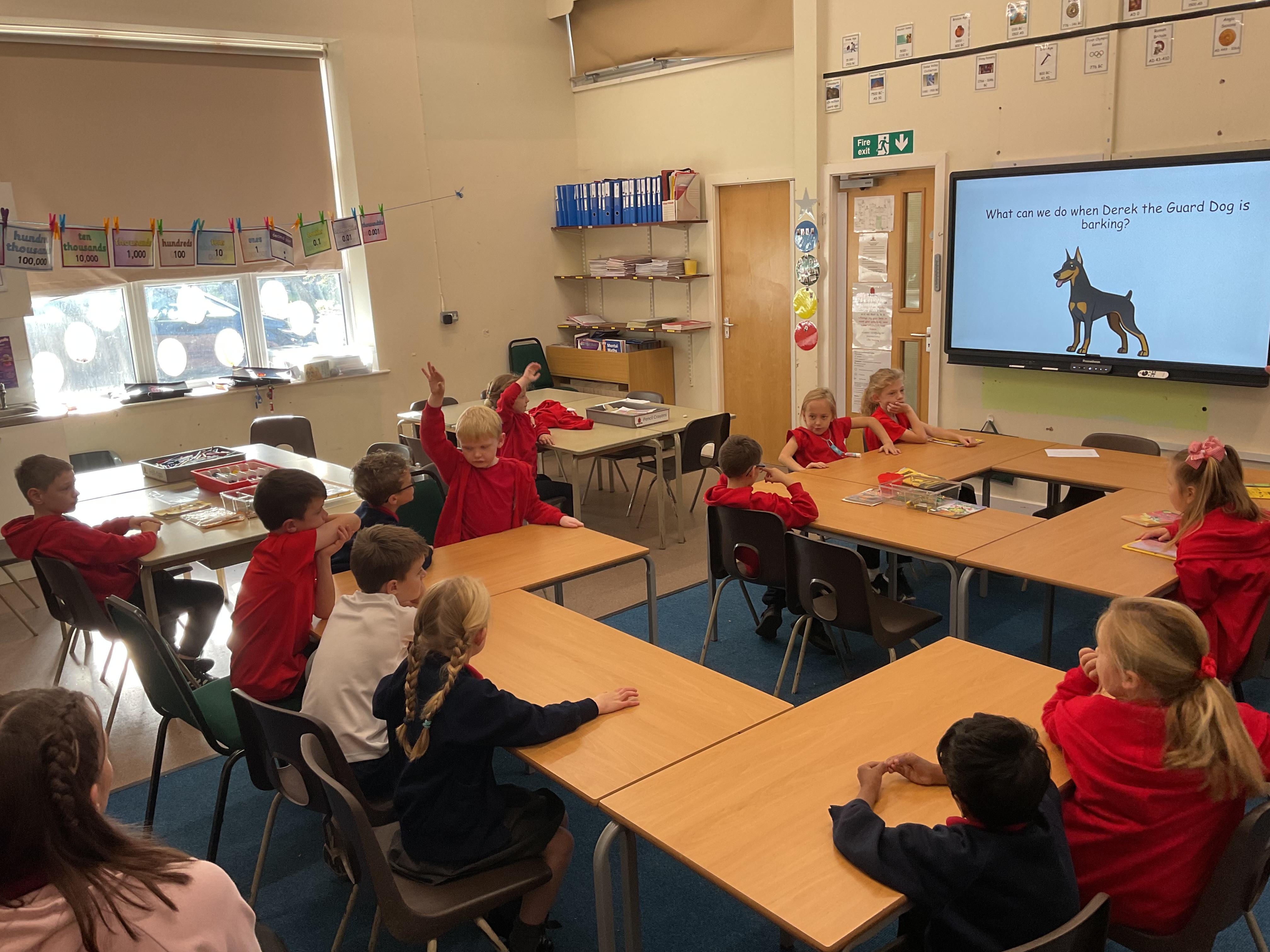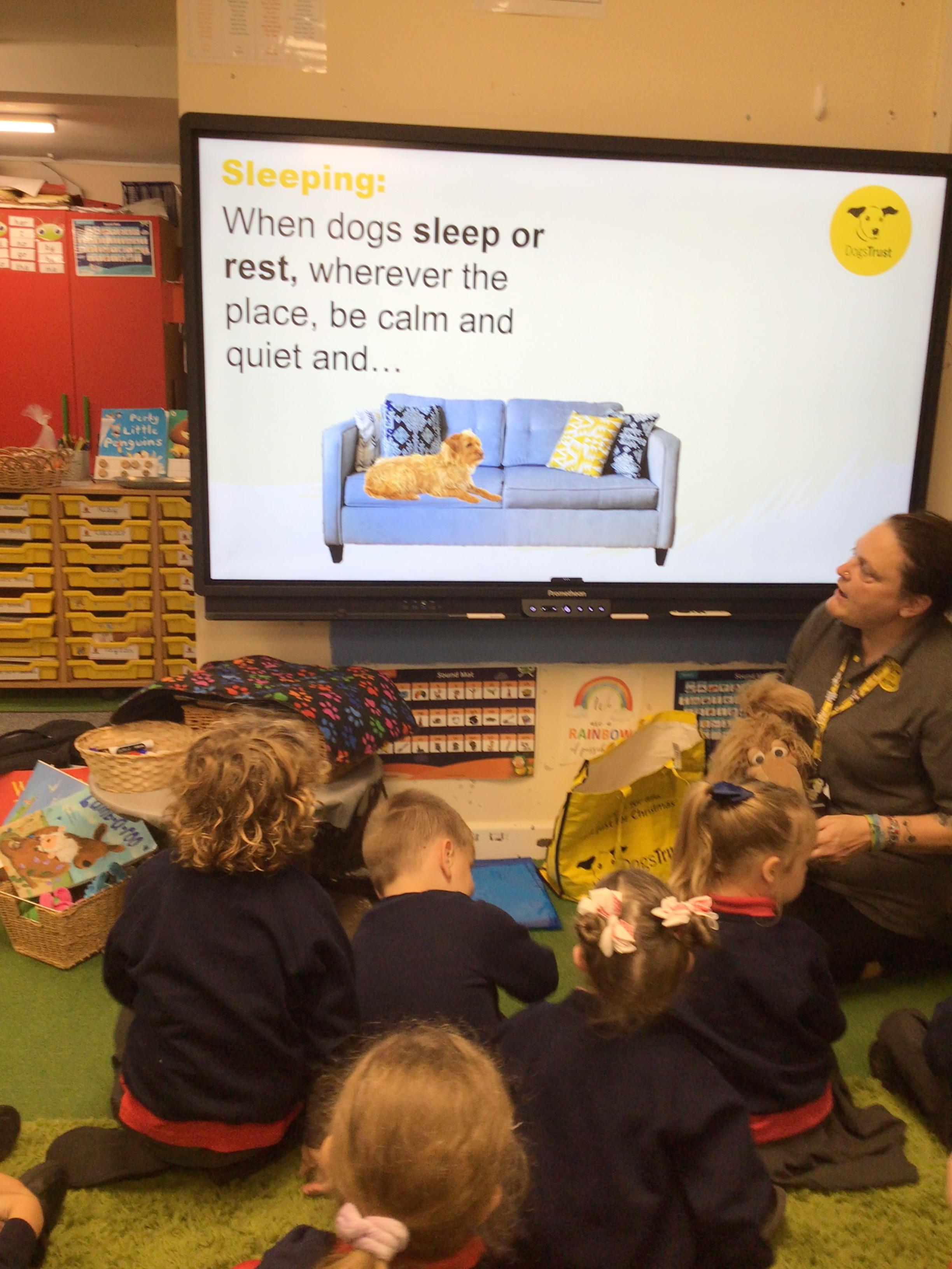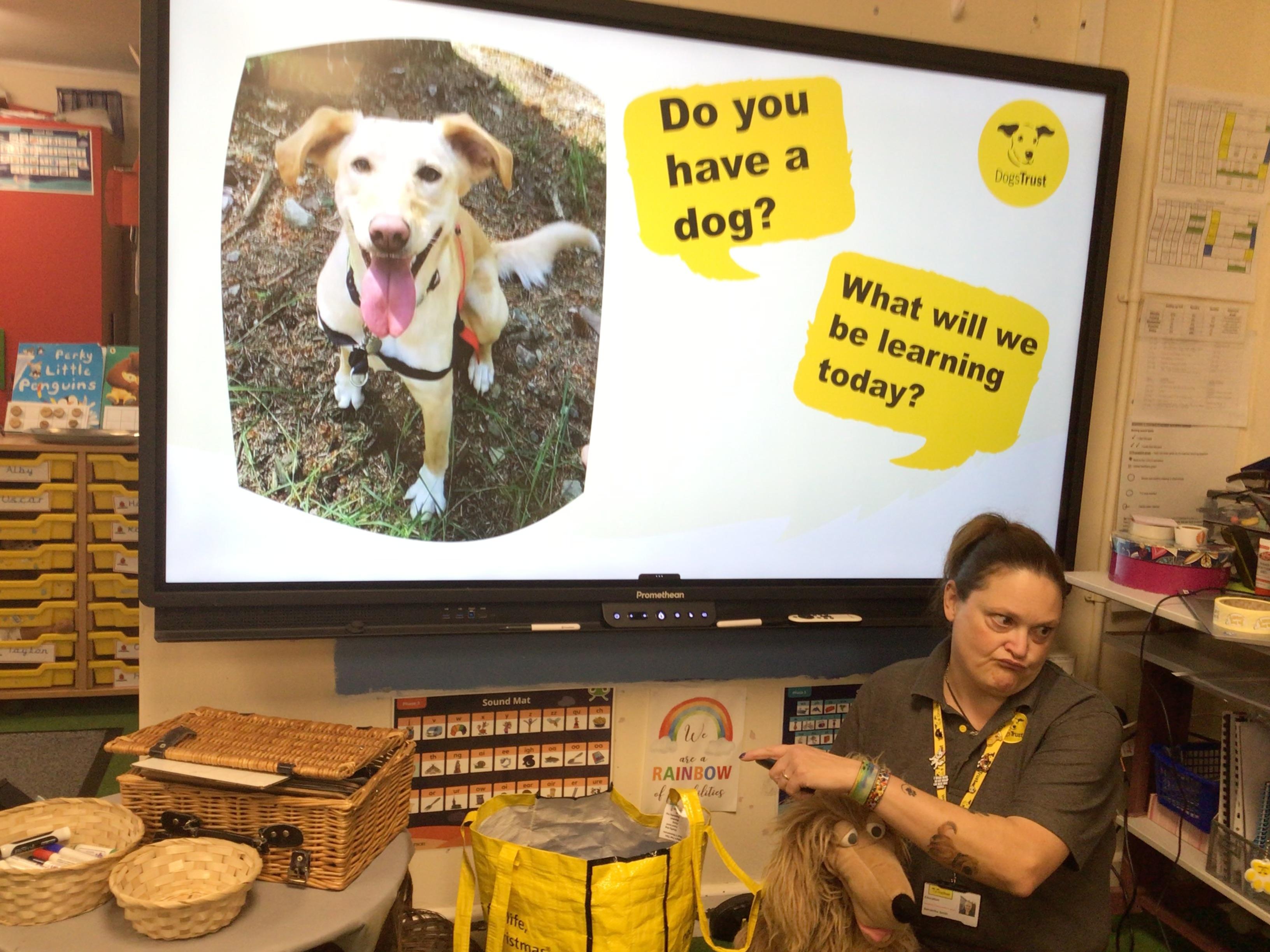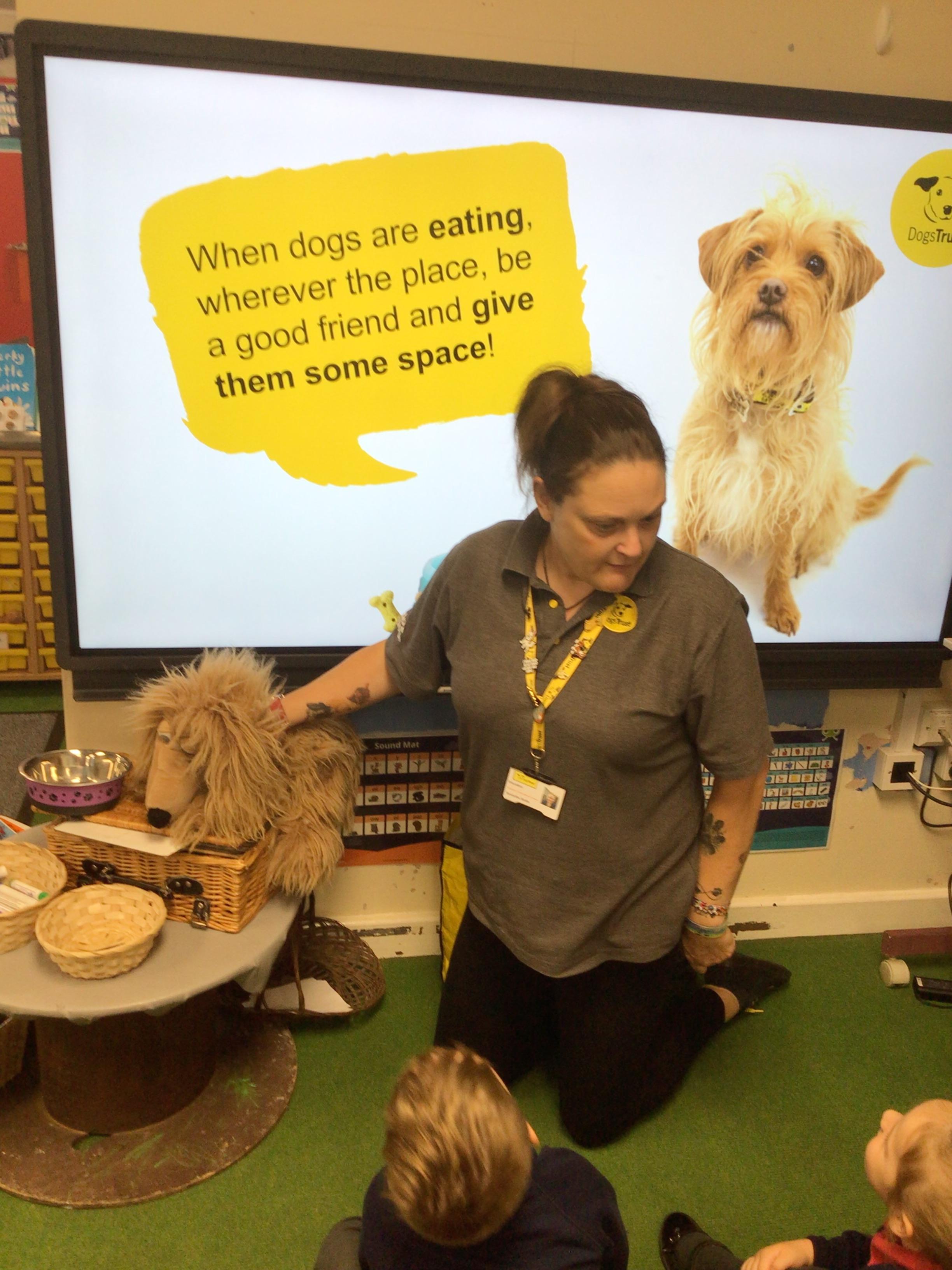 The children spent the morning learning about the ABCs of dog care (Affection, Busy, Choice) and to recognise how dogs use signals to communicate. The children started with an assembly in the hall before heading to their classrooms for workshops with their classmates.