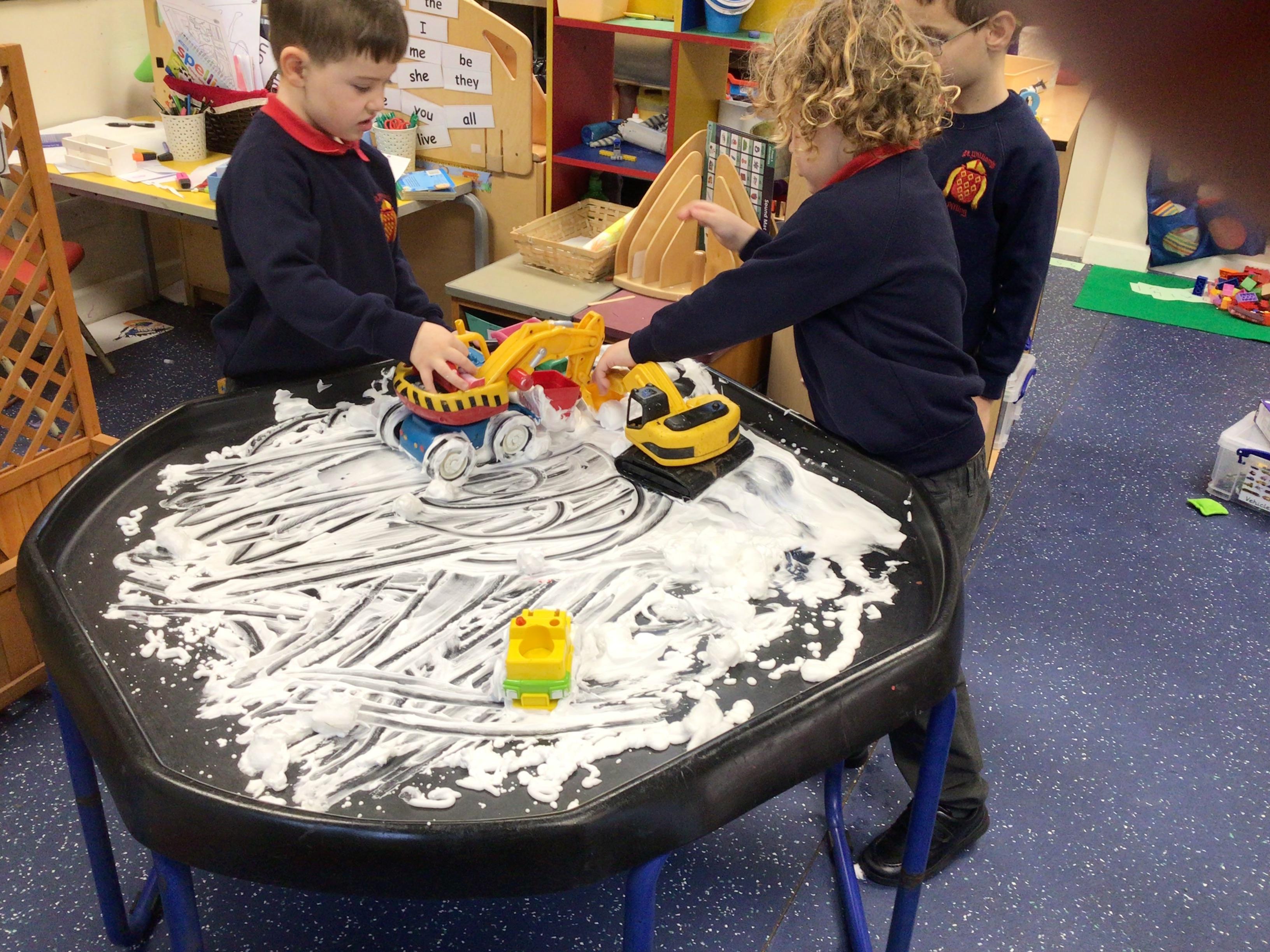 This afternoon, the children in Reception listened to the story of the Wise Men visiting Jesus and thought about the journey that they undertook. The children created their own journey in the tuff tray using the resources in the classroom.