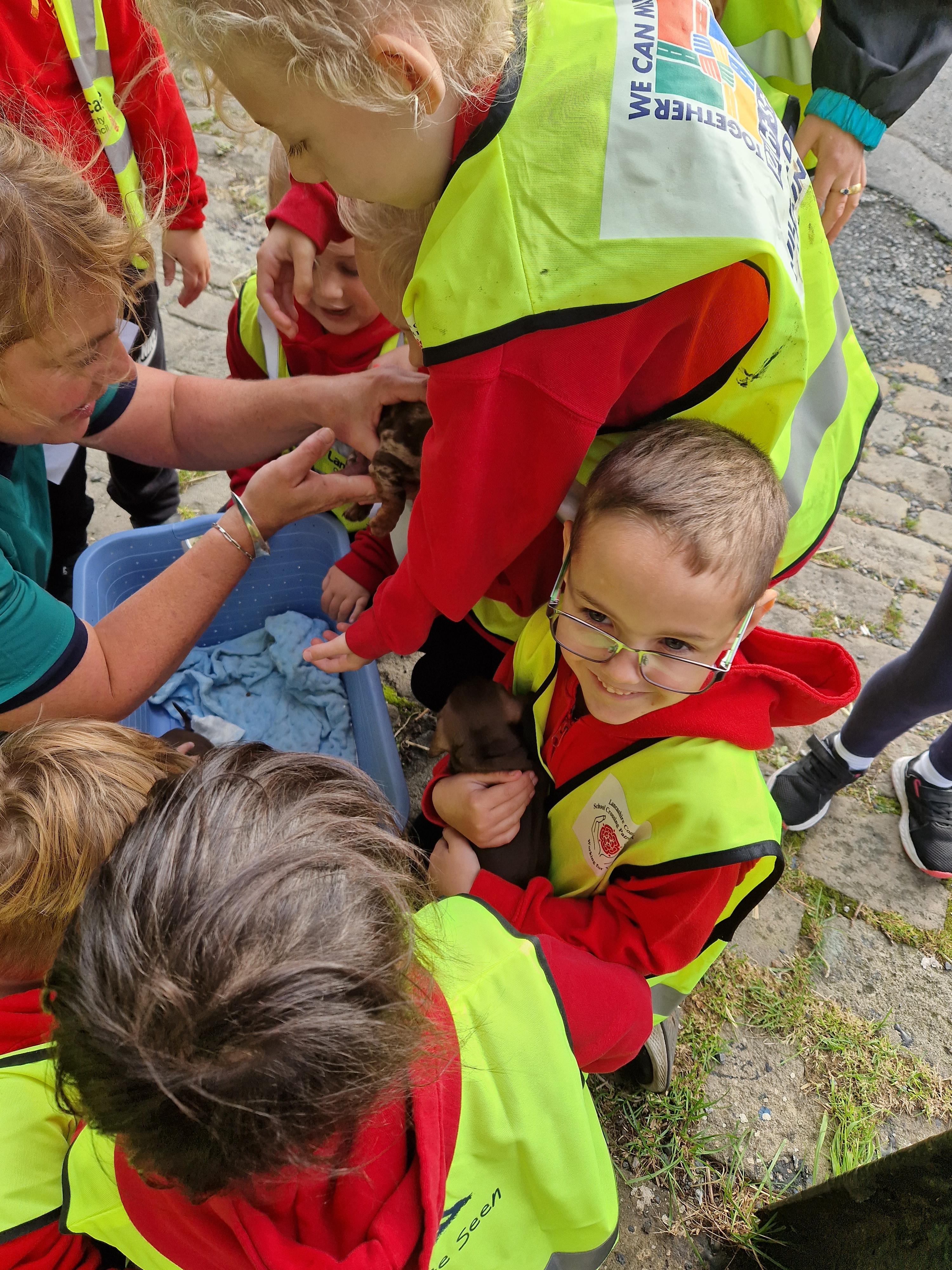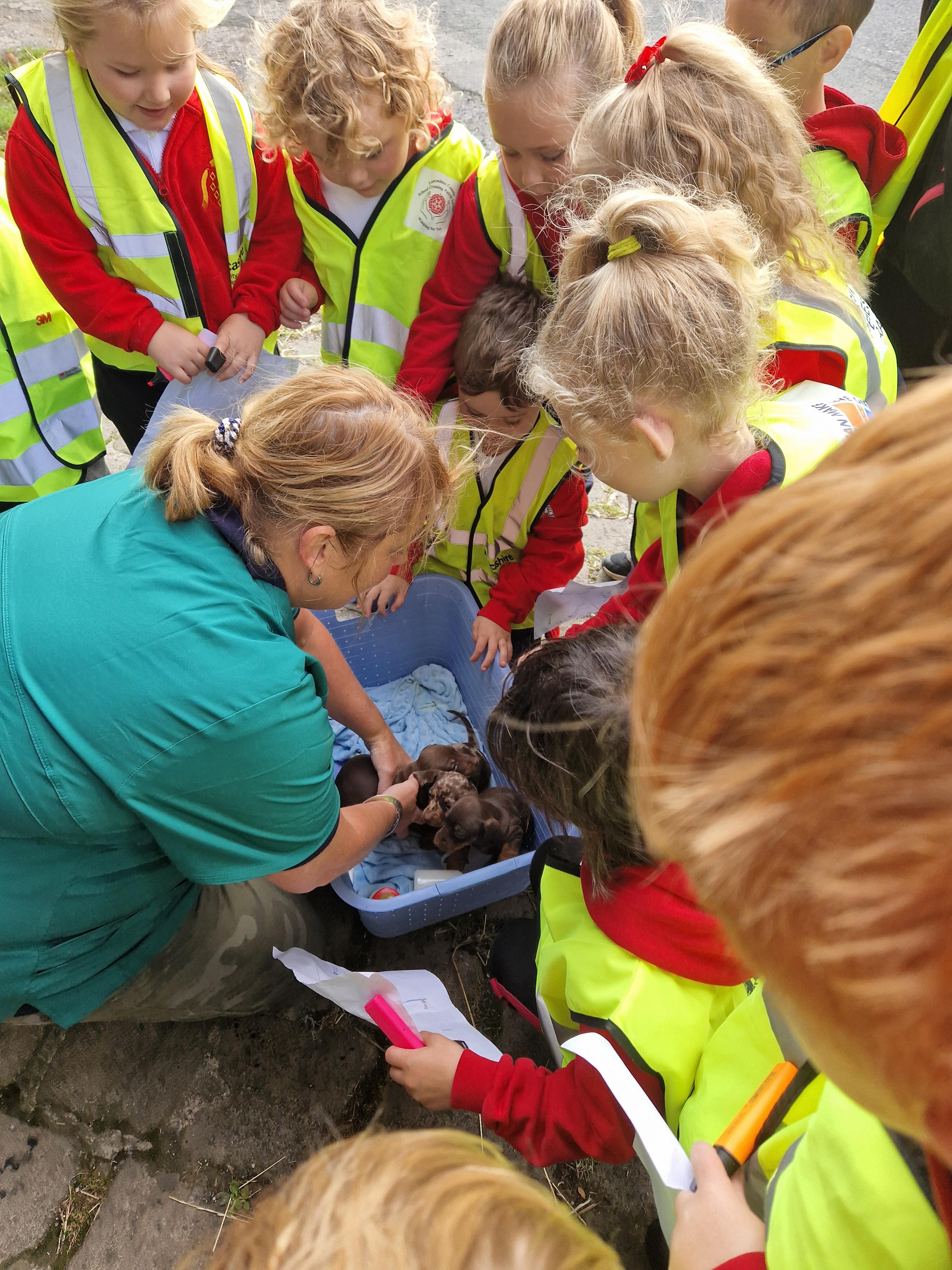 The children listened to instructions about how to hold and care for the different animals.