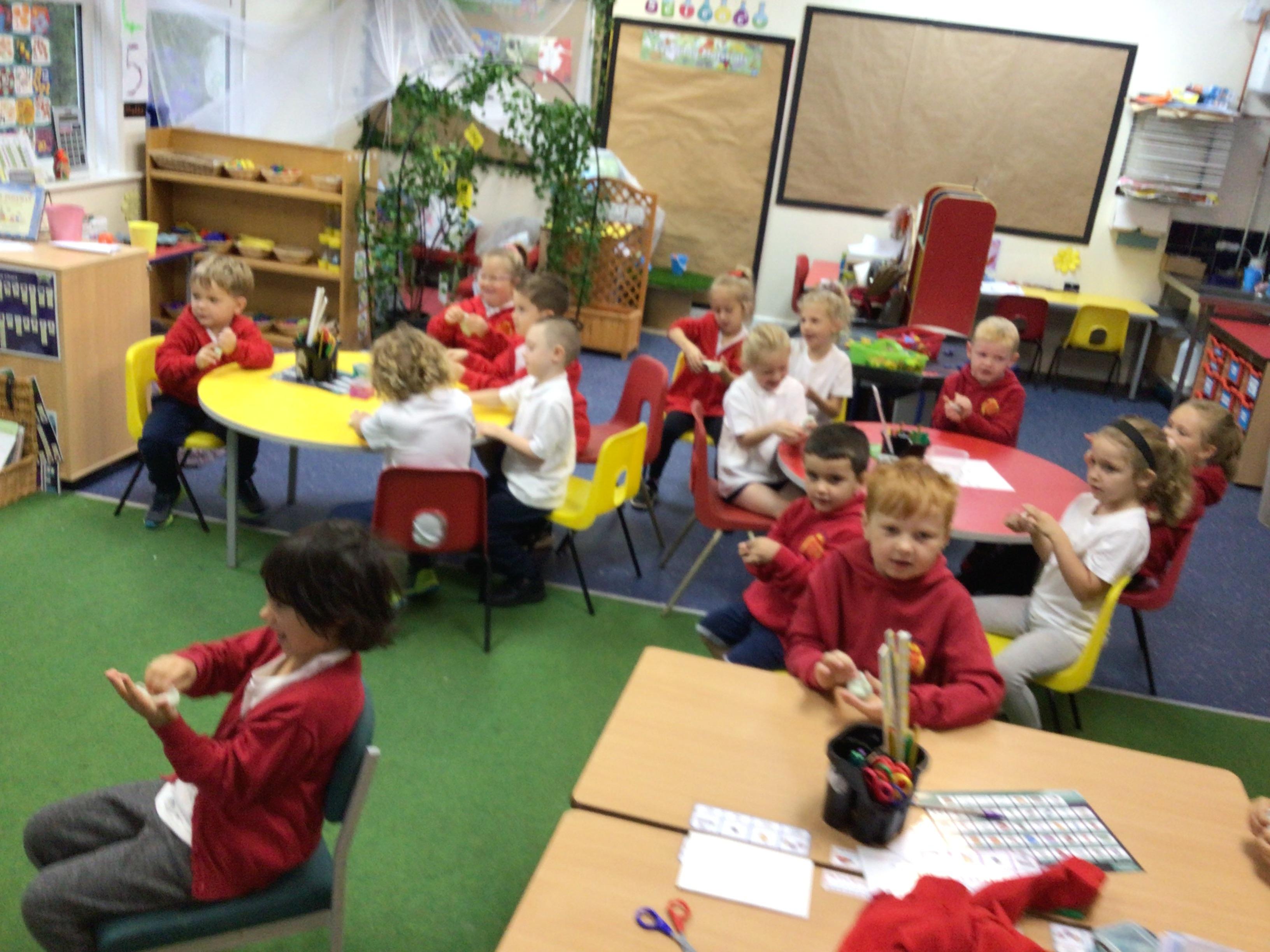 The children and staff have been taking part in daily Dough Disco activities. This is to strengthen hand muscles to develop handwriting. It is a great activity, and we are all enjoying it.