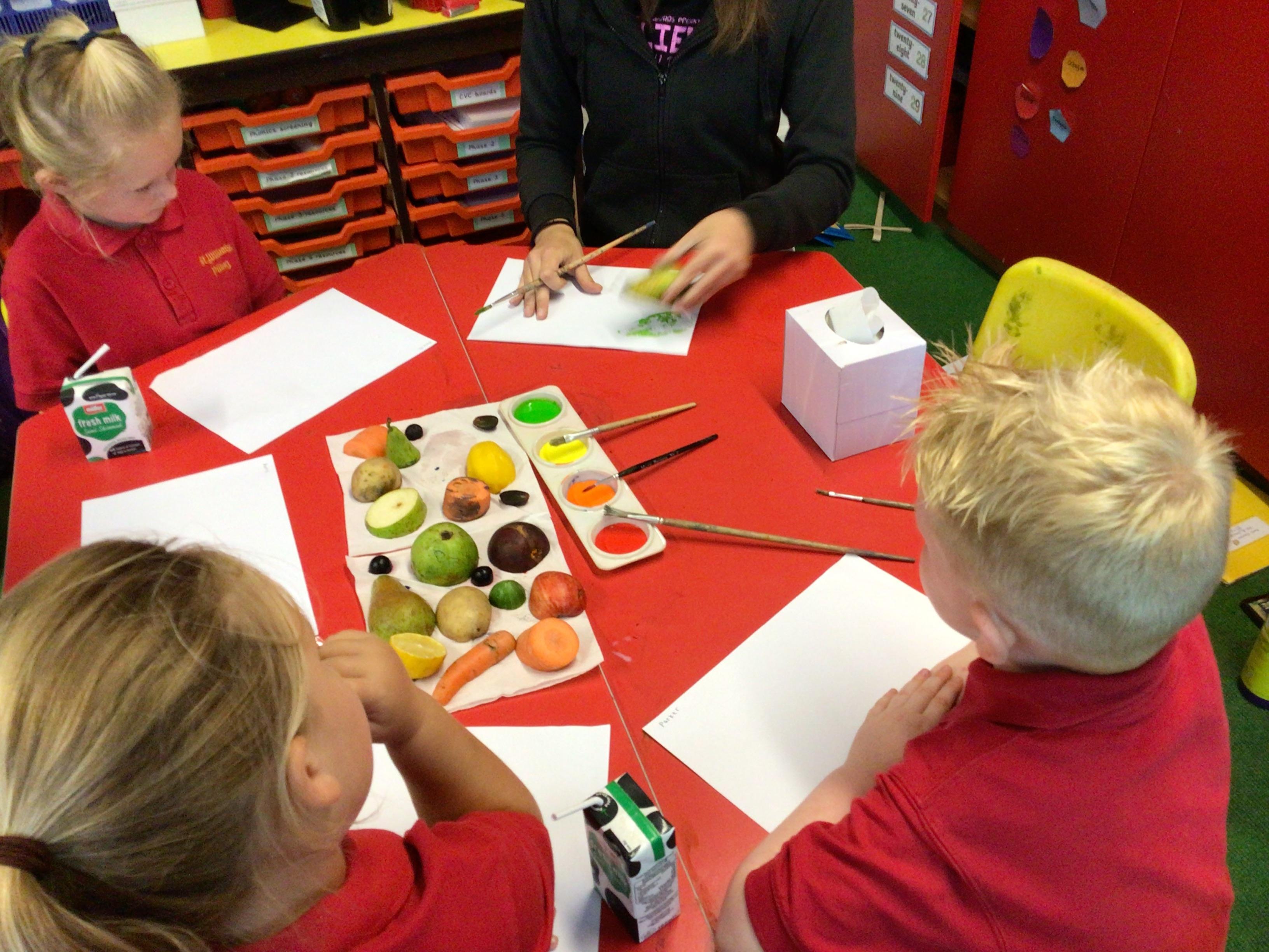 Last week, we drew still life fruit. The children added great detail and colour to their drawings. This week we looked at one of Paul Cezanne's paintings of apples. We are going to create our own painting of apples in the same style.