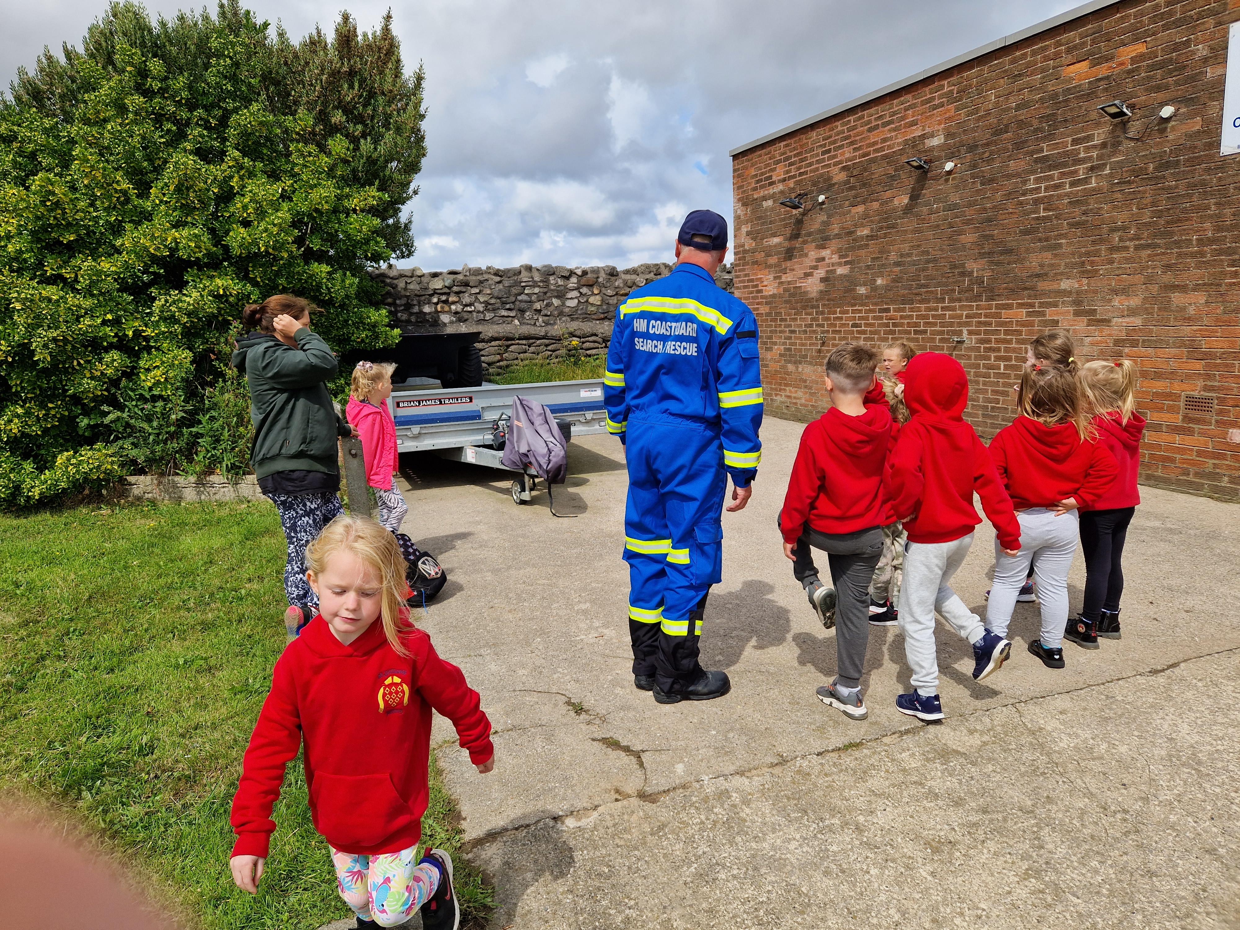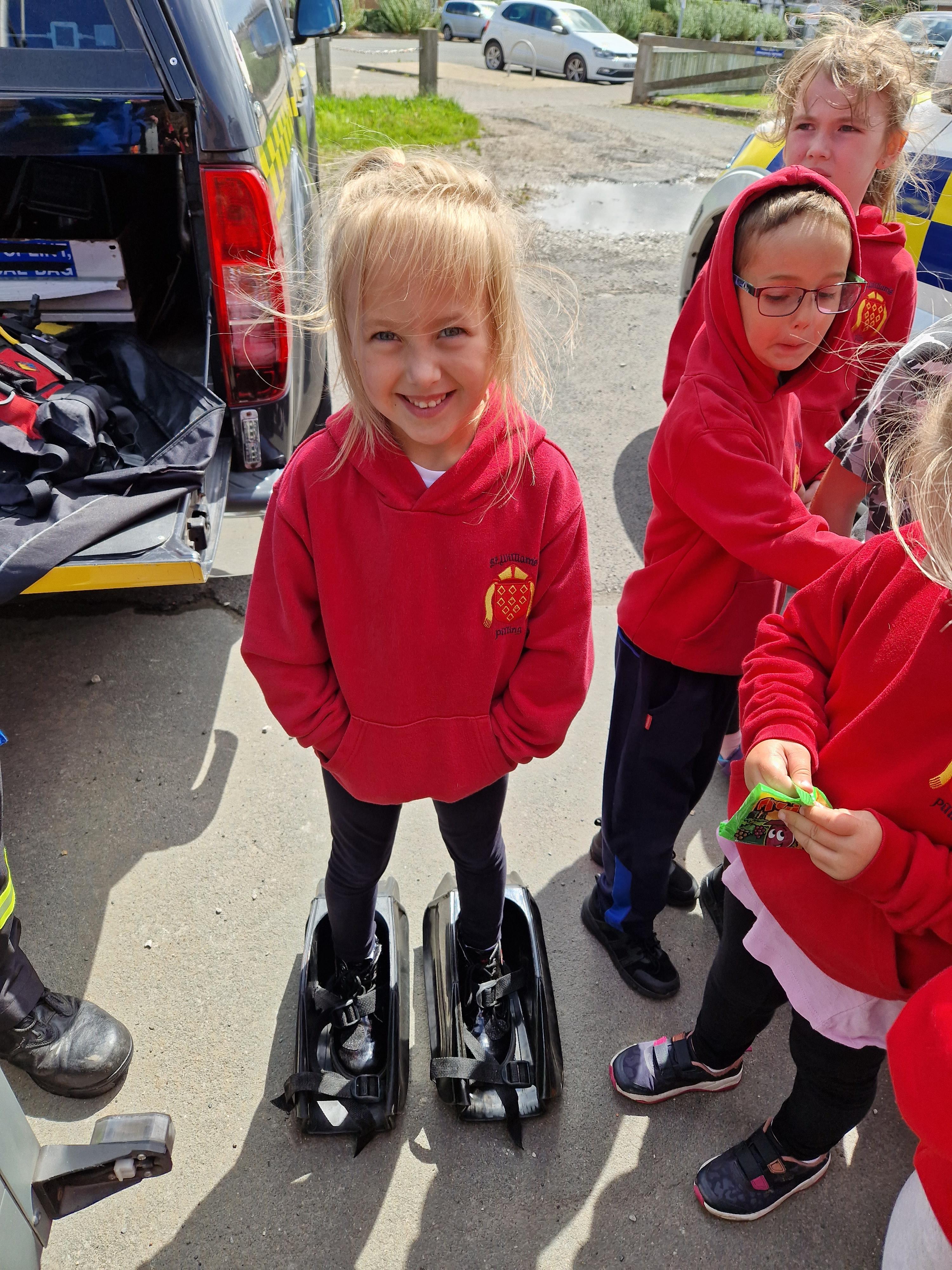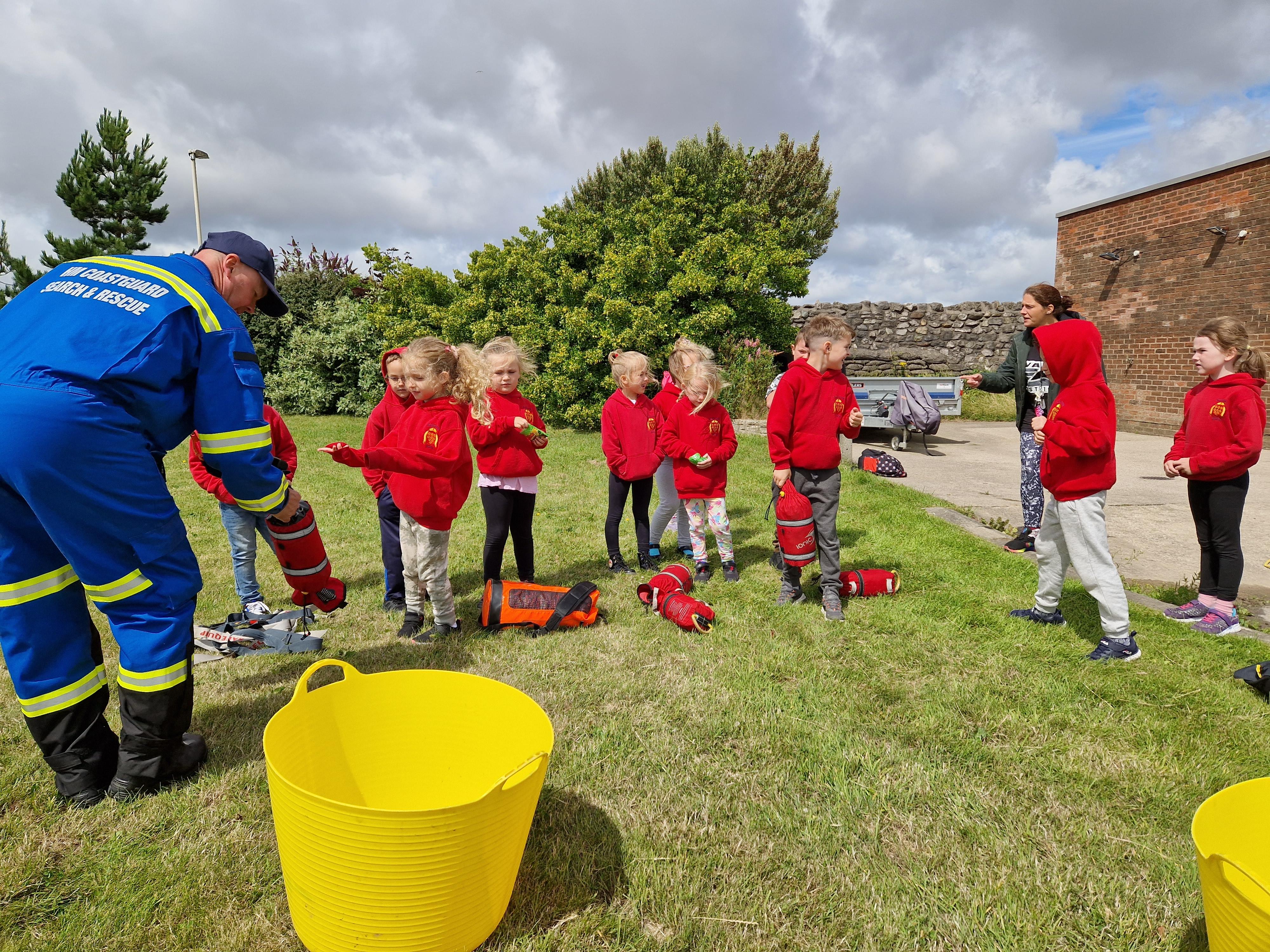 Prior to their visit, they circled school a few times in a plane, swooped down low, flashed their lights and wiggled their wings. It was fantastic to see and the children asked lots of interesting questions about the plane.
