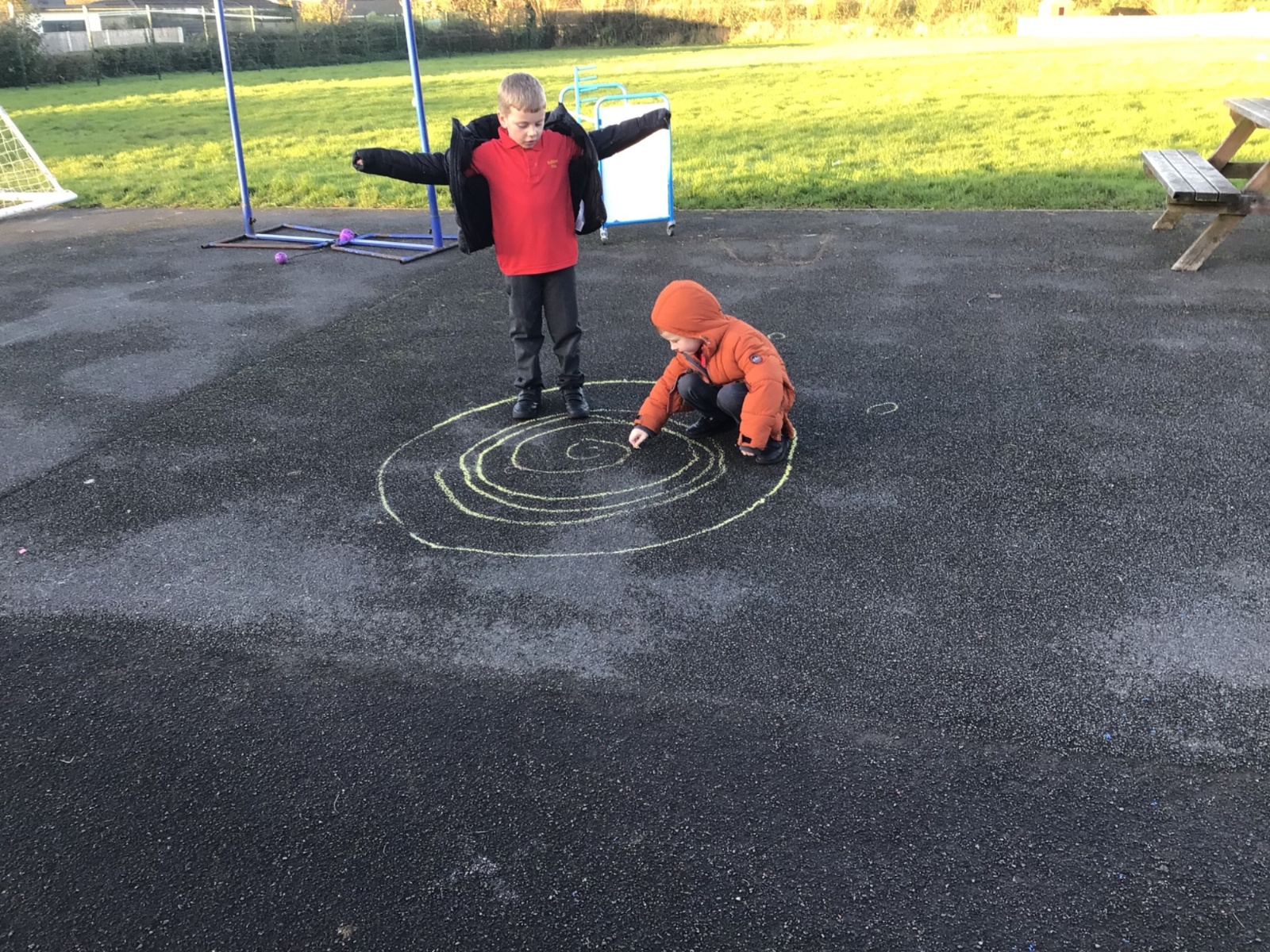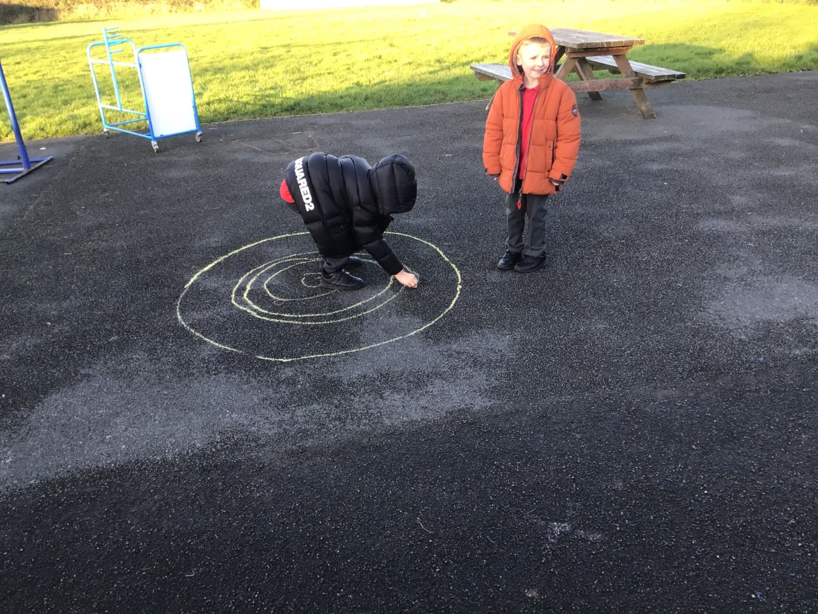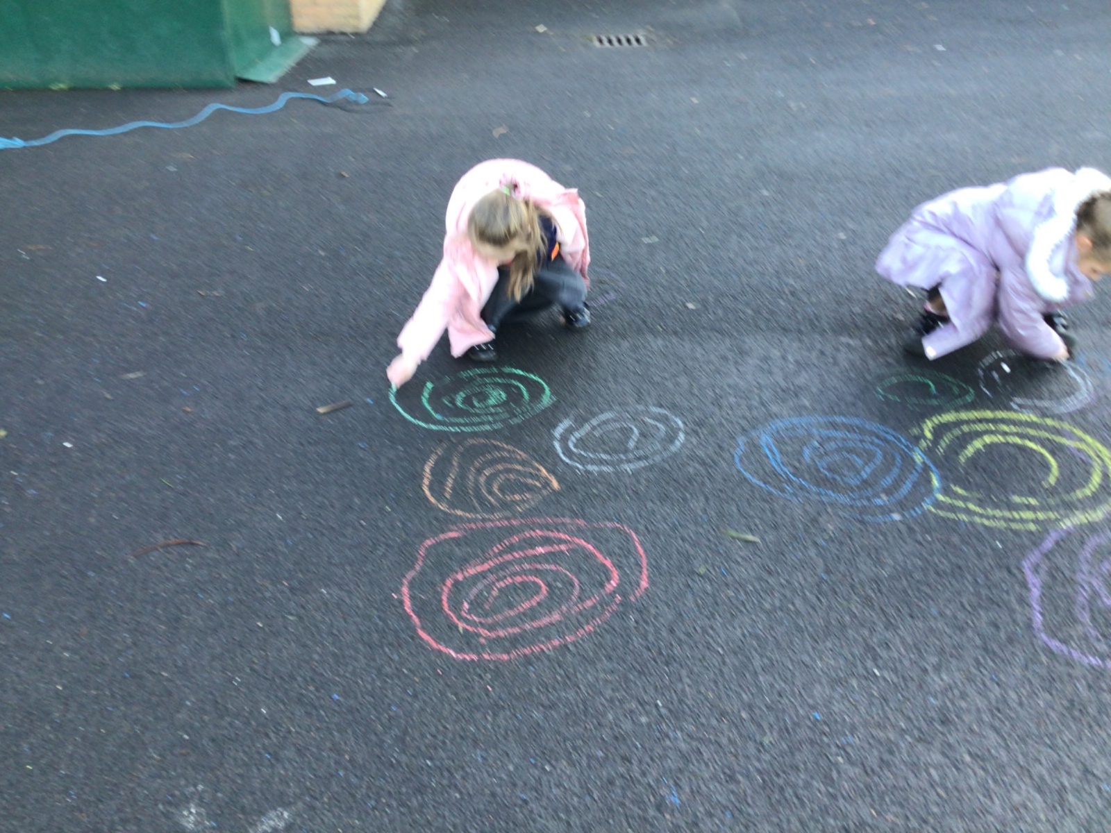 In art this half term, the children are learning all about spirals. We have been outside creating spirals on the playground. We have also traced over spirals and cut them out. As a challenge the children tried to create spirals using the computer programme 'Paint'