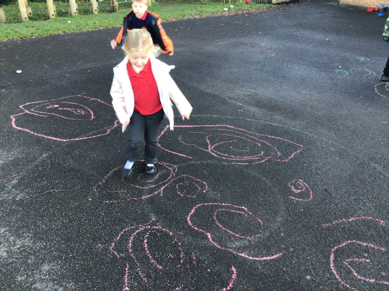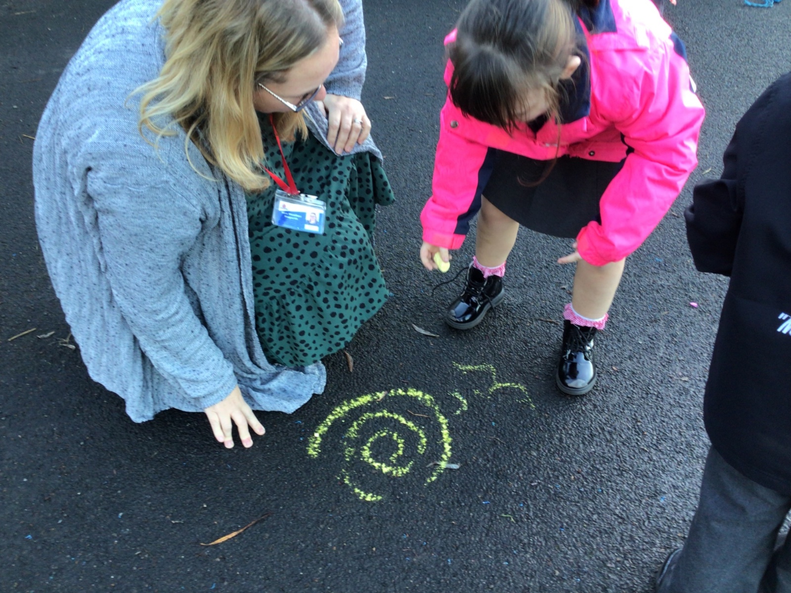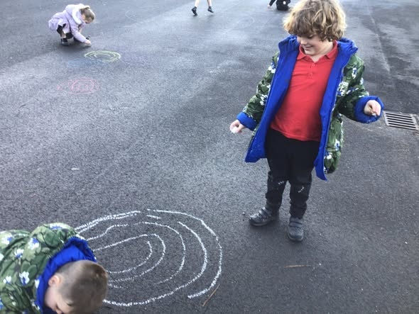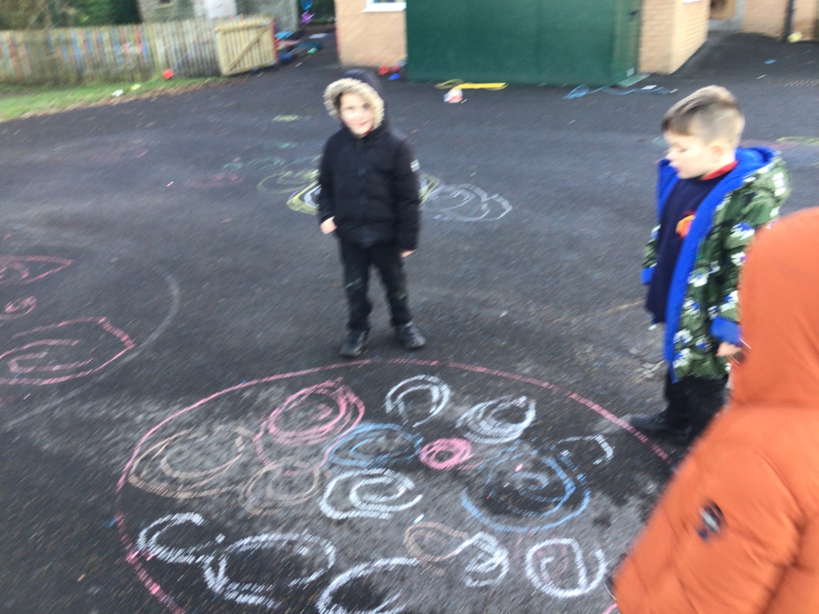 In art this half term, the children are learning all about spirals. We have been outside creating spirals on the playground. We have also traced over spirals and cut them out. As a challenge the children tried to create spirals using the computer programme 'Paint'