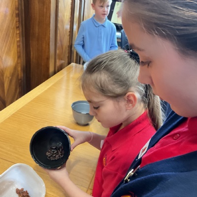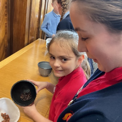 They completed a range of activities including winnowing (shelling) cocoa beans, making chocolate and completing a quiz. They are going to showcase what they have learnt for the rest of the children.