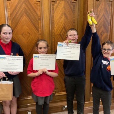 Thank you to Mrs Houghton for accompanying 4 of our children to a Fairtrade conference in Preston. The children learnt about the importance of fairtrade, what products can be bought and what work goes on with the farmers.