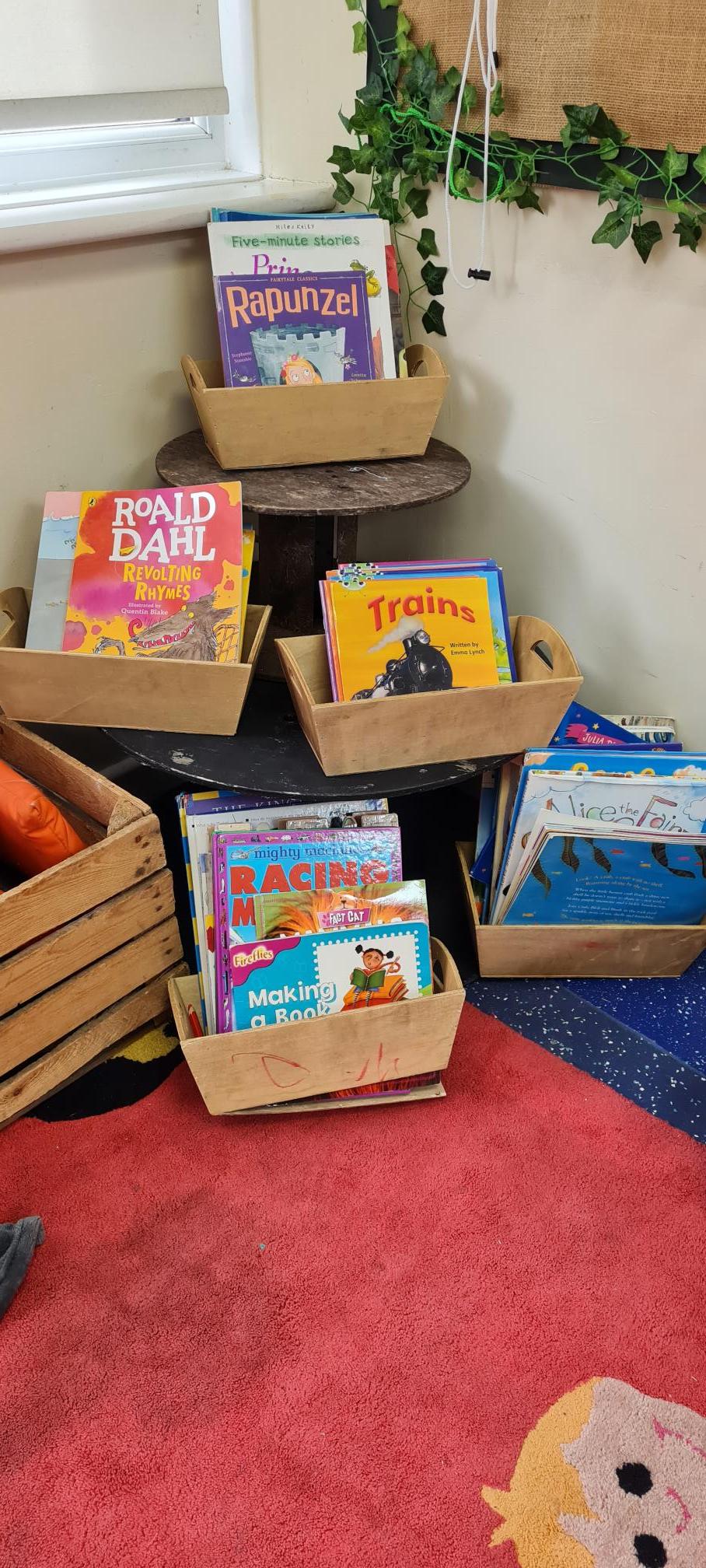 This is our Class 1 library. The children can borrow books from our library on a weekly basis. This is to promote the love of reading within our school. Children are welcome to take a book and read in our home corner too if they prefer.