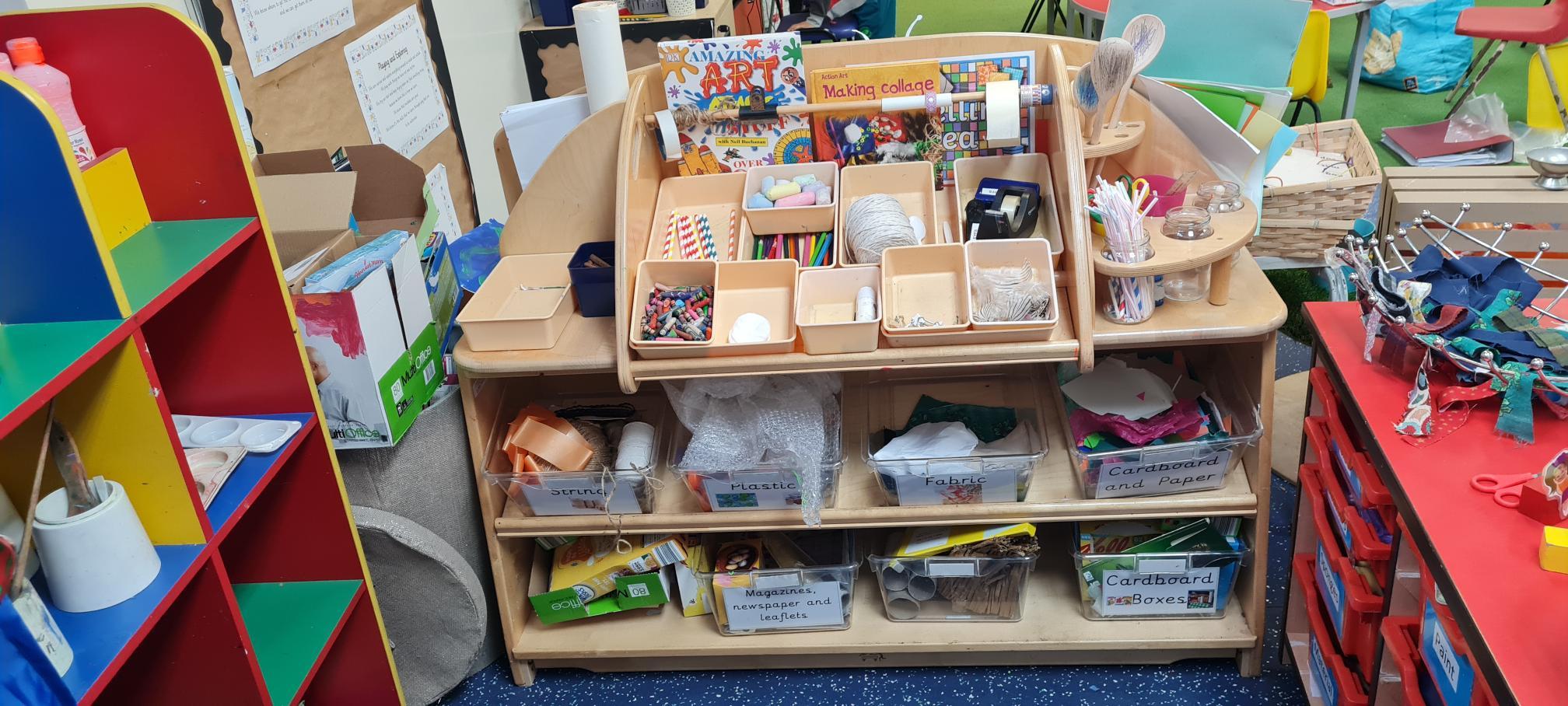 The children love to use the creative area. We encourage independence with them choosing their own resources and making lots of different things. The children can use a range of different size and shaped boxes. There are books available to offer suggestions about what they could make.