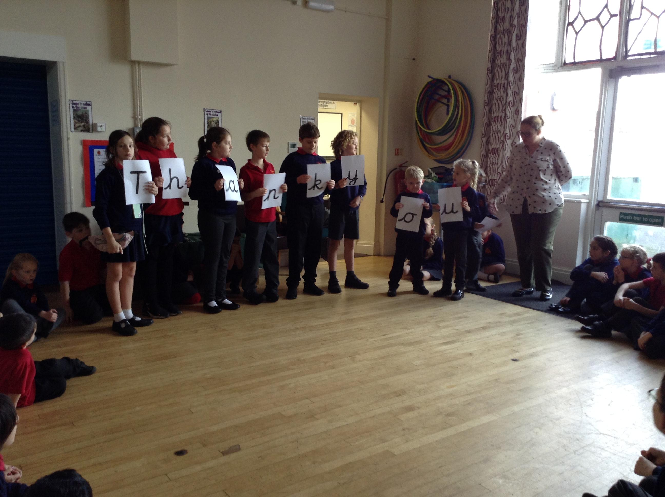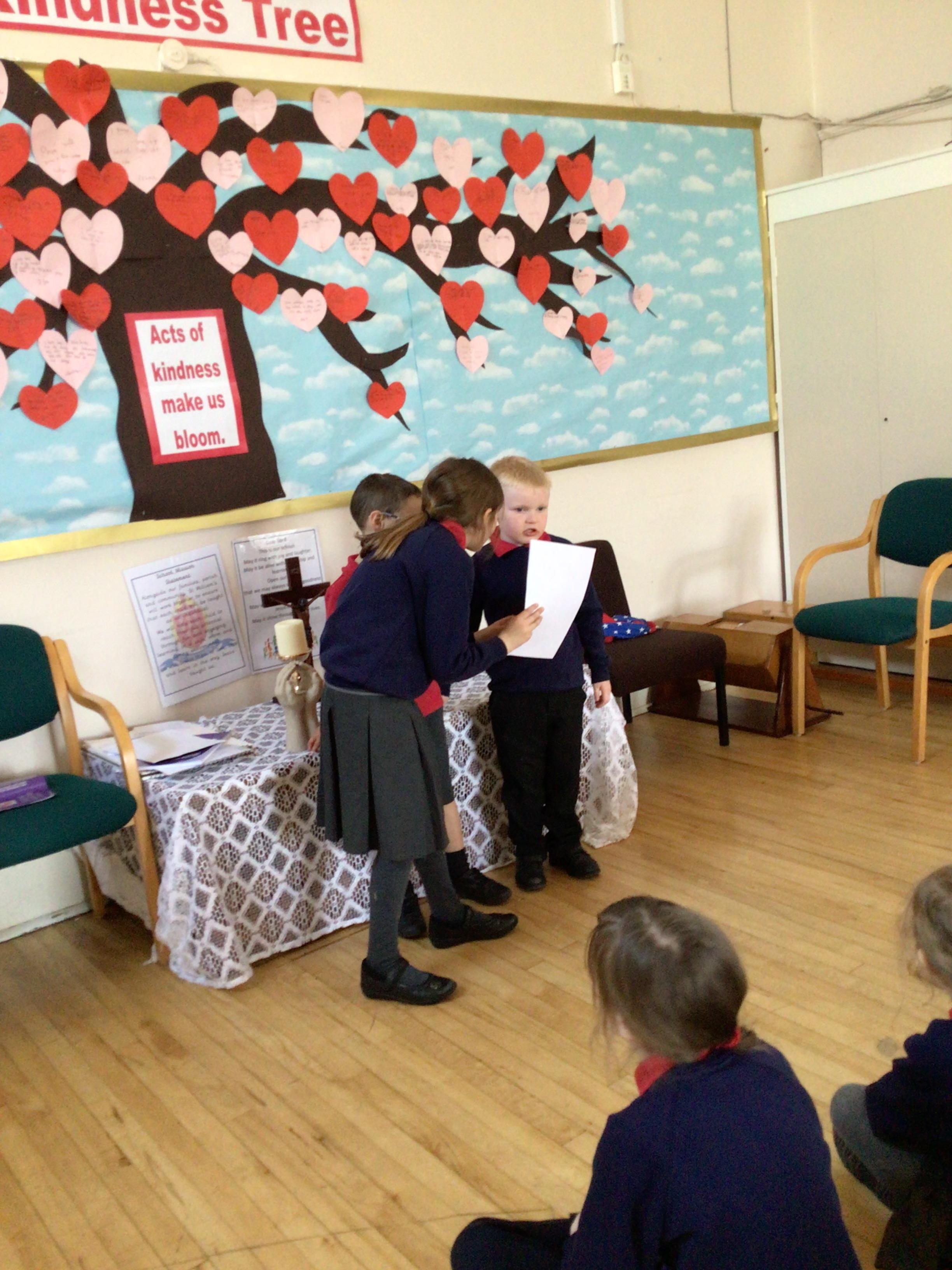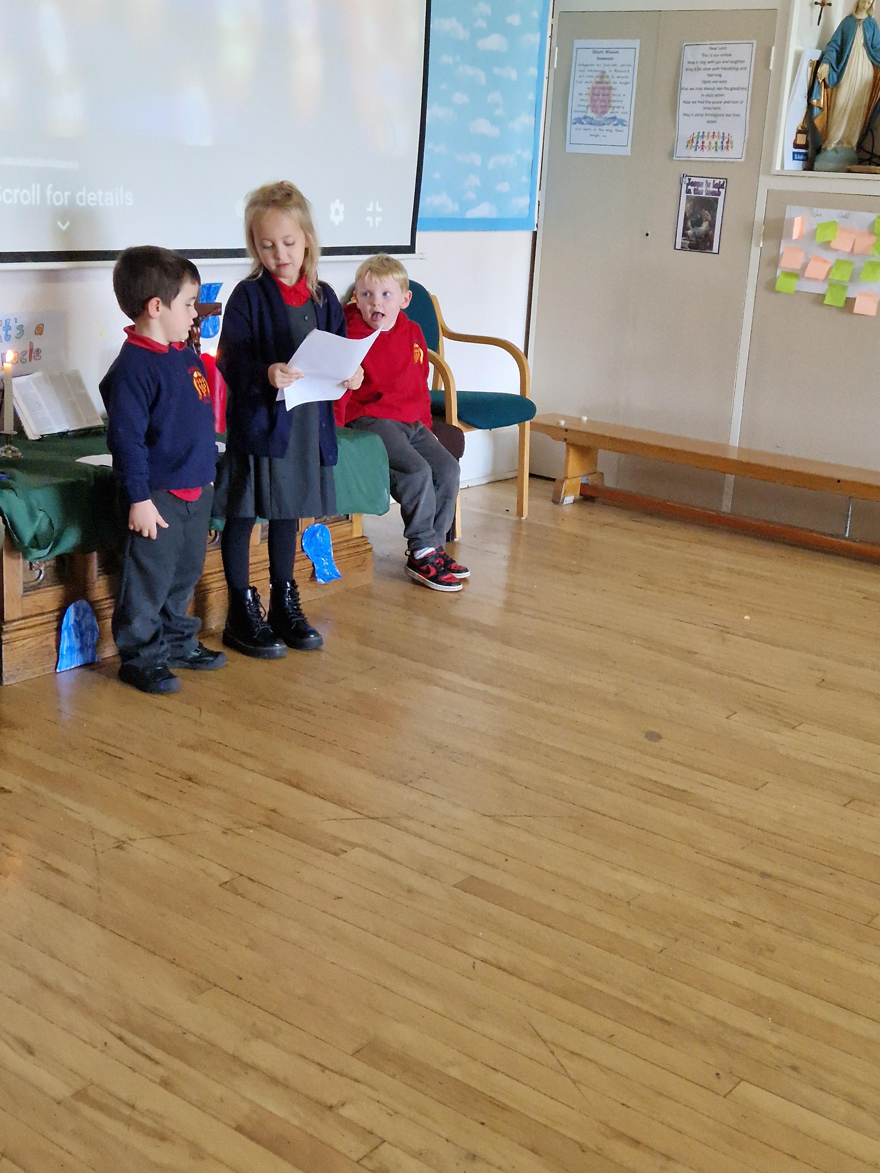 Some of the children in Class 1 led a beautiful celebration of the word about the importance of saying thankyou. We read the scripture reading about the ten lepers and how some of them did not come back and say thank you. They asked us to reflect on what we are thankful for.