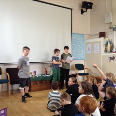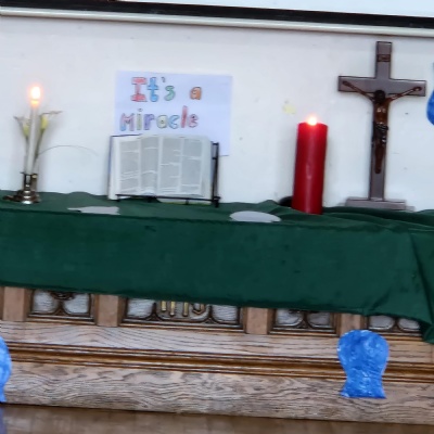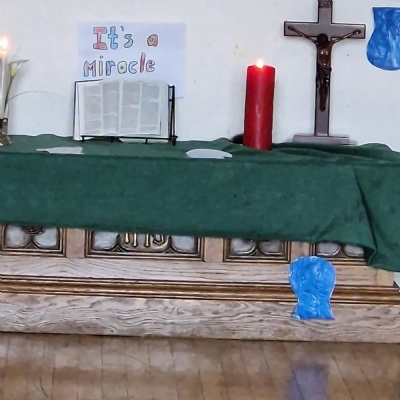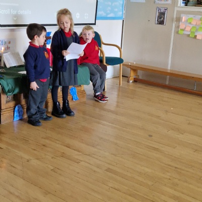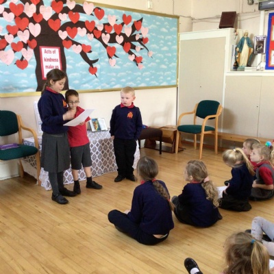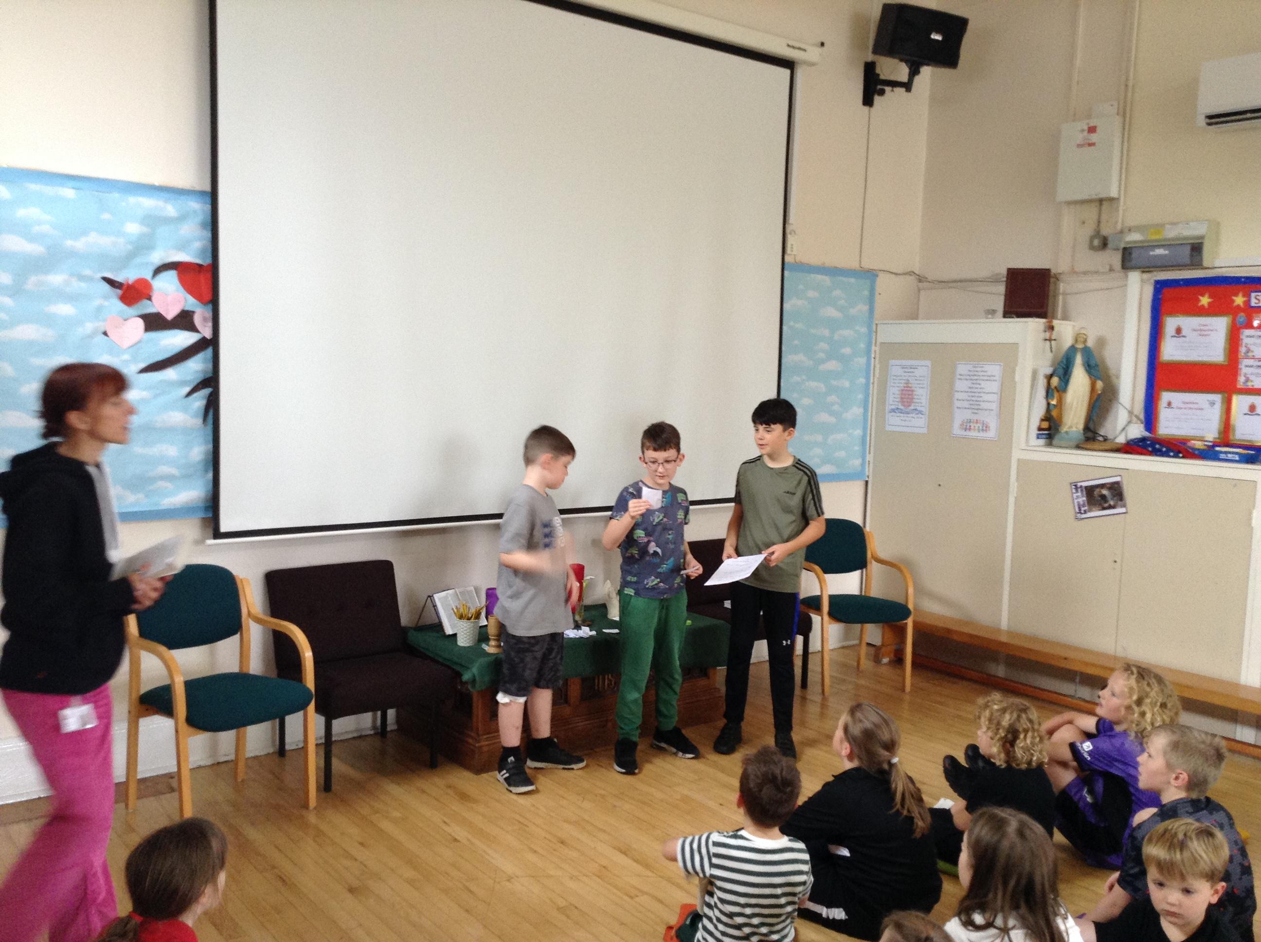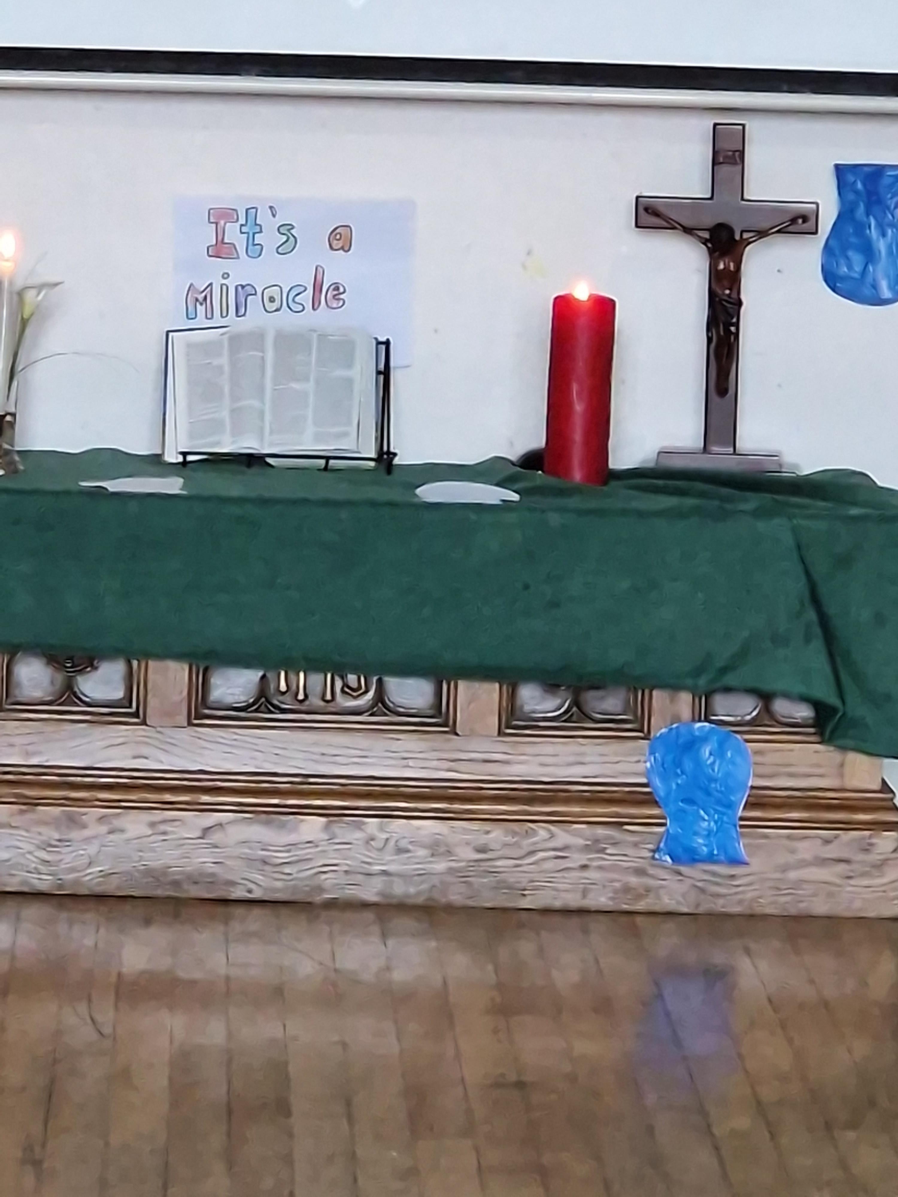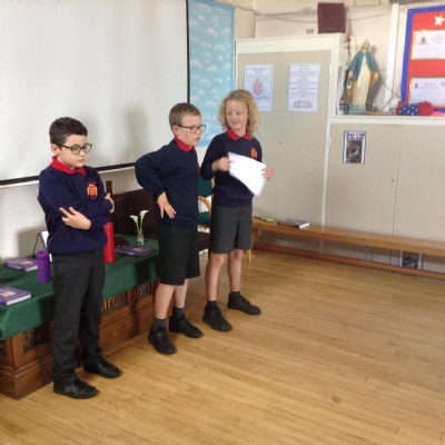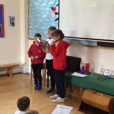This week was the turn of a group of children from Monkey Class. Their Celebration of the Word was based on Jesus's first miracle where He turned water into wine. The children created posters and other resources to help their friends understand all about this piece of scripture.